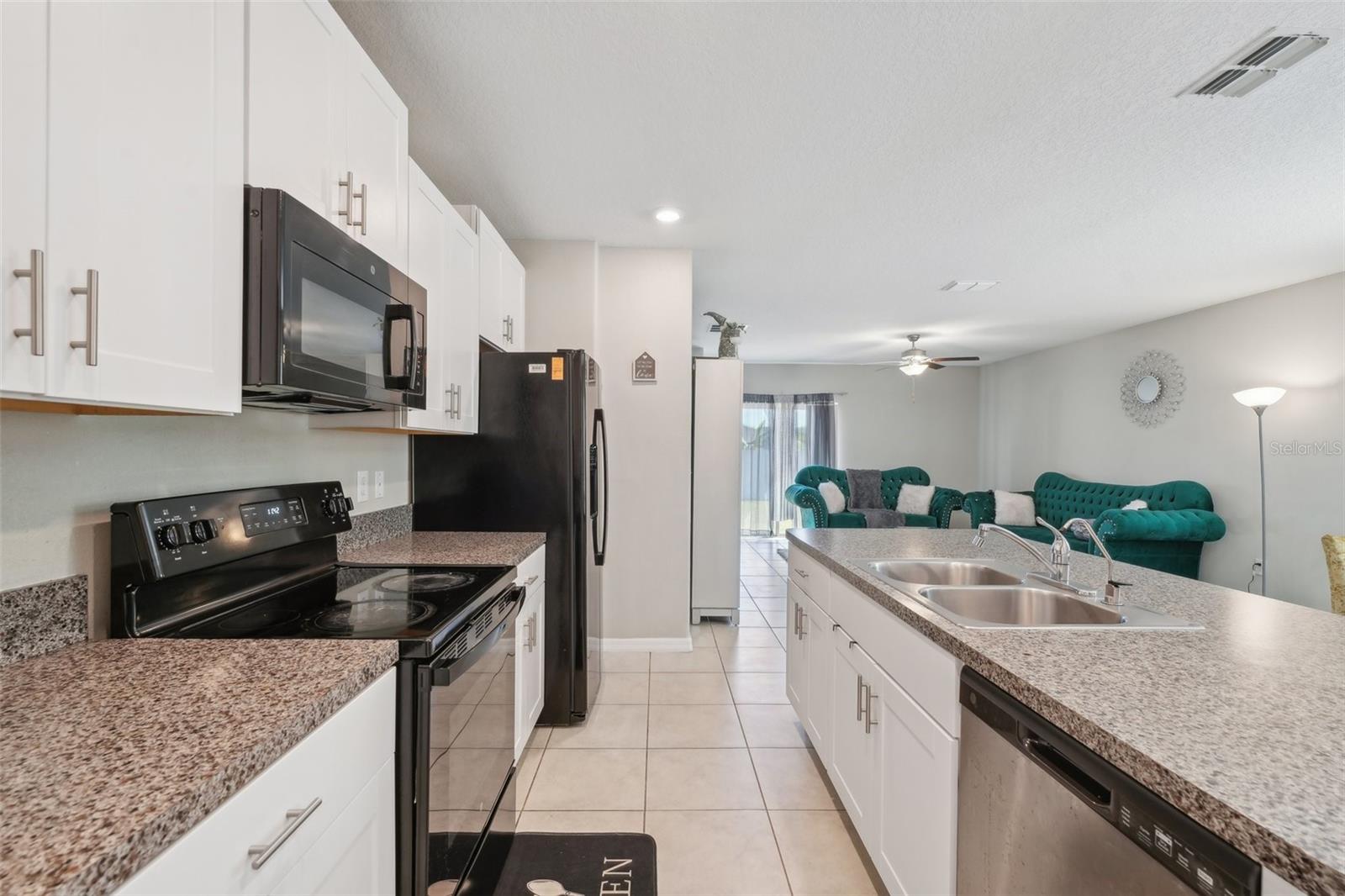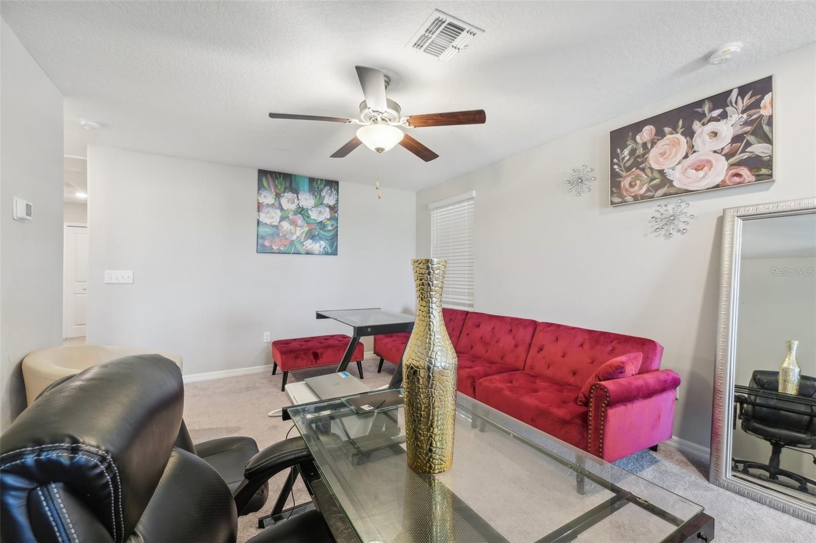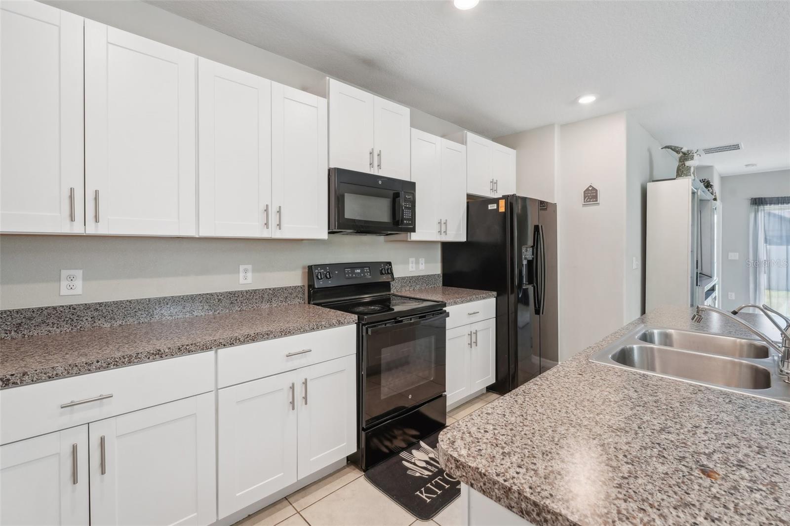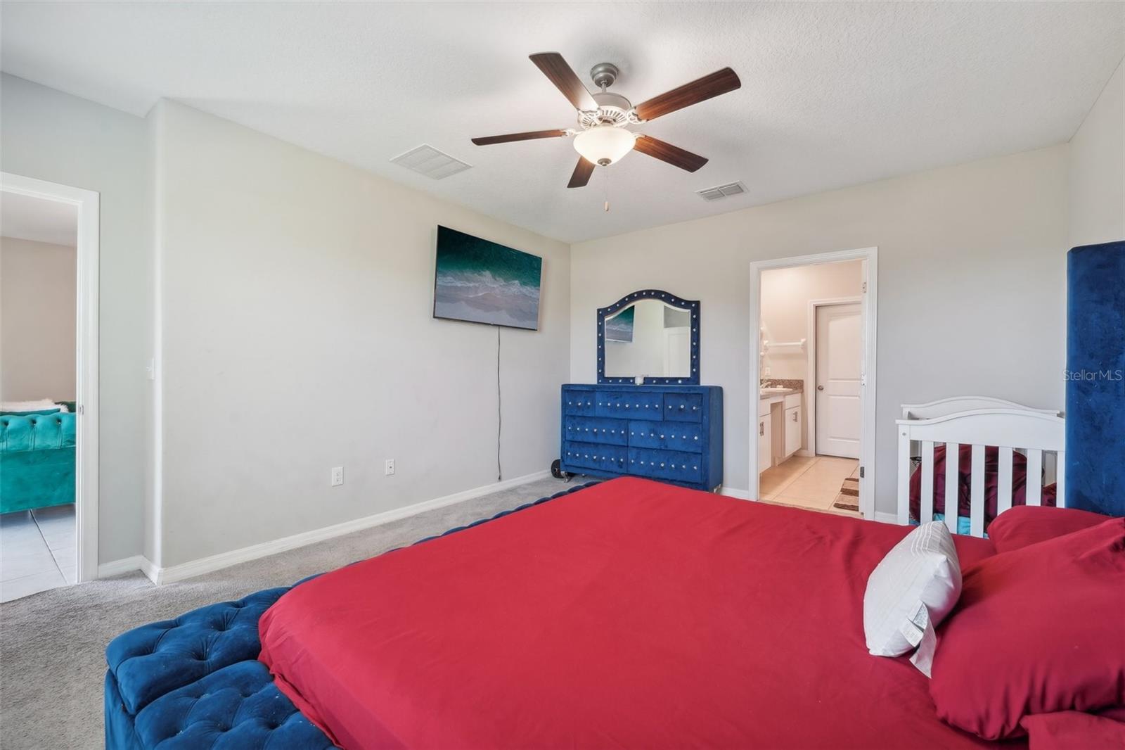 Gorgeous Contemporary style home with a fabulous curb appeal. This 5 bedroom, 2.5 bath & 2-car home is ready for you! Starting with the extensive landscaping package & elevation details. The interior of the home is light & airy neutral colors to accommodate many color schemes. Spacious entertaining & dining area. Fabulous kitchen with gorgeous white cabinets, BLACK appliances, & easy to keep formica countertops accompanied with a closet pantry. Convenient Powder Bath on first floor, perfect for guest. Primary bedroom on first floor with en-suite & huge walk-in closet. All secondary bedrooms are located on the second floor along with a secondary bath. 2nd floor loft space perfect for homework stations, gaming area, media room, play room crafting & much more! Separate laundry room with upper shelving. Spacious rear yard perfect for family fun, 4 legged family members & enough room to add a pool! Perfect home to raise a nice size family! Not far from the community amenities! Call today for your PRIVATE showing!