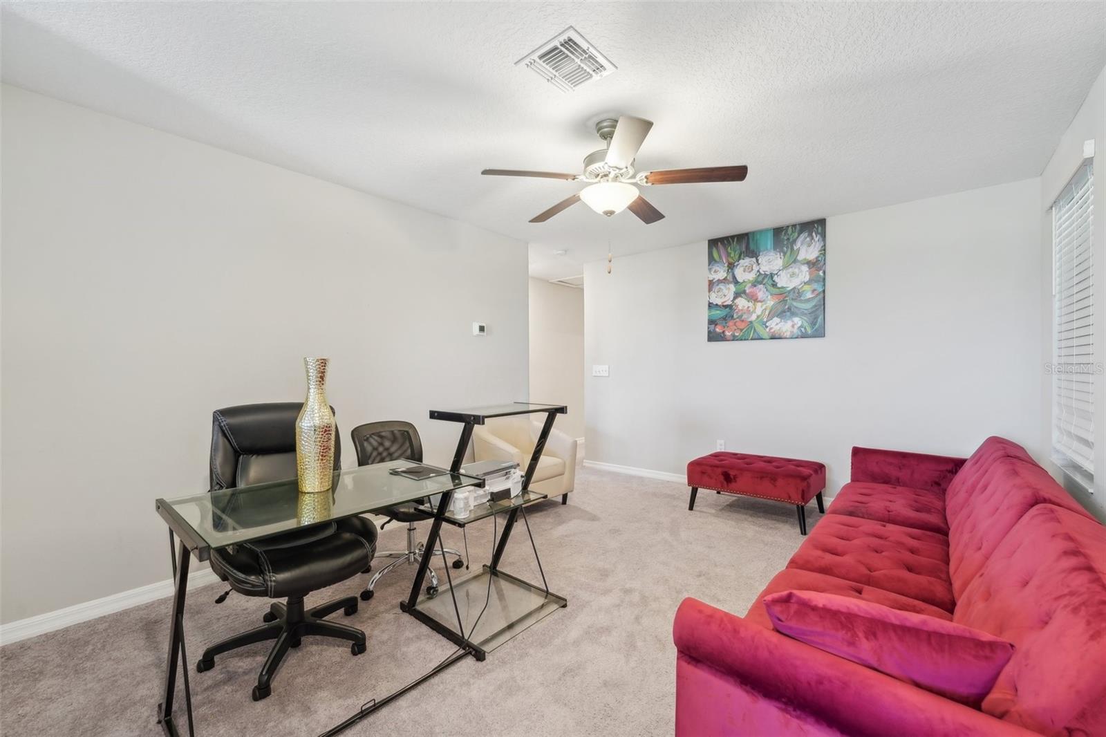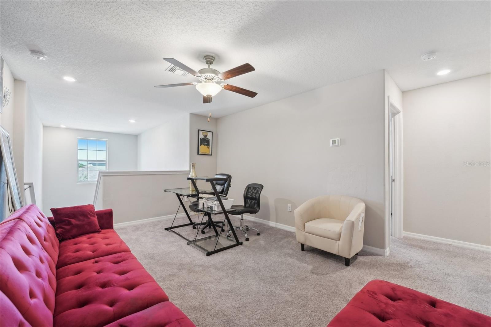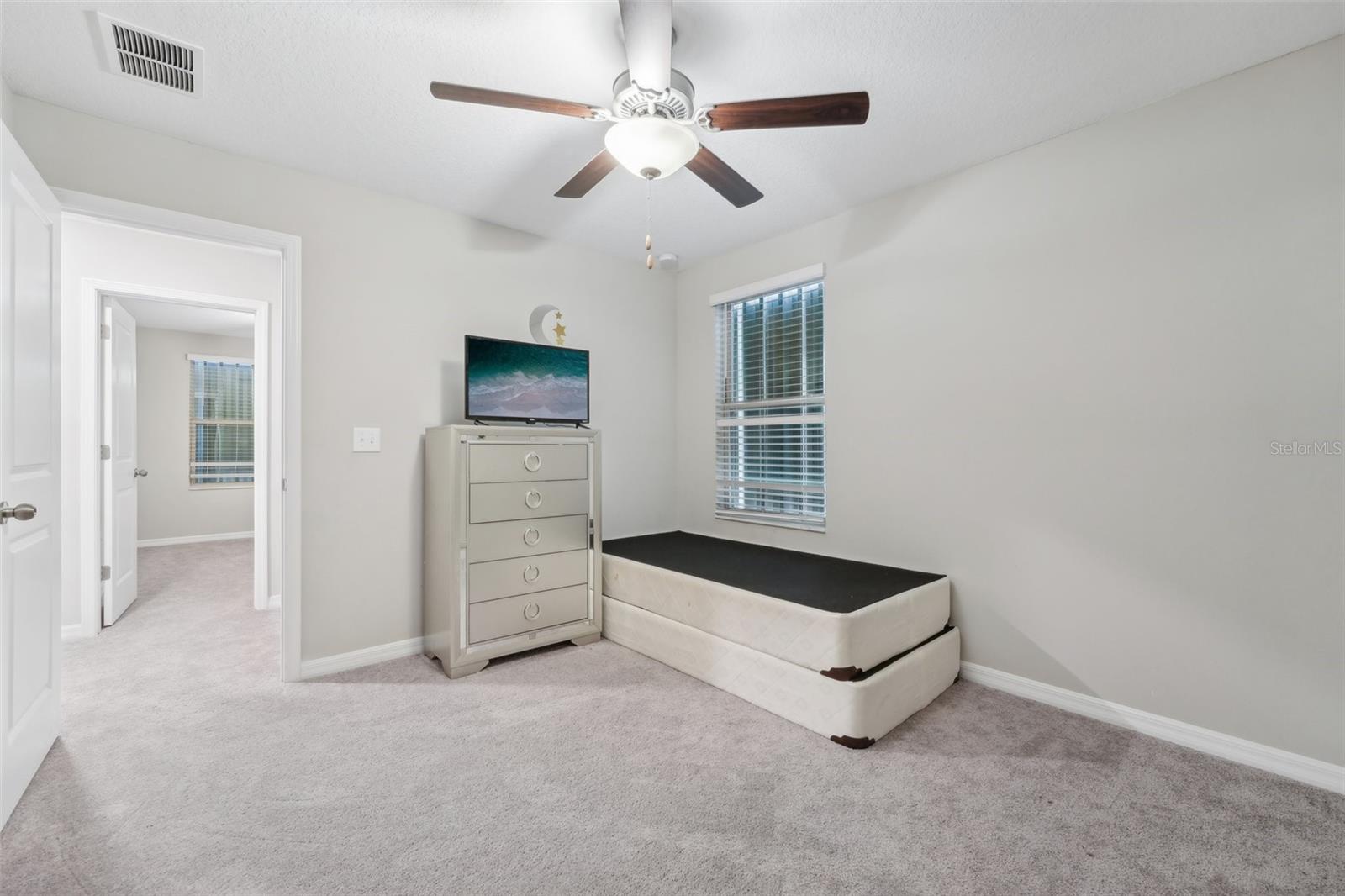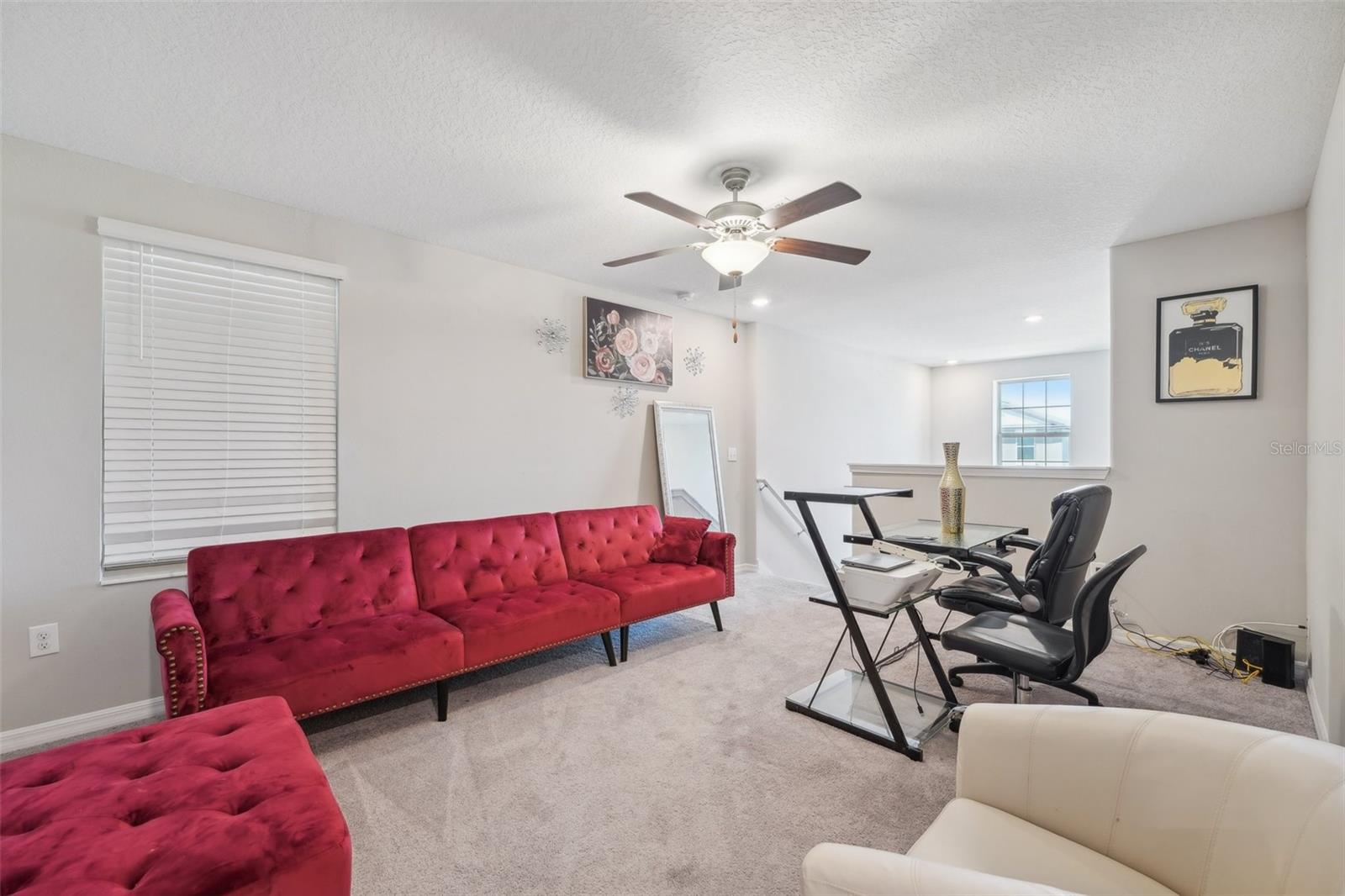Gorgeous Contemporary style home with a fabulous curb appeal. This 5 bedroom, 2.5 bath & 2-car home is ready for you! Starting with the extensive landscaping package & elevation details. The interior of the home is light & airy neutral colors to accommodate many color schemes. Spacious entertaining & dining area. Fabulous kitchen with gorgeous white cabinets, BLACK appliances, & easy to keep formica countertops accompanied with a closet pantry. Convenient Powder Bath on first floor, perfect for guest. Primary bedroom on first floor with en-suite & huge walk-in closet. All secondary bedrooms are located on the second floor along with a secondary bath. 2nd floor loft space perfect for homework stations, gaming area, media room, play room crafting & much more! Separate laundry room with upper shelving. Spacious rear yard perfect for family fun, 4 legged family members & enough room to add a pool! Perfect home to raise a nice size family! Not far from the community amenities! Call today for your PRIVATE showing!