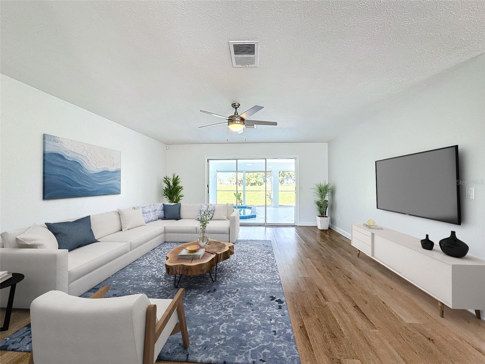 One or more photo(s) has been virtually staged. No CDD fees and HOA is only $40 annually. Here is your opportunity to be apart of such a high rated Retirement Community. This Pool/Spa Home is located on a secluded and quiet CUL-DE-SAC within the charming neighbourhood of Sun City Center. Enjoy this spacious 2508 sq ft. home with 3 large bedrooms, flex room with large windows ushering in plenty of natural sunlight, a formal dinning room area, 2 full bathrooms, covered pool and spa with screen enclosure. Main bedroom has 2 walk-in closets and sliding doors for your private entrance towards the pool. Your backyard gives you privacy as there’s no rear neighbours. Your garage is big enough for 2 cars plus it has a separate garage door entrance for your golf cart. The home is Newly Renovated, 2024 roof, 2018 AC, 2018 Duct work, 2024 resurfaced Pool, Newly painted interior and exterior, New Stainless Steel appliances, Quartz counter tops, Aesthetic vanities in bathrooms and contemporary light fixtures. Residents also have access to the community clubhouse, fitness center, pickle-ball and various social clubs. This house truly offers an ideal blend of function and comfort within this desirable community. Close proximity to several department stores, banks, restaurants and only 3 miles from I-75…. Also if you need Down payment assistance programs or Grants I have a Lender that can help you as there are many ways to qualify according to your specific financial needs.