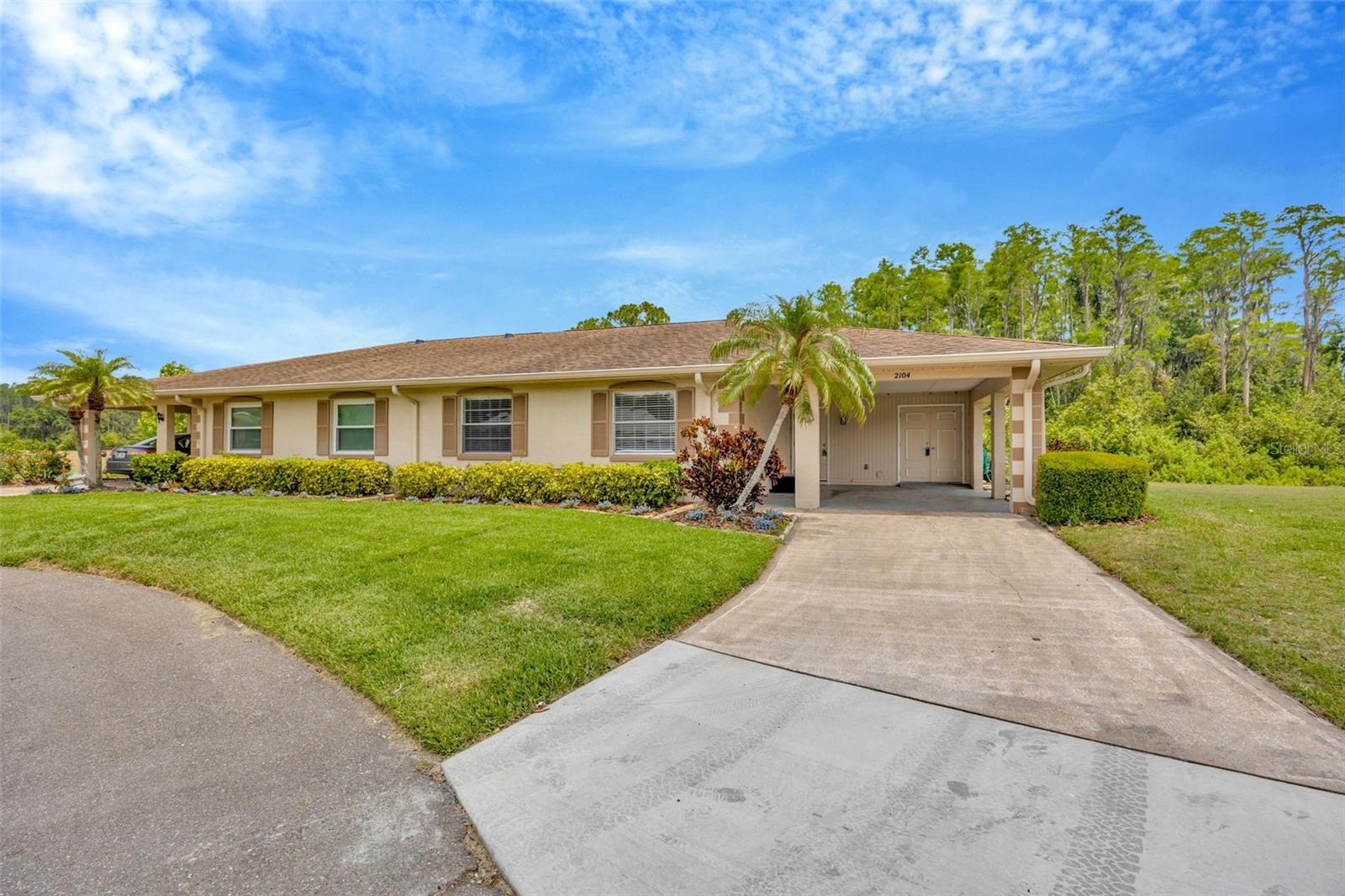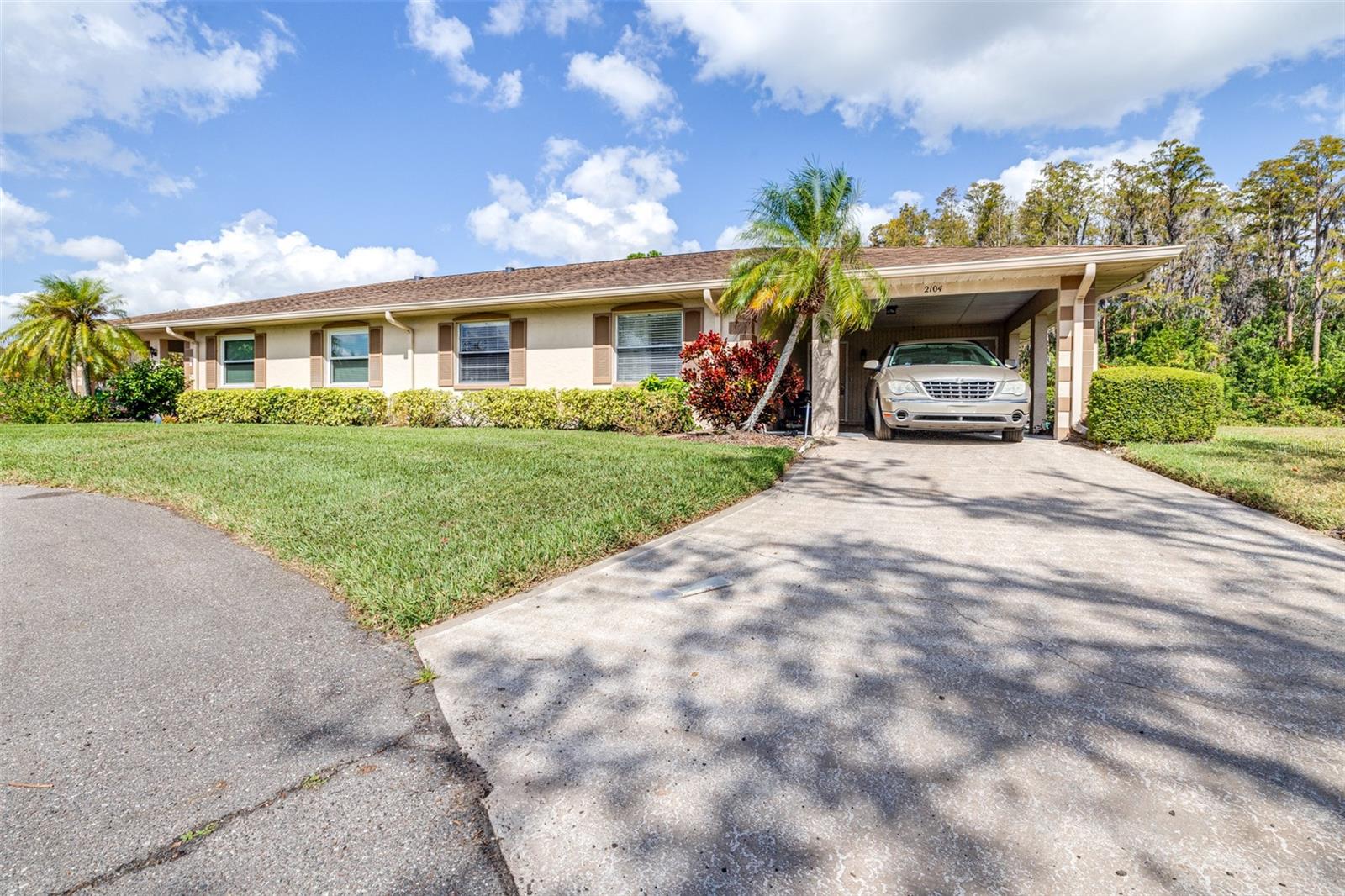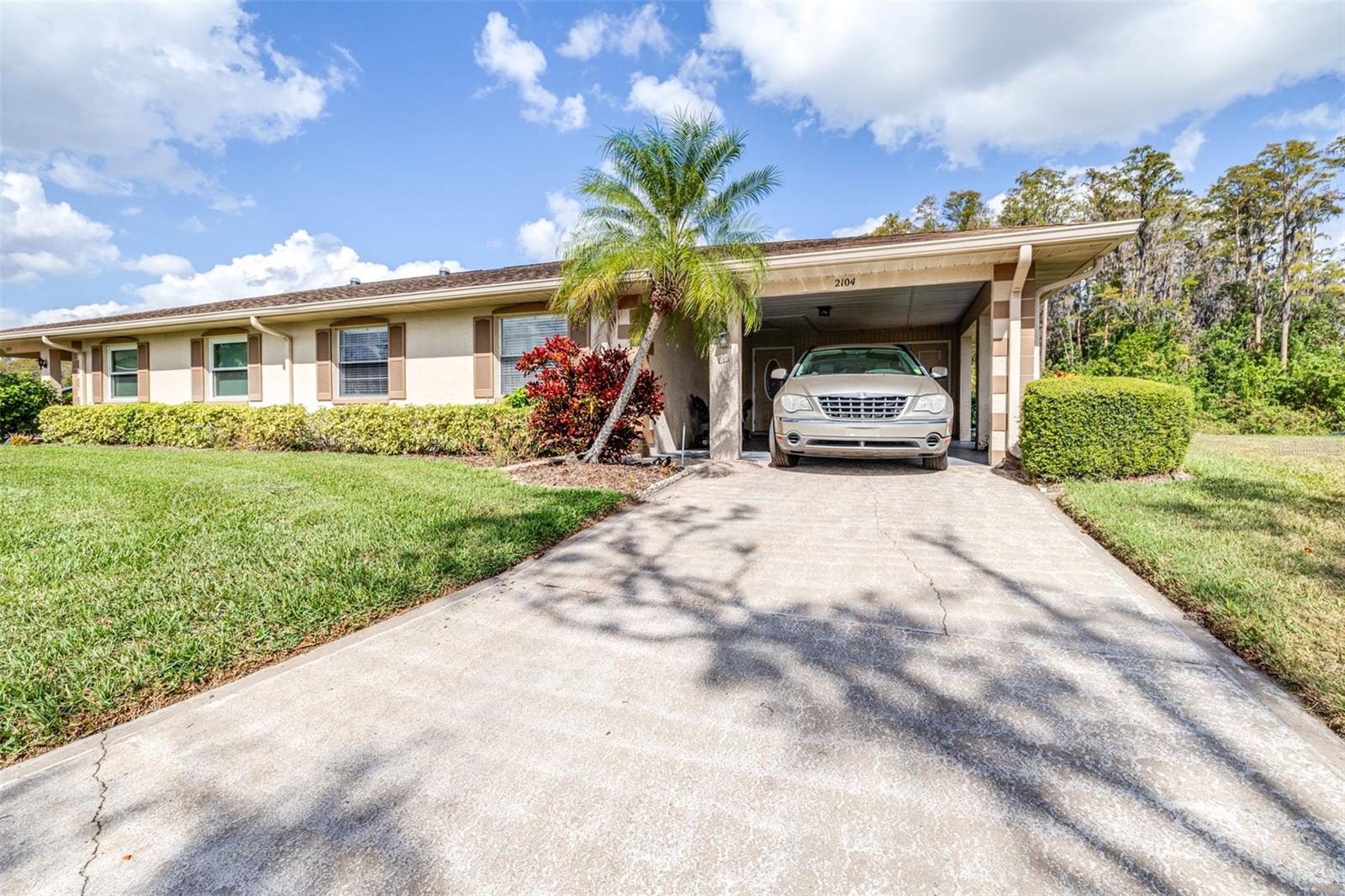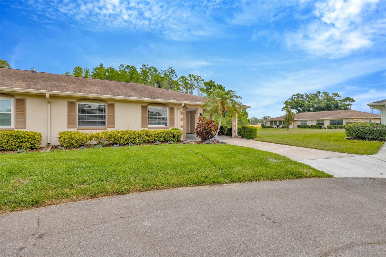 One or more photo(s) has been virtually staged. Welcome to Your Forever Home in the Coveted Kings Pointe 55+ Community! Discover the ideal blend of comfort, convenience, and active living in this pristine gated, golf-cart-friendly neighborhood in Sun City Center. This move-in-ready, maintenance-free villa offers a spacious 2-bedroom, 2-bathroom layout designed with you in mind. As you step inside, you’ll be welcomed by an open floor plan connecting the dining area, living room, and kitchen—perfect for entertaining or simply enjoying a relaxed evening at home. The master suite (12x11) features a generous walk-in closet and a private en suite bathroom with a stand-up shower. The second bedroom (11x13) provides ample space for guests or a home office. The kitchen is a chef’s delight, offering plenty of countertop space and cabinetry for all your culinary needs. An indoor laundry room (11x7) adds extra convenience. Step out to the screened lanai (7x24), where you can savor your morning coffee with serene views of water and trees—a perfect spot for peace and quiet. The carport accommodates both a vehicle and a golf cart, ensuring your transportation stays covered and ready. Community Highlights: Kings Pointe offers over 200 clubs and activities, including pickleball, golf, tennis, an outdoor heated pool, an indoor pool, a fitness center, arts and crafts rooms, pottery classes, train enthusiasts' club, computer labs, and more. Meet new friends, enjoy shared interests, and experience the resort-like lifestyle! Included Amenities: Your monthly fees cover cable, internet, exterior insurance, grounds maintenance, private roads, security, water, trash, and sewer, adding ease to your daily life. With easy access to shopping, dining, beaches, Tampa International Airport, MacDill AFB, Apollo Beach, Sarasota, and more, you’re perfectly situated for both quiet days at home and quick trips to local attractions. Don’t miss this chance to live in a vibrant, active community—schedule your tour today!