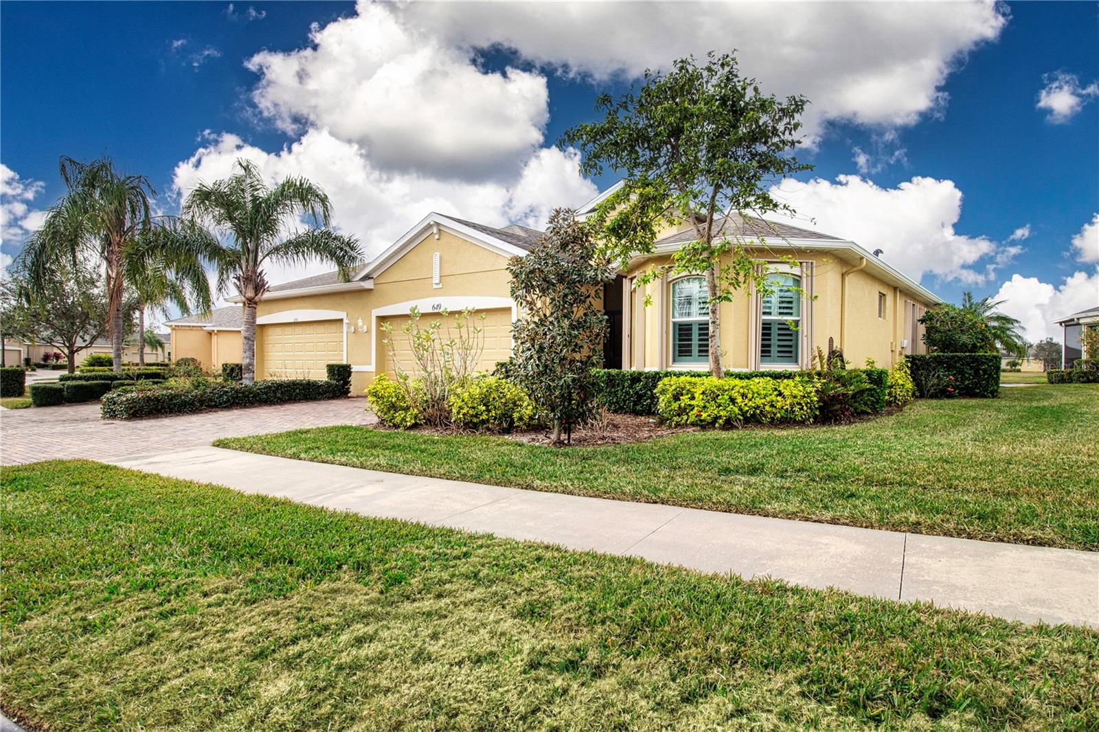One or more photo(s) has been virtually staged. "Hot Listing Alert: Don't overlook this 'Significant price Decrease'... it may fit your budget! Stunning "Magnolia" Model in the Gated Verona Community – Sun City Center Discover one of Minto’s most popular models, the "Magnolia," nestled in the highly sought-after gated community of Verona in Sun City Center—America’s #1-rated retirement community! From the moment you arrive, a paver driveway and walkway lead you to the inviting entrance, while the multi-level roofline showcases this home's architectural charm. The covered front entryway provides a welcoming space for guests and package deliveries. Step inside to a soaring 13-foot FOYER ceiling, setting the stage for a bright, open living space. The GREAT ROOM, with its 10'4" ceiling, offers a breathtaking pond view, creating a serene backdrop for everyday living. Tile flooring runs throughout, offering both elegance and ease of maintenance. Interior highlights spacious LAUNDRY ROOM with granite countertop. Three generously sized bedrooms and a guest bath featuring a GRANITE vanity and tiled shower large DEN/OFFICE, perfect for remote work or hobbies. Chef’s kitchen with rich WOOD CABINETRY, pull-out shelves, pot drawers, GRANITE countertops, STAINLESS STEEL appliances, and a REVERSE OSMOSIS water system. Luxurious Primary Suite: TWO large WALK-IN-CLOSETS. Ensuite bath with DUAL SINKS, a seamless walk-in shower, and a separate water closet. Additional features include an in-wall tubing pest control system, a security system, a water softener, and plantation shutters on all windows. For added peace of mind, the home is equipped with hurricane shutters. Verona residents enjoy low-maintenance living including exterior upkeep such as lawn care, exterior painting, and roof replacement. The community features exclusive access to Club Renaissance, a 43,000 sq. ft. facility full-service spa, fitness center, indoor walking track, and restaurant. Beyond Verona, Sun City Center offers endless opportunities to stay active and social with over 150 clubs, two additional pools, a state-of-the-art fitness center, and two sports complexes. Don't miss this incredible opportunity to own a piece of paradise in one of Florida's premier active-adult communities!