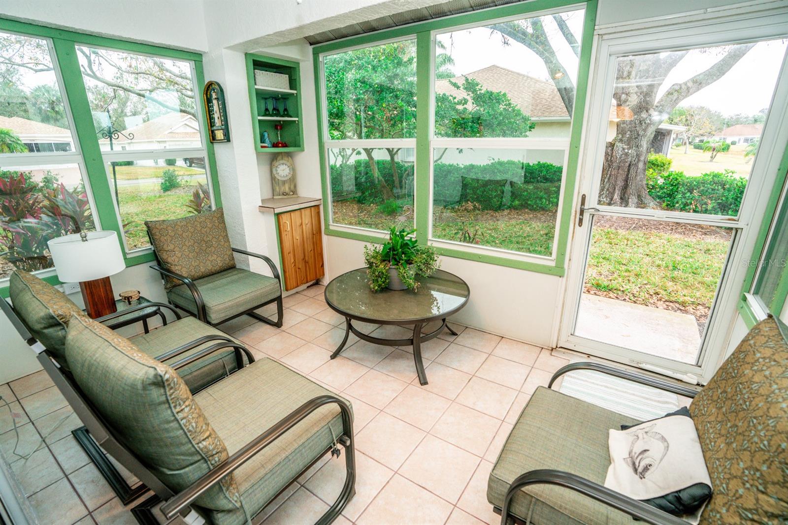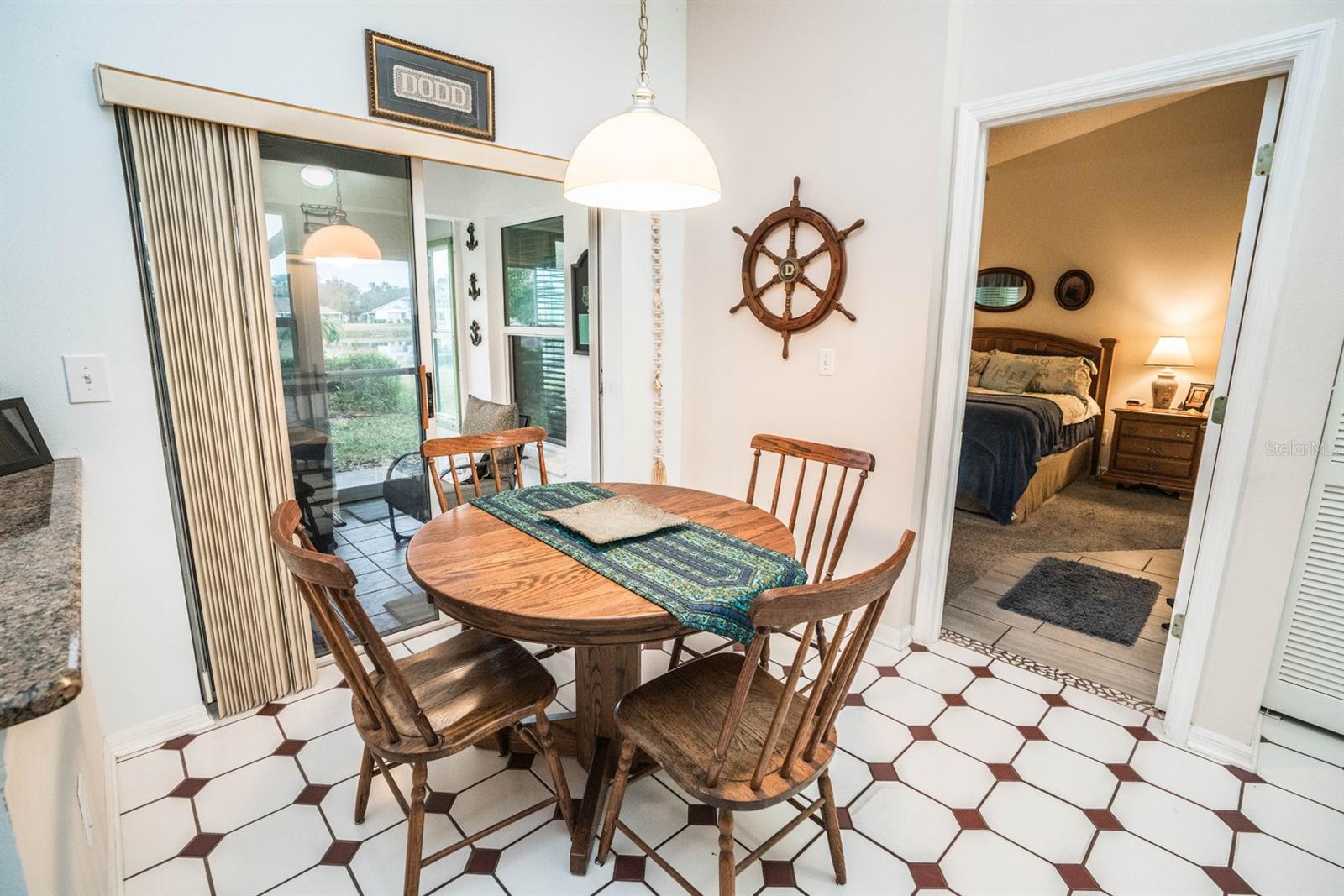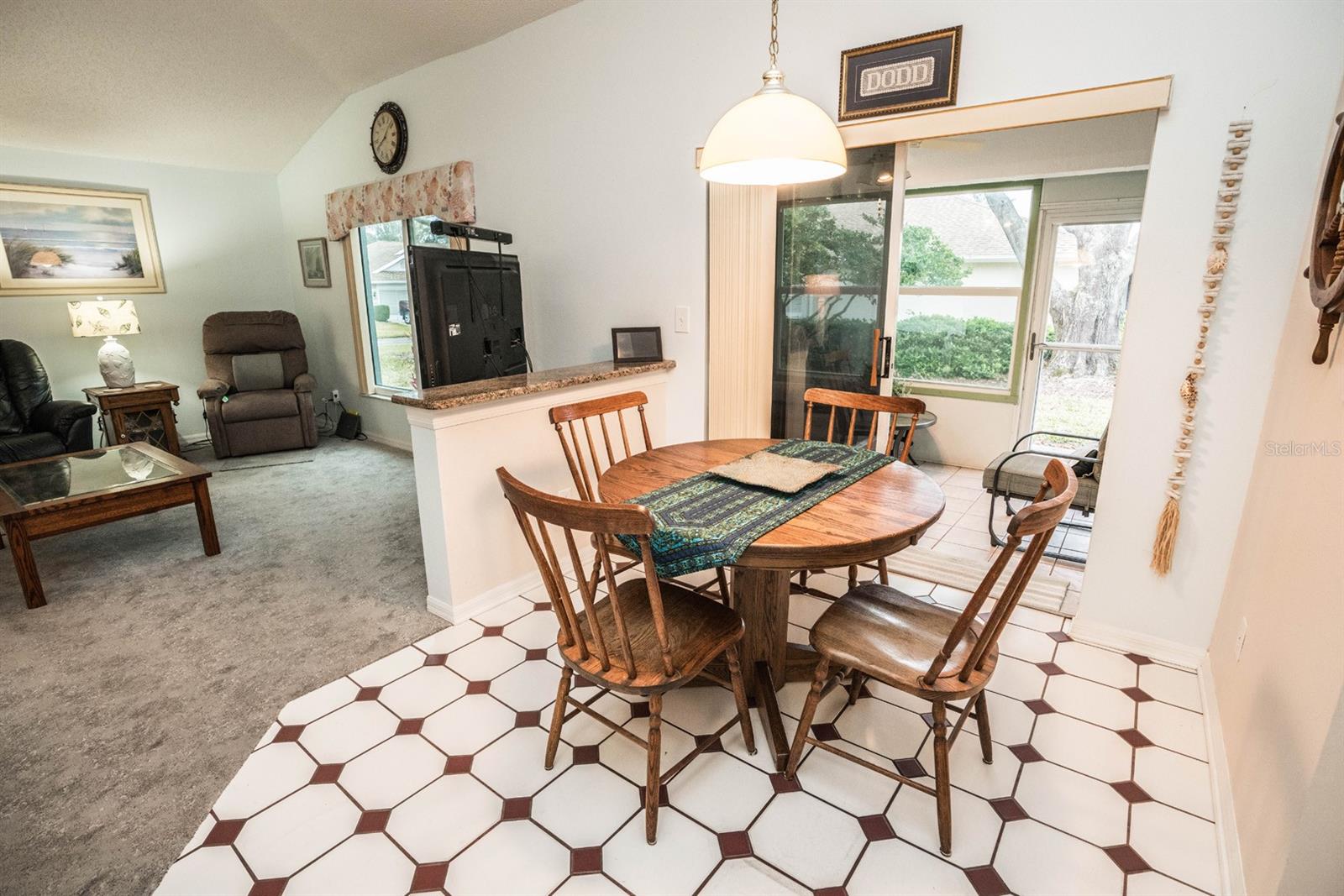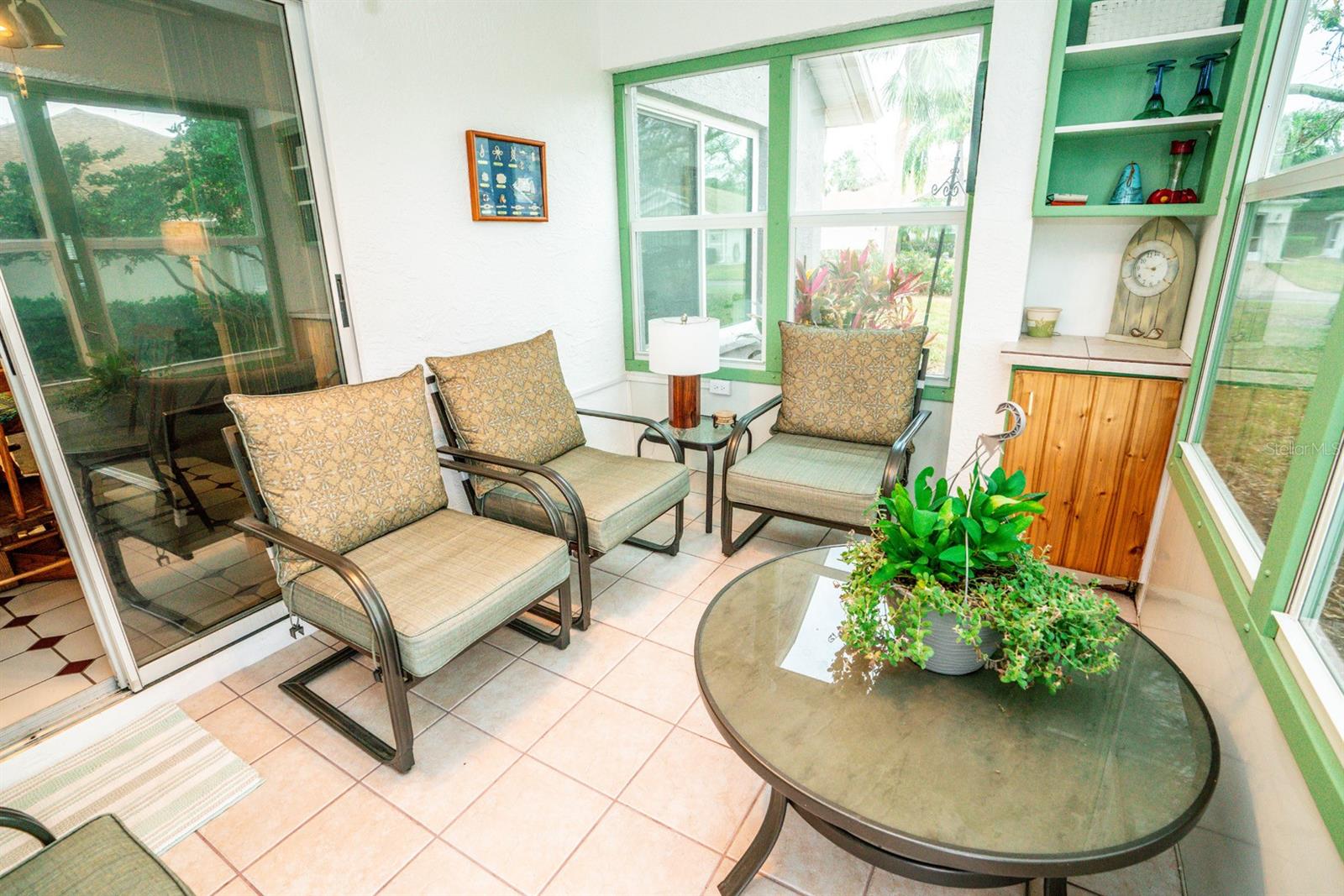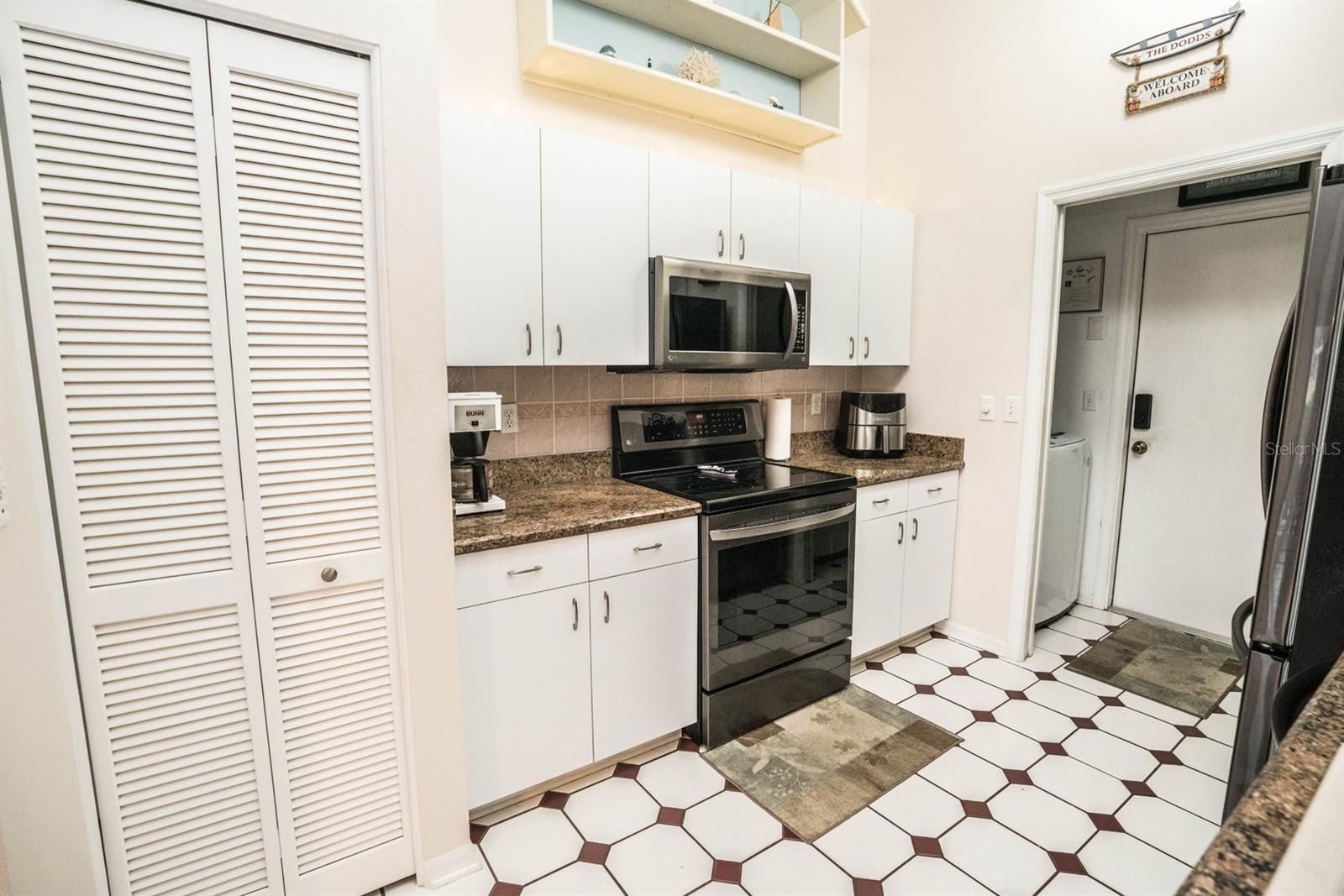 Beautifully updated 2-bedroom, 2-bath Yale Model with stunning water views, offering 1,291 sq. ft. of living space plus a 9x12 enclosed lanai overlooking a peaceful pond. The open floor plan with vaulted ceilings creates a spacious atmosphere perfect for entertaining family and friends. The large 20x18 living/dining room flows seamlessly, and the 14x13 master bedroom features a walk-in closet and a remodeled en-suite bath with dual sinks. Recent updates include Hurricane Windows, brand-new granite countertops in the kitchen, new carpeting throughout, and appliances that are just 3 years old, including a flat-top range, microwave, dishwasher, refrigerator, and disposal. The kitchen also offers a pantry for extra storage. A second refrigerator in the garage provides additional space for food storage. The laundry area includes a washer and dryer, and the 22x19 two-car garage comes with built-in cabinets for added convenience. Attic access with pull-down stairs offers even more storage options. This move-in ready home combines modern updates with a functional layout and picturesque water views for the perfect Florida lifestyle.