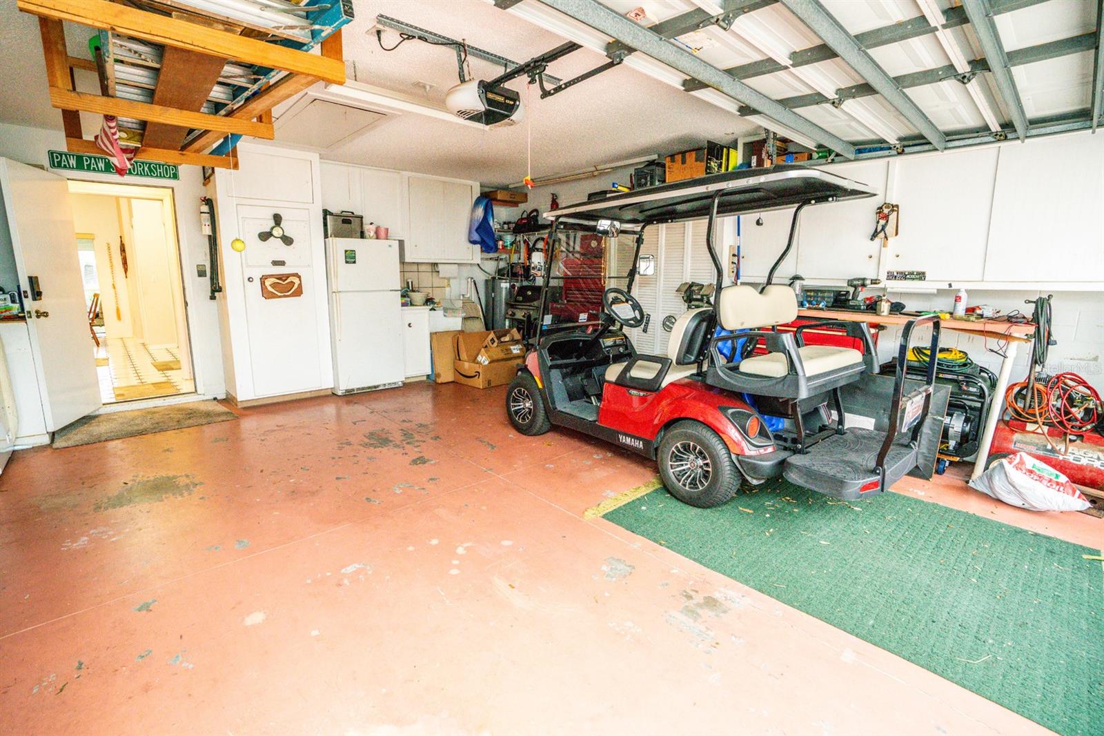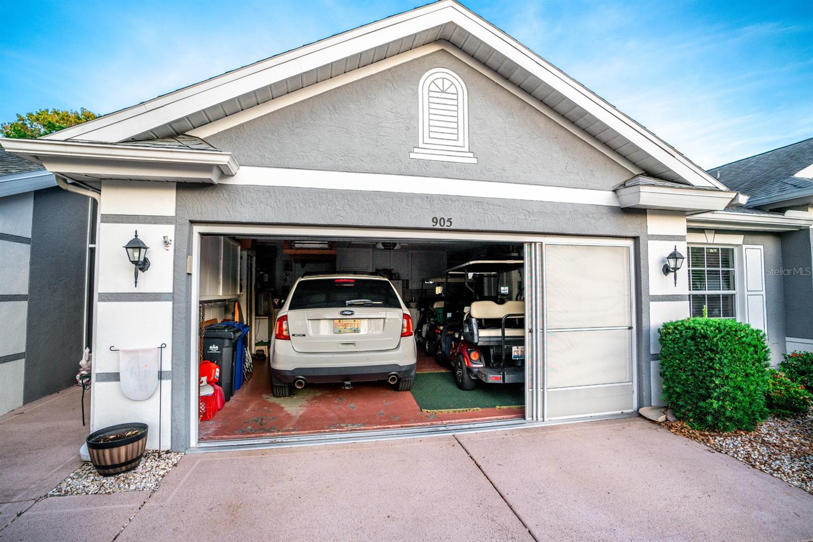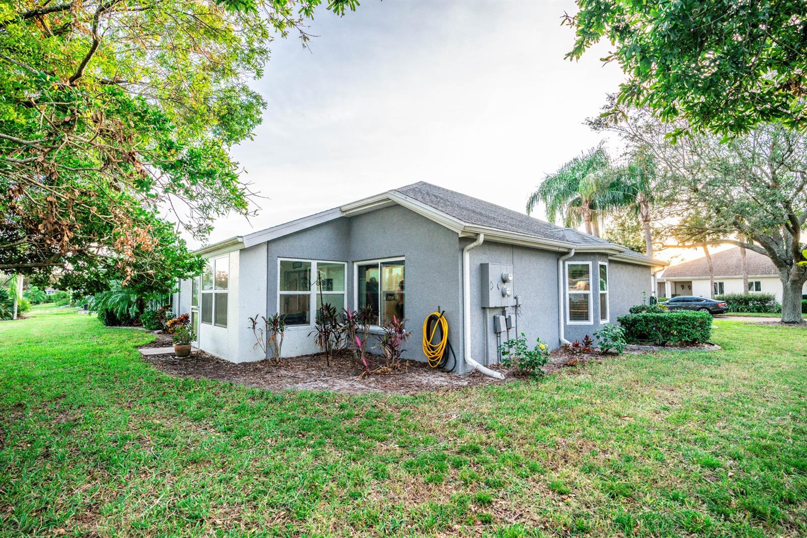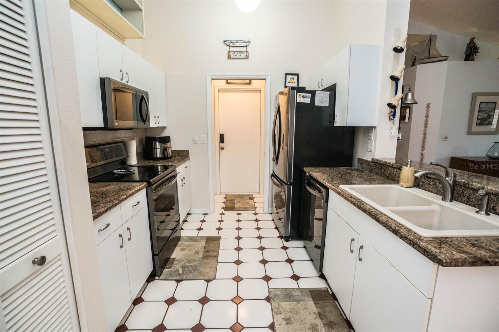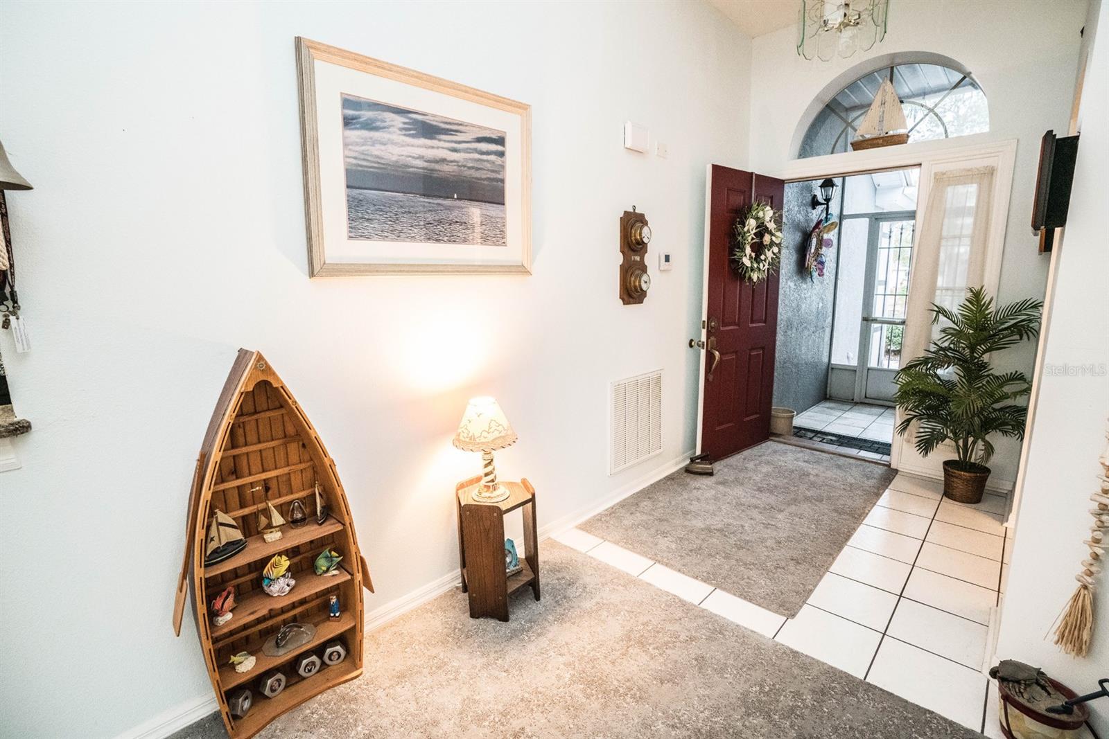 Beautifully updated 2-bedroom, 2-bath Yale Model with stunning water views, offering 1,291 sq. ft. of living space plus a 9x12 enclosed lanai overlooking a peaceful pond. The open floor plan with vaulted ceilings creates a spacious atmosphere perfect for entertaining family and friends. The large 20x18 living/dining room flows seamlessly, and the 14x13 master bedroom features a walk-in closet and a remodeled en-suite bath with dual sinks. Recent updates include Hurricane Windows, brand-new granite countertops in the kitchen, new carpeting throughout, and appliances that are just 3 years old, including a flat-top range, microwave, dishwasher, refrigerator, and disposal. The kitchen also offers a pantry for extra storage. A second refrigerator in the garage provides additional space for food storage. The laundry area includes a washer and dryer, and the 22x19 two-car garage comes with built-in cabinets for added convenience. Attic access with pull-down stairs offers even more storage options. This move-in ready home combines modern updates with a functional layout and picturesque water views for the perfect Florida lifestyle.