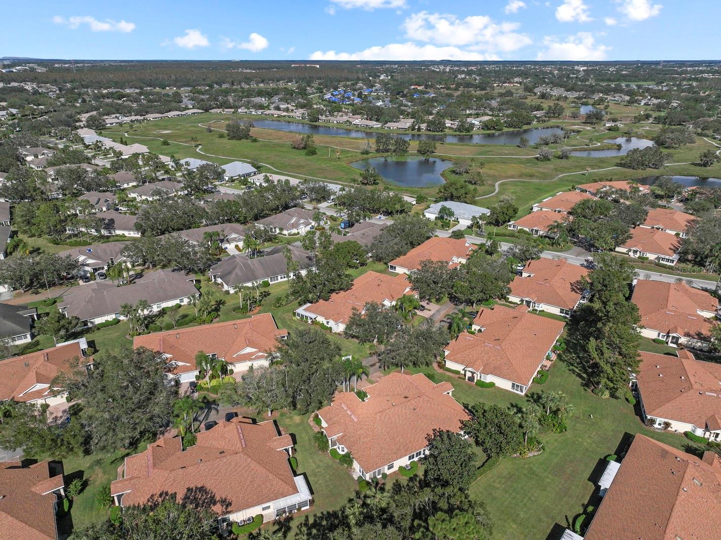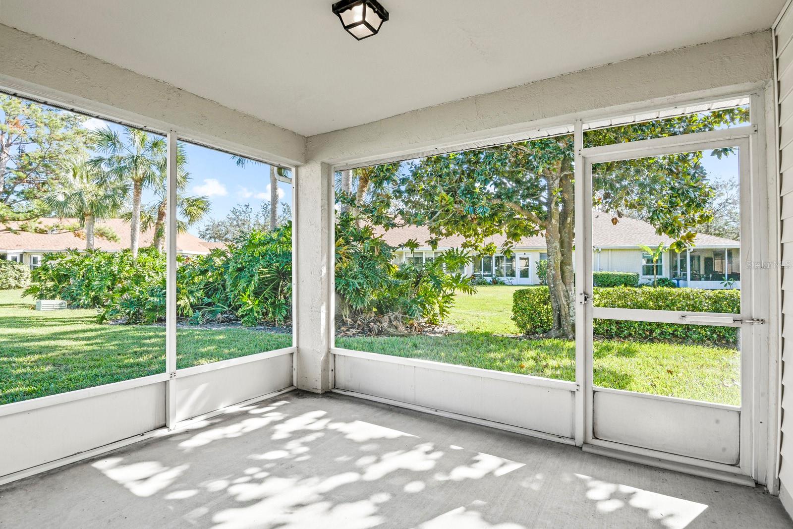 Welcome home to Sun City Center, the premier retirement community in the Sunshine State! This wonderful home has so much potential for your own sparkling touches, this 2-bedroom, 2-bathroom corner unit villa is perfectly designed for both comfort and style. As you step inside, you'll be greeted by an inviting open split floor plan with high ceilings that create a sense of spaciousness, complemented by abundant natural light streaming in through well-placed windows with elegant shades. The villa is equipped with a 2019 air conditioner, ensuring efficient cooling and comfort year-round. The large kitchen is a chef’s delight, offering plenty of cabinet space to store all your essentials, while the massive primary bedroom features an expansive closet perfect for all your wardrobe needs. Each room is equipped with ceiling fans for added comfort, and the villa includes an inside laundry room with a washer and dryer for ultimate convenience. Enjoy the Florida lifestyle on your newly screened-in back lanai, accessible through a sliding glass door from the main living area, creating a seamless transition from indoor to outdoor living. The home also features a long walkway leading to the welcoming front door and a spacious 2-car garage, providing ample storage and parking space. The monthly COA fee includes all the essentials for easy living: cable TV, internet, water, comprehensive pest control, exterior upkeep, community amenities, and on-site maintenance and security. Situated close to the Community Pool and South Clubhouse, you’ll have effortless access to top-notch amenities, engaging clubs, and fun activities within this exclusive 55+ gated neighborhood. Nestled in the centrally located between Bradenton and Tampa, you're just a short drive from Florida’s award-winning beaches, fantastic dining, and vibrant entertainment. Discover the perfect blend of relaxation and excitement in one of the country’s premier 55+ communities.