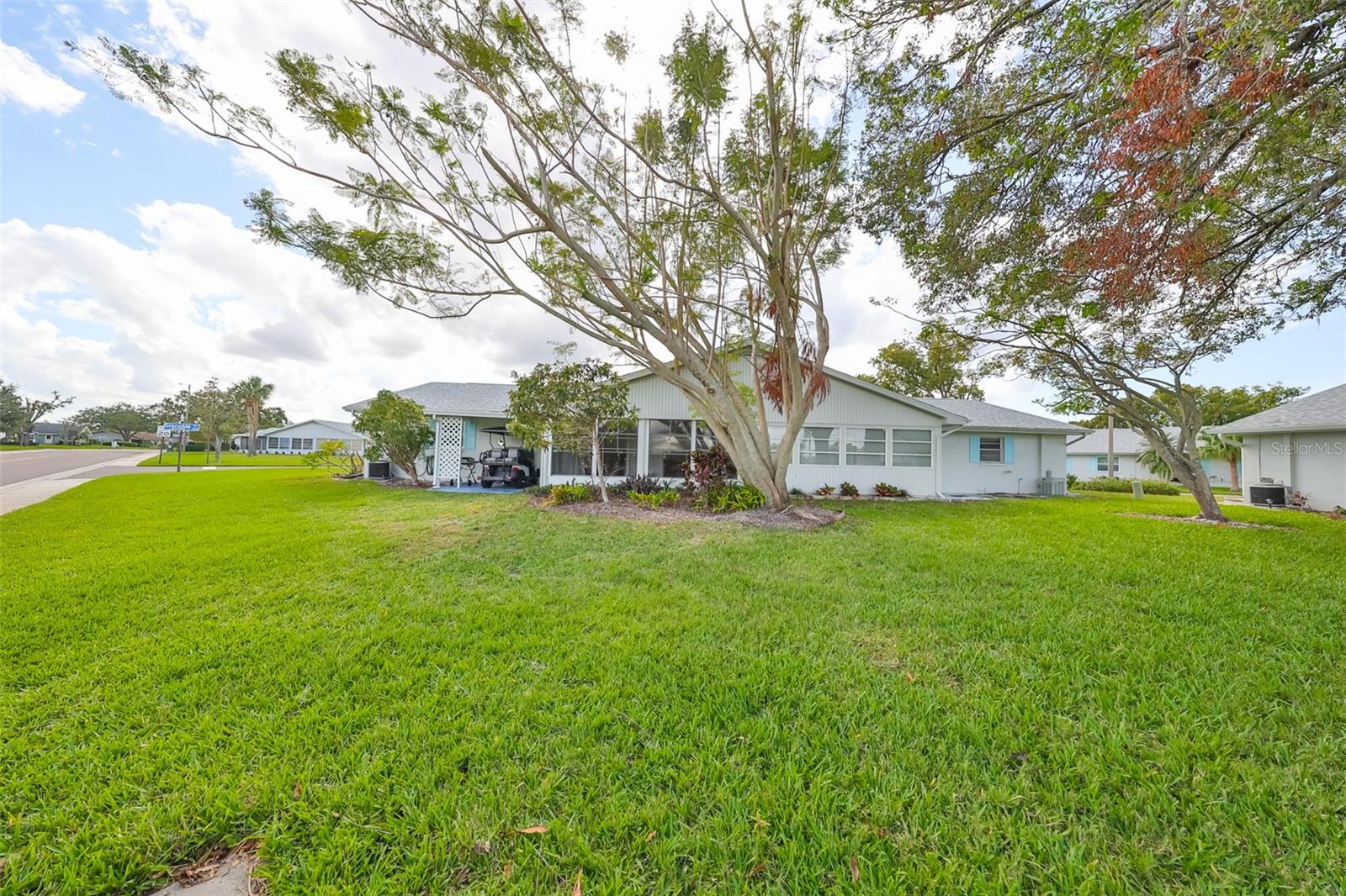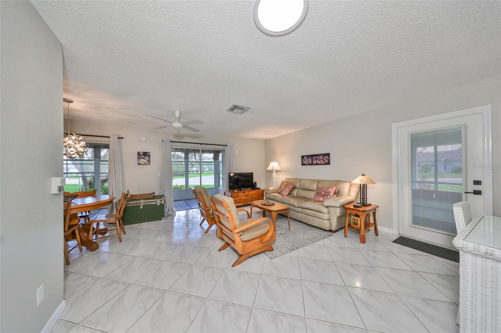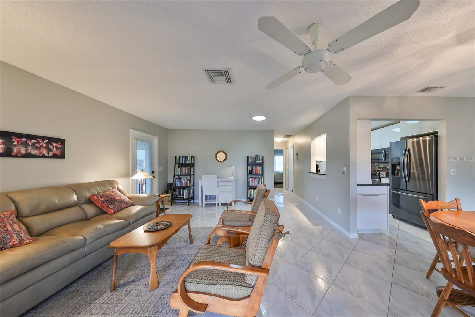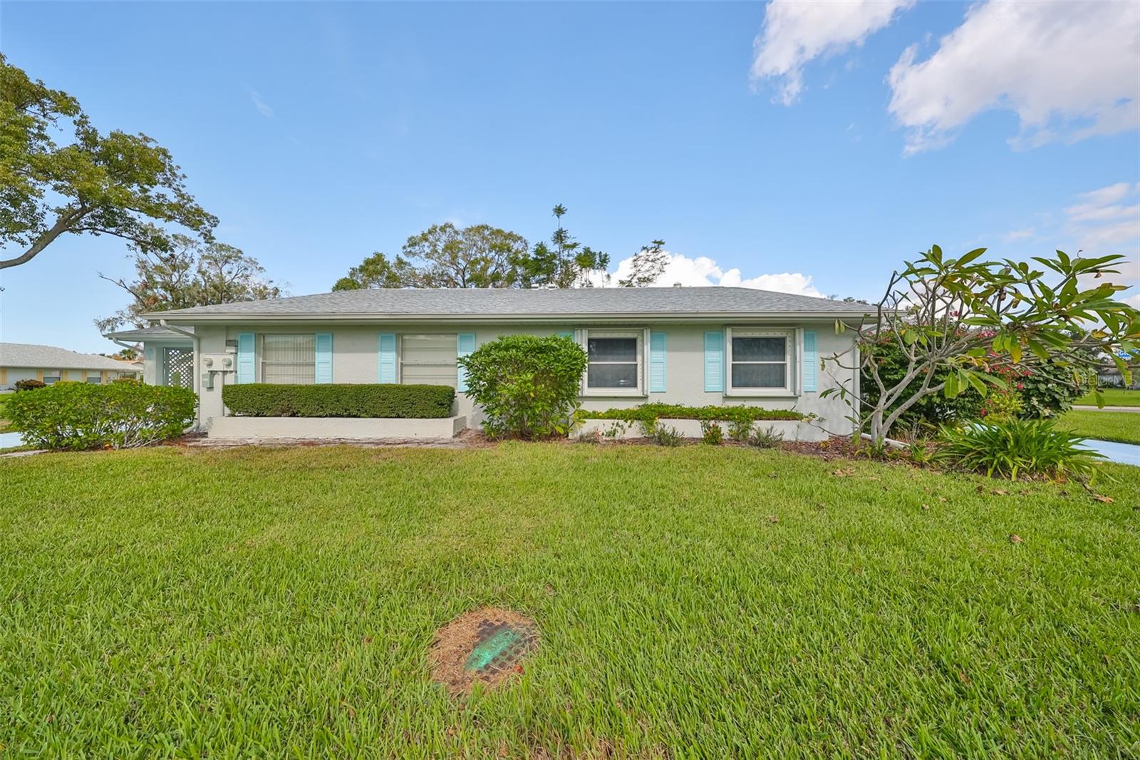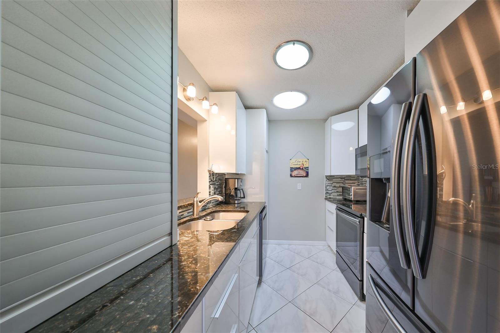 NO UPGRADES NEEDED, move right in to this beautiful Hampton model condo. You’ll love the 18” diagonal tile floors, a kitchen with granite counter tops, tile backsplash, updated modern cabinets, newer stainless appliances, solar tube for more light during the day. Primary bath has gorgeous tile shower with updated shower door, updated vanity with new light fixture and mirror, plus the guest bath has updated vanity and light fixture and comfort height toilets. For added protection there is the KPW Platinum plan in place and transferable to the new owners to cover minor plumbing issues and service on all the appliances and A/C. Recently installed Leaf Filter gutter protection for clog free rain gutters with a warranty transferable to new owners.. Updated double pane windows with accordion hurricane shutters for the sliding glass doors to the Florida room and the front windows. Exit out of the Florida room to a covered patio which is ideal for the gas grill and space to park your golf cart. The laundry/utility room has cabinets and a double sink and double doors for inside golf cart parking. Sun City Center, Voted the #1 Retirement Community in America by Realtor.com and Travel-Leisure Magazine. Plus Kings Point offers numerous choices for your lifestyle. Between the South Clubhouse and North Clubhouse and the 20/20 Fitness/Spa building, there is pretty much something to do whatever your interests/hobbies. Pools, Spas, Veteran's Theater Entertainment, bingo, arts and crafts, cards, woodshop, and fine dining, to name a few. AND, Kings Point is fully accessible in a golf cart 24 hours a day. Time for living the good life! Welcome to your new home.