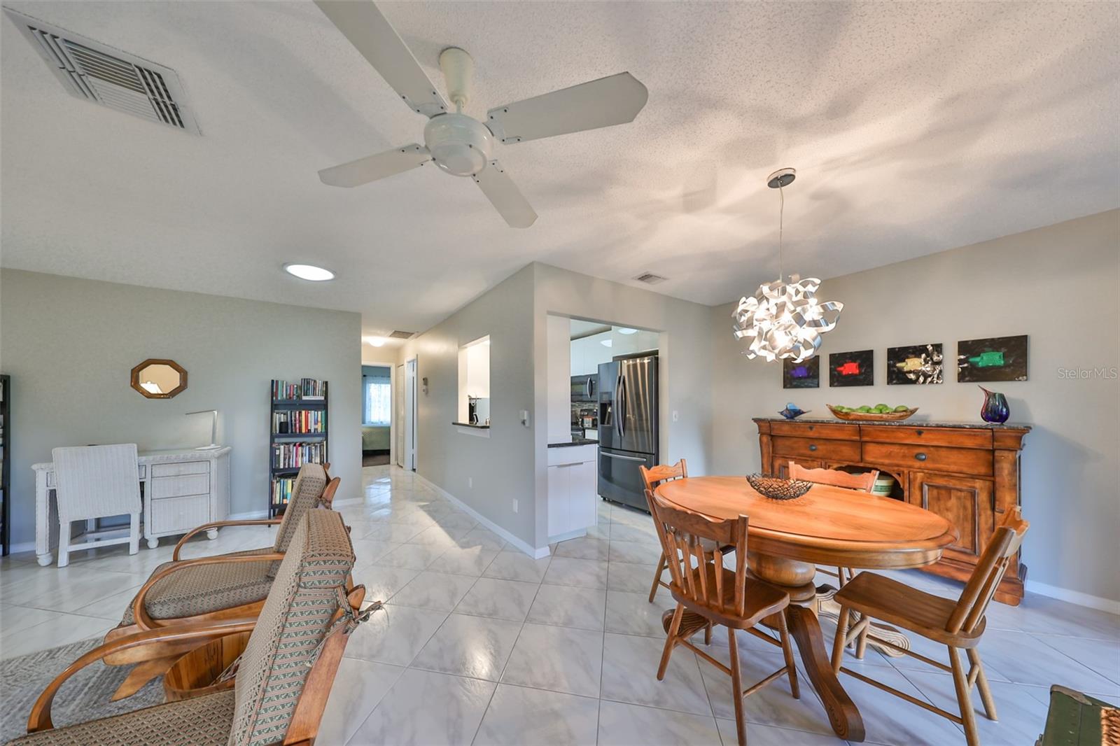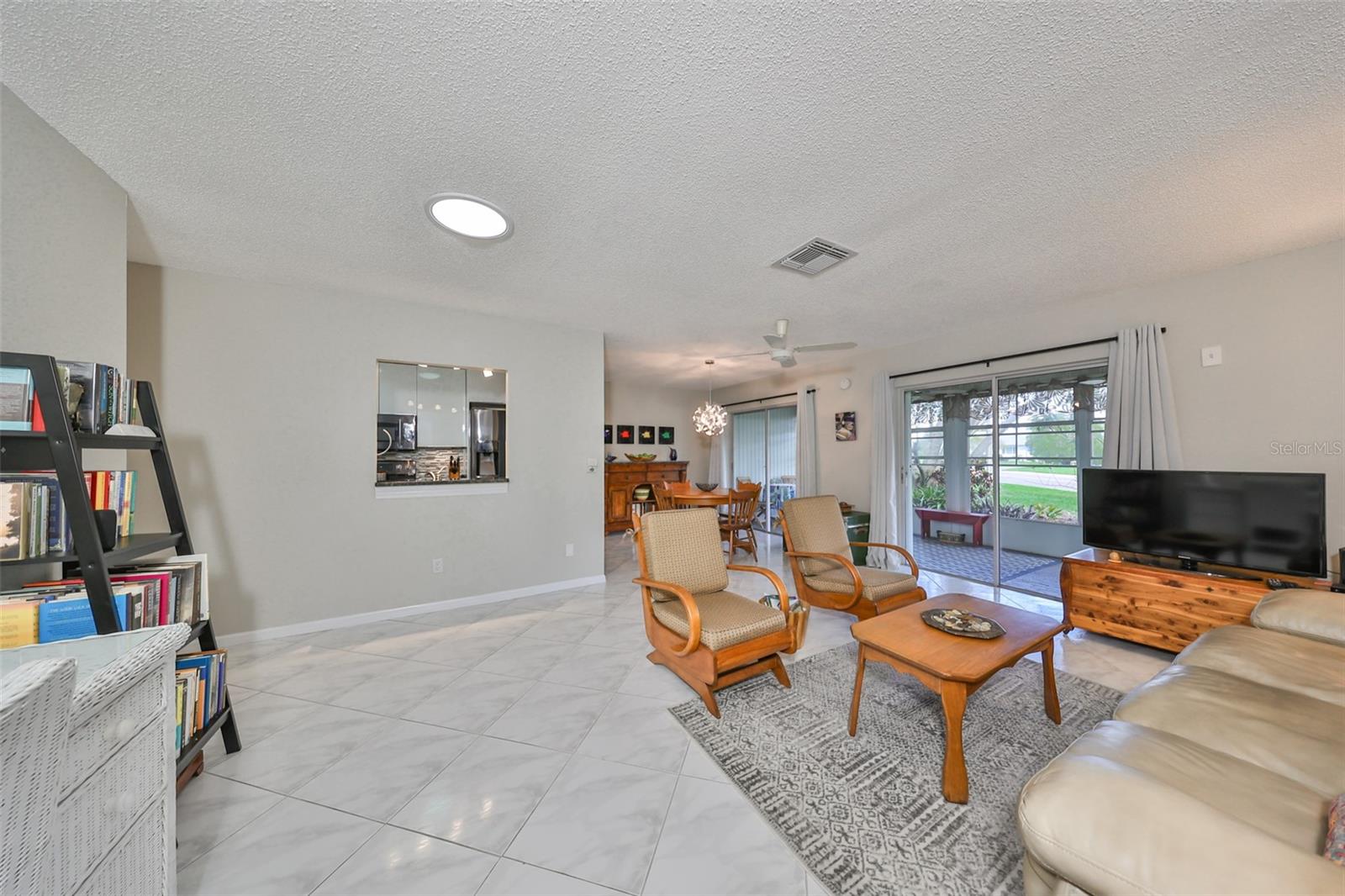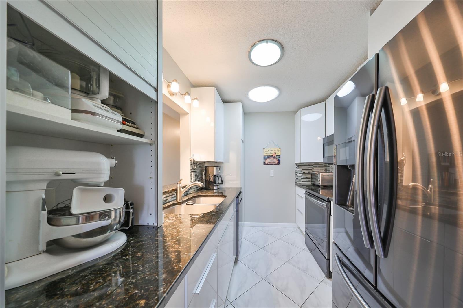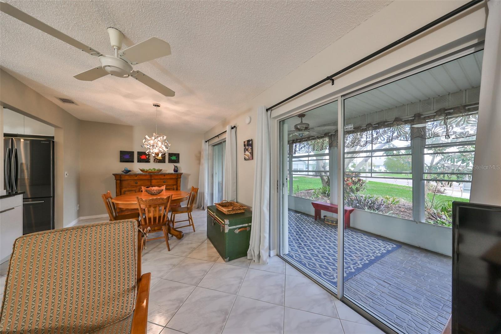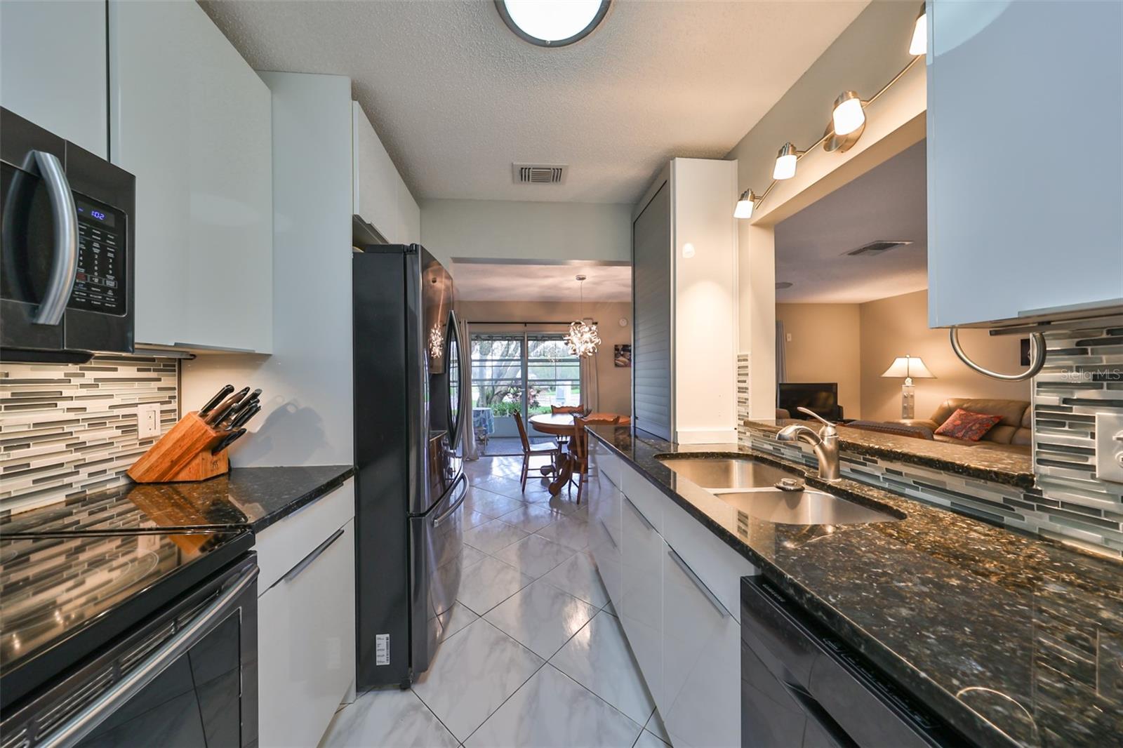 NO UPGRADES NEEDED, move right in to this beautiful Hampton model condo. You’ll love the 18” diagonal tile floors, a kitchen with granite counter tops, tile backsplash, updated modern cabinets, newer stainless appliances, solar tube for more light during the day. Primary bath has gorgeous tile shower with updated shower door, updated vanity with new light fixture and mirror, plus the guest bath has updated vanity and light fixture and comfort height toilets. For added protection there is the KPW Platinum plan in place and transferable to the new owners to cover minor plumbing issues and service on all the appliances and A/C. Recently installed Leaf Filter gutter protection for clog free rain gutters with a warranty transferable to new owners.. Updated double pane windows with accordion hurricane shutters for the sliding glass doors to the Florida room and the front windows. Exit out of the Florida room to a covered patio which is ideal for the gas grill and space to park your golf cart. The laundry/utility room has cabinets and a double sink and double doors for inside golf cart parking. Sun City Center, Voted the #1 Retirement Community in America by Realtor.com and Travel-Leisure Magazine. Plus Kings Point offers numerous choices for your lifestyle. Between the South Clubhouse and North Clubhouse and the 20/20 Fitness/Spa building, there is pretty much something to do whatever your interests/hobbies. Pools, Spas, Veteran's Theater Entertainment, bingo, arts and crafts, cards, woodshop, and fine dining, to name a few. AND, Kings Point is fully accessible in a golf cart 24 hours a day. Time for living the good life! Welcome to your new home.