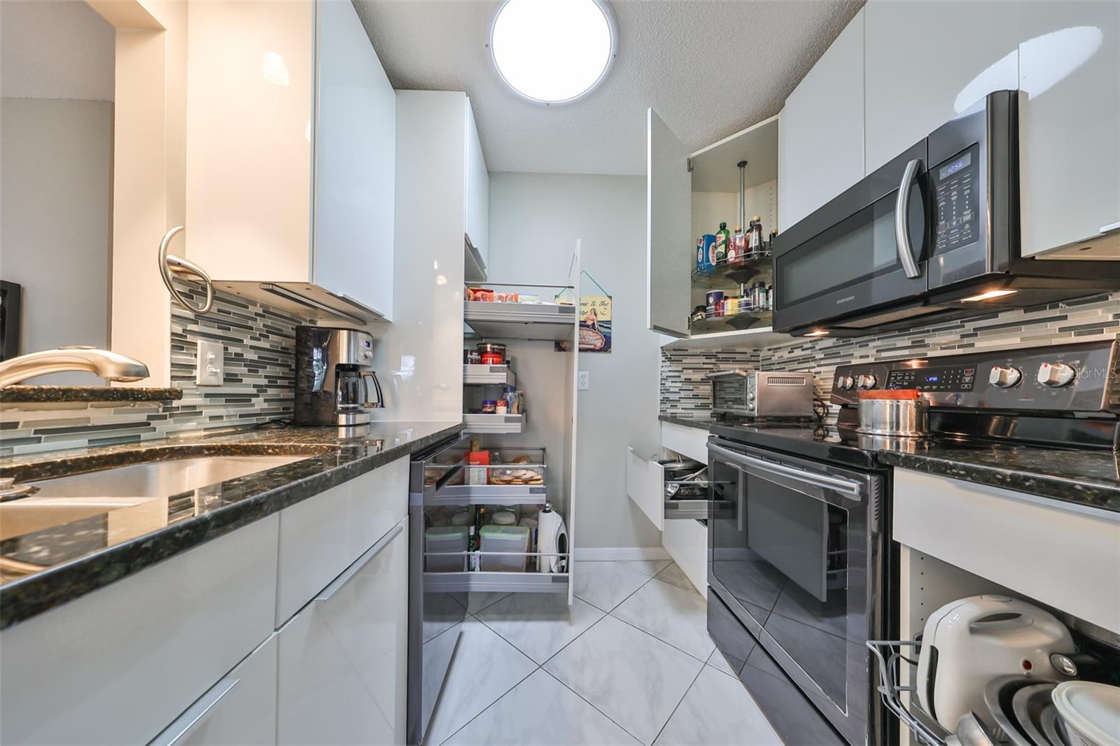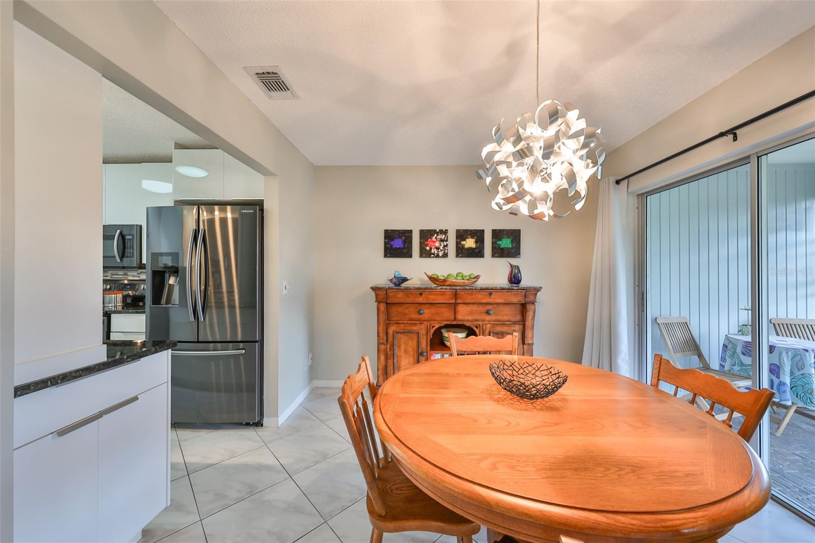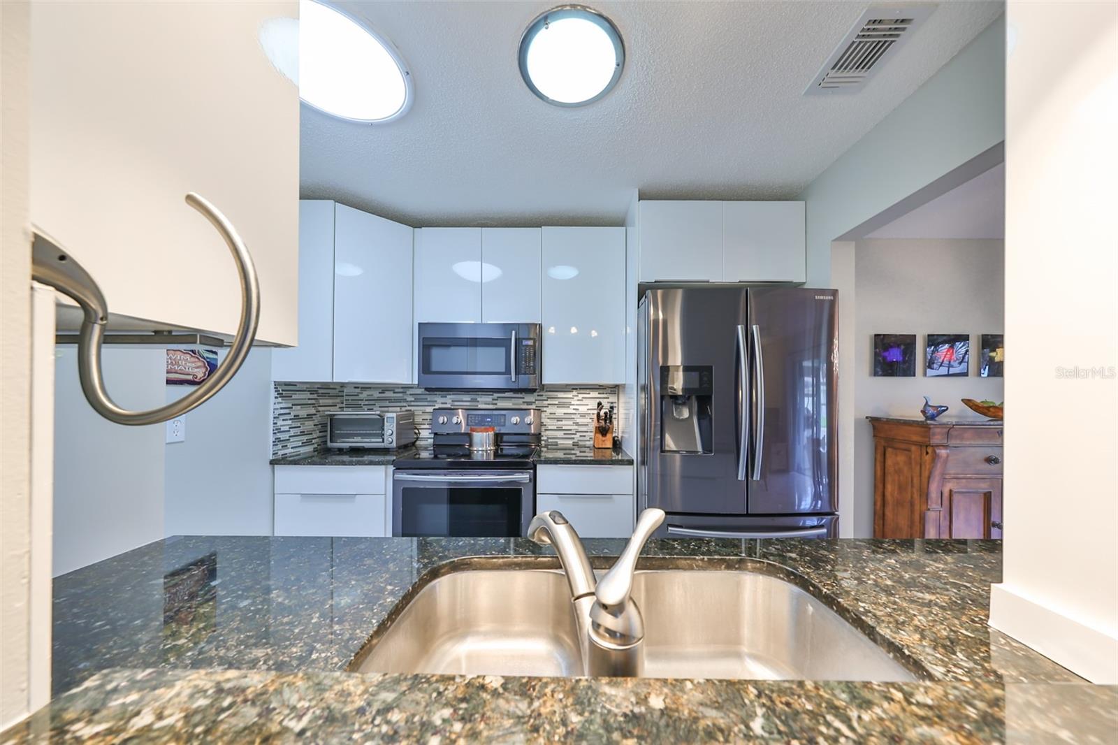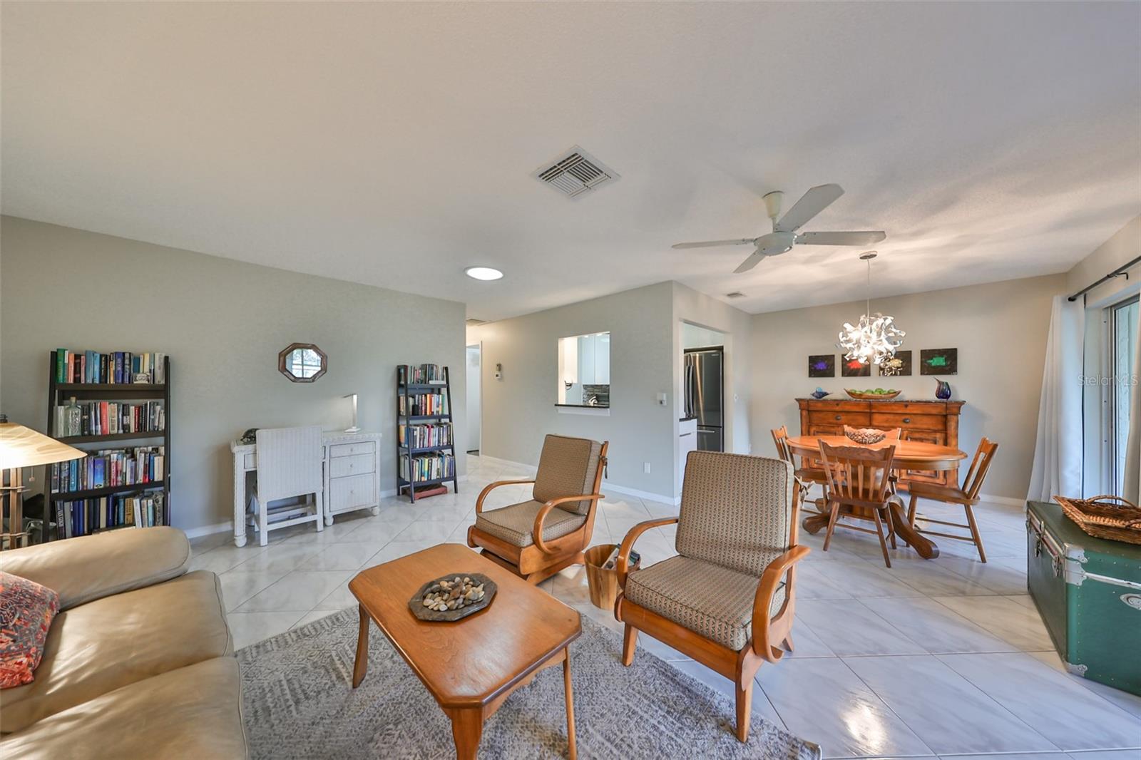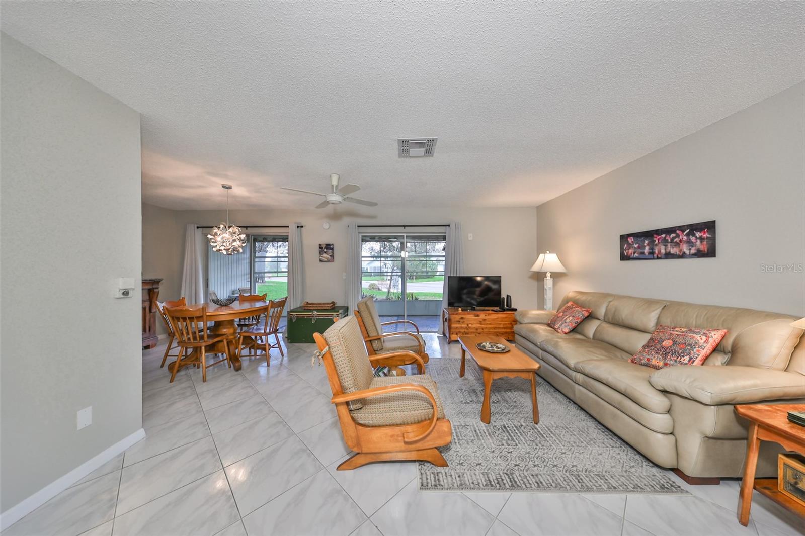 NO UPGRADES NEEDED, move right in to this beautiful Hampton model condo. You’ll love the 18” diagonal tile floors, a kitchen with granite counter tops, tile backsplash, updated modern cabinets, newer stainless appliances, solar tube for more light during the day. Primary bath has gorgeous tile shower with updated shower door, updated vanity with new light fixture and mirror, plus the guest bath has updated vanity and light fixture and comfort height toilets. For added protection there is the KPW Platinum plan in place and transferable to the new owners to cover minor plumbing issues and service on all the appliances and A/C. Recently installed Leaf Filter gutter protection for clog free rain gutters with a warranty transferable to new owners.. Updated double pane windows with accordion hurricane shutters for the sliding glass doors to the Florida room and the front windows. Exit out of the Florida room to a covered patio which is ideal for the gas grill and space to park your golf cart. The laundry/utility room has cabinets and a double sink and double doors for inside golf cart parking. Sun City Center, Voted the #1 Retirement Community in America by Realtor.com and Travel-Leisure Magazine. Plus Kings Point offers numerous choices for your lifestyle. Between the South Clubhouse and North Clubhouse and the 20/20 Fitness/Spa building, there is pretty much something to do whatever your interests/hobbies. Pools, Spas, Veteran's Theater Entertainment, bingo, arts and crafts, cards, woodshop, and fine dining, to name a few. AND, Kings Point is fully accessible in a golf cart 24 hours a day. Time for living the good life! Welcome to your new home.