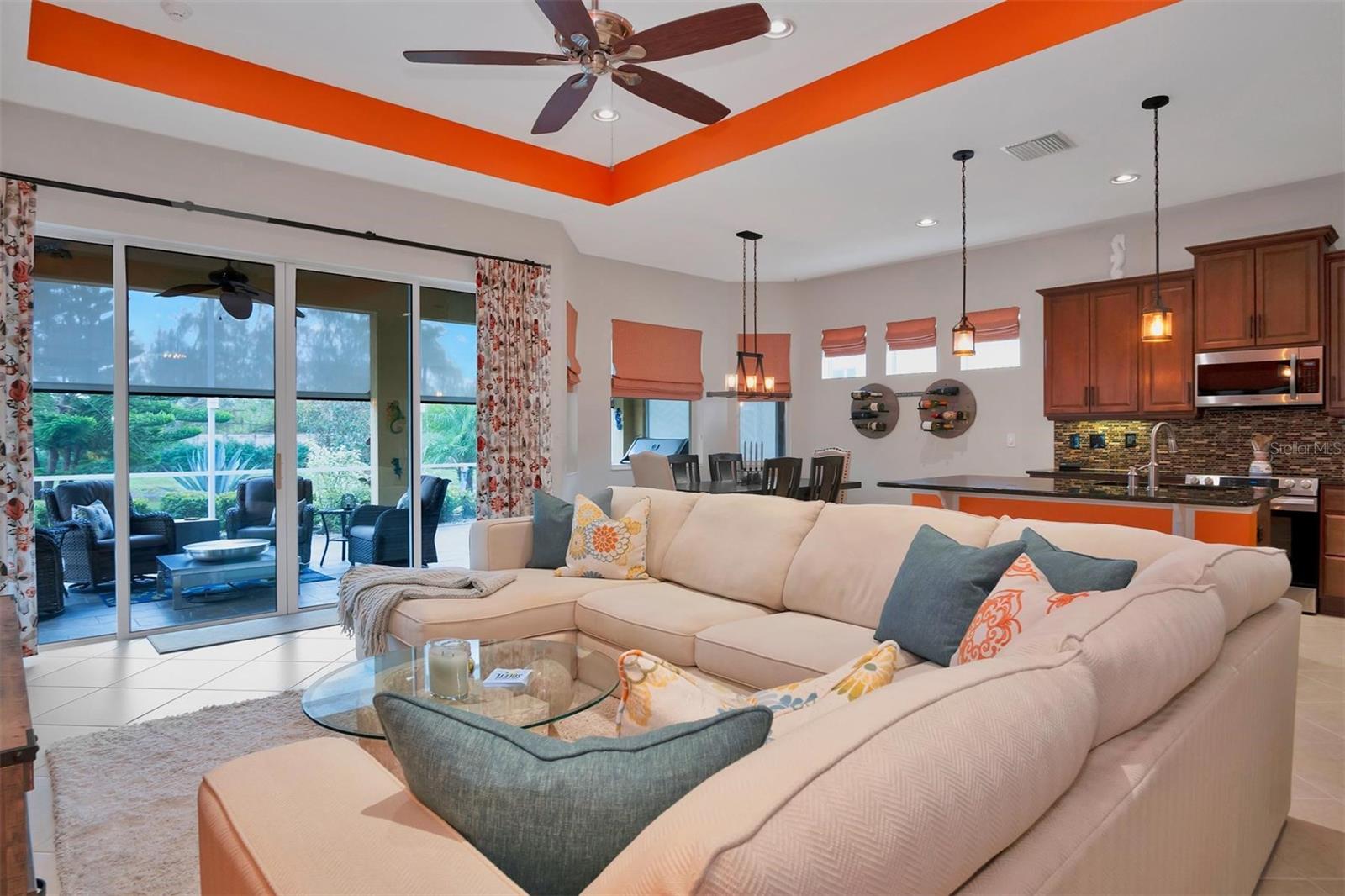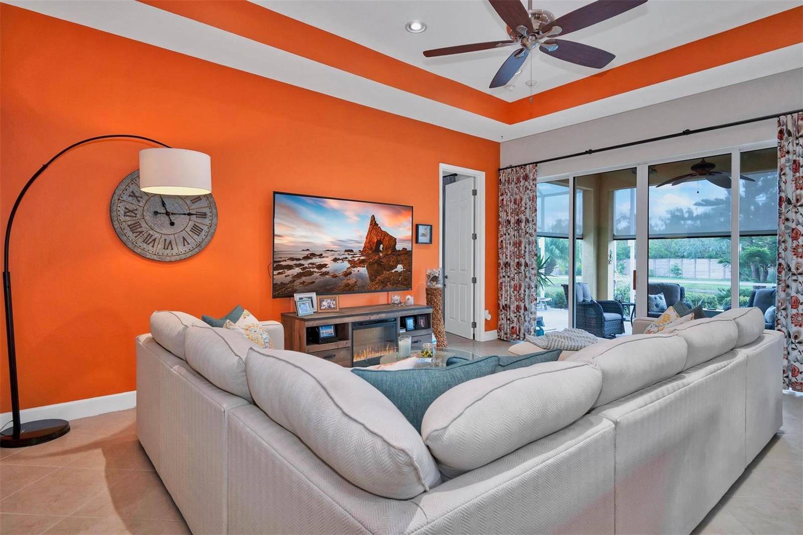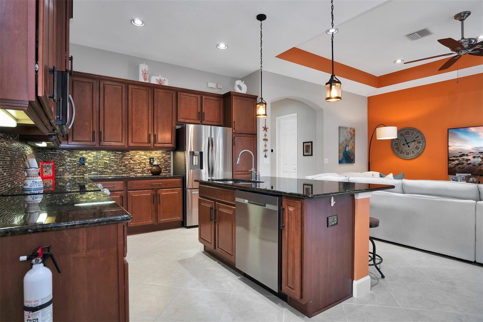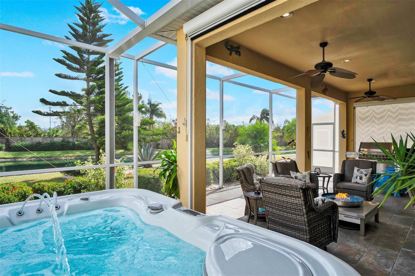 HIGHLY MOTIVATED SELLER willing to sell as Turn Key.. Put this home as a must see. This St James model HAS BEEN METICULOUSLY Maintained, and features MANY UPGRADES INCLUDING : An extended 238 sq foot rear lanai, Attractive slate looking tile covering in the front screened in porch and the rear lanai, Top of the line hot tub, lighting and fixtures, the Main living areas were recently painted, Newer appliances, Hunter ceiling fans, Custom drapery for all windows, Plenty of overhead garage storage space. You have to see for yourself! Upon arriving the manicured landscaping, custom painted driveway add to the curb appeal. As you enter the home YOU WILL BE GREETED by a large open floor plan with high ceilings, this HOME has 2 bedrooms and a large office/den that could be converted into a 3rd bedroom! A gourmet kitchen featuring new Samsung stainless steel appliances, granite counter tops, large island with bar seating and cabinets for plenty of storage. Open to the kitchen you will find a large dining and living area which is great for entertaining or to just comfortable living! The large owners suite offers plenty of natural light, views of the beautiful pond and fountains and a huge en-suite bathroom. This en-suite bathroom has granite counter tops, dual sinks, a vanity sitting area, large walk-in closet, private water closet, and a large walk-in shower. Providing the perfect amount of privacy, a pocket door entry way leads your guest to their own suite and guest bathroom. The laundry features, significant cabinetry space and granite counter tops for all your folding needs. Onto one of the outstanding features this home is the extended screened in lanai with unique privacy screens that not only give you ample amount of privacy, but keeps the rain out . Sit back, relax enjoy the jetted hot tub and water views . Enjoy exclusive membership to Club Links Renaissance club. The 4200 square foot Club Renaissance with Spa Celeste, state-of-the-art fitness center, indoor walking track, beautiful resort style heated outdoor pool, the amenities within and exceptional dining, lounge and pro shop. It is just a short drive to airports, shopping/outlet malls, beaches, theme parks, and dining. MUST SEE and you will not be disappointed.
