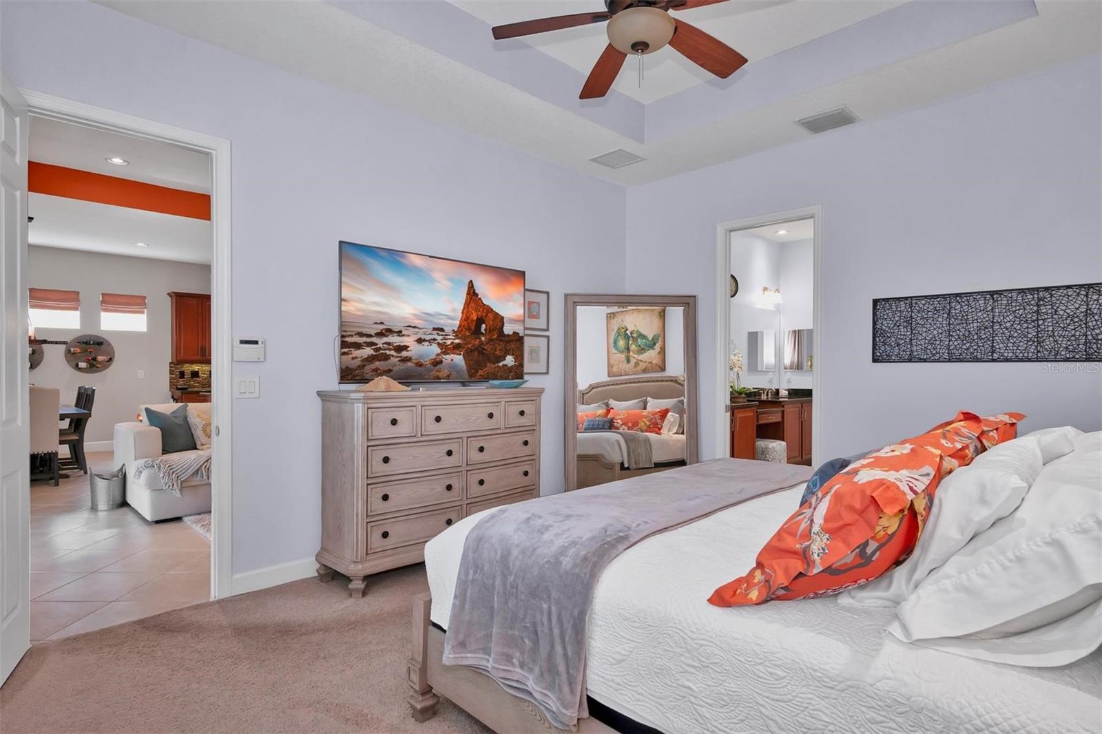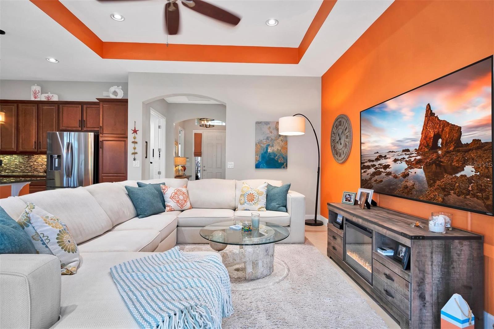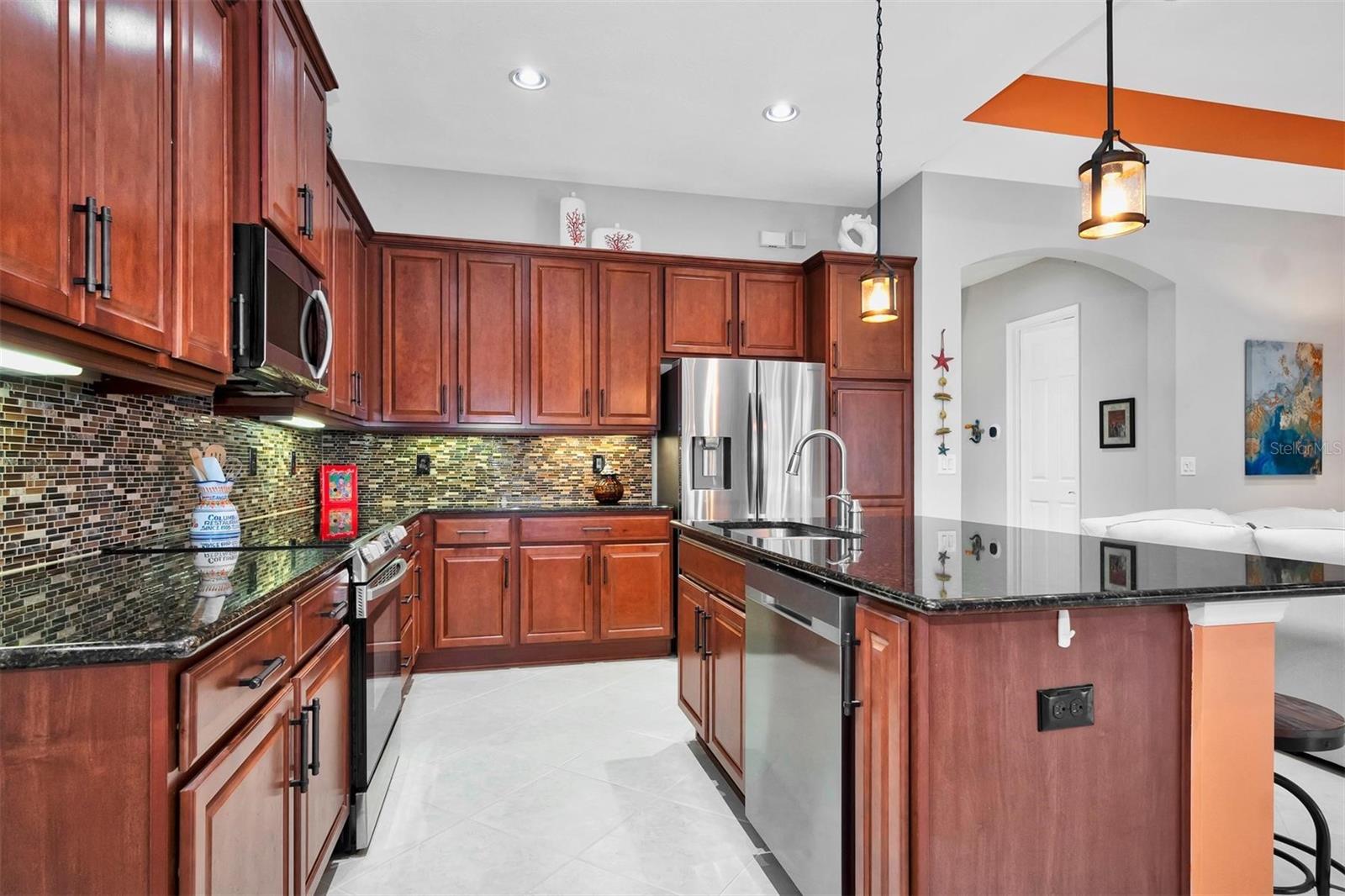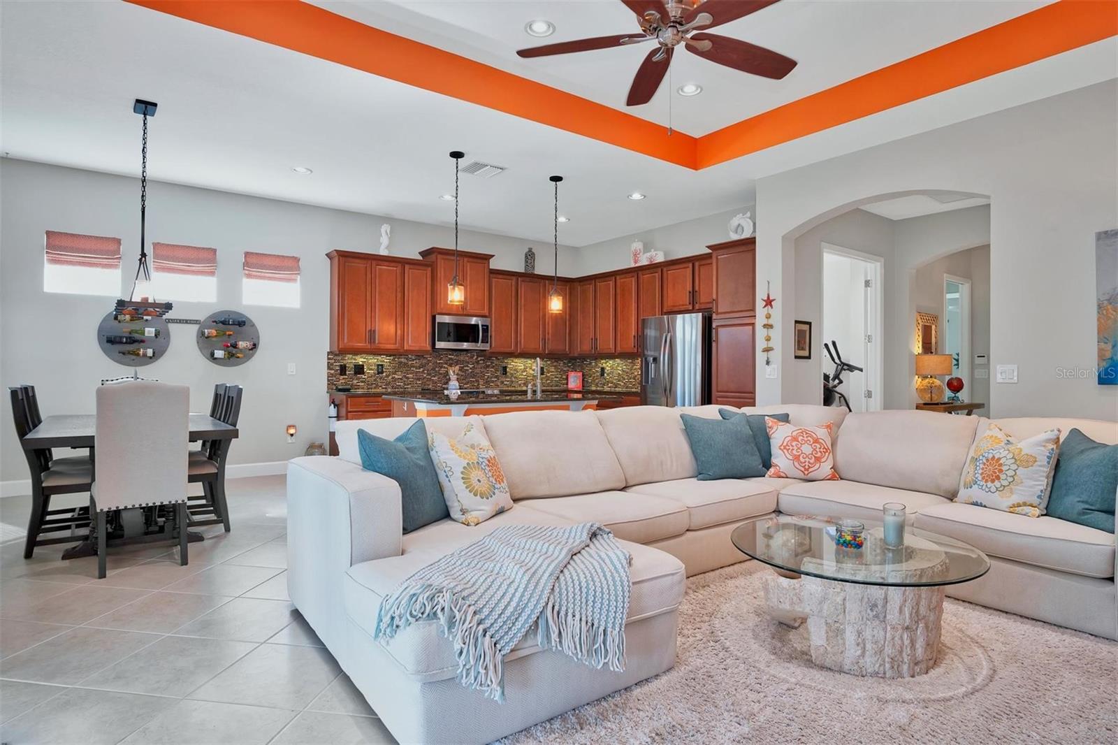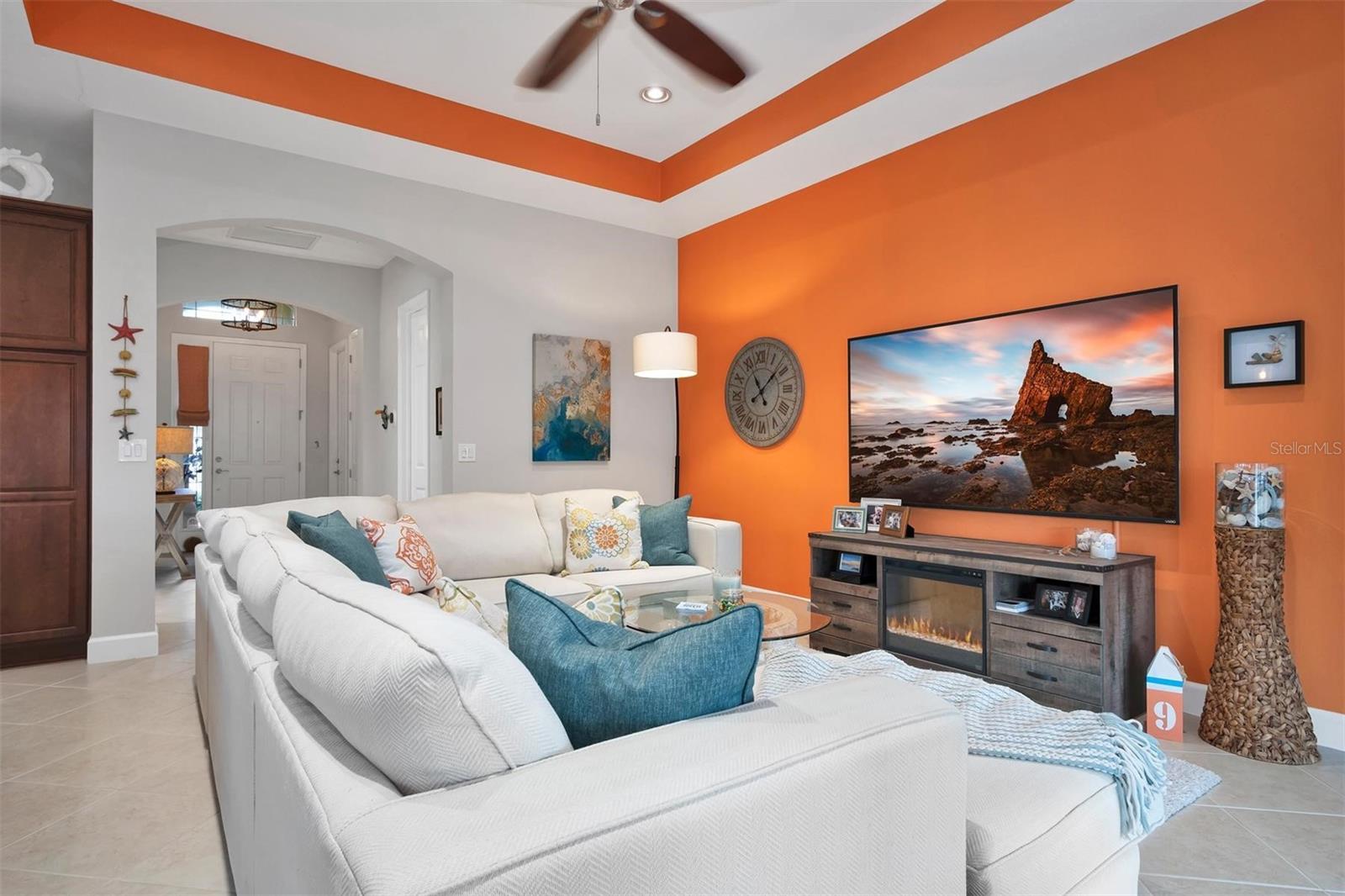 HIGHLY MOTIVATED SELLER willing to sell as Turn Key.. Put this home as a must see. This St James model HAS BEEN METICULOUSLY Maintained, and features MANY UPGRADES INCLUDING : An extended 238 sq foot rear lanai, Attractive slate looking tile covering in the front screened in porch and the rear lanai, Top of the line hot tub, lighting and fixtures, the Main living areas were recently painted, Newer appliances, Hunter ceiling fans, Custom drapery for all windows, Plenty of overhead garage storage space. You have to see for yourself! Upon arriving the manicured landscaping, custom painted driveway add to the curb appeal. As you enter the home YOU WILL BE GREETED by a large open floor plan with high ceilings, this HOME has 2 bedrooms and a large office/den that could be converted into a 3rd bedroom! A gourmet kitchen featuring new Samsung stainless steel appliances, granite counter tops, large island with bar seating and cabinets for plenty of storage. Open to the kitchen you will find a large dining and living area which is great for entertaining or to just comfortable living! The large owners suite offers plenty of natural light, views of the beautiful pond and fountains and a huge en-suite bathroom. This en-suite bathroom has granite counter tops, dual sinks, a vanity sitting area, large walk-in closet, private water closet, and a large walk-in shower. Providing the perfect amount of privacy, a pocket door entry way leads your guest to their own suite and guest bathroom. The laundry features, significant cabinetry space and granite counter tops for all your folding needs. Onto one of the outstanding features this home is the extended screened in lanai with unique privacy screens that not only give you ample amount of privacy, but keeps the rain out . Sit back, relax enjoy the jetted hot tub and water views . Enjoy exclusive membership to Club Links Renaissance club. The 4200 square foot Club Renaissance with Spa Celeste, state-of-the-art fitness center, indoor walking track, beautiful resort style heated outdoor pool, the amenities within and exceptional dining, lounge and pro shop. It is just a short drive to airports, shopping/outlet malls, beaches, theme parks, and dining. MUST SEE and you will not be disappointed.