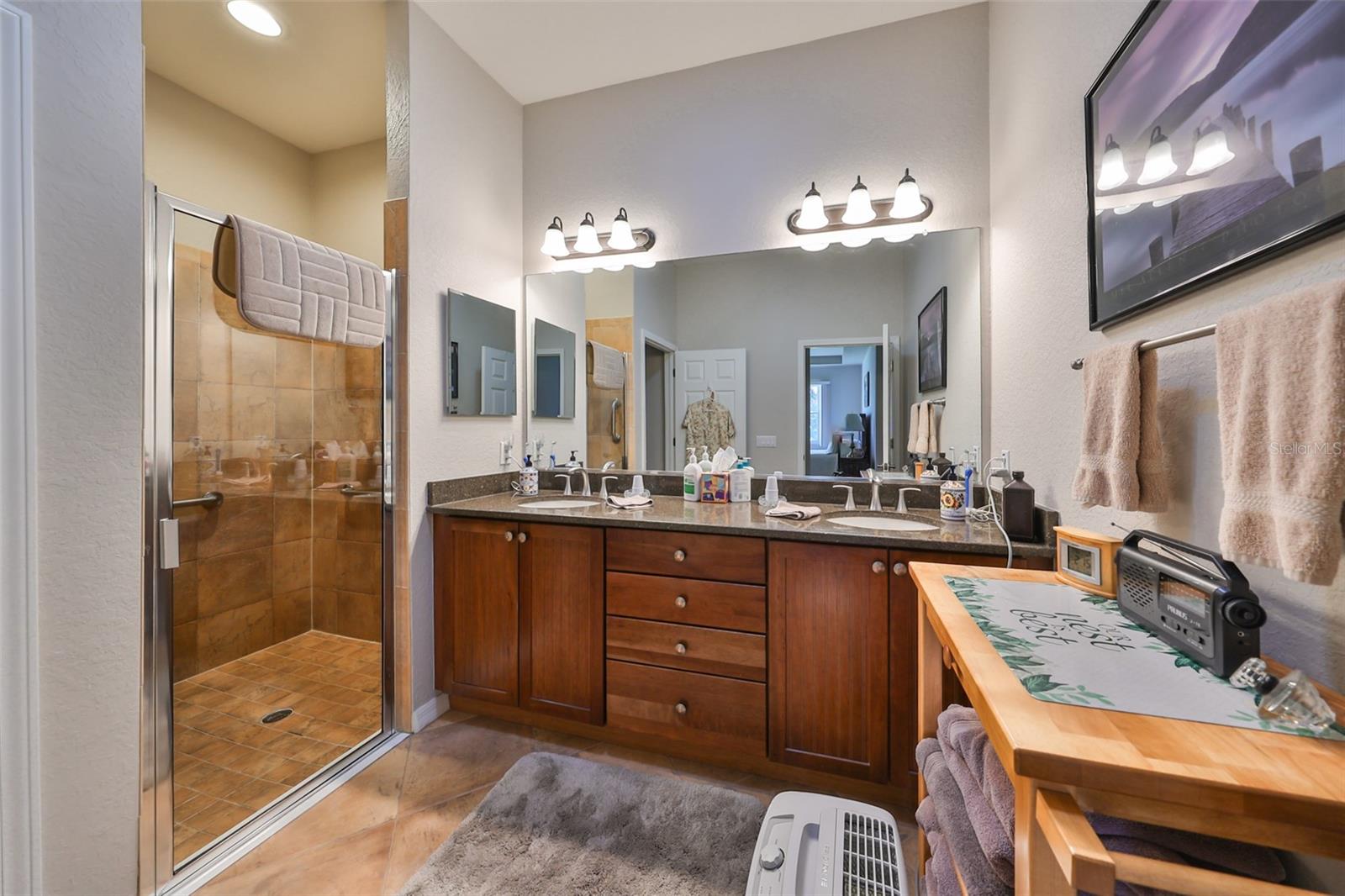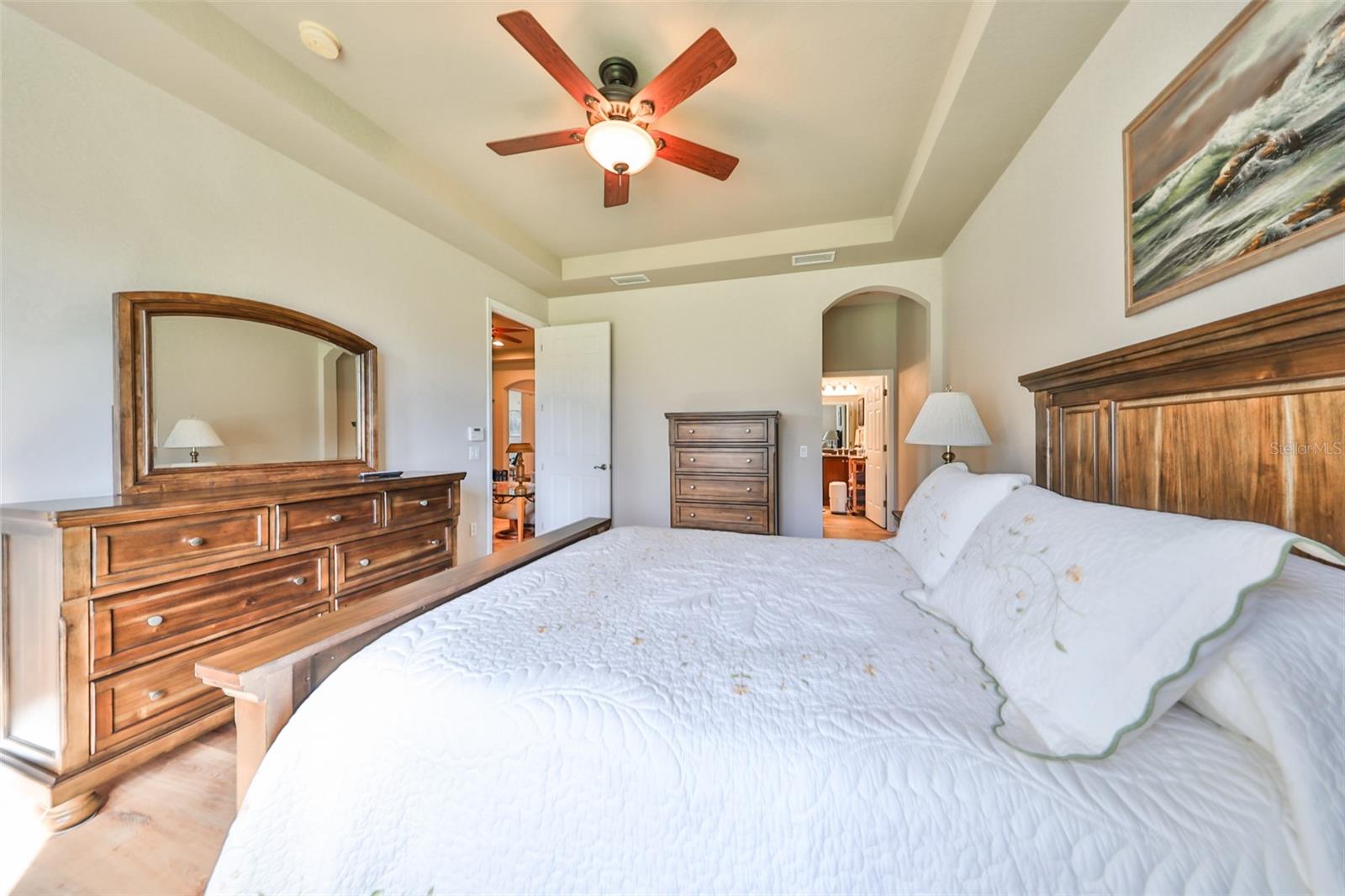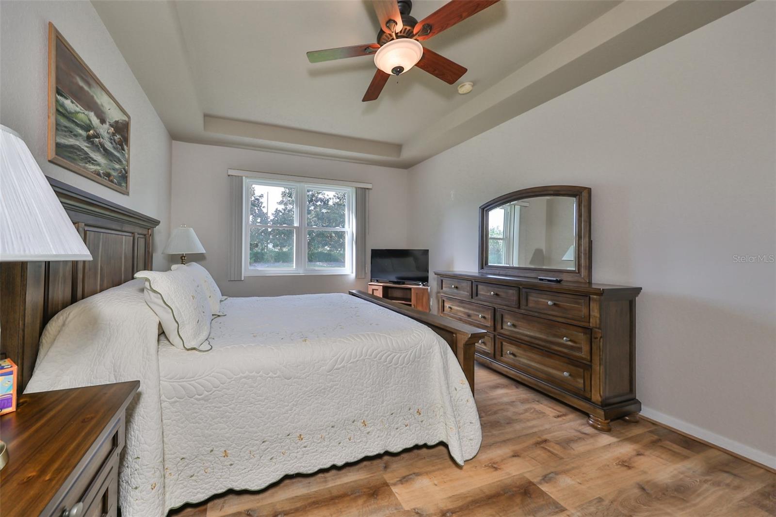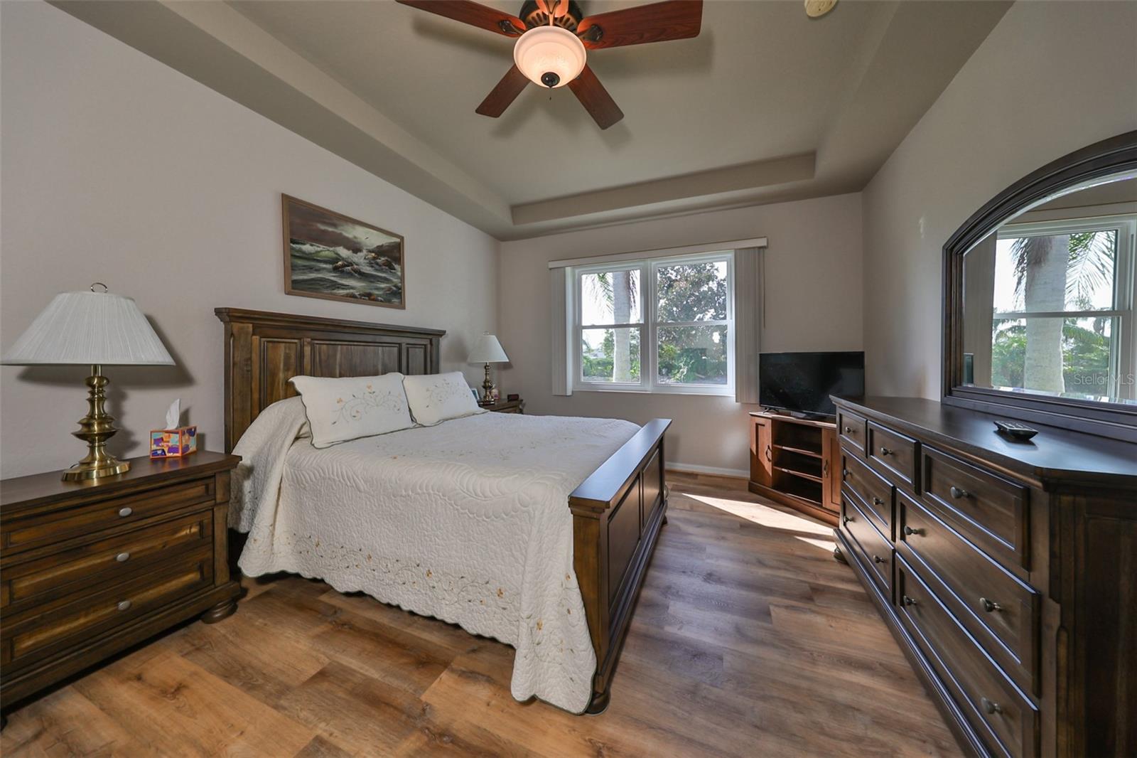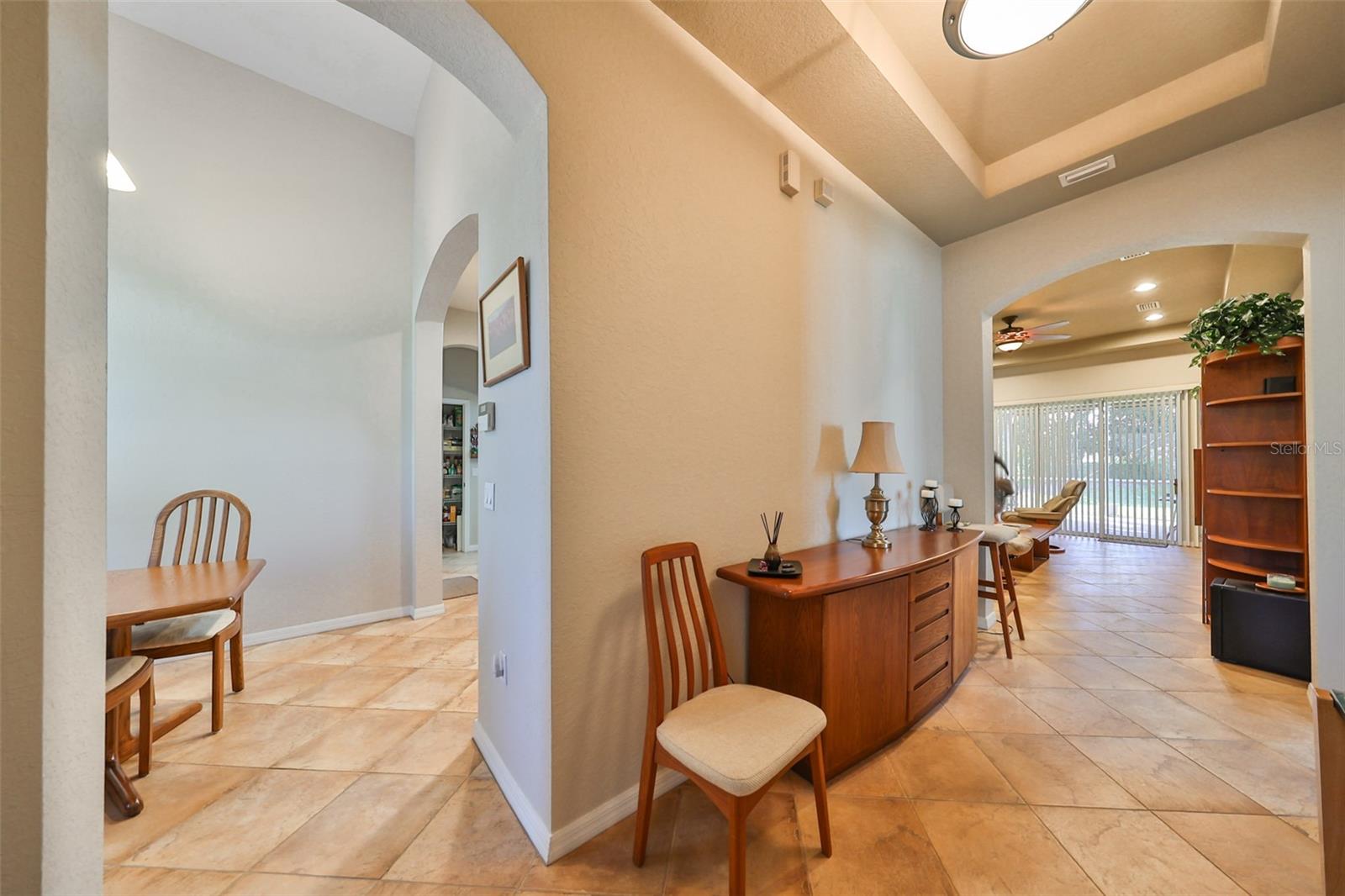 Welcome to this stunning Chelsea Model condo, gracefully nestled in the desirable 55+ gated Kings Point community. This residence offers a perfect blend of charm, elegance, and functionality, featuring 3 bedrooms and 2 bathrooms across 1,630 sq. ft. of thoughtfully designed, maintenance-free living space. Approaching the home, you’ll be welcomed by a gated brick courtyard that seamlessly connects to a two-car split garage, creating an inviting entryway. The private, walled-in courtyard is an ideal spot for morning coffee or friendly conversations with neighbors, while a screened-in front porch provides additional space to enjoy the serene surroundings. Step inside to be greeted by soaring tray ceilings and stunning earth-tone tile flooring, which flows through the foyer, kitchen, dining room, and living areas. The bright, open floor plan is perfect for both entertaining and everyday living. The living room, accented by elegant tray ceilings and abundant natural light, opens into a refined kitchen that will delight any chef. With upgraded 42-inch Beadboard wooden cabinets resembling shiplap, stone countertops, and stainless steel appliances, the kitchen seamlessly connects to the family room for easy gatherings. The primary suite offers a luxurious retreat with tray ceilings, a ceiling fan, and a spacious walk-in closet. The spa-like en-suite bathroom features dual vanities and a beautifully tiled, walk-in shower with a built-in seat. The split bedroom layout ensures privacy for all, with the versatile third bedroom functioning as a perfect office, den, or guest room. Both bathrooms are elegantly designed with matching earth-tone tile flooring, while additional bedrooms feature luxury vinyl flooring and ceiling fans. Recent updates include brand-new luxury vinyl flooring (2022) and a new washer and dryer (2024). Double-pane windows and architectural features such as arches and tray ceilings add sophistication. Enjoy energy efficiency with gas-powered heating, a gas dryer, and a hot water heater. The family room leads to a three-panel sliding glass door that opens onto a screened-in lanai, overlooking a lush, private backyard—a perfect setting for relaxation or outdoor gatherings. The beautiful brown leather couch in the den can also stay, adding both comfort and charm to your new space. Don’t miss this opportunity for luxury living, complete with these fabulous extras! Kings Point residents enjoy an active lifestyle with amenities that include two clubhouses, five swimming pools, multiple pickleball and tennis courts, fitness centers, and numerous clubs and activities. This golf cart-friendly community offers convenient access to Tampa, Sarasota, Gulf Coast beaches, and popular attractions like Disney World. This move-in-ready home is a rare find, offering modern amenities in a picturesque, gated setting. Schedule your showing today and discover the best of Florida living in this charming, well-appointed condo.