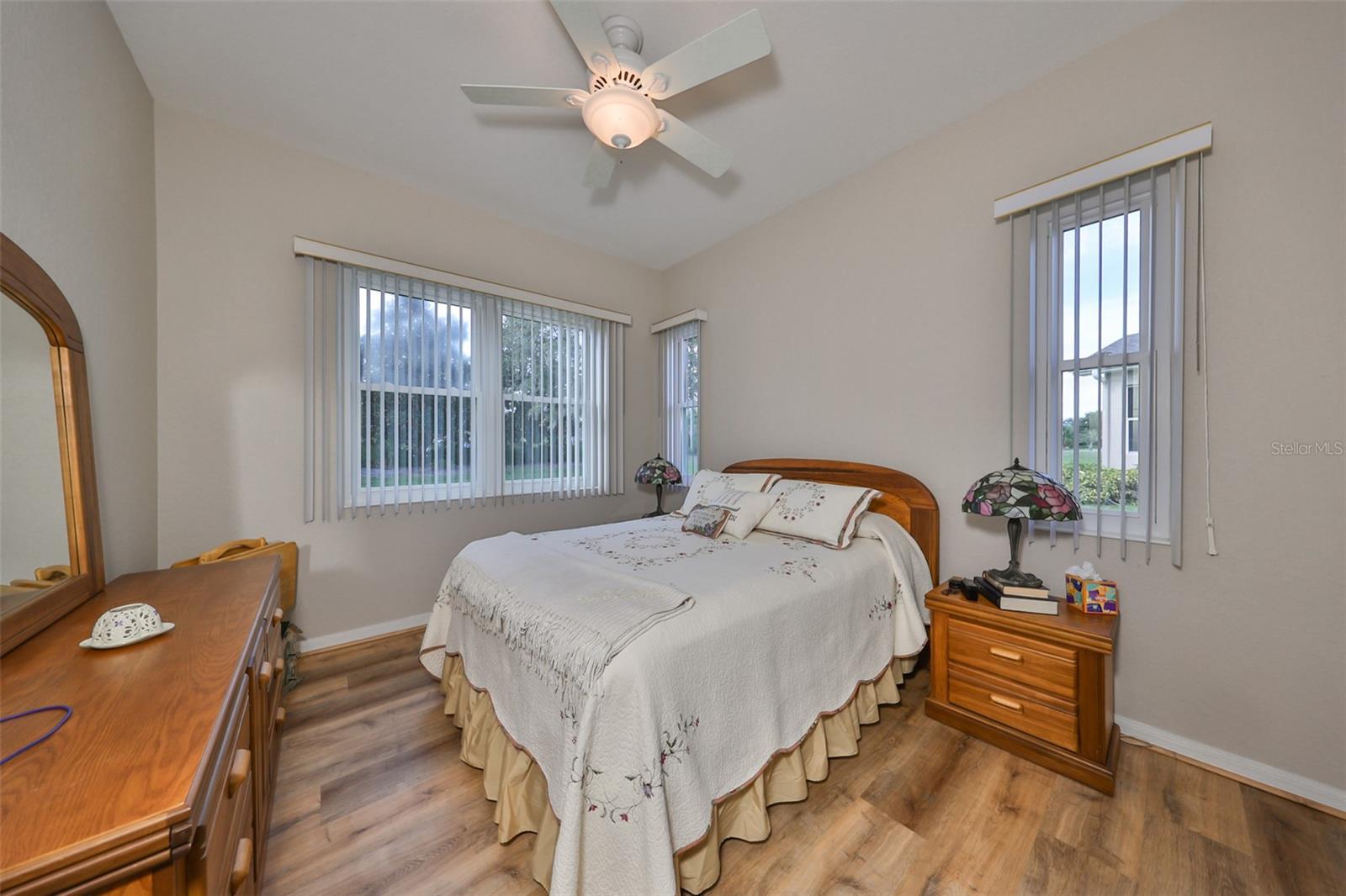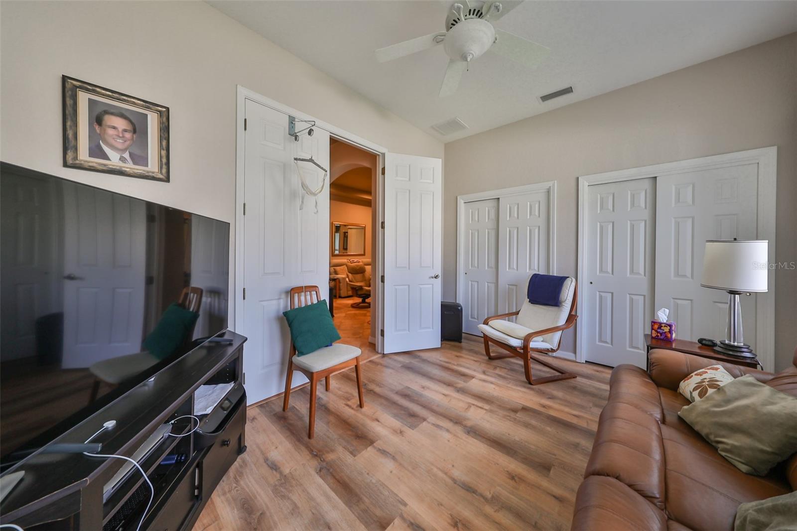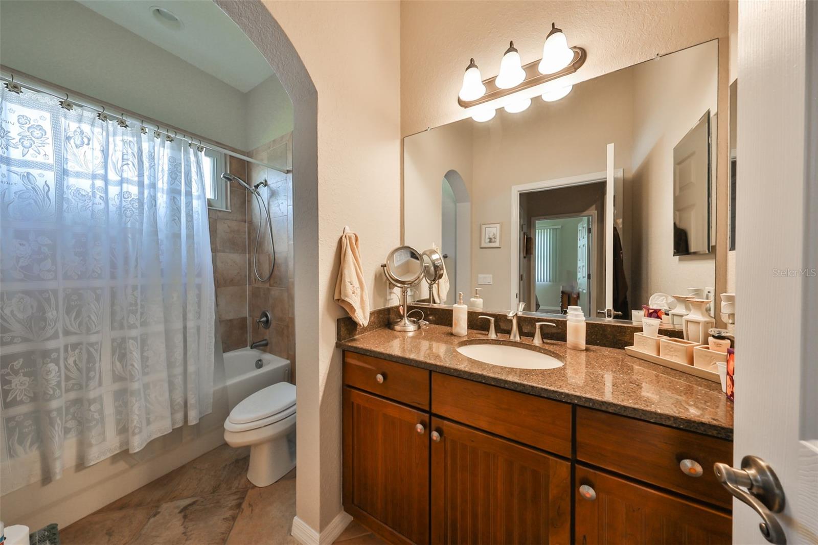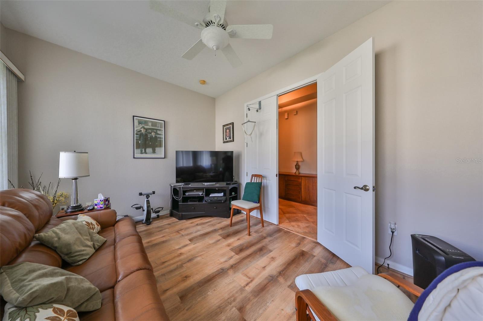 Welcome to this stunning Chelsea Model condo, gracefully nestled in the desirable 55+ gated Kings Point community. This residence offers a perfect blend of charm, elegance, and functionality, featuring 3 bedrooms and 2 bathrooms across 1,630 sq. ft. of thoughtfully designed, maintenance-free living space. Approaching the home, you’ll be welcomed by a gated brick courtyard that seamlessly connects to a two-car split garage, creating an inviting entryway. The private, walled-in courtyard is an ideal spot for morning coffee or friendly conversations with neighbors, while a screened-in front porch provides additional space to enjoy the serene surroundings. Step inside to be greeted by soaring tray ceilings and stunning earth-tone tile flooring, which flows through the foyer, kitchen, dining room, and living areas. The bright, open floor plan is perfect for both entertaining and everyday living. The living room, accented by elegant tray ceilings and abundant natural light, opens into a refined kitchen that will delight any chef. With upgraded 42-inch Beadboard wooden cabinets resembling shiplap, stone countertops, and stainless steel appliances, the kitchen seamlessly connects to the family room for easy gatherings. The primary suite offers a luxurious retreat with tray ceilings, a ceiling fan, and a spacious walk-in closet. The spa-like en-suite bathroom features dual vanities and a beautifully tiled, walk-in shower with a built-in seat. The split bedroom layout ensures privacy for all, with the versatile third bedroom functioning as a perfect office, den, or guest room. Both bathrooms are elegantly designed with matching earth-tone tile flooring, while additional bedrooms feature luxury vinyl flooring and ceiling fans. Recent updates include brand-new luxury vinyl flooring (2022) and a new washer and dryer (2024). Double-pane windows and architectural features such as arches and tray ceilings add sophistication. Enjoy energy efficiency with gas-powered heating, a gas dryer, and a hot water heater. The family room leads to a three-panel sliding glass door that opens onto a screened-in lanai, overlooking a lush, private backyard—a perfect setting for relaxation or outdoor gatherings. The beautiful brown leather couch in the den can also stay, adding both comfort and charm to your new space. Don’t miss this opportunity for luxury living, complete with these fabulous extras! Kings Point residents enjoy an active lifestyle with amenities that include two clubhouses, five swimming pools, multiple pickleball and tennis courts, fitness centers, and numerous clubs and activities. This golf cart-friendly community offers convenient access to Tampa, Sarasota, Gulf Coast beaches, and popular attractions like Disney World. This move-in-ready home is a rare find, offering modern amenities in a picturesque, gated setting. Schedule your showing today and discover the best of Florida living in this charming, well-appointed condo.