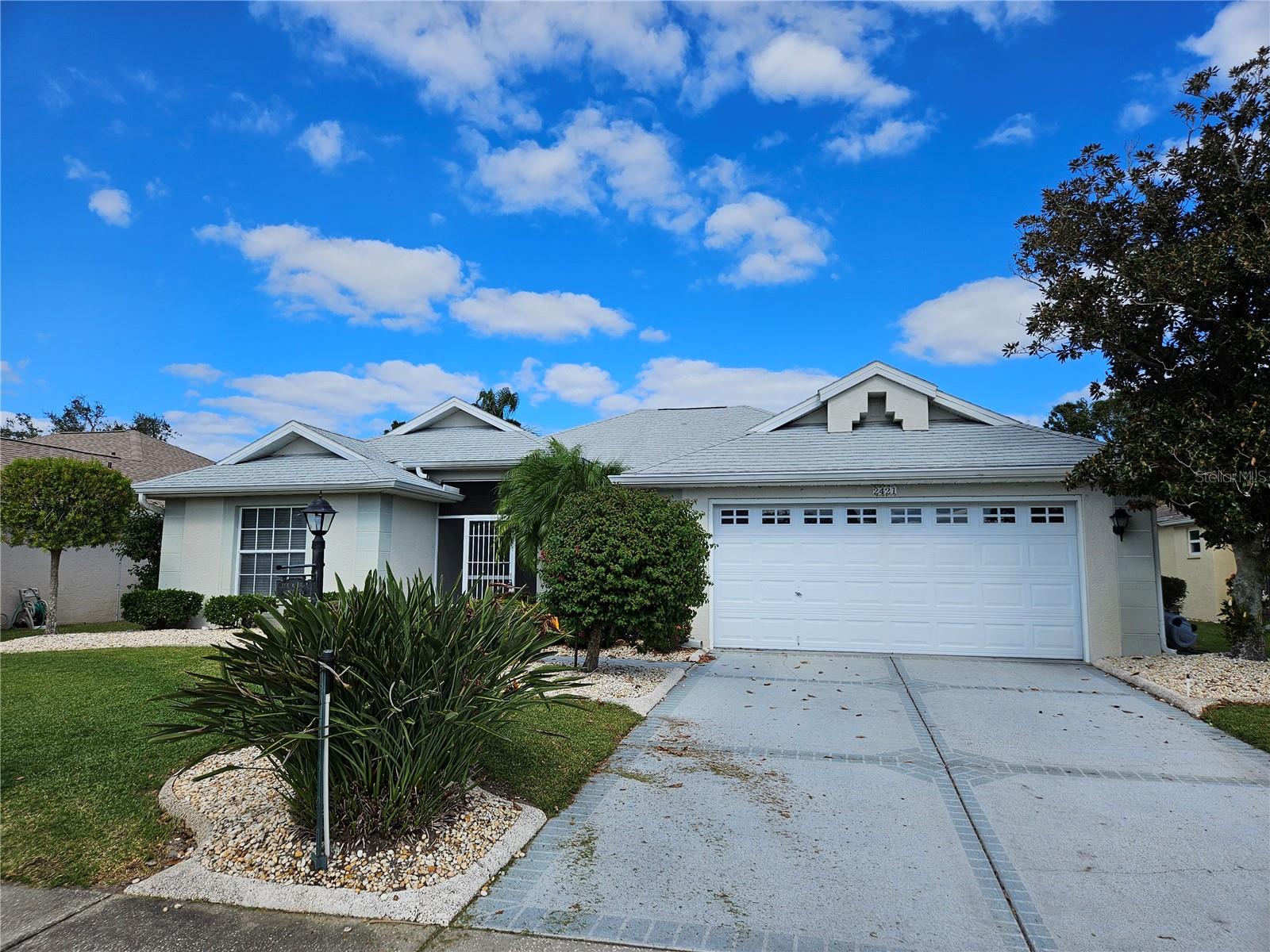 PRICE REDUCED!!! DON'T MISS SEEING THIS FRESHLY PAINTED INSIDE 2 bedroom/2 bathroom plus a den & screened lanai single family home. When you enter the home you will immediately be impressed with the view through the beautiful sliding glass doors to the screened in back porch and to the open view of the closed golf course off the backyard. As you walk by the formal dining area on the right and into the spacious living room with high ceilings you will feel right at home. Walk around your kitchen bar area and into your large kitchen with center island, appliances and loads of cabinet space as well as large pantry. Off the kitchen you have a nice-sized area for smaller kitchen table to enjoy a meal as you gaze out the large windows at the open area and wildlife. Additional sliding doors off the kitchen area also lead to the screened back porch where you can enjoy your morning coffee or evening beverage or entertain company while grilling your favorites. Primary bedroom and guest bedrooms are on the opposite sides of house so you and the guests will have privacy and your own full bathrooms. Primary bathroom has dual sinks, garden tub and separate shower. FULL HOUSE GENERATOR. Enjoy Sun City Center's community amenities which include indoor and outdoor swimming pools, a large fitness center, tennis courts, pickleball courts, lawn bowling, and 200 clubs so you will never be without something fun to enjoy. This is a GOLF CART FRIENDLY Community with activities to suit virtually every interest. Most other needs are a golf cart drive away including grocery shopping, salons, banks and a hospital. Close to both I-75 and US 301 for quick access to shopping, restaurants, Tampa International airport and the local beaches. Call today for a showing before it is gone!