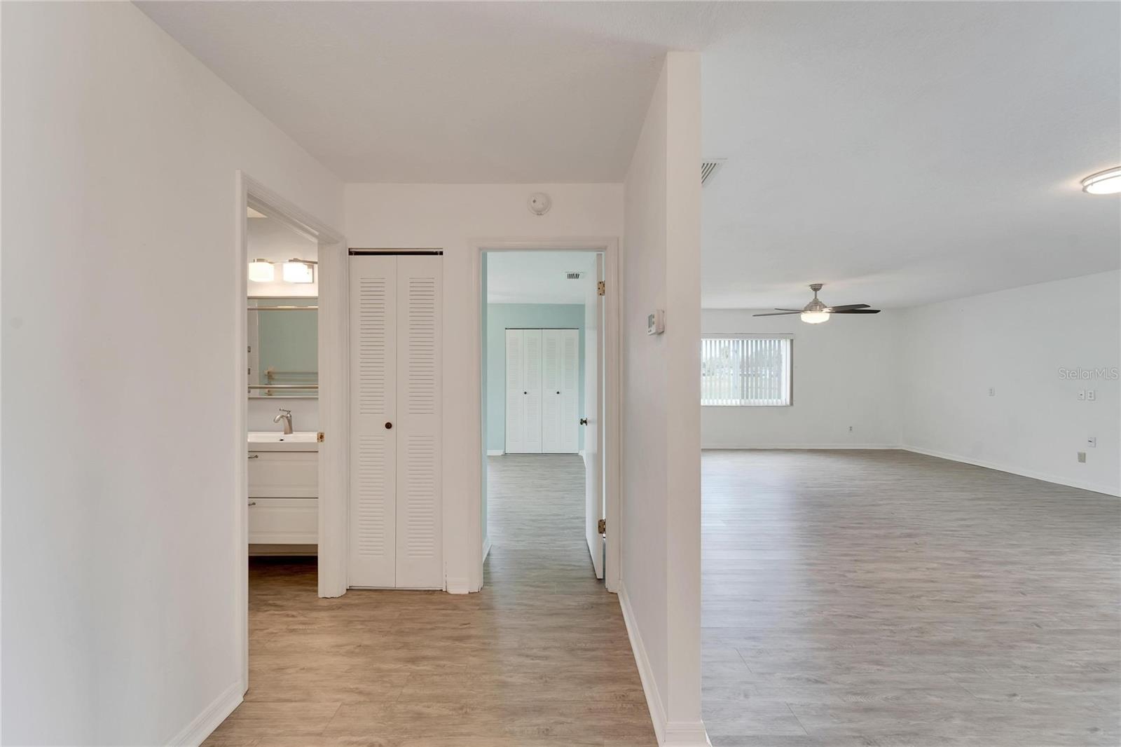 Your dream home is finally here, this Sahara II open floor plan home is awaiting its new owner, it is time to start living the care-free lifestyle today!! Offering an abundance of updates including A BRAND-NEW ROOF December 2024, Solid surface flooring throughout, a tastefully updated kitchen with newer stainless-steel appliances, storm impact windows throughout the home & an electric shutter for the Florida room, newer HVAC, updated panel box, and so much more. Upon arriving be welcomed by lovely landscaping and eye-catching curb appeal. Step on in and you will find a gorgeous updated 2/2/2 home with stunning views from the moment you walk in. A spacious living/dining room area along with the marvelous Florida room leading you to the magnificent kitchen. A chef's empire, you can whip up a delicious meal in no time with the convivence of roll out drawers, plenty of counter space, storage, sparling backsplash, and newer appliances. Enjoy your meal in the dinette area along with appreciating the delightful views. The Florida wildlife, sunshine and greenery. The Sahara II model provides a great home to entertain, enjoy everyday living and have the privacy of having guest as well with the open yet split floor plan. The garage provides a ton of additional cabinetry for additional storage space. Kings Point is an active 55+ community with an abundance of amenities including six pools, over 200 clubs, nature trails, 2 beautiful clubhouses, 2 saunas, whirlpools, and activities to keep you occupied. This is a golf cart community that has other nearby public golf courses that you can take your cart to. Some of the most beautiful Gulf Beaches are located within a 30-minute drive. Call to schedule your showing so you can enjoy this beautiful home in Kings Point.