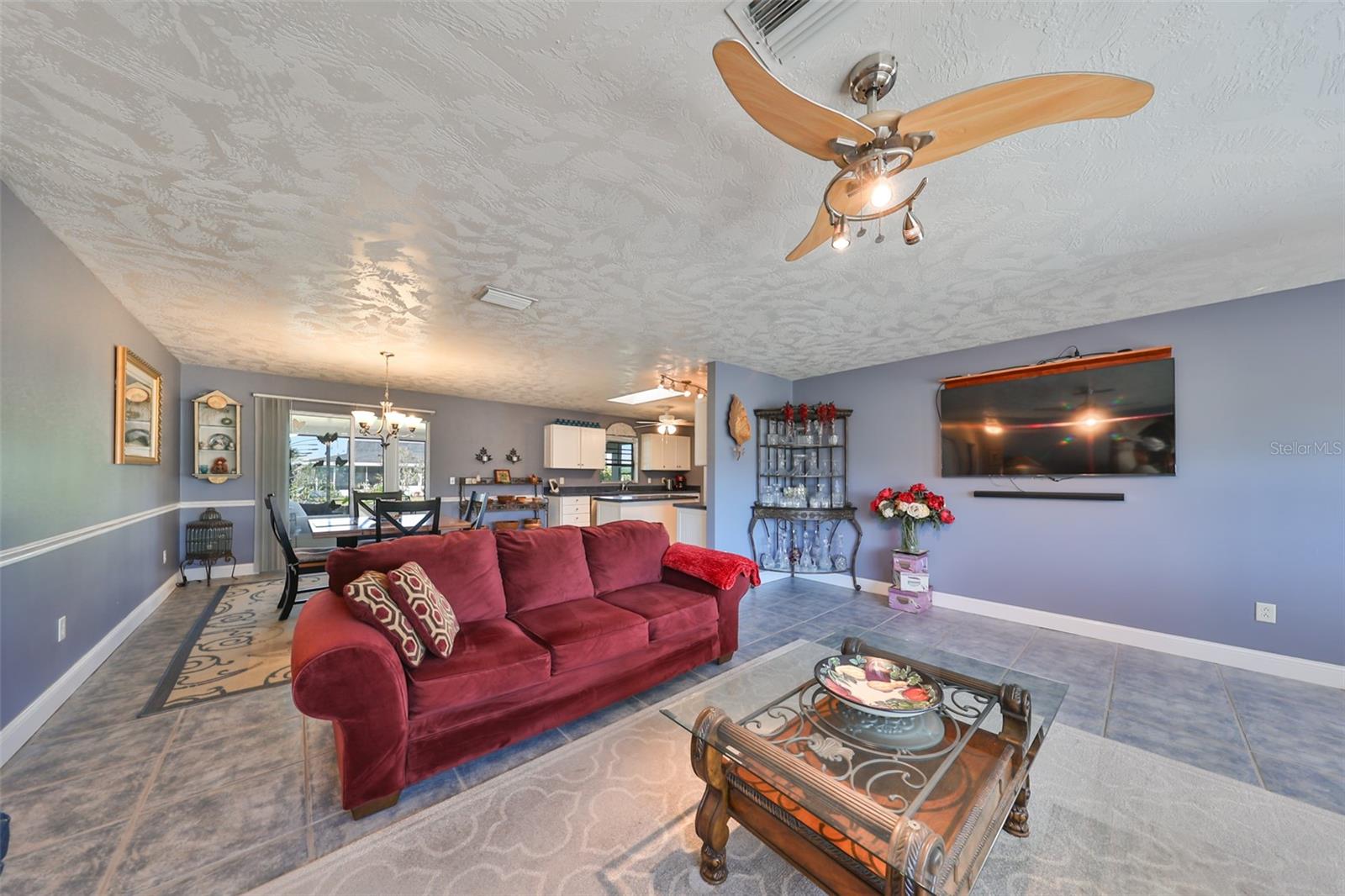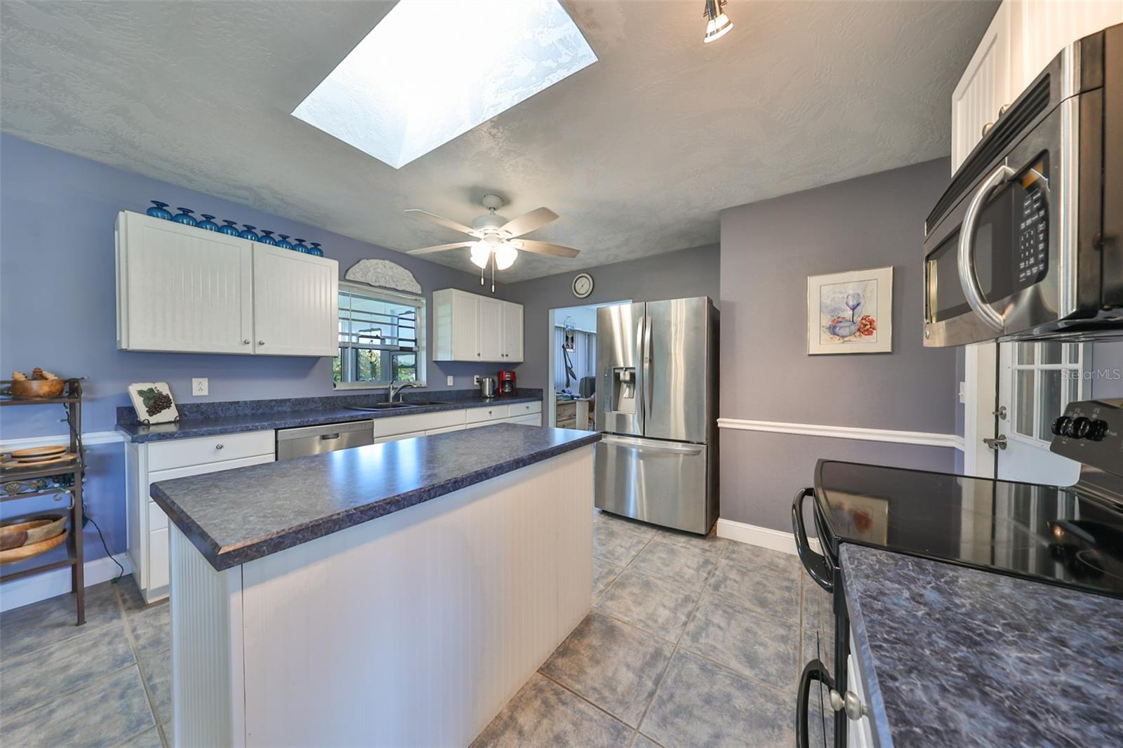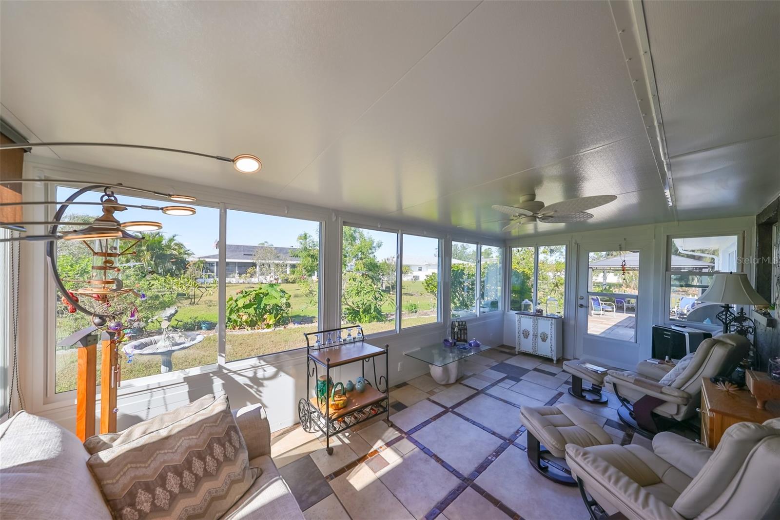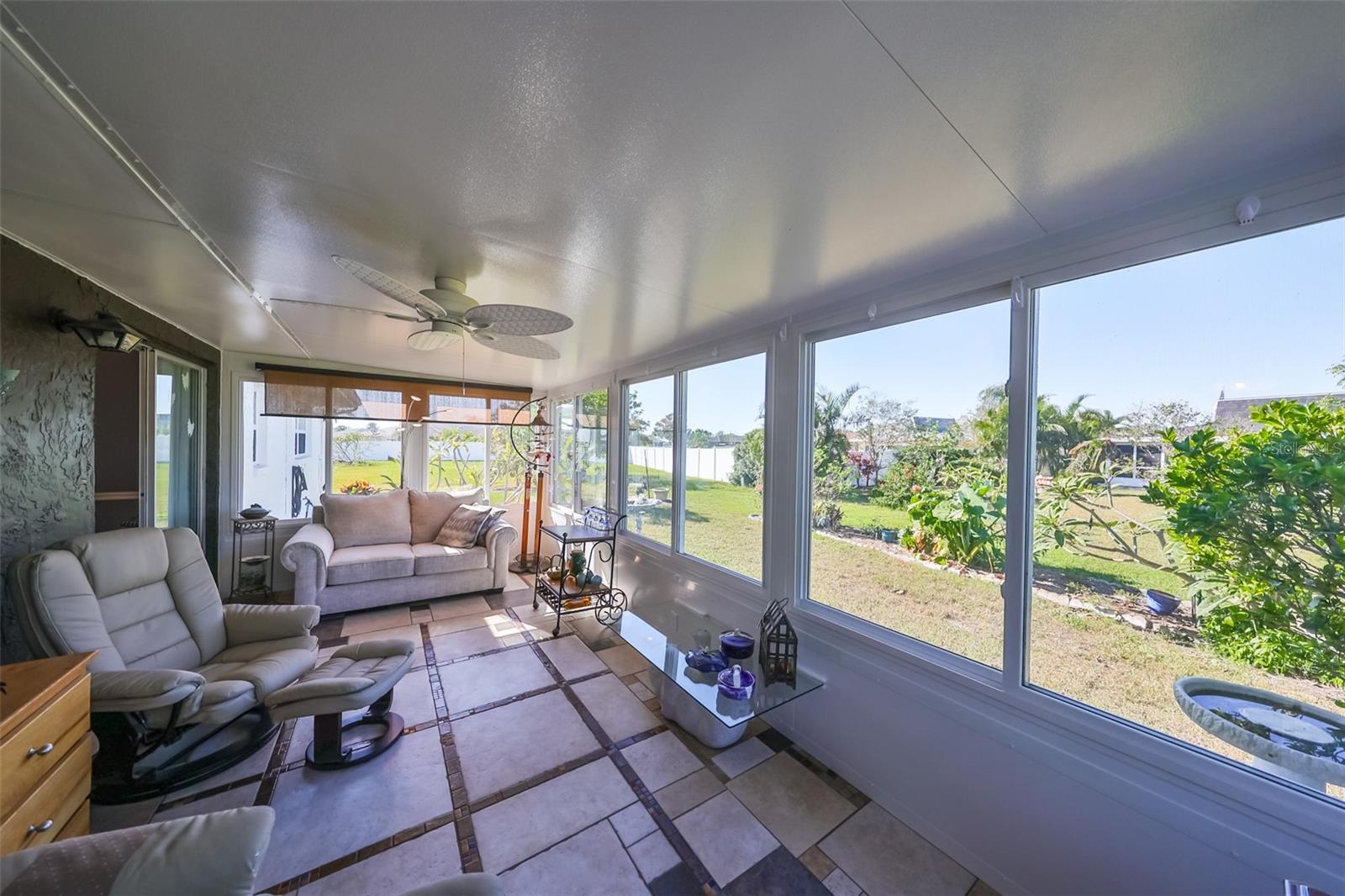 QUIET CUL DE SAC LOCATION & NO HOA! Welcome to Sun City Center, FL, the Number #1 Retirement Community in America, as voted by Realtor.com in 2024! Nestled on a lush, oversized lot in a peaceful cul de sac, this lovely, UPDATED home awaits its new owner. This move-in ready 2 bed/2 bath home has over 1700 square feet of living space and boasts tons of major updates: ROOF 2020, WATER HEATER 2021, ELECTRIC PANEL 2021 AND HVAC 2024. The main living area has been modified into a comfortable open floorplan for easy living. The home has ceramic tile throughout, pretty textured ceilings, updated closet doors, and large windows for lots of natural light. The eat-in kitchen has been refreshed with updated cabinetry, newer stainless appliances, a center island, and a skylight. The versatile bonus room is currently being used as a craft room (and even has a built-in pantry), but can easily be a den, office or 3rd bedroom if needed. The large owner's suite has double closets and a nice ensuite bathroom with a walk-in shower. The 2nd bedroom and bathroom offer extra privacy for your guests. For an added bonus, this home has an awesome 10 x 20 enclosed & glassed FLORIDA ROOM (2020) that has its own air conditioning & heat. The rear of the home is a gardener's delight and has a large brick paver patio where you can relax and enjoy the various fruit trees and blooming flowers. This home is just a short golf cart ride to all community amenities, such as restaurants, shopping, banking, doctors, numerous social clubs, a library, indoor/outdoor pools, pickleball, and so much more. The community is also conveniently located to major highways, airports, Tampa, Sarasota, major sporting events, and award-winning beaches. So come and visit this beauty today and see why you'll want to call it home!