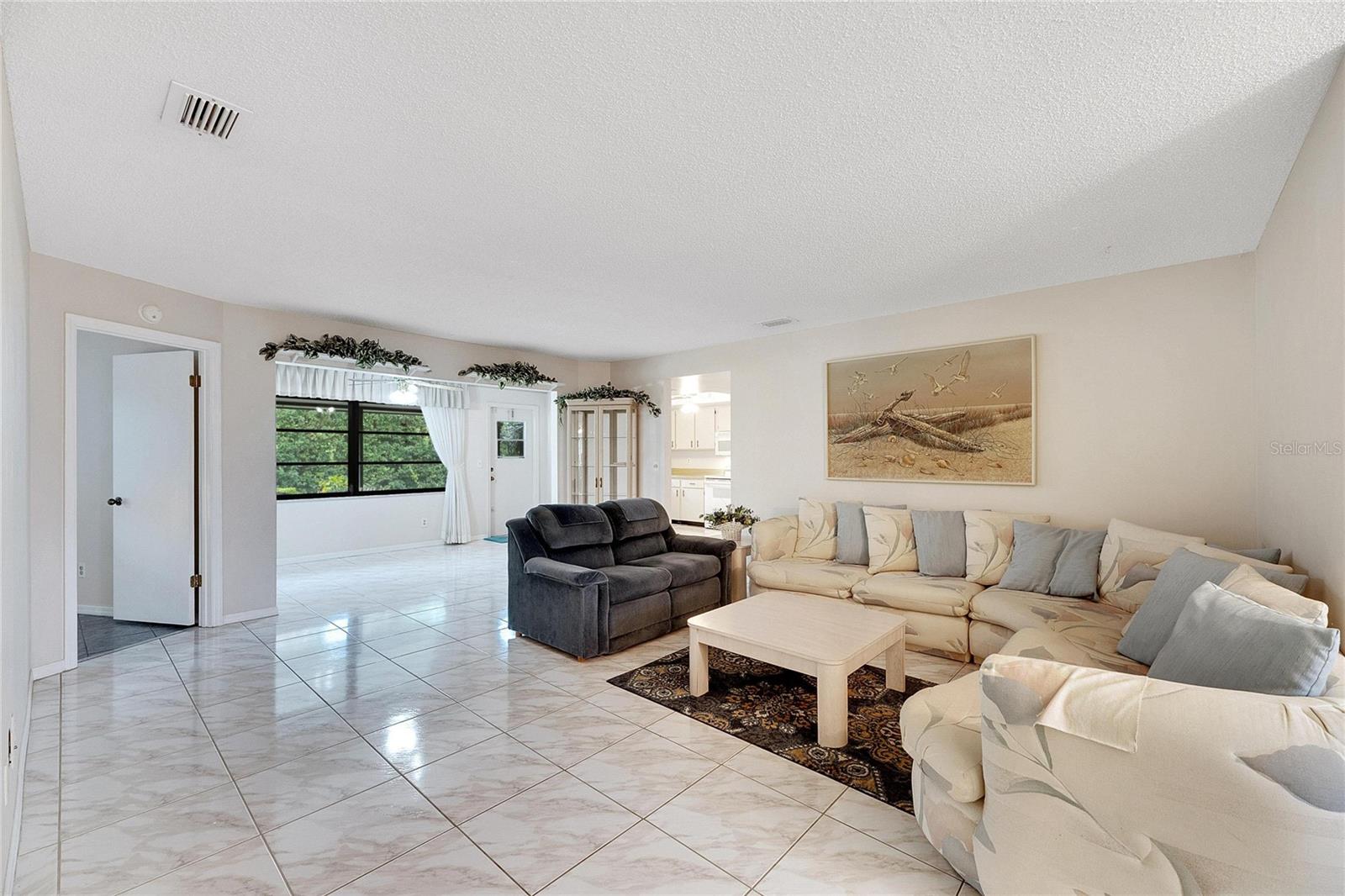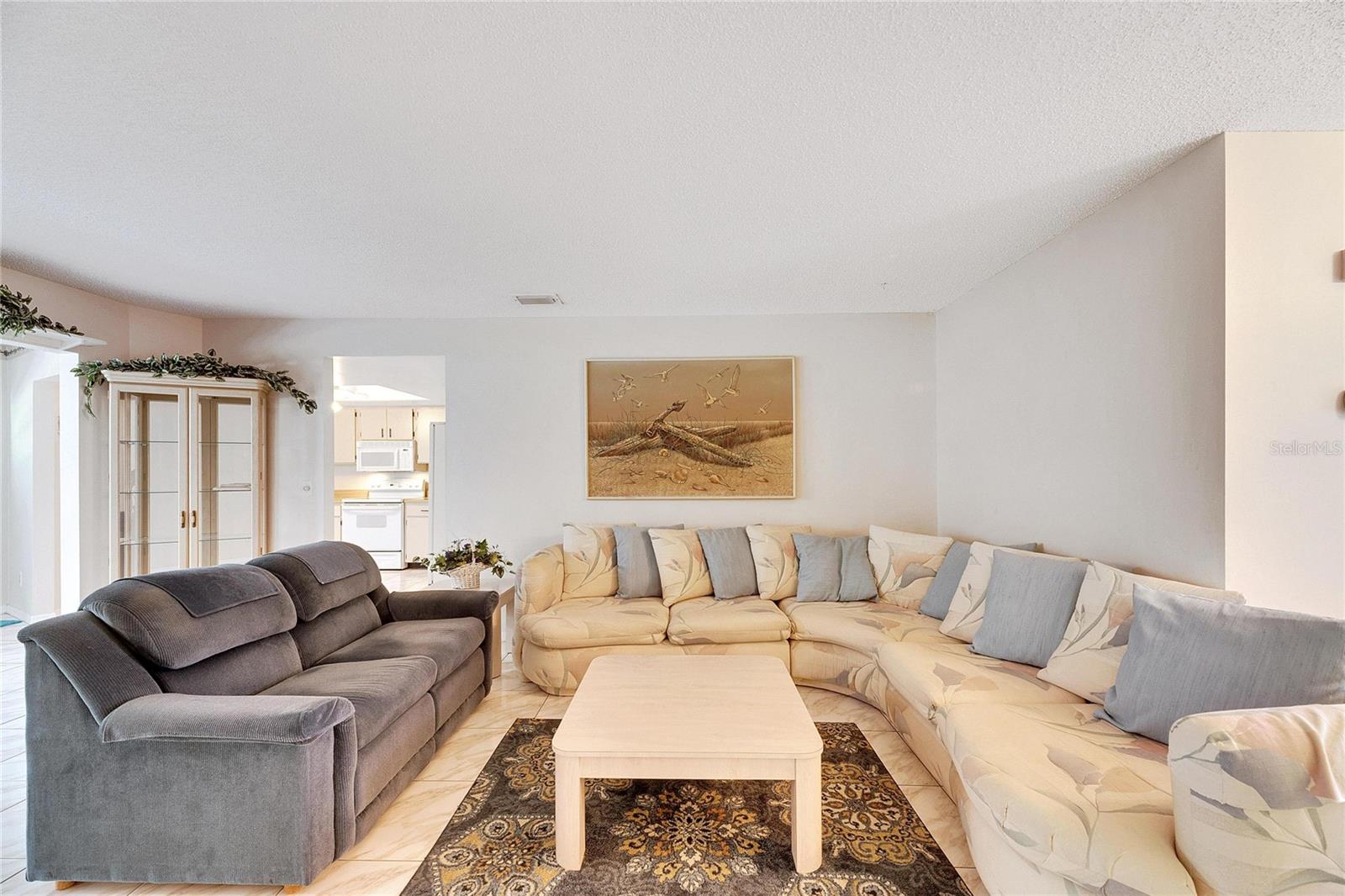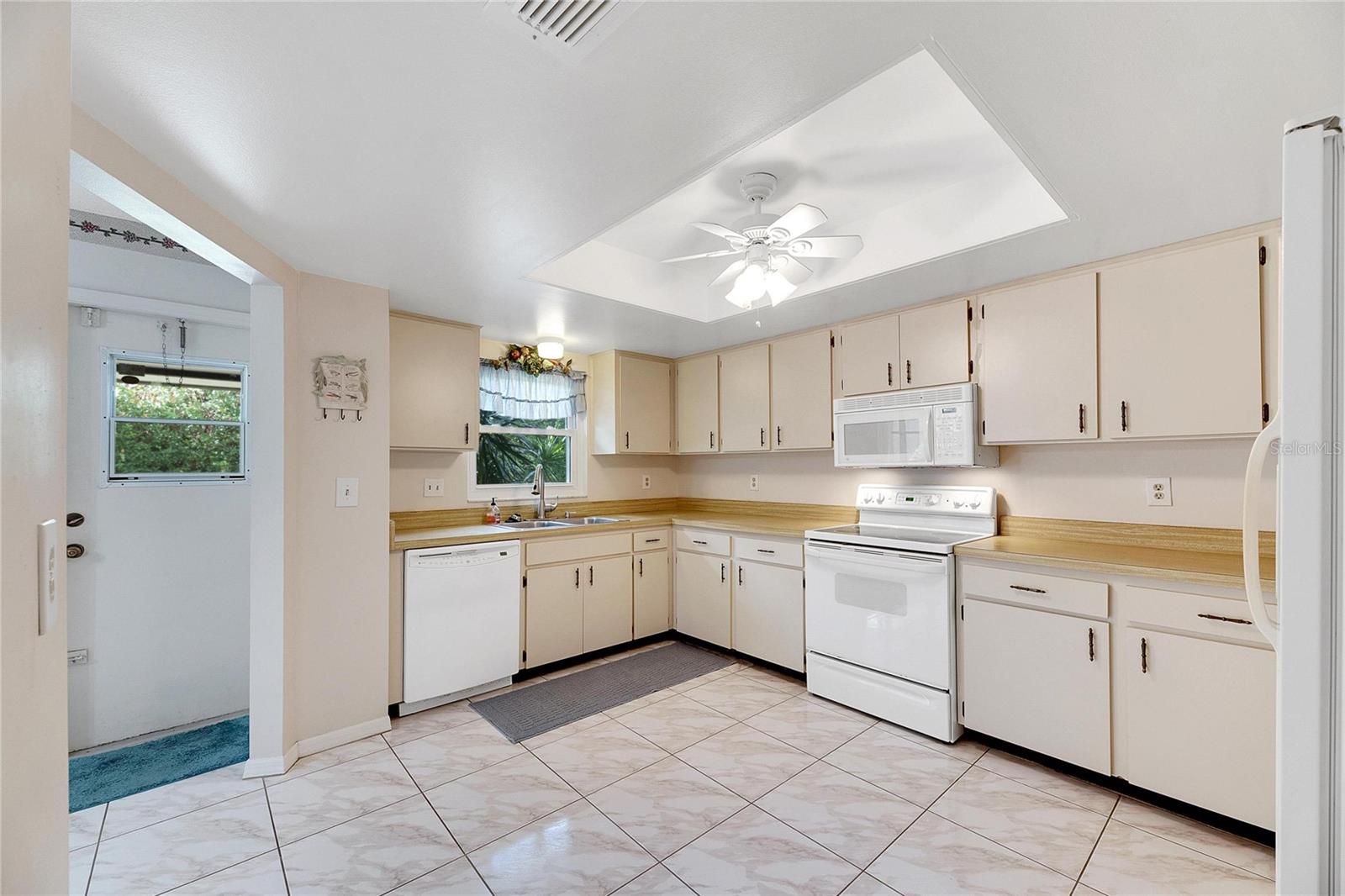 One or more photo(s) has been virtually staged. Discover the perfect blend of comfort and convenience in this beautiful 2-bedroom, 2-bath, maintenance-free condo, located in the gated retirement community of Kings Point. Move-in ready, offering a spacious and thoughtfully designed layout, with a 1.5-car garage that provides ample space for your vehicle and a golf cart. Tile flooring throughout, exterior windows are high impact, new A/C system 11/2023, new water heater 2025, partially furnished. The primary suite features a walk-in shower and a large closet, while the guest bathroom includes a relaxing tub, catering to all preferences. The large lanai overlooks a private conservation area. It's the perfect spot to start your morning or unwind at the end of the day. With the unmatched community experience of Kings Point, this condo is the perfect place to live and retire. Don’t miss your opportunity to call it home! Kings Points world-class amenities are remarkable. A resort-style, active retirement community, gated, with two beautiful clubhouses, 6 heated pools, an 850-seat theater, an elegant spa, tennis courts, 3 golf courses, 2 hot tubs, billiards, several pickleball courts, two state-of-the-art fitness centers, and much, much more. Dozens of social and sports clubs will keep you entertained year-round. This maintenance-free community allows access to doctors, hospitals, shopping, banking, restaurants, and virtually everything you will ever need via golf cart. Kings Point even has its own free transportation system. Centrally located minutes from an assortment of Florida's best beaches, Tampa's convenient cruise port, and Disney World, Kings Point is an award-winning community and one of Florida's best places to live!