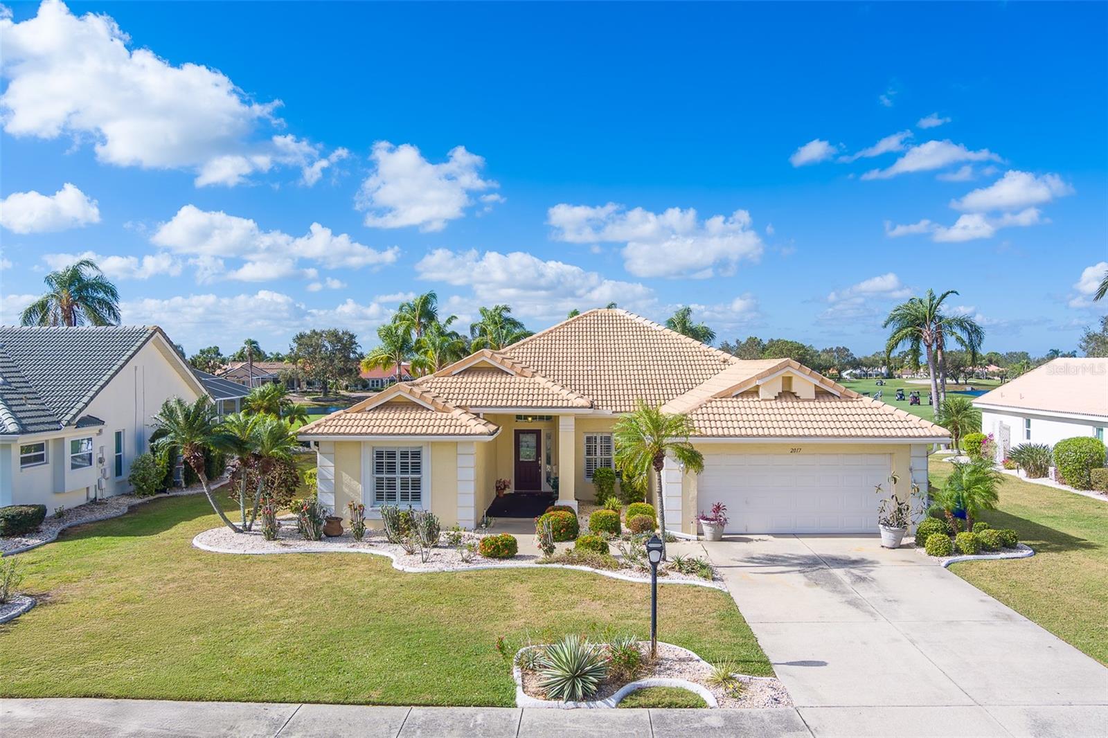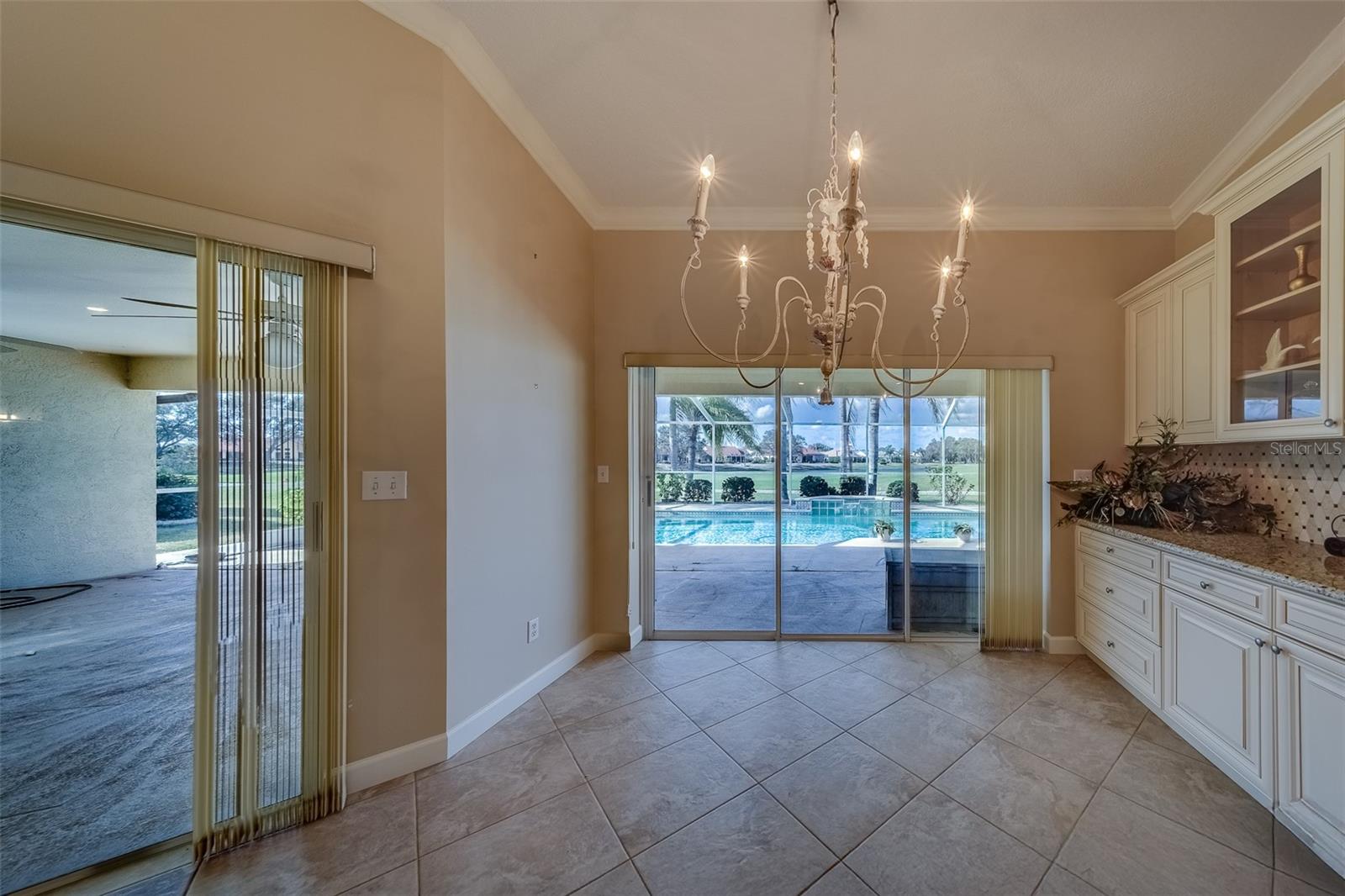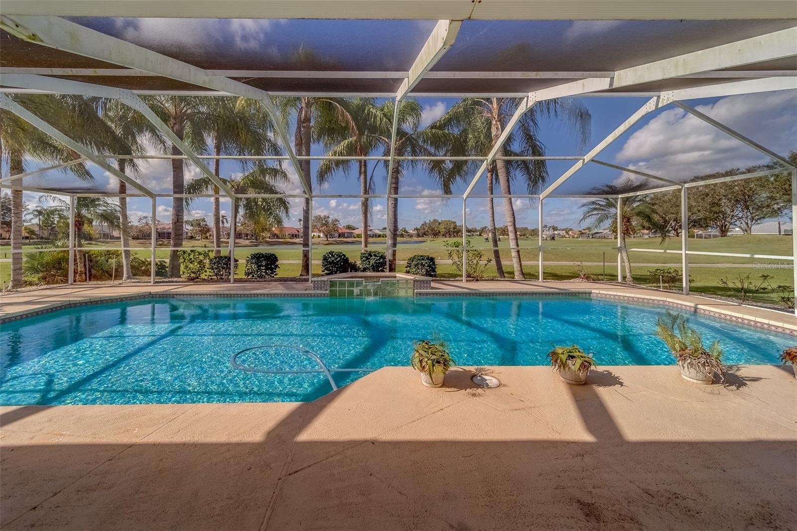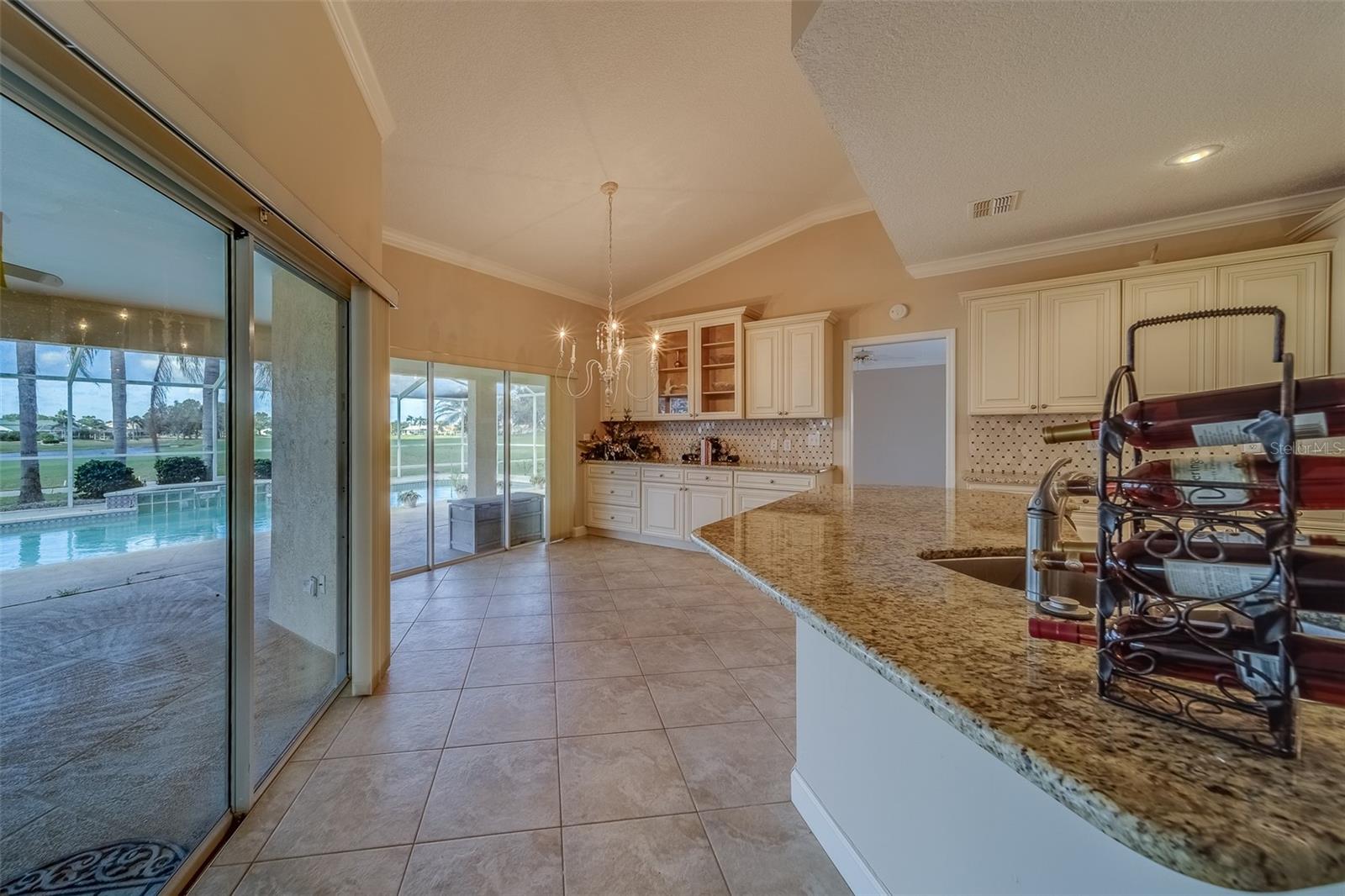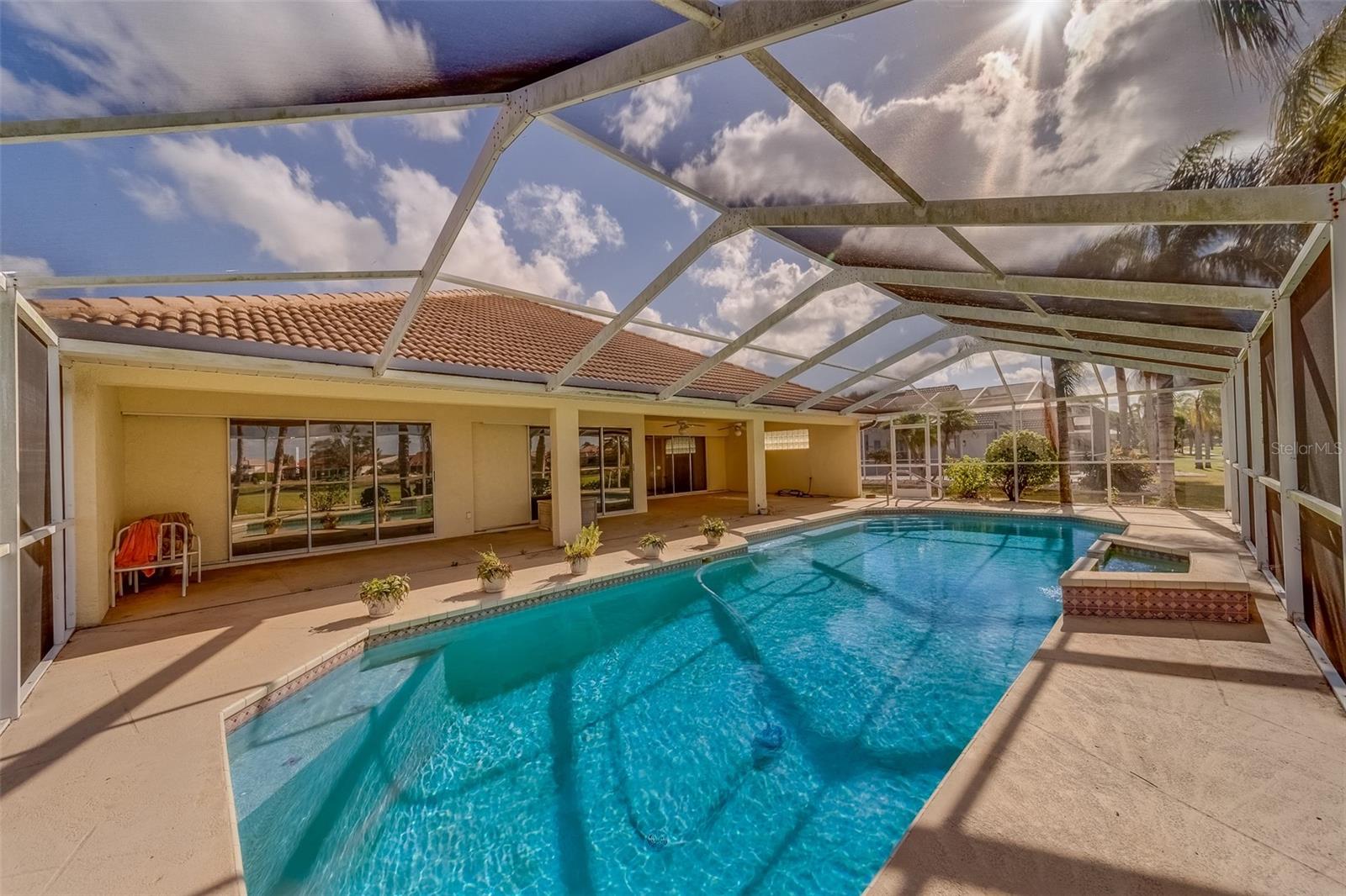 This beautifully updated St. Thomas pool home offers the perfect blend of comfort, style, and relaxation. Enjoy stunning sunsets from the spacious covered porch, which overlooks a 40 by 15 pool with a tranquil waterfall and breathtaking views of golf greens and water. The open floor plan, with vaulted ceilings and a mix of formal and casual living spaces, is designed for both relaxation and entertaining. The remodeled kitchen features wood-glazed cabinets, granite countertops, a closet pantry, and added cabinetry in the breakfast room, along with an island for food prep. Large diagonal tile flows throughout much of the home, adding a touch of elegance. The split floor plan provides privacy with bedrooms on opposite corners, plus a versatile third bedroom or den. Entertain with ease in the formal dining room, conveniently connected to the kitchen. The master suite is a true retreat, with two spacious walk-in closets and a luxurious master bath featuring a double vanity and a large shower with a glass block window for natural light. Living in Sun City Center means enjoying world-class amenities including pools, clubs, and recreational facilities. Situated between Sarasota and Tampa, the location offers easy access to airports, shopping, dining, and entertainment, as well as award-winning beaches. Best of all, you’ll be part of one of the country’s highest-rated 55+ communities, where you can leave behind the stress of city life and start a new chapter of relaxation and enjoyment. What are you waiting for?