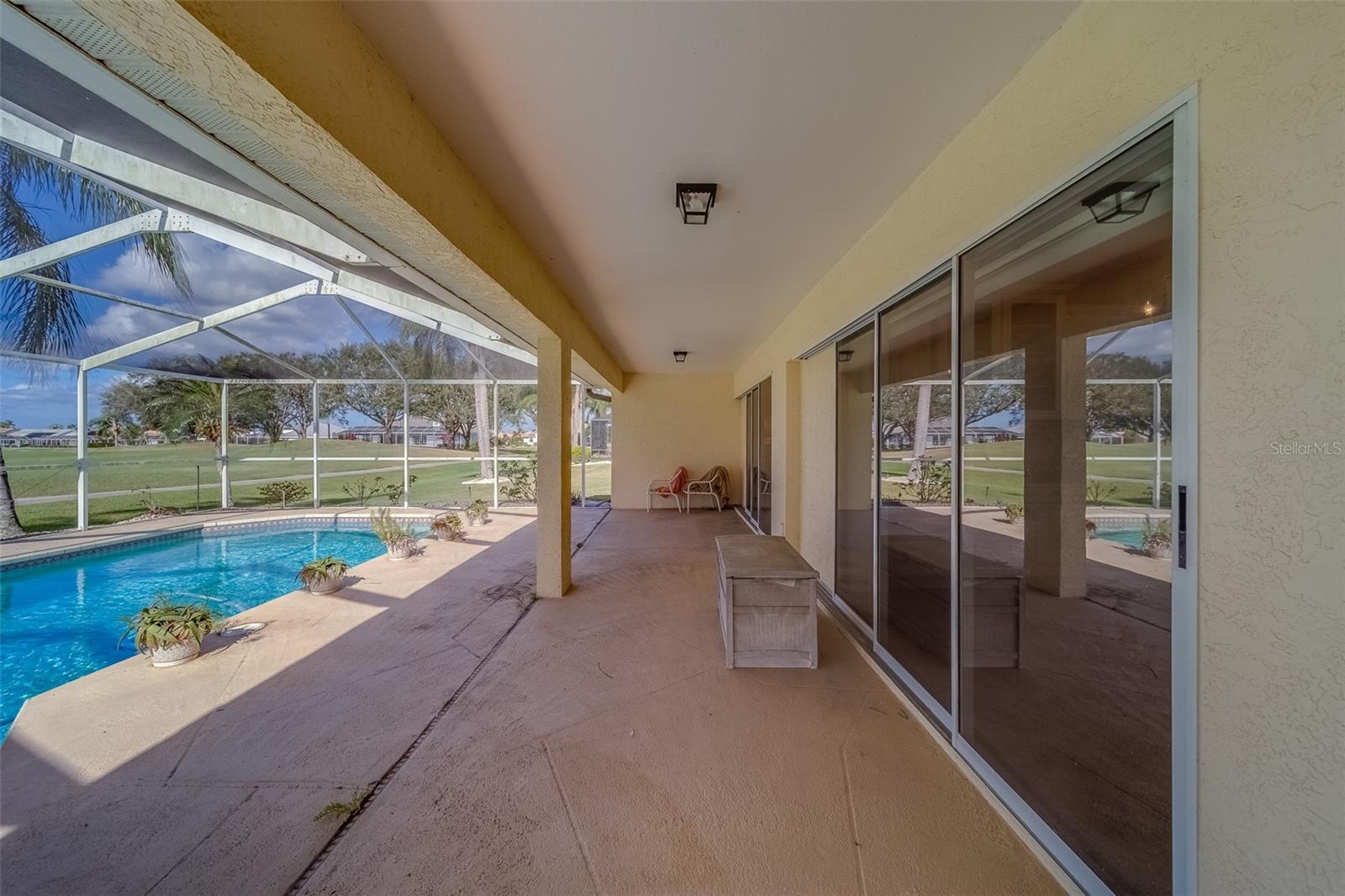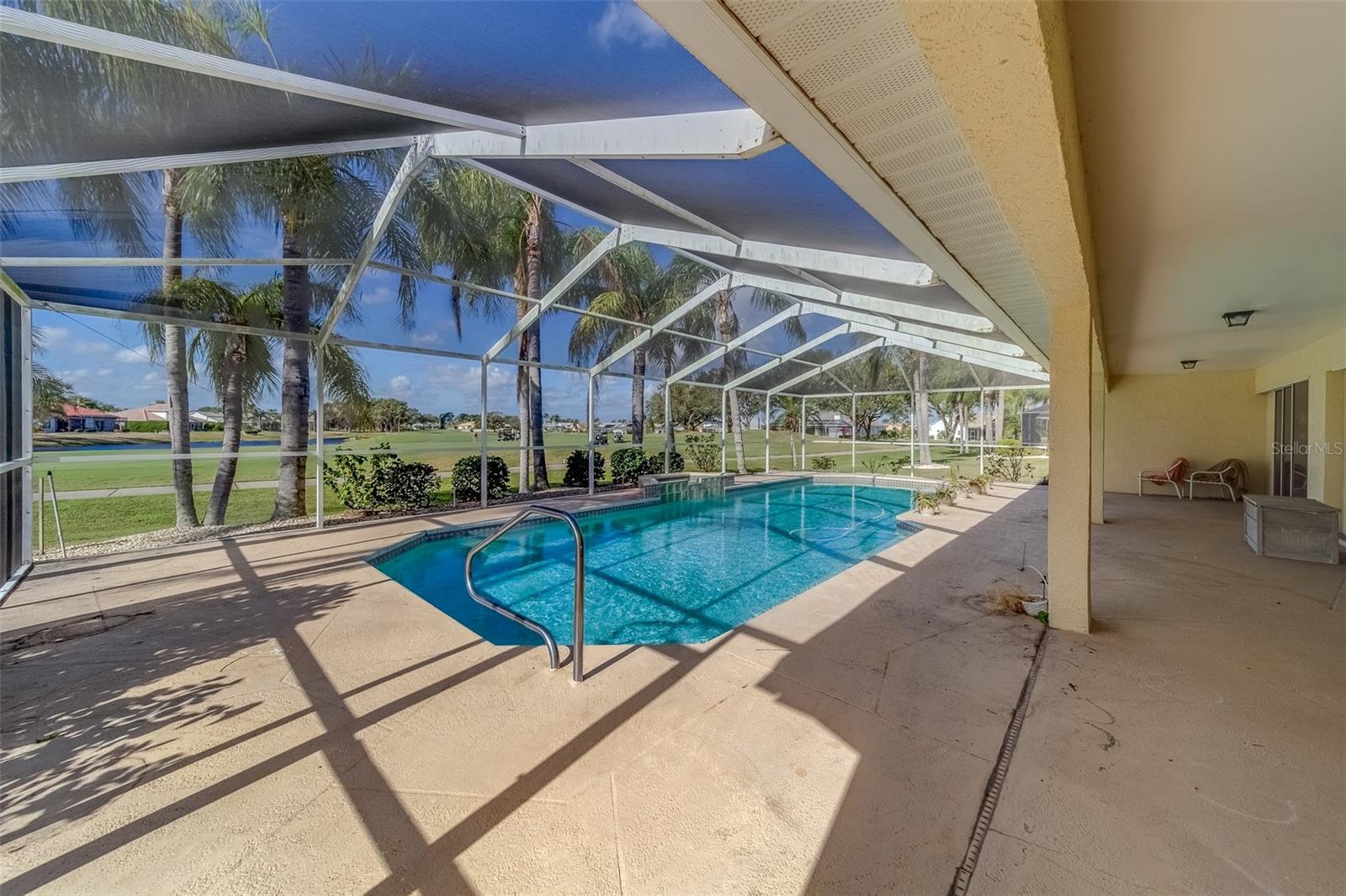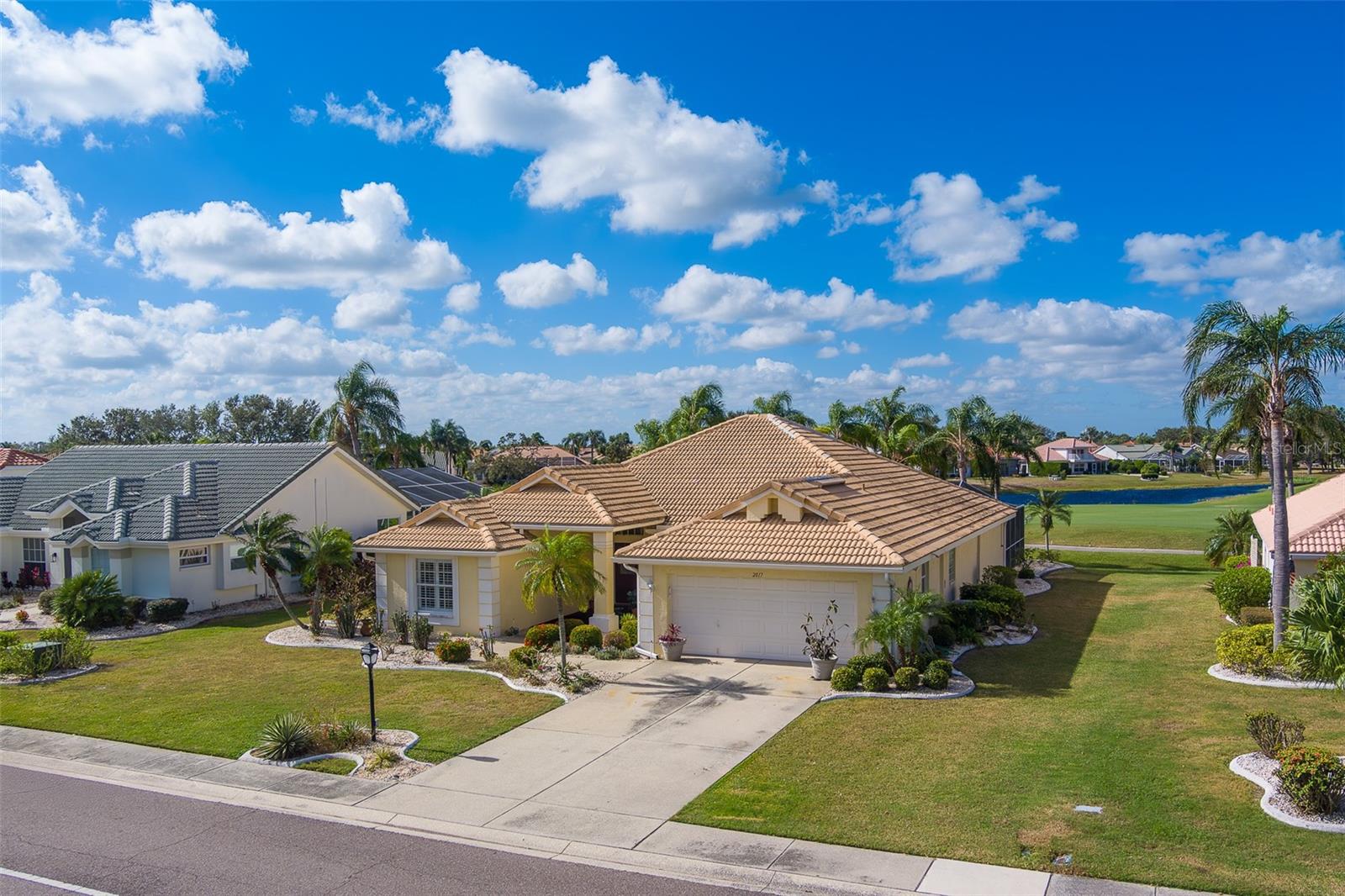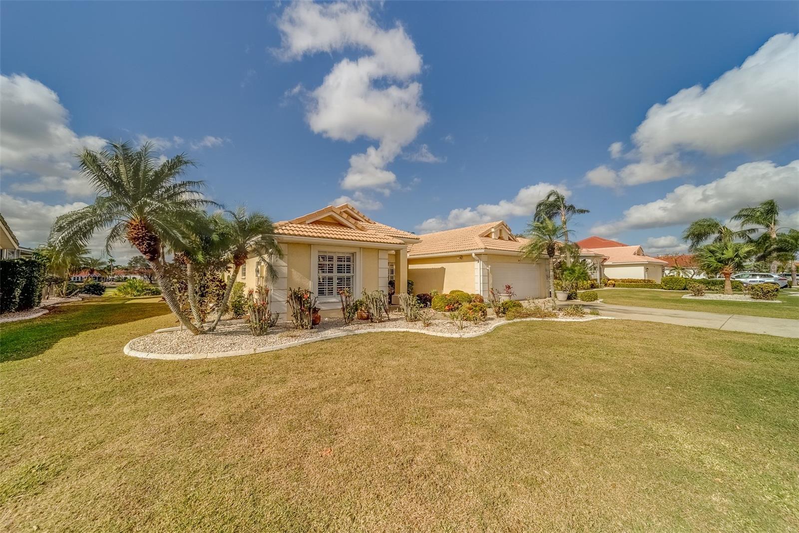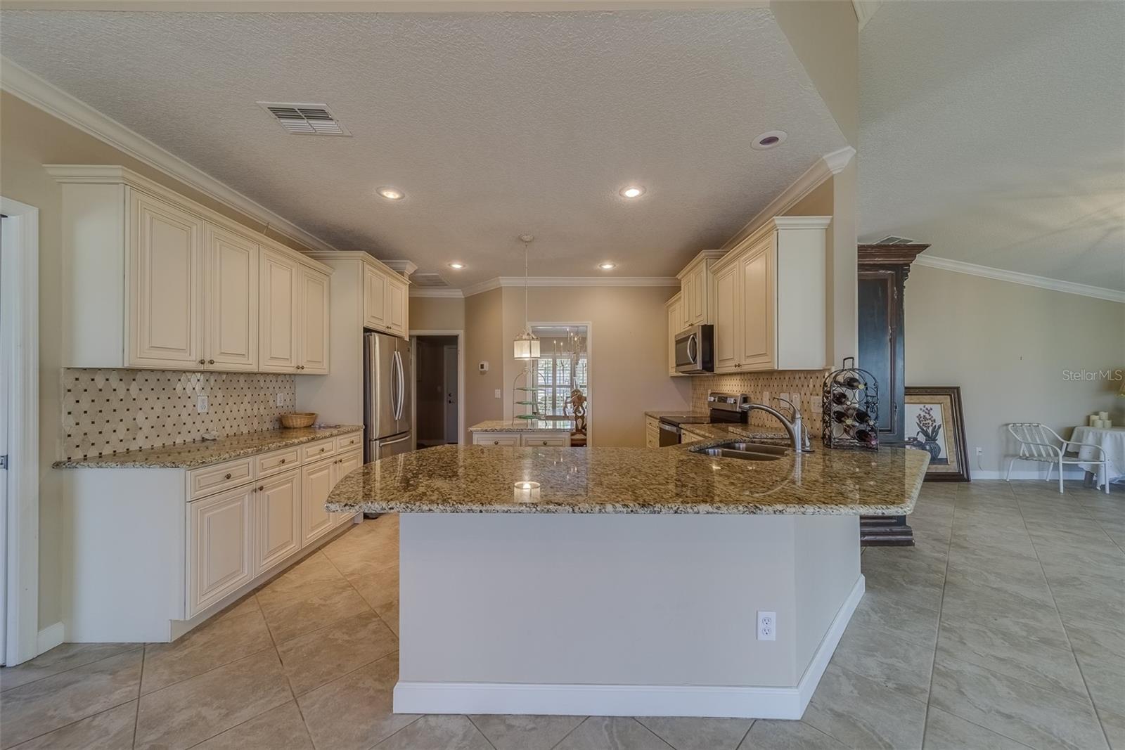 This beautifully updated St. Thomas pool home offers the perfect blend of comfort, style, and relaxation. Enjoy stunning sunsets from the spacious covered porch, which overlooks a 40 by 15 pool with a tranquil waterfall and breathtaking views of golf greens and water. The open floor plan, with vaulted ceilings and a mix of formal and casual living spaces, is designed for both relaxation and entertaining. The remodeled kitchen features wood-glazed cabinets, granite countertops, a closet pantry, and added cabinetry in the breakfast room, along with an island for food prep. Large diagonal tile flows throughout much of the home, adding a touch of elegance. The split floor plan provides privacy with bedrooms on opposite corners, plus a versatile third bedroom or den. Entertain with ease in the formal dining room, conveniently connected to the kitchen. The master suite is a true retreat, with two spacious walk-in closets and a luxurious master bath featuring a double vanity and a large shower with a glass block window for natural light. Living in Sun City Center means enjoying world-class amenities including pools, clubs, and recreational facilities. Situated between Sarasota and Tampa, the location offers easy access to airports, shopping, dining, and entertainment, as well as award-winning beaches. Best of all, you’ll be part of one of the country’s highest-rated 55+ communities, where you can leave behind the stress of city life and start a new chapter of relaxation and enjoyment. What are you waiting for?