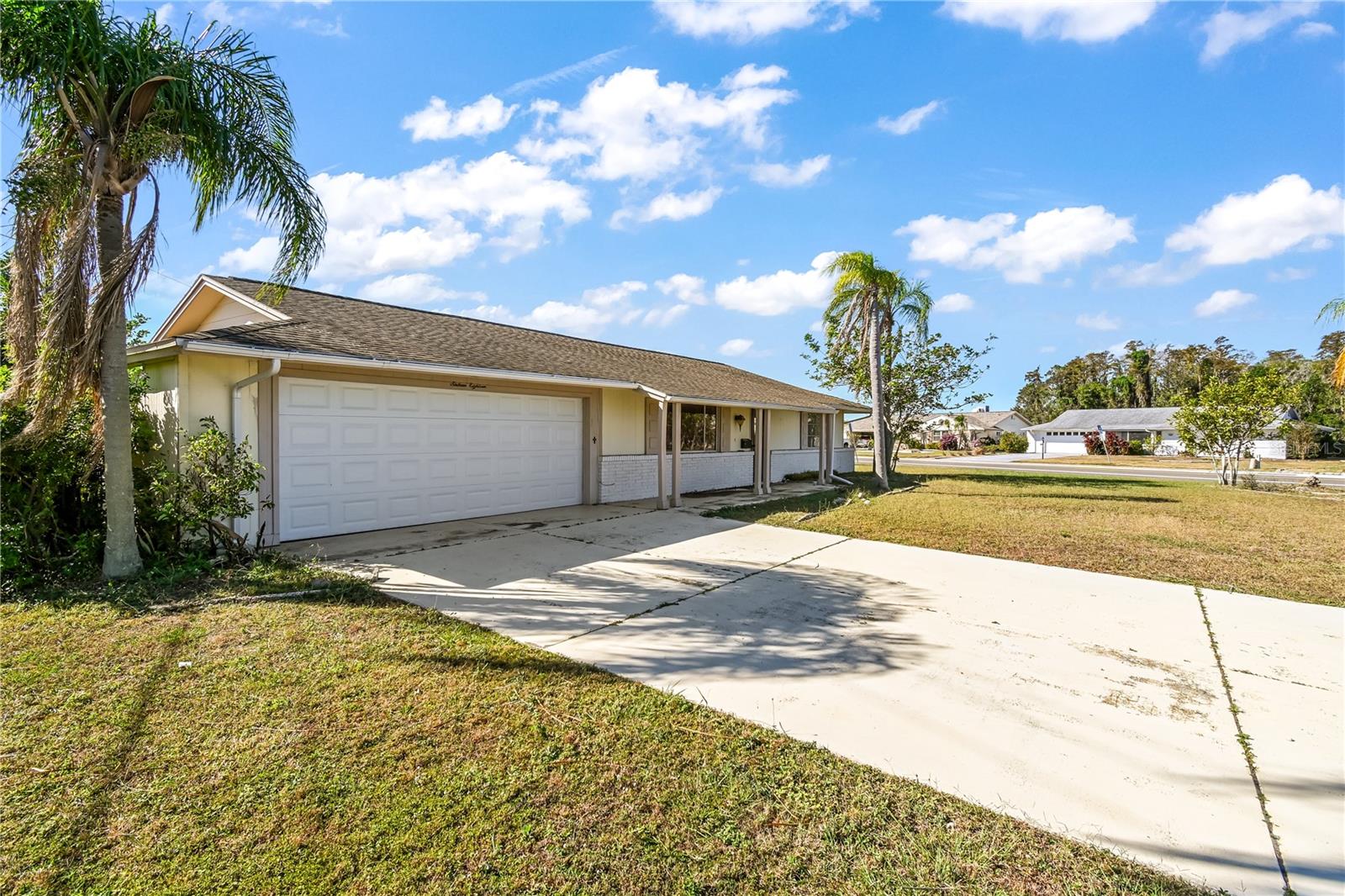 Welcome to this charming 2-bedroom, 2-bath home located in the heart of the lovely Sun City community. Corner lot home on nearly 1/4 acre. This home is full of potential and waiting for your creative vision to make it truly shine. NO HOA, low annual fees to over 200 plus clubs in the Sun City Center Community. With a little TLC and personal touch, you can transform this property into the perfect retreat. The home features a functional layout with spacious living areas, a cozy kitchen. The two bedrooms provide comfortable accommodations, and the two full baths provide convenience for guests or family. Outside, the property has space to create your ideal outdoor oasis, whether for relaxation or entertaining. Situated in the vibrant 55+ Sun City community, you’ll enjoy access to nearby amenities, golf courses, shopping, and dining. This home is an excellent opportunity for those looking to customize and invest in their future. Don’t miss out—schedule your showing today!