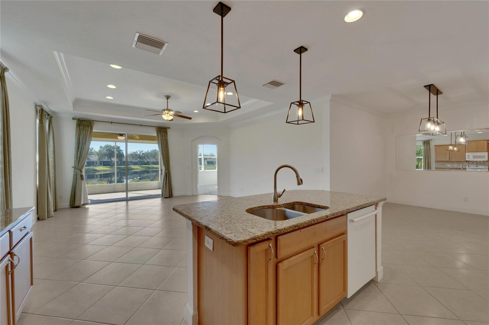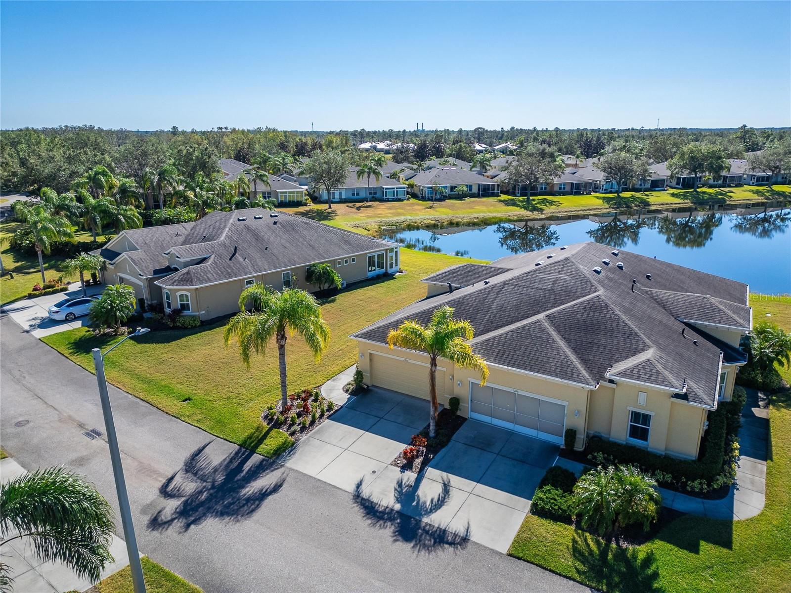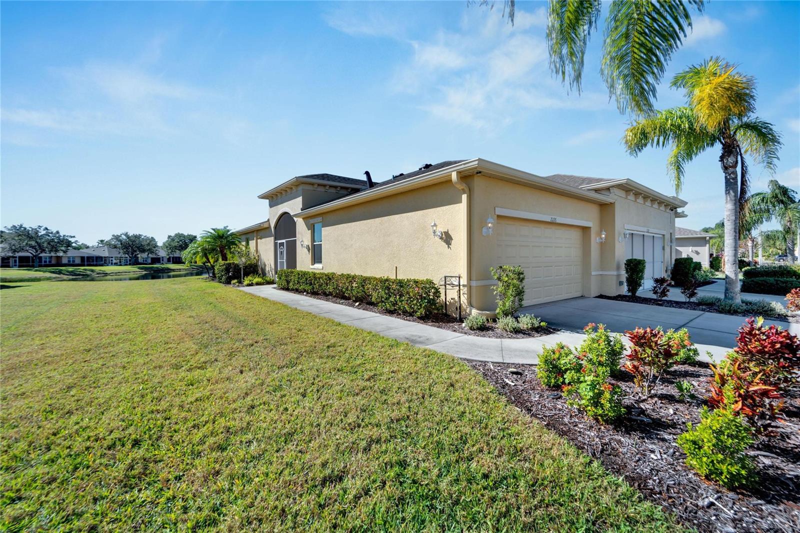 Price Improvement!!! +++*$2000.00 CREDIT TO BUYERS FOR NEW REFRIGERATOR AND STOVE* NO HOA FEES FROM APRIL 1 till March 31! Now is your time to start enjoying the real Florida lifestyle, with maintenance-free benefits and breathtaking water views that make it even better. Nestled in the highly desired King’s Point’s Nottingham Villas, this 2-bedroom 2-bath "Mahogany" villa with a large den and separate dining area with tasteful upgrades, crown molding, high ceilings, newer light fixtures, epoxy flooring in the garage and screened in lanai & so much more! This marvelous home is built for the balanced lifestyle with just the right amount of privacy, yet a stunning open floor plan. The home boasts neutral tones with solid surface flooring throughout the main living areas and granite countertops. A chef's dream spacious kitchen with light & bright appliances, tons of cabinetry, convenient rollouts, and a massive island bar. The spacious owner's suite includes a large en-suite master bath with beautiful palm tree wallpaper, which provides beautiful thoughts of paradise, dual sinks, and a walk-in closet providing plenty of storage. The second bedroom along with a spacious guest bathroom that includes a shower/tub combo located on the opposite side of the home. A bonus den that offers a great flexible space to design your home and makes for the ideal floor plan to entertain & appreciate comfortable, easy, fun and simple living. Onto one of the most amazing areas of this home is the expansive screened-in lanai with epoxy flooring and a glistening Waterview. You will be able to cherish the astonishing sunrise, sunset, impeccable wildlife, scenery and Florida breeze all from the comfort of your own home. Kings Point is an active 55+ community with an abundance of amenities including six pools, over 200 clubs, nature trails, 2 beautiful clubhouses, 2 saunas, whirlpools, and activities to keep you occupied. This is a golf cart community that has other nearby public golf courses that you can take your cart to. Some of the most beautiful Gulf Beaches are located within a 30-minute drive. Call to schedule your showing so you can enjoy this beautiful home in Kings Point.