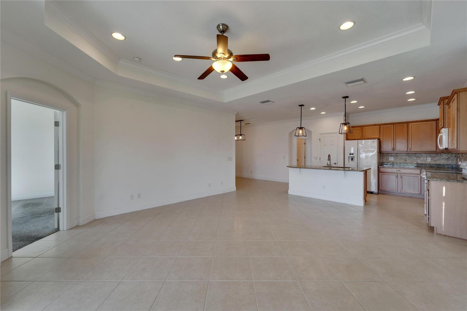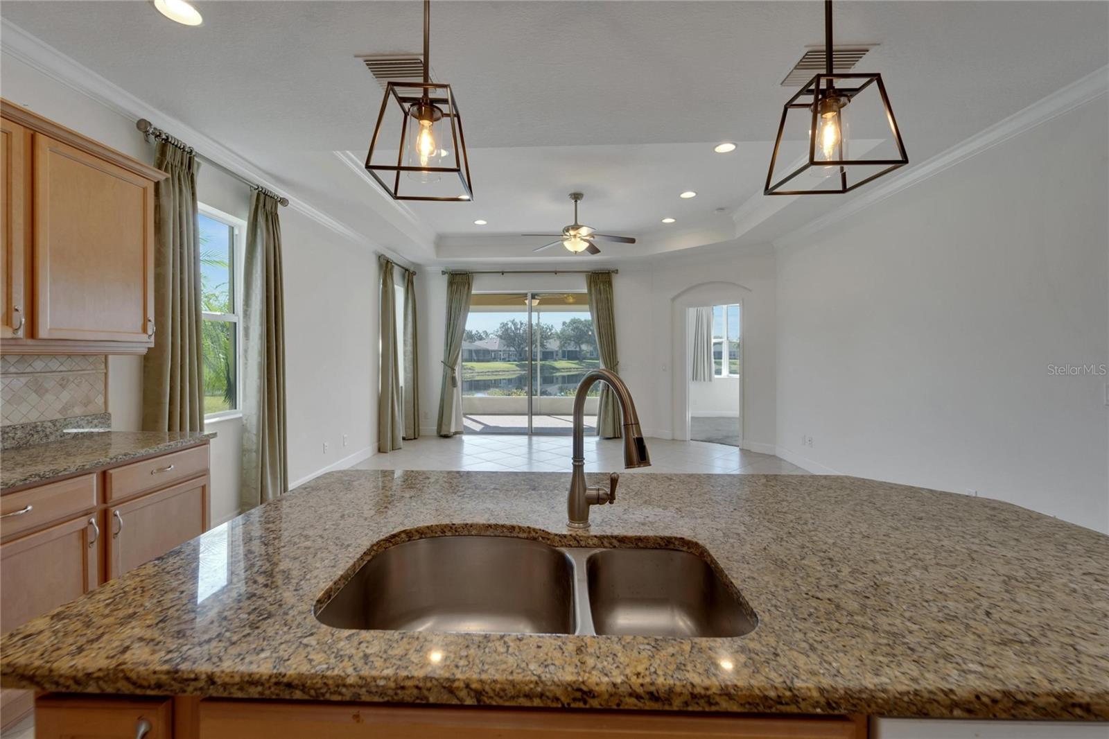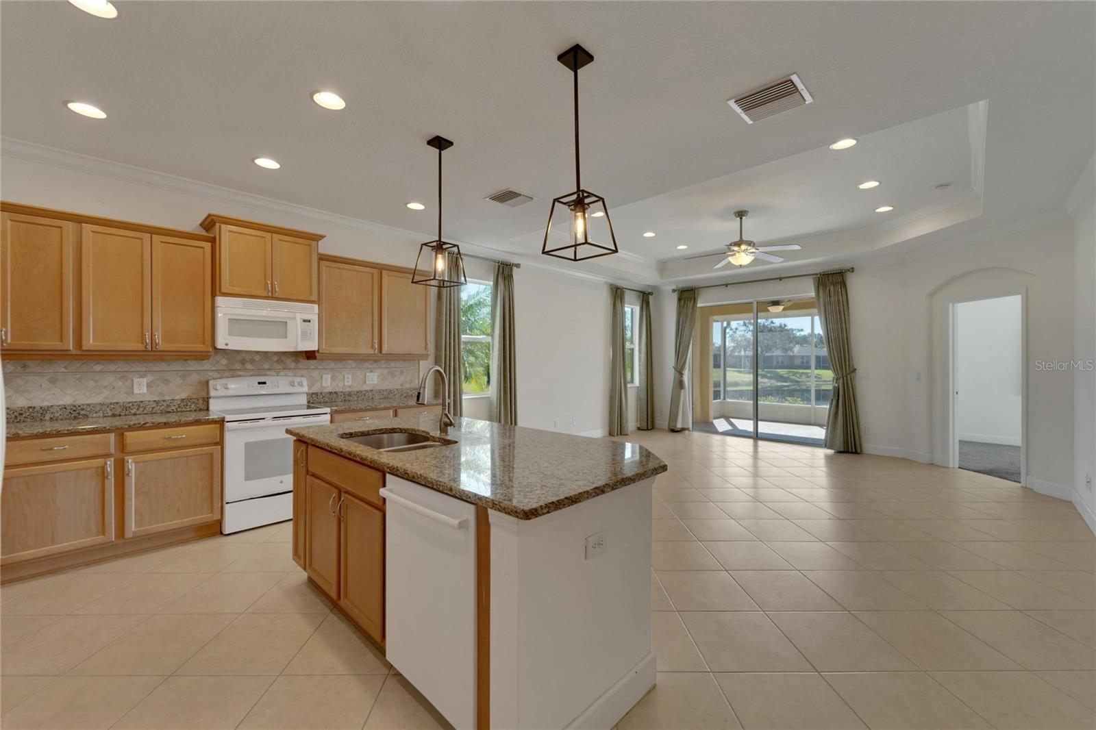 Price Improvement!!! +++*$2000.00 CREDIT TO BUYERS FOR NEW REFRIGERATOR AND STOVE* NO HOA FEES FROM APRIL 1 till March 31! Now is your time to start enjoying the real Florida lifestyle, with maintenance-free benefits and breathtaking water views that make it even better. Nestled in the highly desired King’s Point’s Nottingham Villas, this 2-bedroom 2-bath "Mahogany" villa with a large den and separate dining area with tasteful upgrades, crown molding, high ceilings, newer light fixtures, epoxy flooring in the garage and screened in lanai & so much more! This marvelous home is built for the balanced lifestyle with just the right amount of privacy, yet a stunning open floor plan. The home boasts neutral tones with solid surface flooring throughout the main living areas and granite countertops. A chef's dream spacious kitchen with light & bright appliances, tons of cabinetry, convenient rollouts, and a massive island bar. The spacious owner's suite includes a large en-suite master bath with beautiful palm tree wallpaper, which provides beautiful thoughts of paradise, dual sinks, and a walk-in closet providing plenty of storage. The second bedroom along with a spacious guest bathroom that includes a shower/tub combo located on the opposite side of the home. A bonus den that offers a great flexible space to design your home and makes for the ideal floor plan to entertain & appreciate comfortable, easy, fun and simple living. Onto one of the most amazing areas of this home is the expansive screened-in lanai with epoxy flooring and a glistening Waterview. You will be able to cherish the astonishing sunrise, sunset, impeccable wildlife, scenery and Florida breeze all from the comfort of your own home. Kings Point is an active 55+ community with an abundance of amenities including six pools, over 200 clubs, nature trails, 2 beautiful clubhouses, 2 saunas, whirlpools, and activities to keep you occupied. This is a golf cart community that has other nearby public golf courses that you can take your cart to. Some of the most beautiful Gulf Beaches are located within a 30-minute drive. Call to schedule your showing so you can enjoy this beautiful home in Kings Point.
