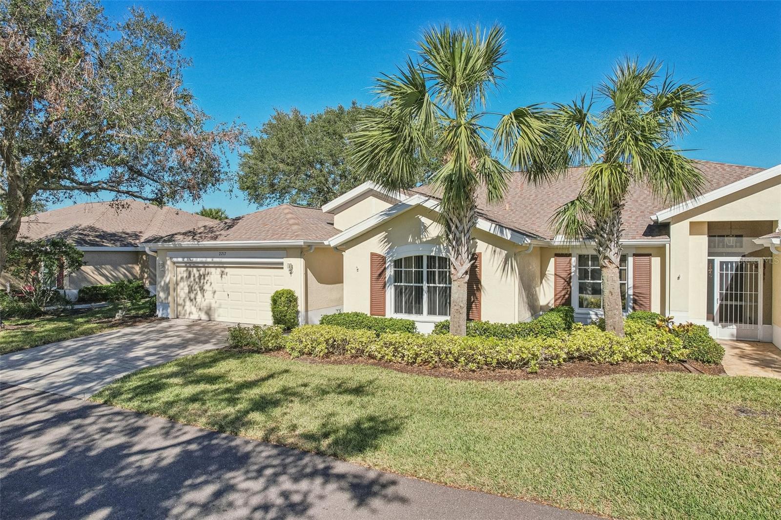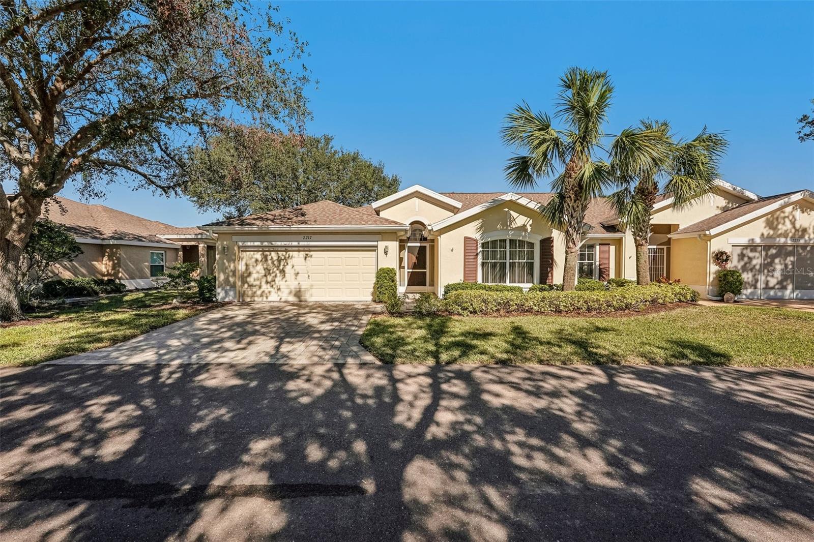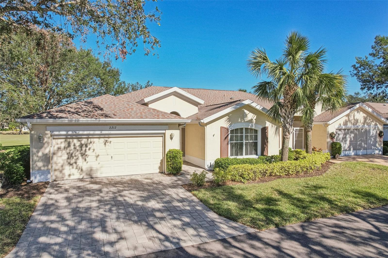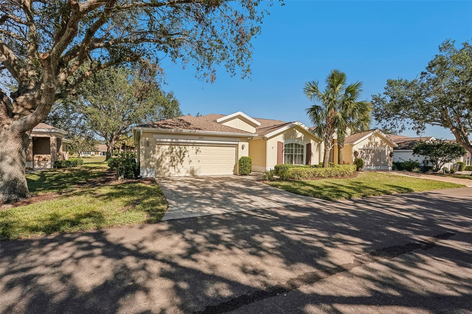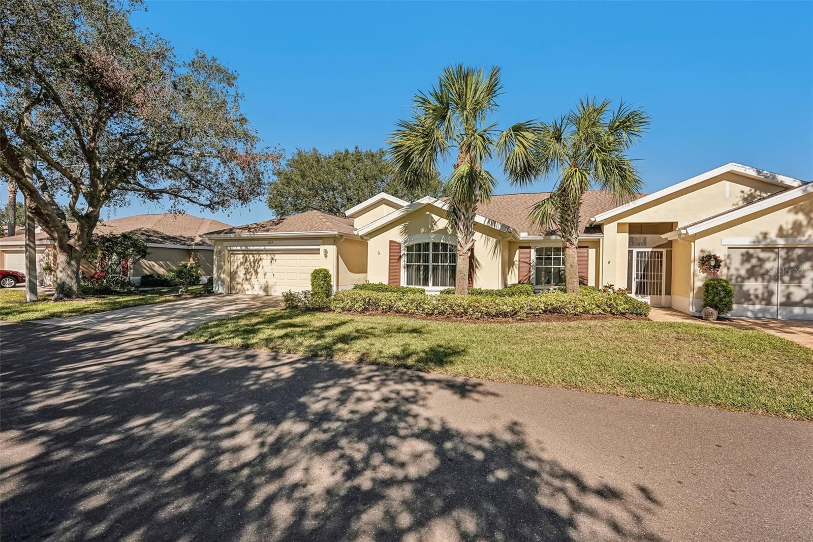 One or more photo(s) has been virtually staged. Nestled on the 9th Tee of the Scepter Golf Course, this stunning home offers breathtaking views of the lush greens and serene nature. Mature trees line the street and wrap the home in a perfect balance of shade and privacy, enhancing the tranquil setting. The thoughtfully designed Dartmouth split floor plan features 2 bedrooms, 2 bathrooms, and a versatile flex space, ideal for use as a den, office, craft room, or easily converted into a third bedroom. The heart of the home is the spacious kitchen, which boasts tons of cabinetry, plenty of counterspace, large pantry and breakfast nook with views of the back porch and golf course. The adjacent living and dining areas are bright and open, creating a seamless flow that's perfect for both relaxation and entertaining. Recent updates include, privacy shades, ceiling fans, plantation shutters, motorized garage screen and driveway pavers, adding modern touches to this charming home. Step outside to enjoy the screened in back lanai where you can unwind on the extended porch, with added heating and cooling totaling over 1900 sq. ft. This home combines comfort, functionality, and a touch of nature—perfect for those seeking a peaceful retreat with modern conveniences. Fees include cable, internet, exterior insurance, maintenance grounds, pest control, private road, security, water, trash, sewer & more! You’ll love the gated community of Kings Point, which has amazing facilities, pools, clubs and events just waiting for you to enjoy. Located between Sarasota and Tampa, this home is perfectly positioned for a convenient ride to airports, great shopping, dining, and professional entertainment. With easy access to award-winning, sandy beaches, you’ll experience the best of all worlds—without the stress of big city life. Leave the hustle behind and embrace a new chapter in Sun City Center, Florida, the state's top-ranked and most affordable 55+ retirement community.