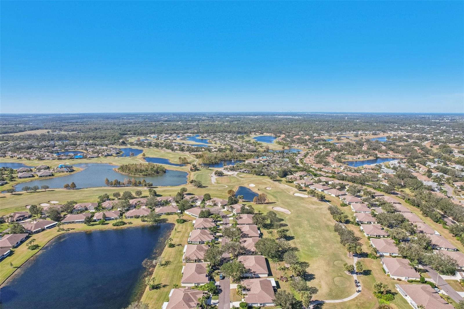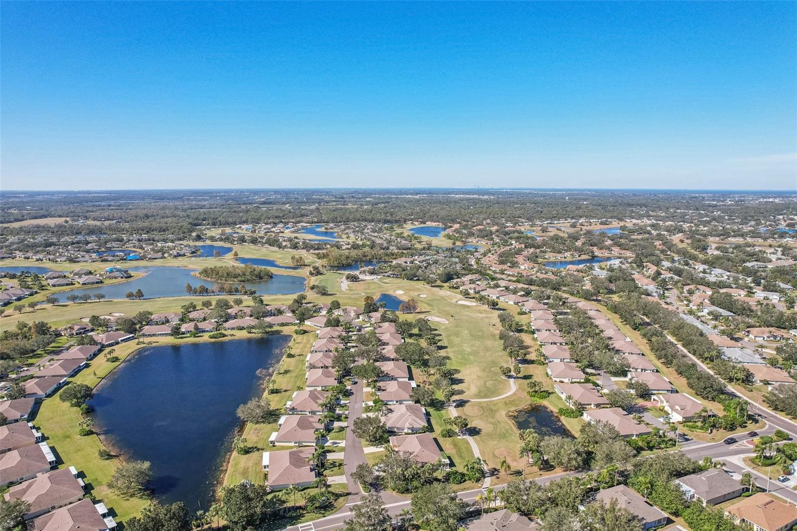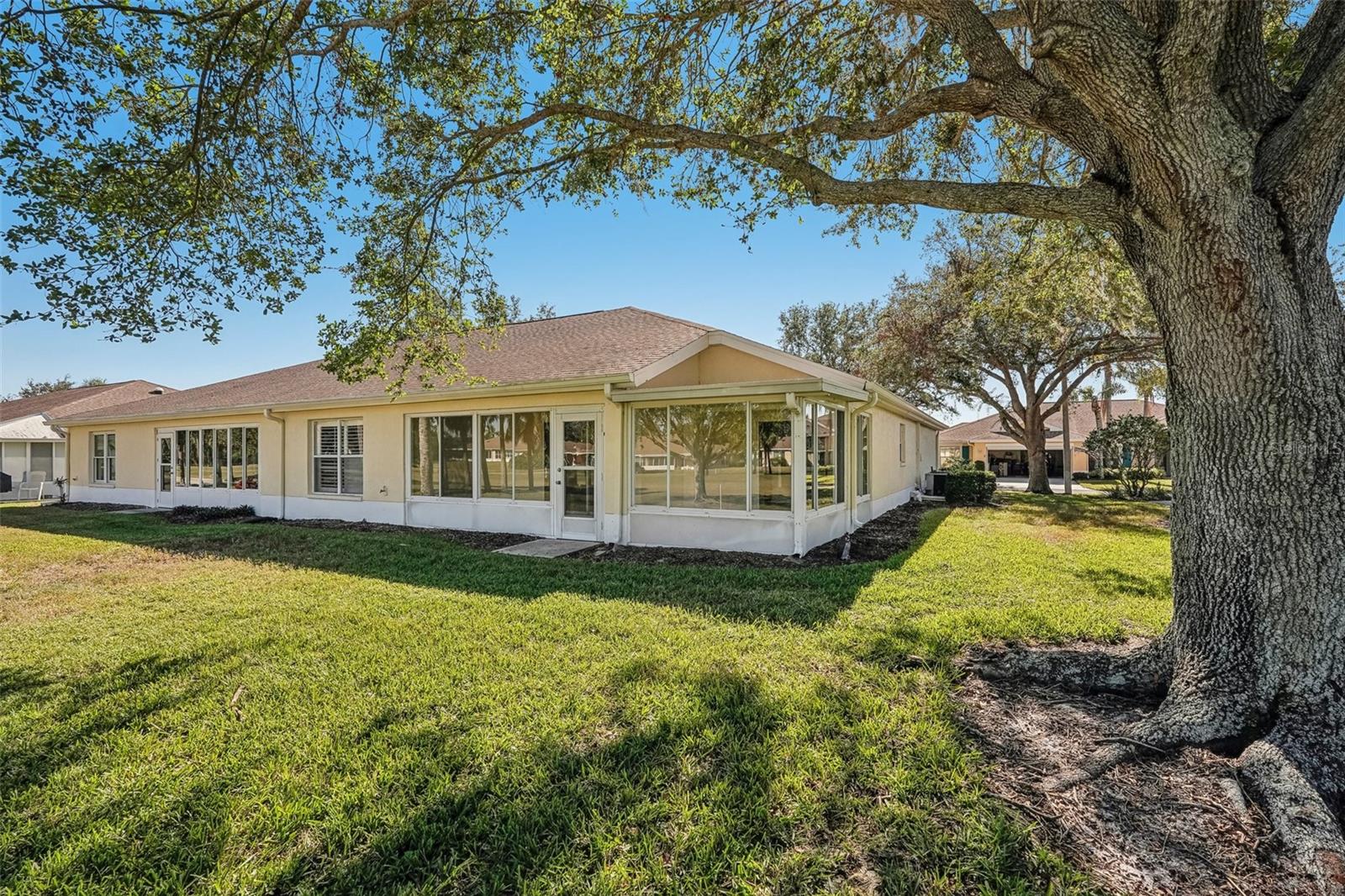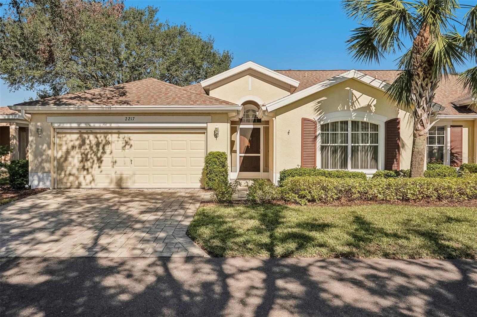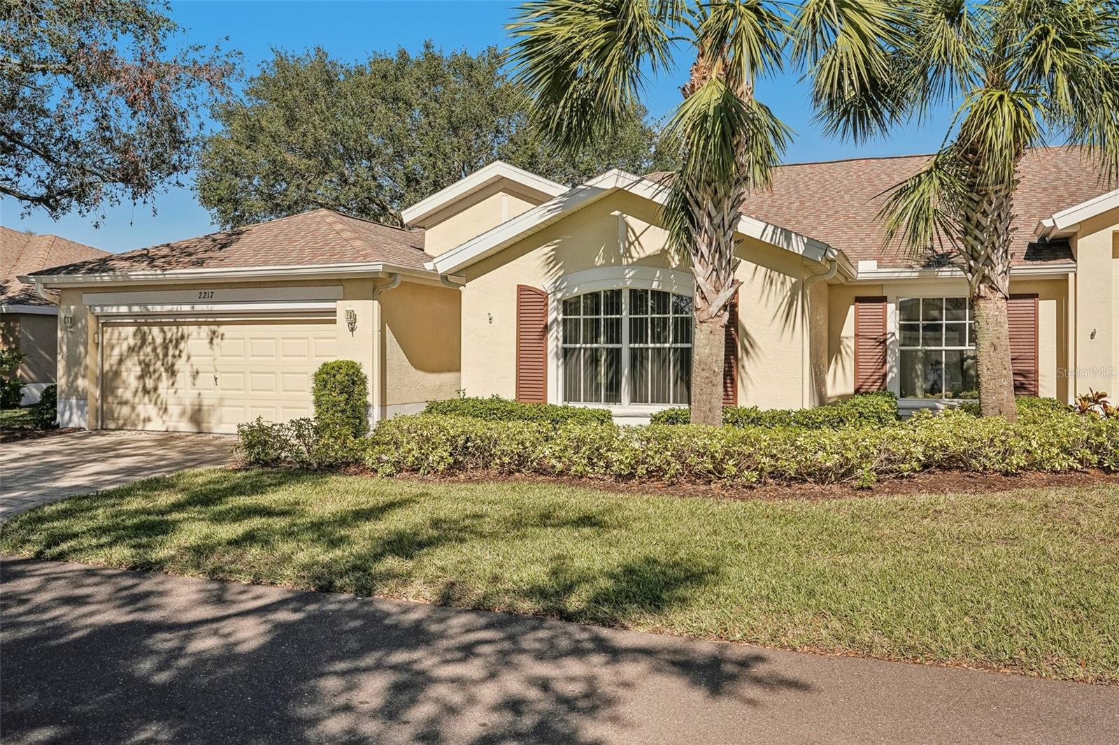 One or more photo(s) has been virtually staged. Nestled on the 9th Tee of the Scepter Golf Course, this stunning home offers breathtaking views of the lush greens and serene nature. Mature trees line the street and wrap the home in a perfect balance of shade and privacy, enhancing the tranquil setting. The thoughtfully designed Dartmouth split floor plan features 2 bedrooms, 2 bathrooms, and a versatile flex space, ideal for use as a den, office, craft room, or easily converted into a third bedroom. The heart of the home is the spacious kitchen, which boasts tons of cabinetry, plenty of counterspace, large pantry and breakfast nook with views of the back porch and golf course. The adjacent living and dining areas are bright and open, creating a seamless flow that's perfect for both relaxation and entertaining. Recent updates include, privacy shades, ceiling fans, plantation shutters, motorized garage screen and driveway pavers, adding modern touches to this charming home. Step outside to enjoy the screened in back lanai where you can unwind on the extended porch, with added heating and cooling totaling over 1900 sq. ft. This home combines comfort, functionality, and a touch of nature—perfect for those seeking a peaceful retreat with modern conveniences. Fees include cable, internet, exterior insurance, maintenance grounds, pest control, private road, security, water, trash, sewer & more! You’ll love the gated community of Kings Point, which has amazing facilities, pools, clubs and events just waiting for you to enjoy. Located between Sarasota and Tampa, this home is perfectly positioned for a convenient ride to airports, great shopping, dining, and professional entertainment. With easy access to award-winning, sandy beaches, you’ll experience the best of all worlds—without the stress of big city life. Leave the hustle behind and embrace a new chapter in Sun City Center, Florida, the state's top-ranked and most affordable 55+ retirement community.