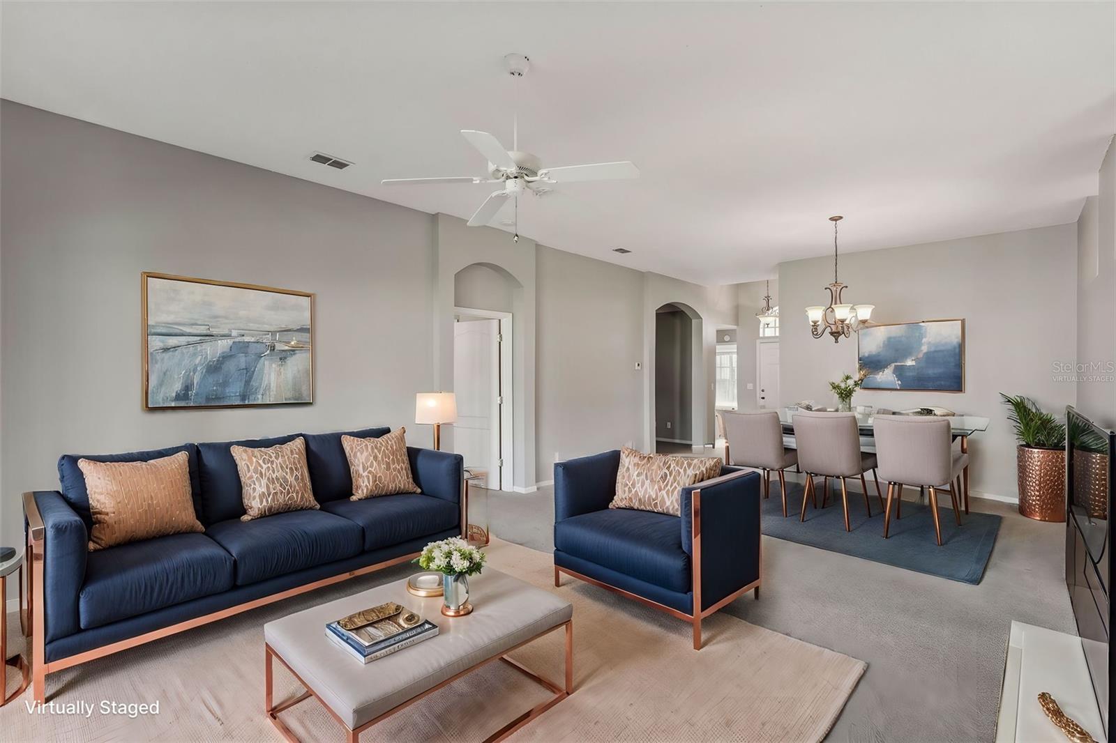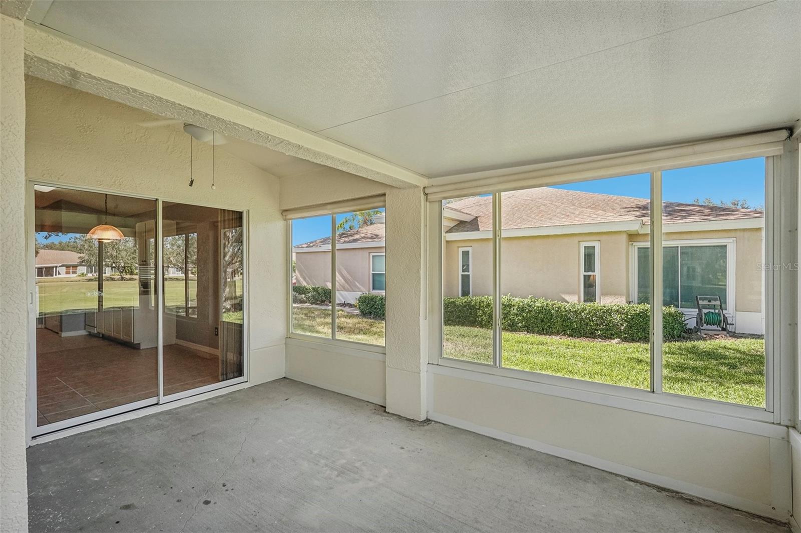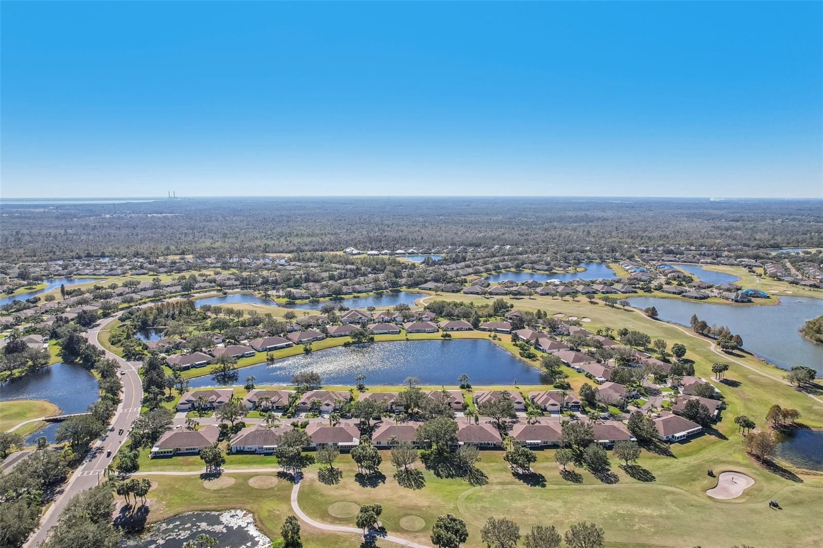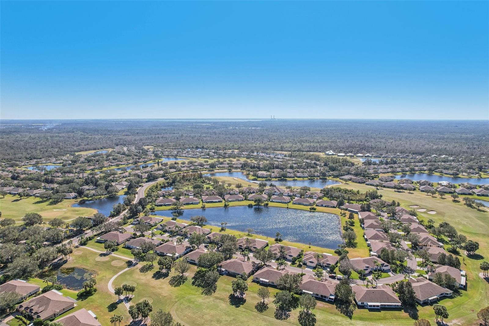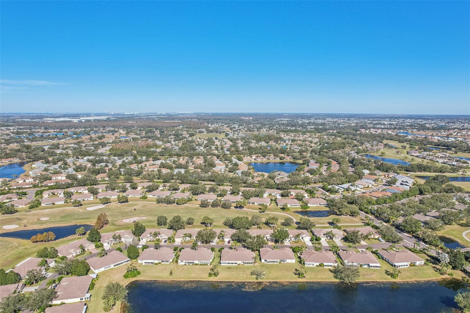 One or more photo(s) has been virtually staged. Nestled on the 9th Tee of the Scepter Golf Course, this stunning home offers breathtaking views of the lush greens and serene nature. Mature trees line the street and wrap the home in a perfect balance of shade and privacy, enhancing the tranquil setting. The thoughtfully designed Dartmouth split floor plan features 2 bedrooms, 2 bathrooms, and a versatile flex space, ideal for use as a den, office, craft room, or easily converted into a third bedroom. The heart of the home is the spacious kitchen, which boasts tons of cabinetry, plenty of counterspace, large pantry and breakfast nook with views of the back porch and golf course. The adjacent living and dining areas are bright and open, creating a seamless flow that's perfect for both relaxation and entertaining. Recent updates include, privacy shades, ceiling fans, plantation shutters, motorized garage screen and driveway pavers, adding modern touches to this charming home. Step outside to enjoy the screened in back lanai where you can unwind on the extended porch, with added heating and cooling totaling over 1900 sq. ft. This home combines comfort, functionality, and a touch of nature—perfect for those seeking a peaceful retreat with modern conveniences. Fees include cable, internet, exterior insurance, maintenance grounds, pest control, private road, security, water, trash, sewer & more! You’ll love the gated community of Kings Point, which has amazing facilities, pools, clubs and events just waiting for you to enjoy. Located between Sarasota and Tampa, this home is perfectly positioned for a convenient ride to airports, great shopping, dining, and professional entertainment. With easy access to award-winning, sandy beaches, you’ll experience the best of all worlds—without the stress of big city life. Leave the hustle behind and embrace a new chapter in Sun City Center, Florida, the state's top-ranked and most affordable 55+ retirement community.