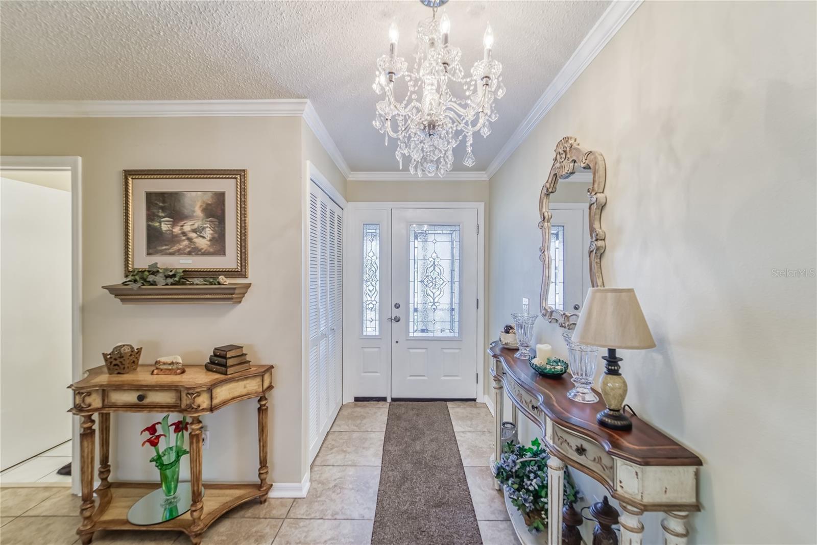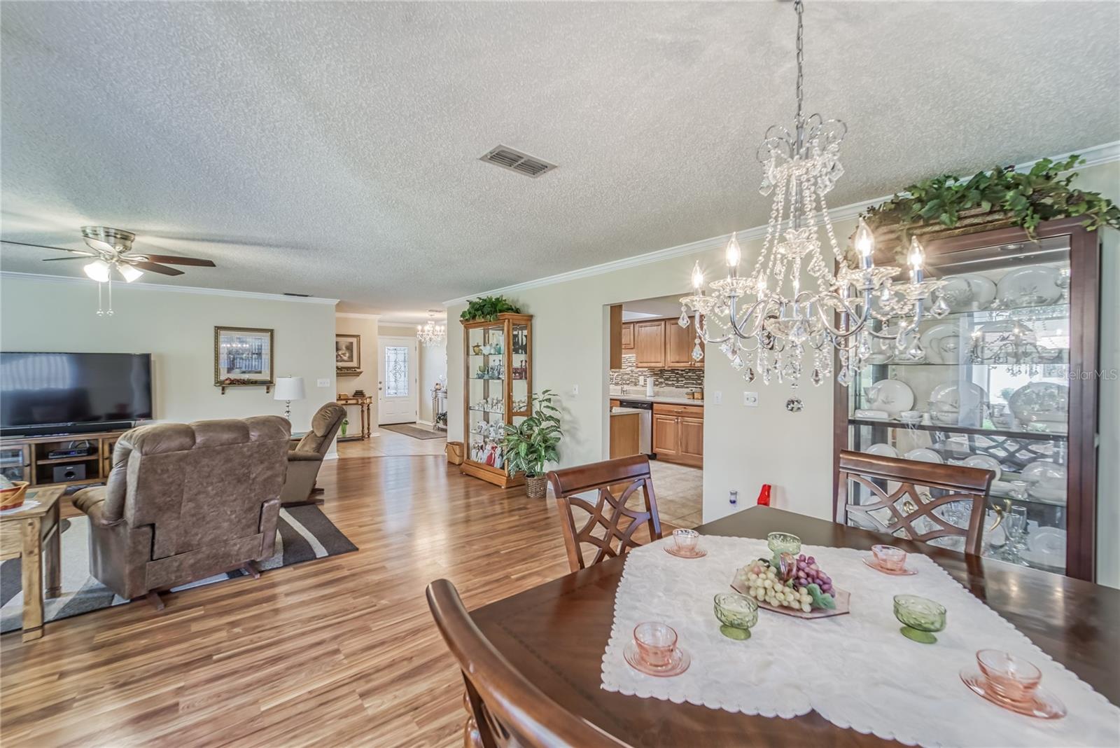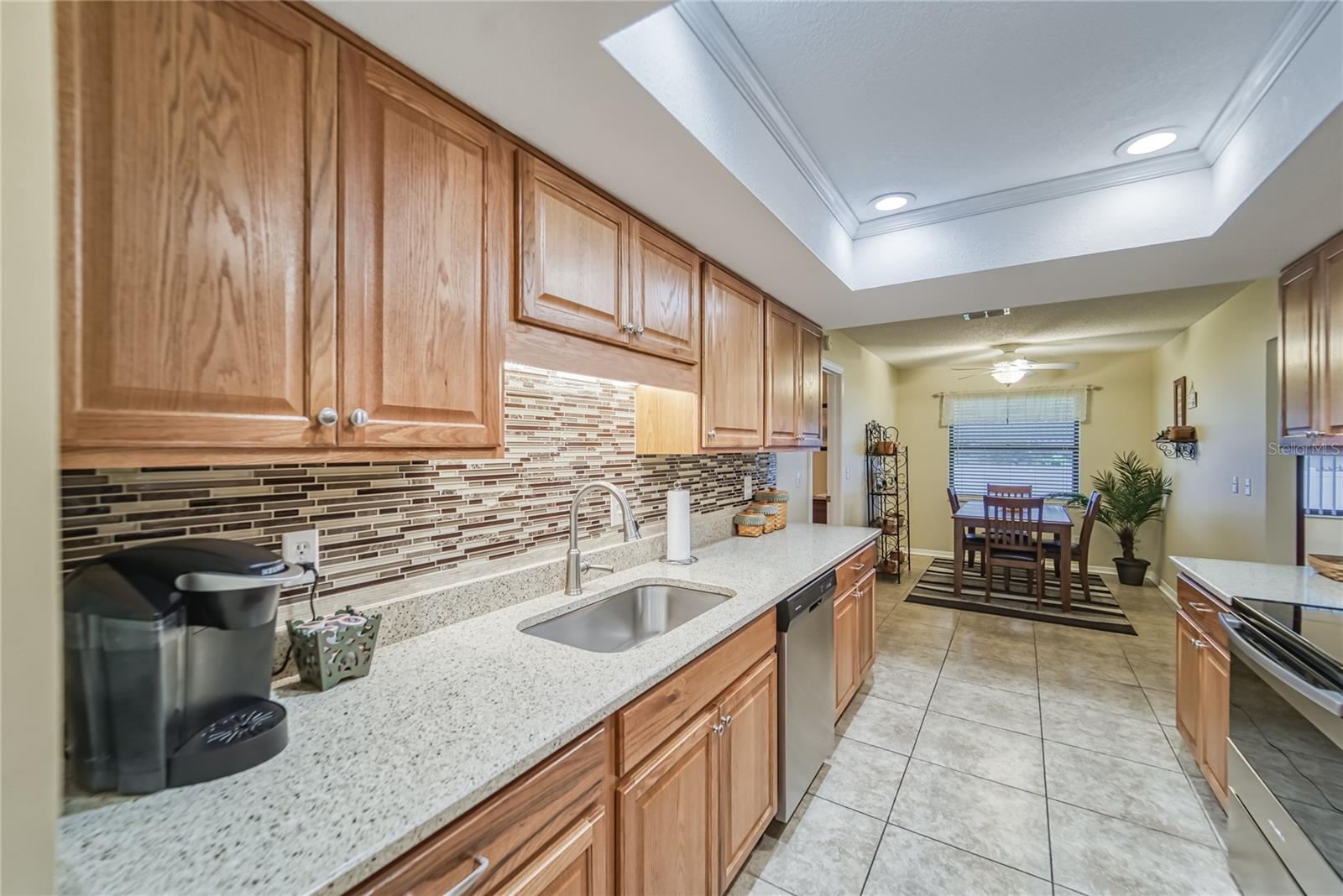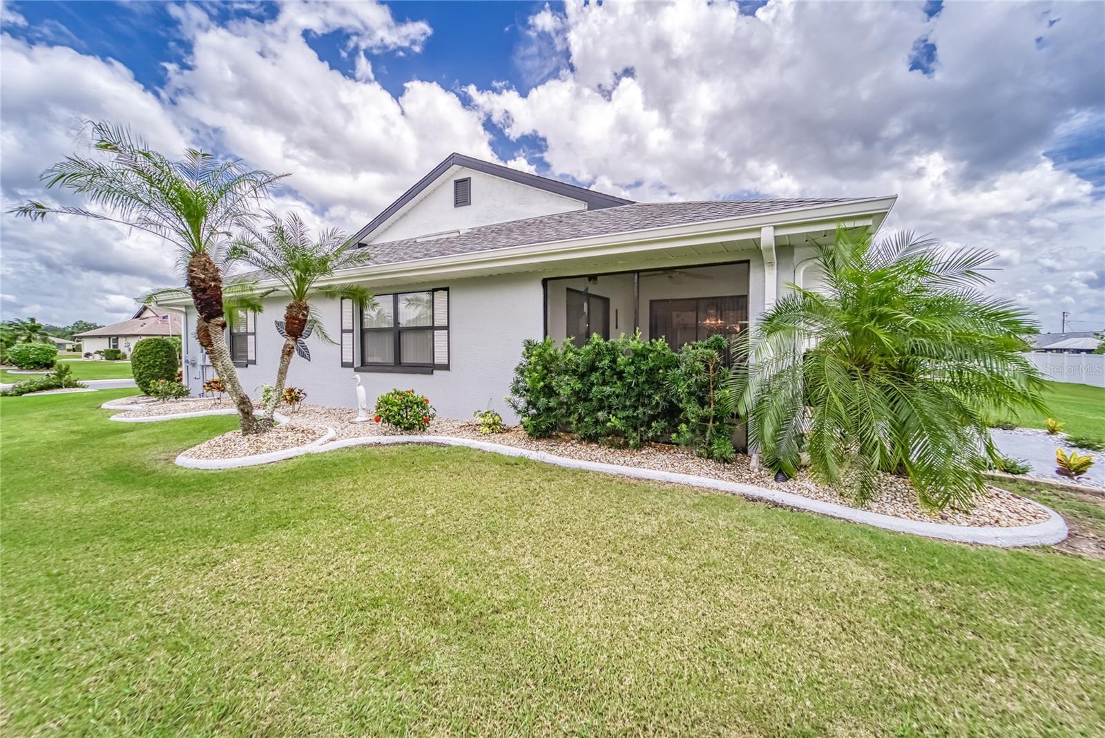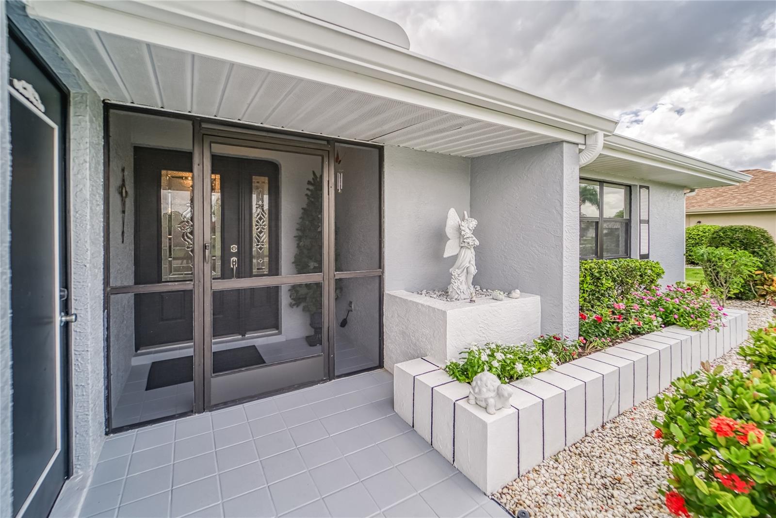 Enjoy living in the Highly Sought After Caloosa Country Club Estates golf community. This is one of the most popular active 55+ neighborhoods with a great golf course right up the street. This Sahara II extended Floor Plan Has Been Meticulously Kept and it's Noticeable as soon as you drive up and see the Amazing Curb Appeal. It is Beautifully Landscaped and Displays raised Flower Beds, a Solar Lit Walkway & an Intricately detailed Driveway. Once you walk through the screened in front porch you will notice and appreciate the Pride of ownership & all the detailed upgrades in this MOVE-IN-READY Extended floorplan Sahara II home! The kitchen has a beautiful Mosaic Backsplash, REAL hardwood oak cabinets, Quartz countertops, Stainless Steal appliances & a tray ceiling. Both bathrooms have been remodeled. Through out the home you will see crown molding, porcelain tile flooring and wood flooring, ceiling fans & amazing chandeliers. In the garage you will notice the commercial grade epoxy flooring, a whole house surge protector & a water softening system. The rear of the home has a great screened in Lanai, a concrete patio and plenty of space for a pool. The roof is composed of a 50yr architectural shingle. Sun City Center is one of the most affordable active living senior communities, within the 2 Clubhouses you can enjoy swimming in 3 heated pools, a state of the art fitness center, a sports complex, a vast amount of social & sports clubs, an arts & crafts building & multiple golf courses AND it's all accessible by golf cart!!! Near by you will find multiple medical facilities, pharmacies, fine dining & Shopping. Nothing beats a vacation style active retirement life!!!