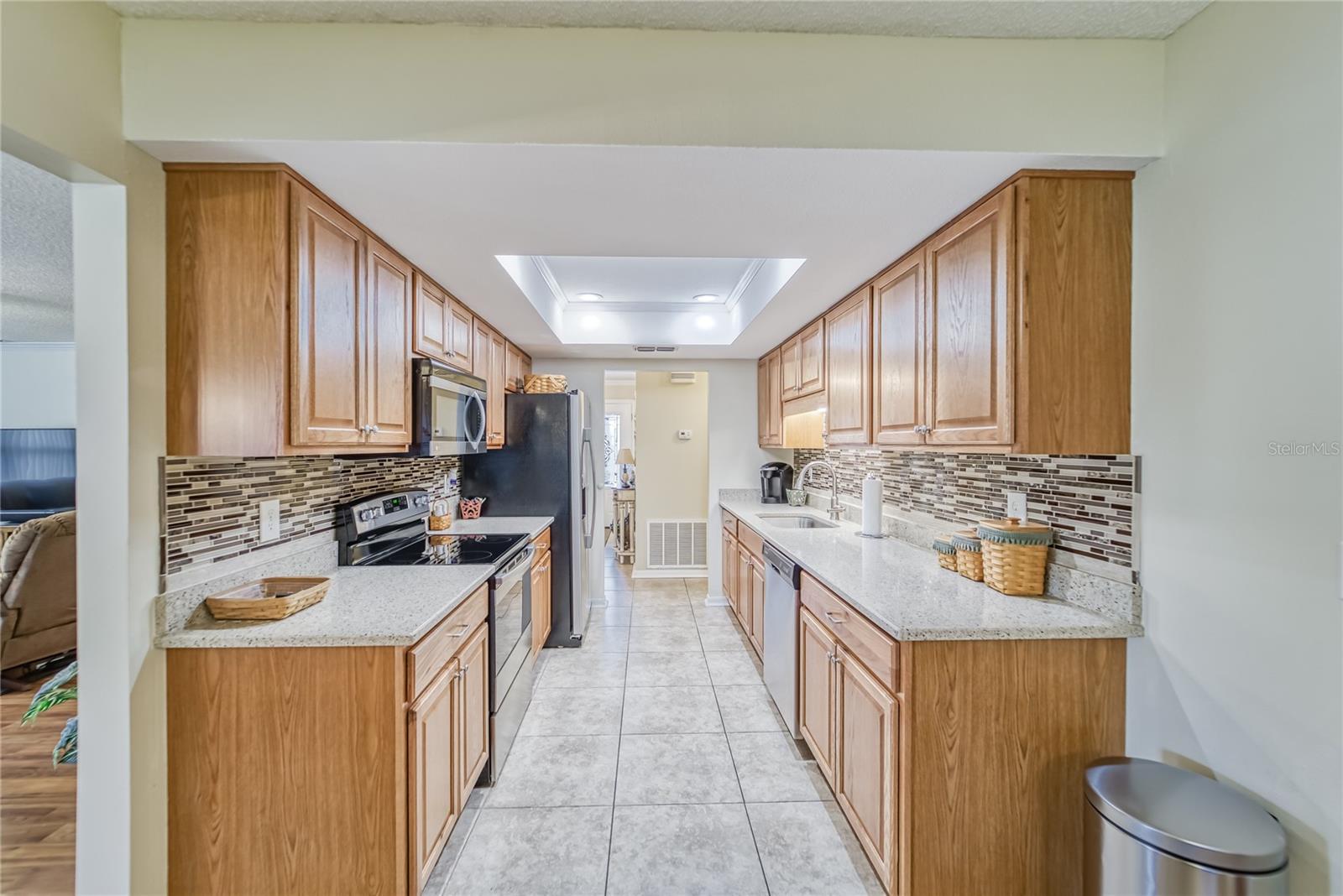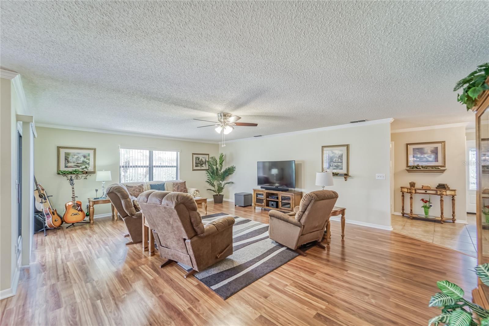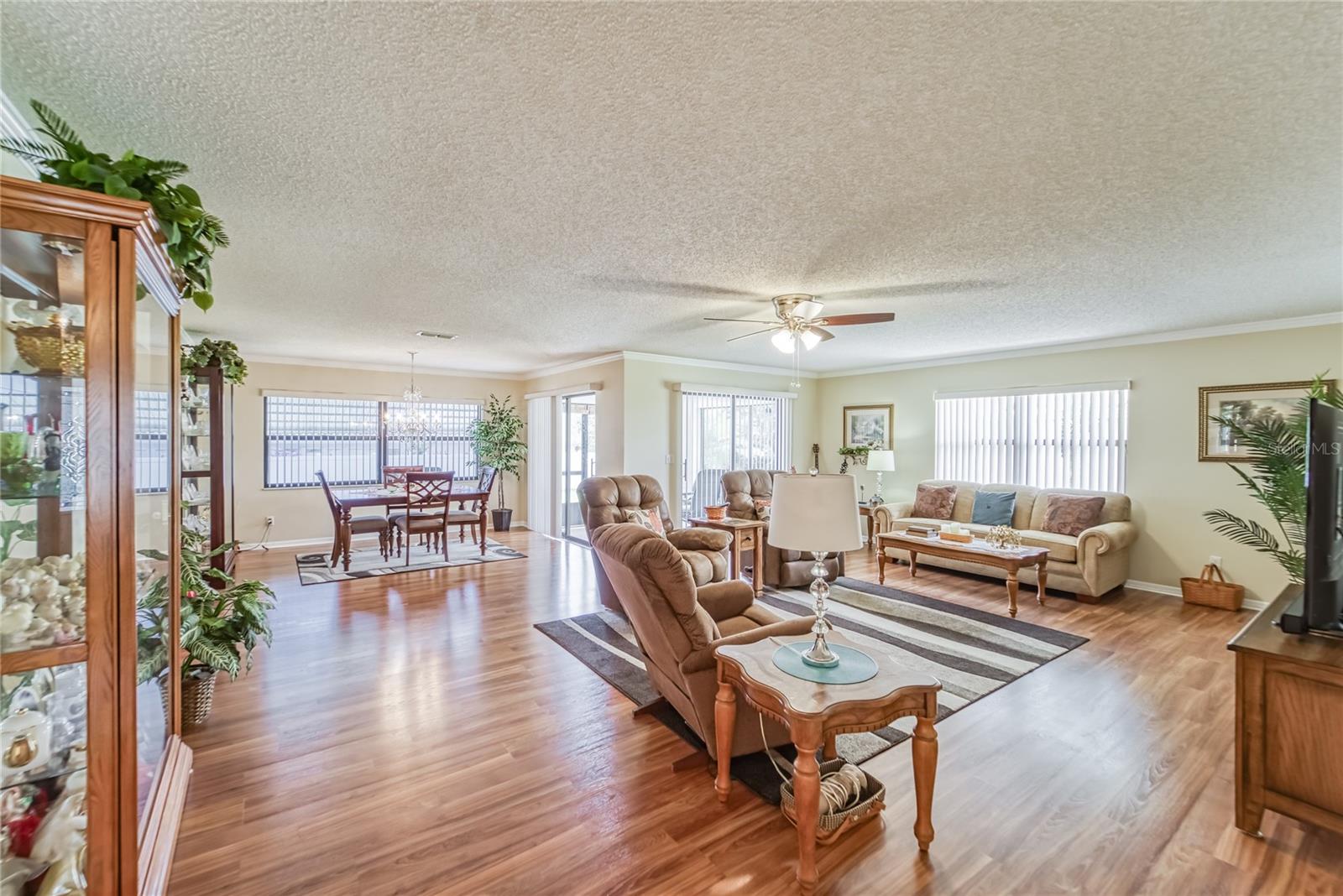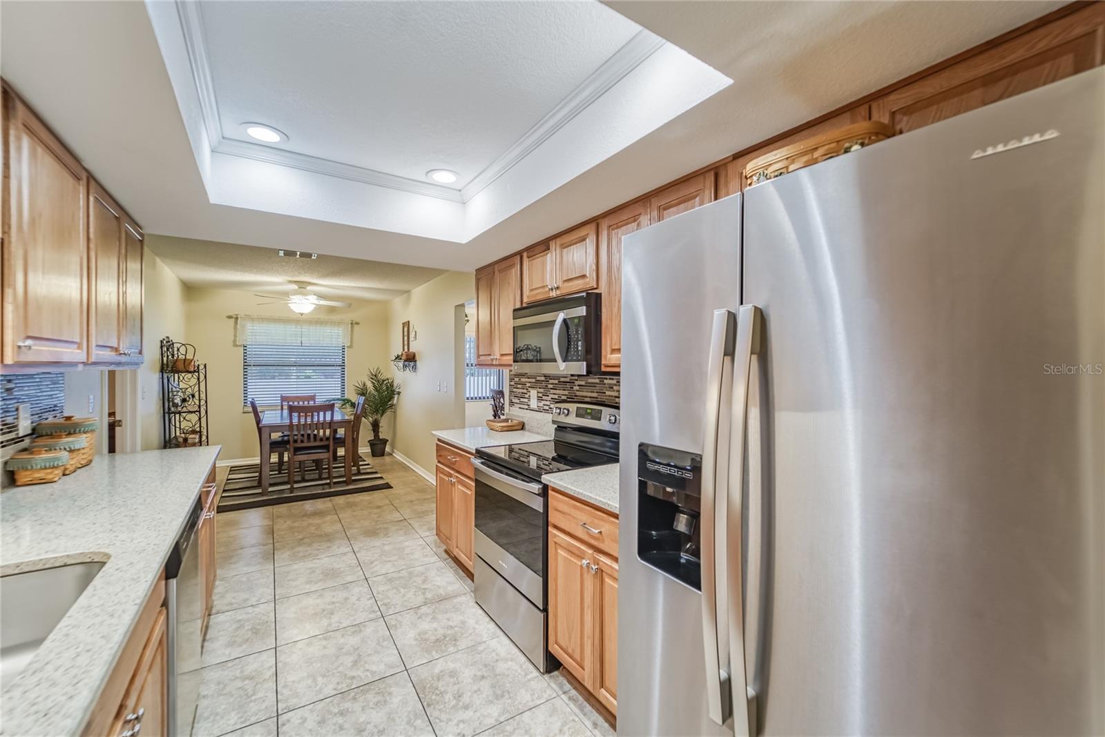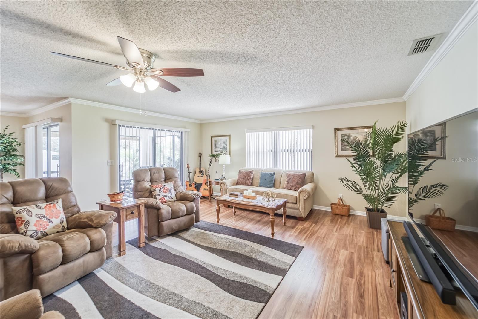Enjoy living in the Highly Sought After Caloosa Country Club Estates golf community. This is one of the most popular active 55+ neighborhoods with a great golf course right up the street. This Sahara II extended Floor Plan Has Been Meticulously Kept and it's Noticeable as soon as you drive up and see the Amazing Curb Appeal. It is Beautifully Landscaped and Displays raised Flower Beds, a Solar Lit Walkway & an Intricately detailed Driveway. Once you walk through the screened in front porch you will notice and appreciate the Pride of ownership & all the detailed upgrades in this MOVE-IN-READY Extended floorplan Sahara II home! The kitchen has a beautiful Mosaic Backsplash, REAL hardwood oak cabinets, Quartz countertops, Stainless Steal appliances & a tray ceiling. Both bathrooms have been remodeled. Through out the home you will see crown molding, porcelain tile flooring and wood flooring, ceiling fans & amazing chandeliers. In the garage you will notice the commercial grade epoxy flooring, a whole house surge protector & a water softening system. The rear of the home has a great screened in Lanai, a concrete patio and plenty of space for a pool. The roof is composed of a 50yr architectural shingle. Sun City Center is one of the most affordable active living senior communities, within the 2 Clubhouses you can enjoy swimming in 3 heated pools, a state of the art fitness center, a sports complex, a vast amount of social & sports clubs, an arts & crafts building & multiple golf courses AND it's all accessible by golf cart!!! Near by you will find multiple medical facilities, pharmacies, fine dining & Shopping. Nothing beats a vacation style active retirement life!!!