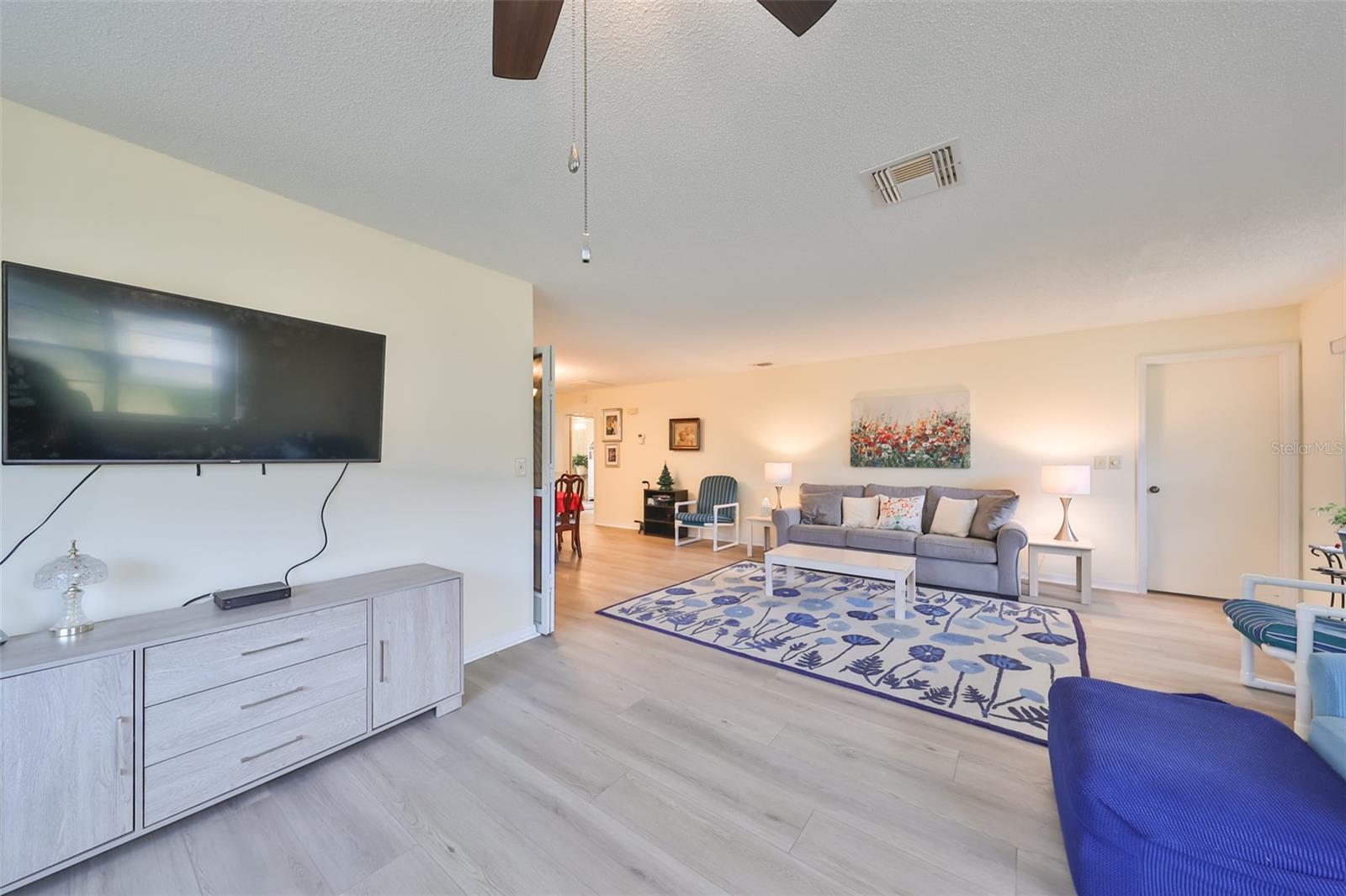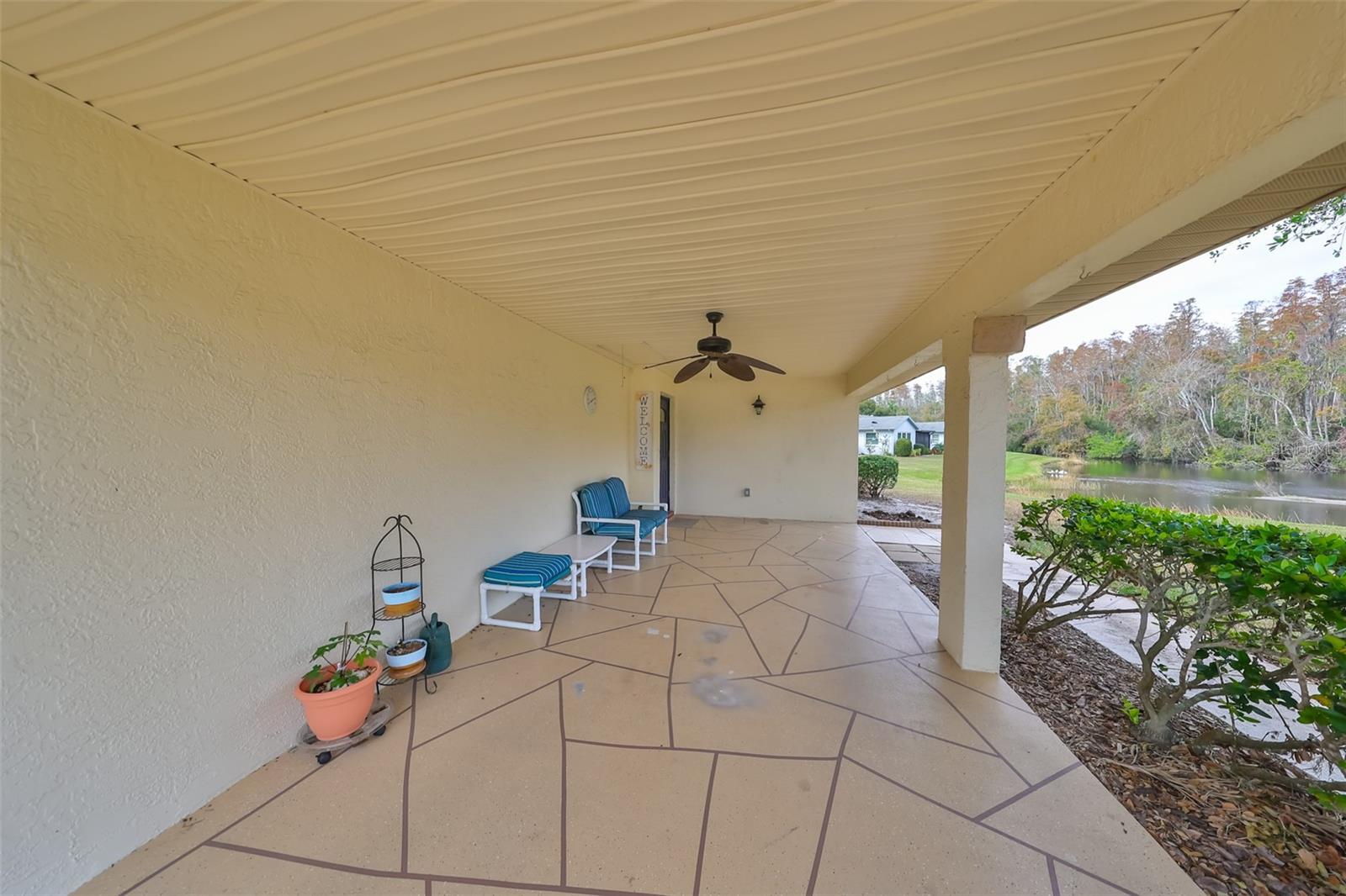 Whether you're a seasonal resident or looking to make your new home here, this updated condo on a peaceful cul-de-sac delivers the best of Florida living with a private conservation water view. This split floor plan ensures privacy and features an open concept with 2 bedrooms and 2 full bathrooms. Step into the living areas and look out the oversized picture window to the expansive water view and a large attached carport. This condo is freshly painted and features new wood look vinyl plank flooring throughout all main areas and bedrooms, a new primary walk-in shower ($10,000), a 2017 HVAC, a 2023 Water Heater, a 2023 Electric panel, and disconnects replaced. No worries about maintaining your exterior, it is almost all included in the condo fees! Fees include cable, internet, exterior insurance, maintenance grounds, pest control, private road, security, water, trash, sewer, and more. Kings Point, a thriving, gated 55+ community, has amazing facilities, pools, clubs, and events ready for you to enjoy. Two clubhouses, an 850-seat community theatre, six heated pools, pickleball, tennis, golf, fitness center, & sports/social clubs to join in abundance! Located between Sarasota and Tampa, this home is a short commute to airports, shopping, dining, and professional entertainment. Enjoy easy access to award-winning beaches. Sun City Center, Florida, is the nation's top-ranked 55+ community, according to Realtor.com.