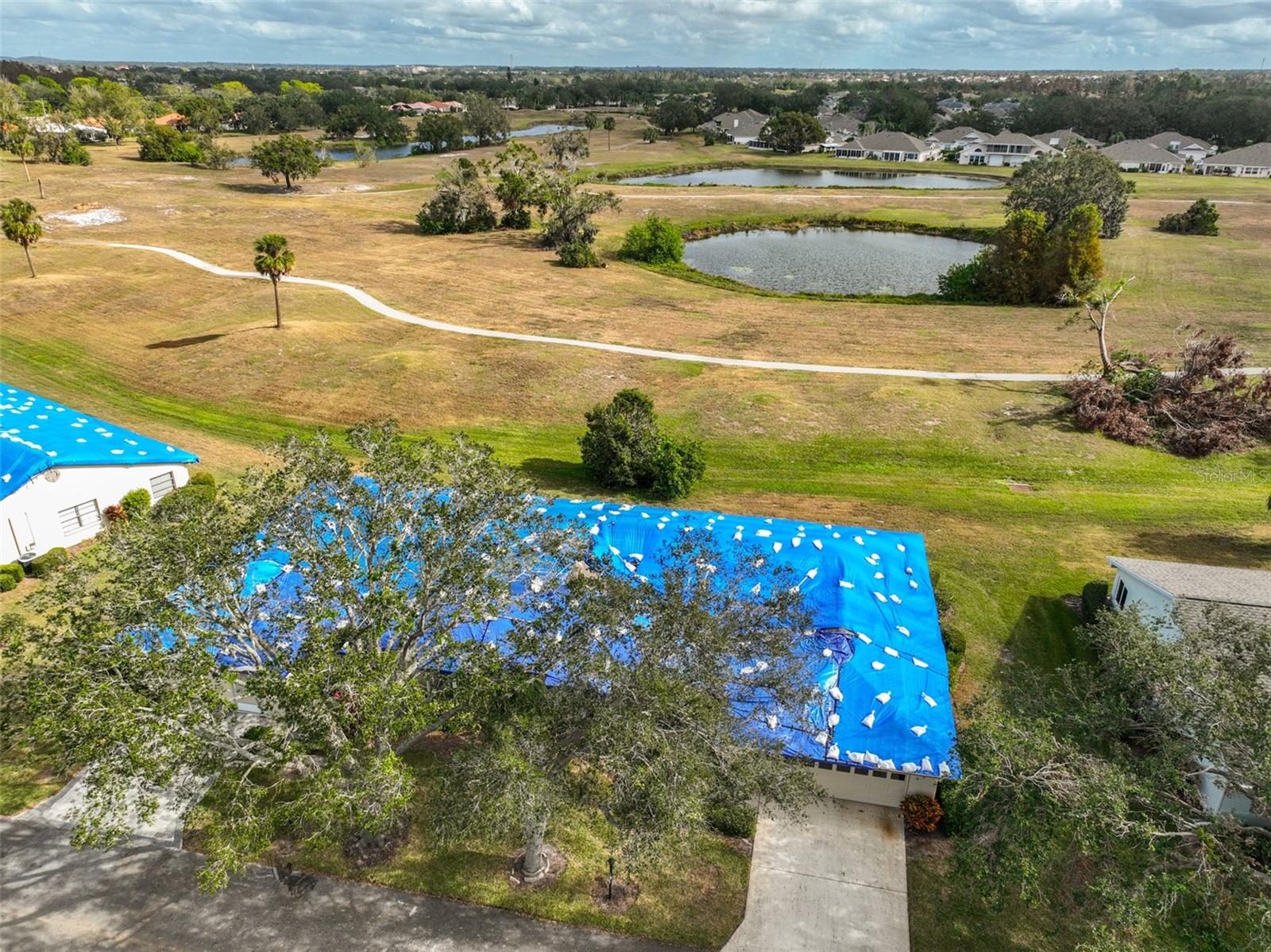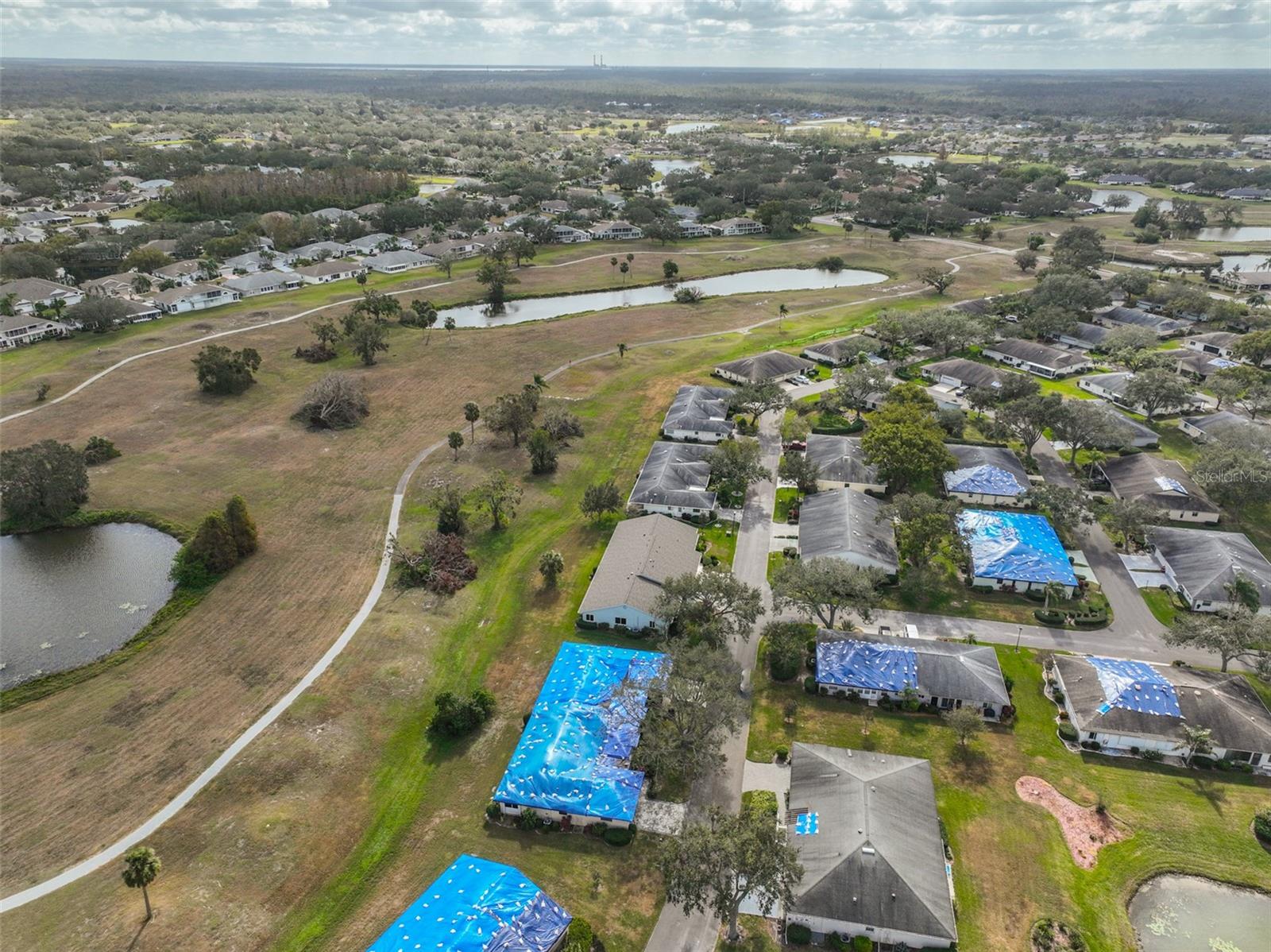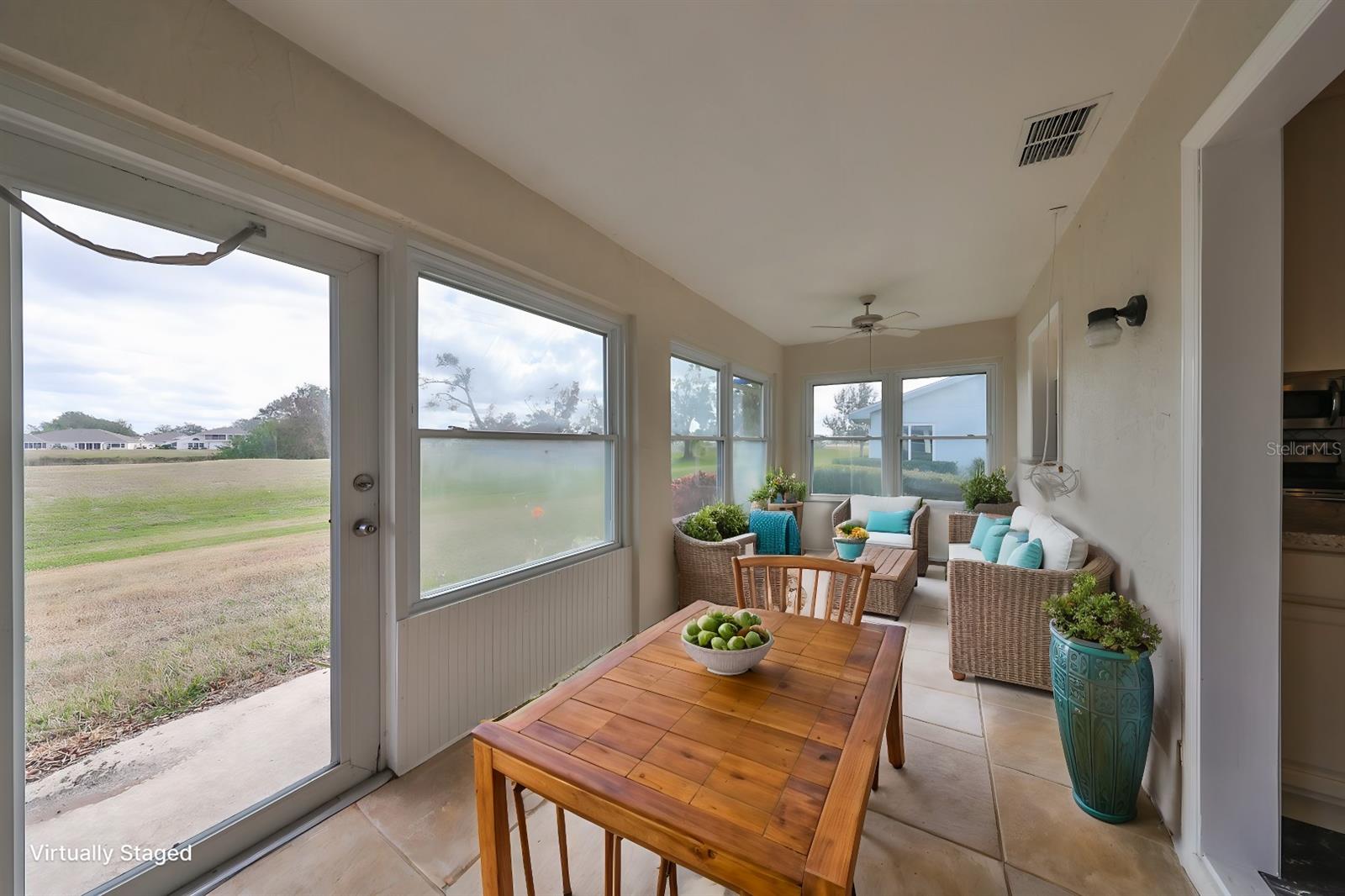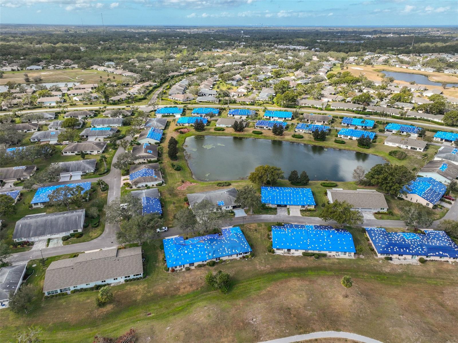 One or more photo(s) has been virtually staged. AVAILABLE FOR IMMEDIATE MOVE-IN! NEW ROOF TO BE COMPLETED BY 1 AUGUST! Discover the vibrant 55+ lifestyle in the award-winning Kings Point community of Sun City Center, named the 2024 #1 Retirement Community in America by Realtor.com and Travel and Leisure Magazine. Live your best life under the Florida sun in this charming August residence featuring 2 bedrooms, 2 bathrooms, and a 2-car garage -- ready for you to make it your dream home! This home welcomes you with a covered screened front patio and a newer garage door with a roll-down screen. Step inside through the elegant leaded glass front door and enjoy the fresh feel of new paint and new carpet throughout. A new HVAC system ensures year-round comfort, and the glass-enclosed Florida room offers serene views of the retired golf course and pond. The kitchen has been tastefully updated with wood cabinets, a tile backsplash, and stainless-steel appliances. The laundry room, equipped with a stackable washer and dryer, provides ample space for additional storage. The main bathroom features a safe step-in tub/shower combo and a double-sink vanity. Other updates include repiped plumbing and several upgraded windows. Located in the gated golf community of Kings Point, this home offers more than just comfort -- it delivers an extraordinary lifestyle. Here, your second mode of transportation is often a golf cart! Enjoy a wealth of amenities, including Recreation facilities, Indoor and outdoor heated pools, Fitness centers, Computer labs, Arts and crafts studios, A spacious 800+ seat auditorium, Tennis and pickleball courts, Lawn bowling, Numerous clubs and activities. Conveniently located near Tampa, Sarasota, St. Petersburg, and the Tampa International Airport, Kings Point is close to world-class shopping, dining, beaches, theaters, and sporting events. Come and experience the pinnacle of 55+ living at Kings Point -- schedule your tour today!