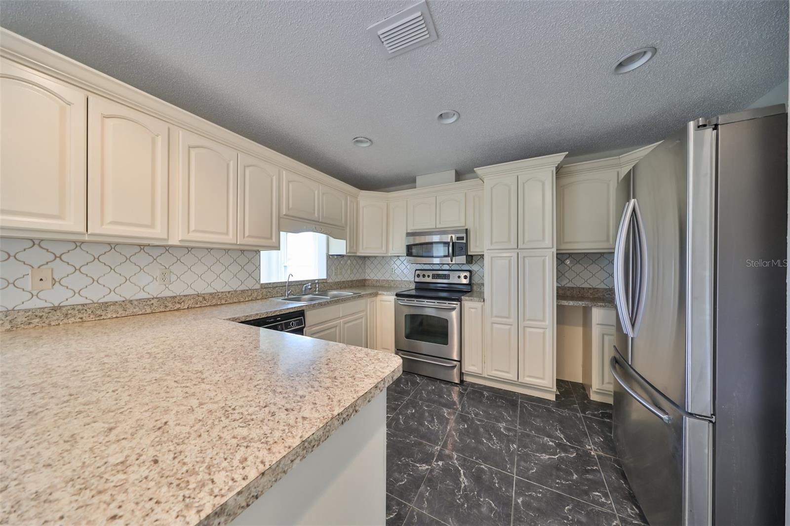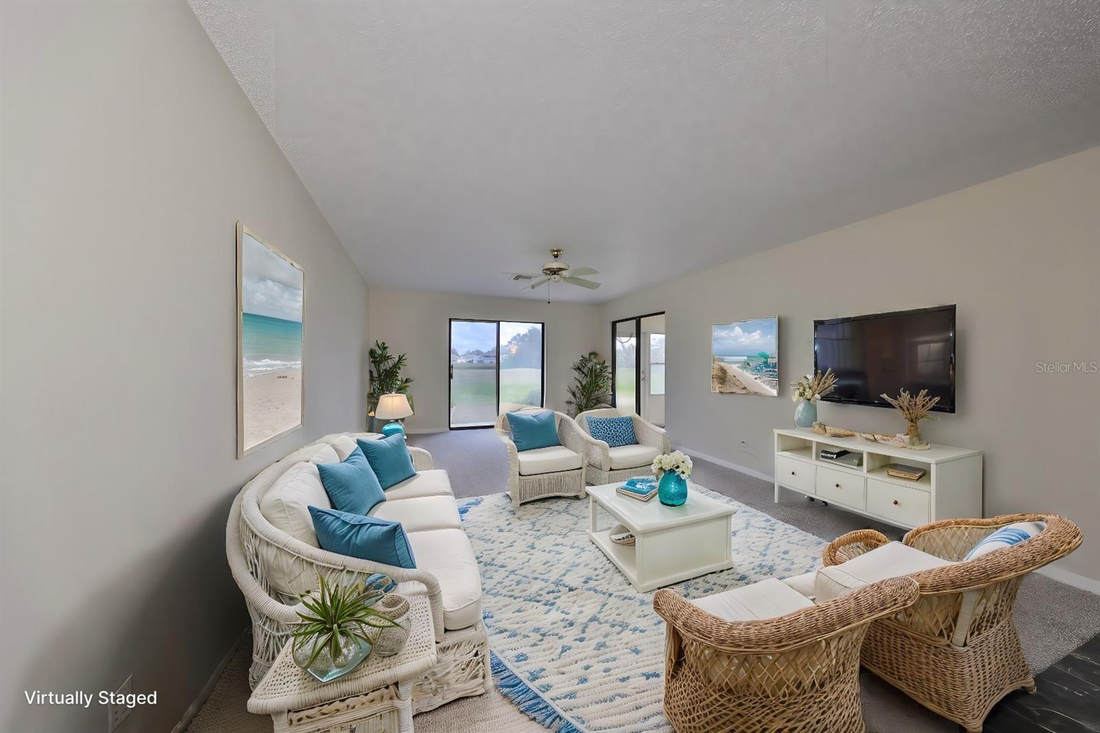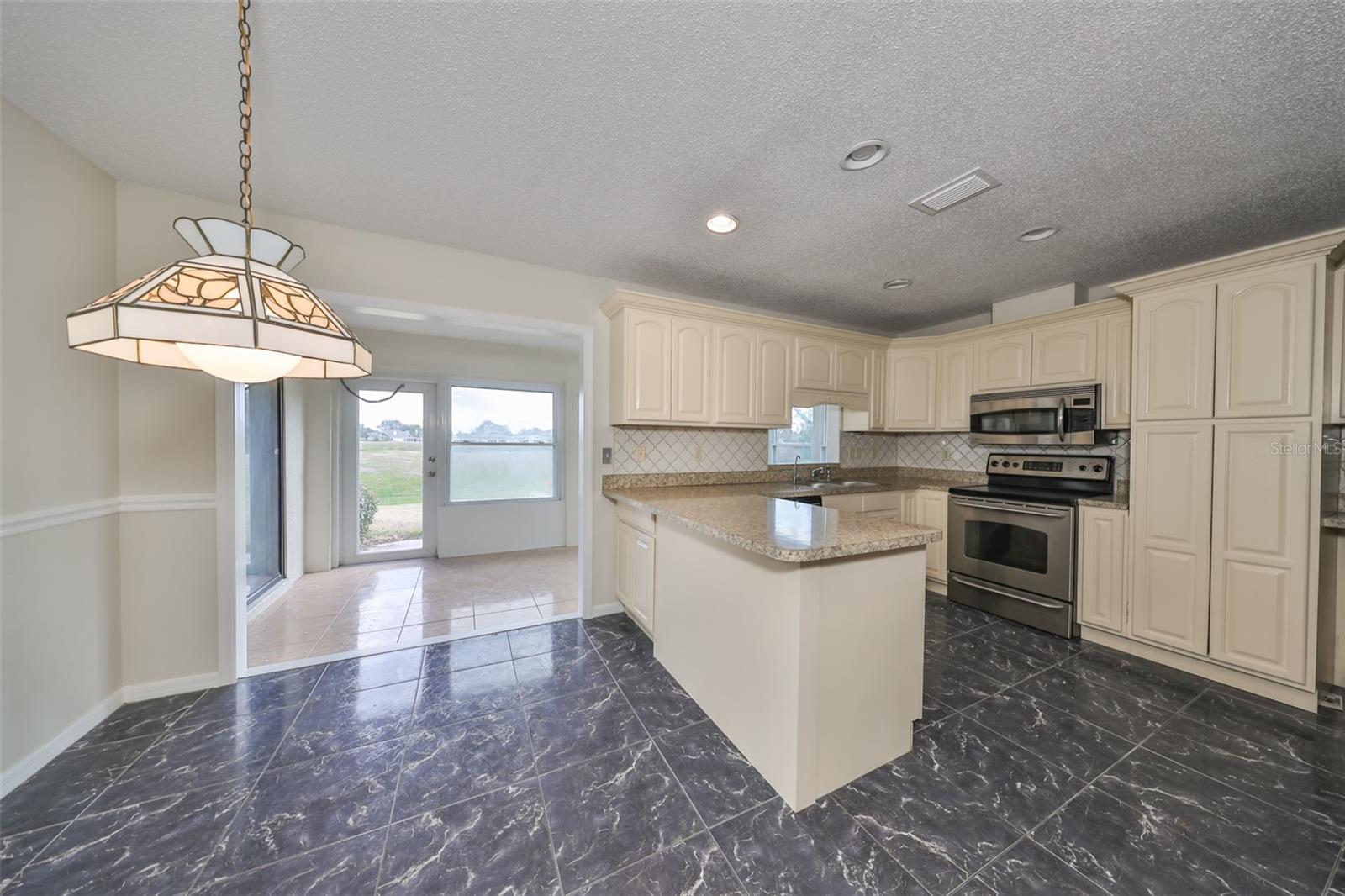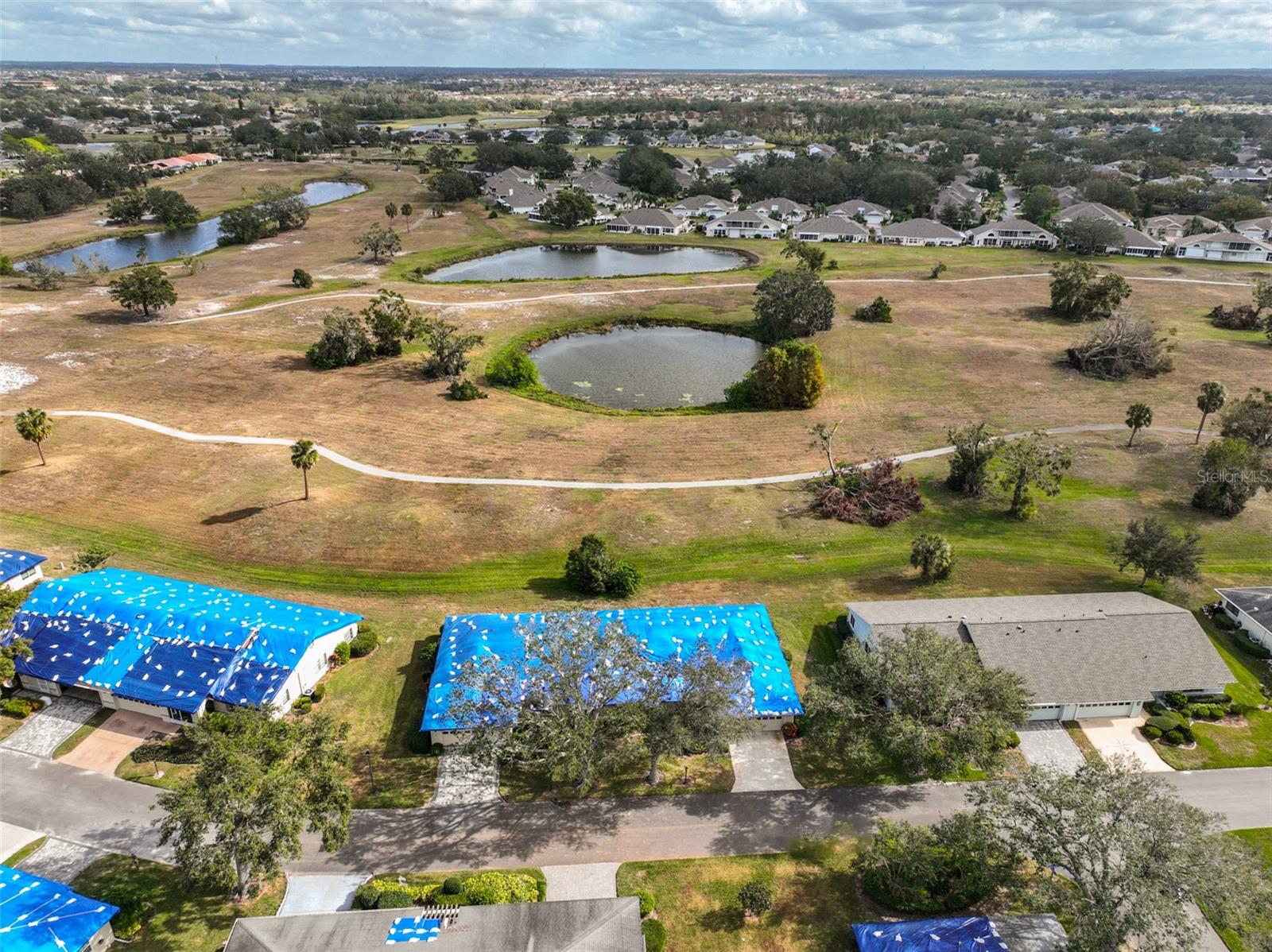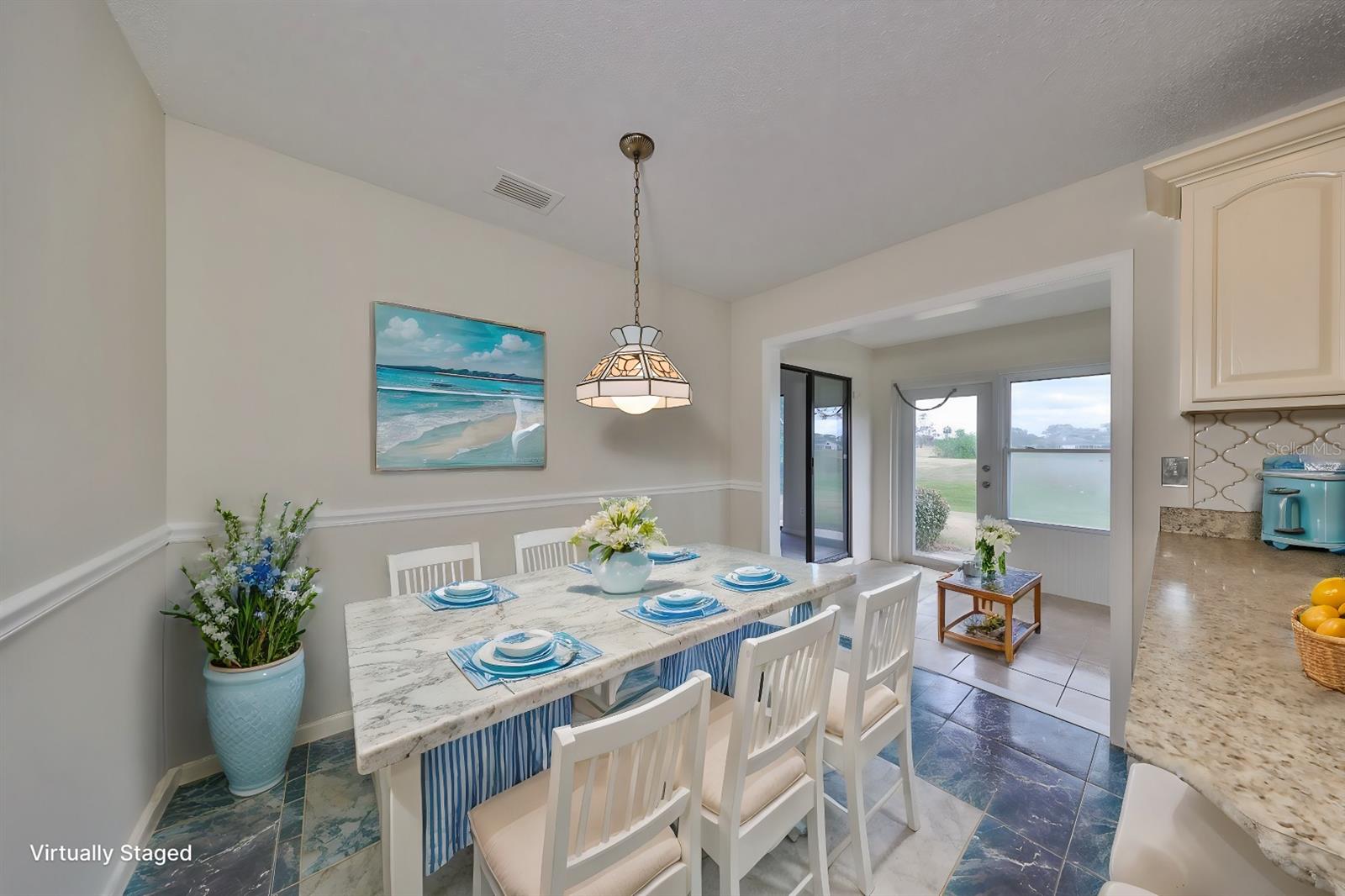 One or more photo(s) has been virtually staged. AVAILABLE FOR IMMEDIATE MOVE-IN! NEW ROOF TO BE COMPLETED BY 1 AUGUST! Discover the vibrant 55+ lifestyle in the award-winning Kings Point community of Sun City Center, named the 2024 #1 Retirement Community in America by Realtor.com and Travel and Leisure Magazine. Live your best life under the Florida sun in this charming August residence featuring 2 bedrooms, 2 bathrooms, and a 2-car garage -- ready for you to make it your dream home! This home welcomes you with a covered screened front patio and a newer garage door with a roll-down screen. Step inside through the elegant leaded glass front door and enjoy the fresh feel of new paint and new carpet throughout. A new HVAC system ensures year-round comfort, and the glass-enclosed Florida room offers serene views of the retired golf course and pond. The kitchen has been tastefully updated with wood cabinets, a tile backsplash, and stainless-steel appliances. The laundry room, equipped with a stackable washer and dryer, provides ample space for additional storage. The main bathroom features a safe step-in tub/shower combo and a double-sink vanity. Other updates include repiped plumbing and several upgraded windows. Located in the gated golf community of Kings Point, this home offers more than just comfort -- it delivers an extraordinary lifestyle. Here, your second mode of transportation is often a golf cart! Enjoy a wealth of amenities, including Recreation facilities, Indoor and outdoor heated pools, Fitness centers, Computer labs, Arts and crafts studios, A spacious 800+ seat auditorium, Tennis and pickleball courts, Lawn bowling, Numerous clubs and activities. Conveniently located near Tampa, Sarasota, St. Petersburg, and the Tampa International Airport, Kings Point is close to world-class shopping, dining, beaches, theaters, and sporting events. Come and experience the pinnacle of 55+ living at Kings Point -- schedule your tour today!