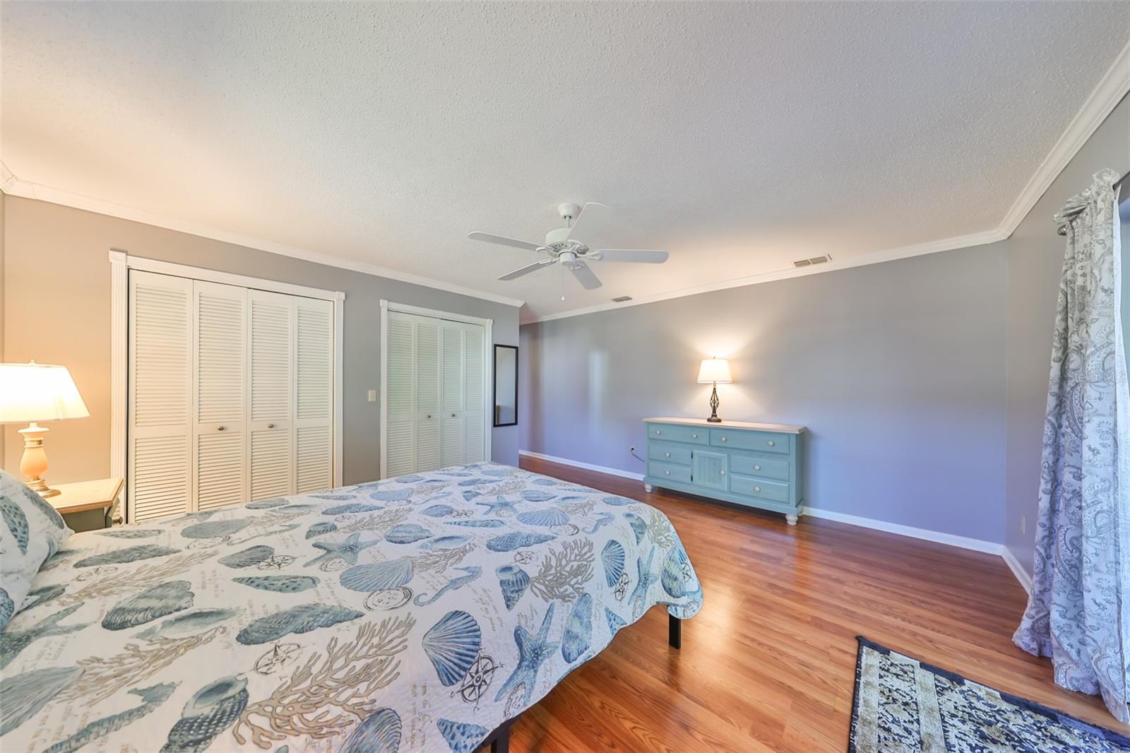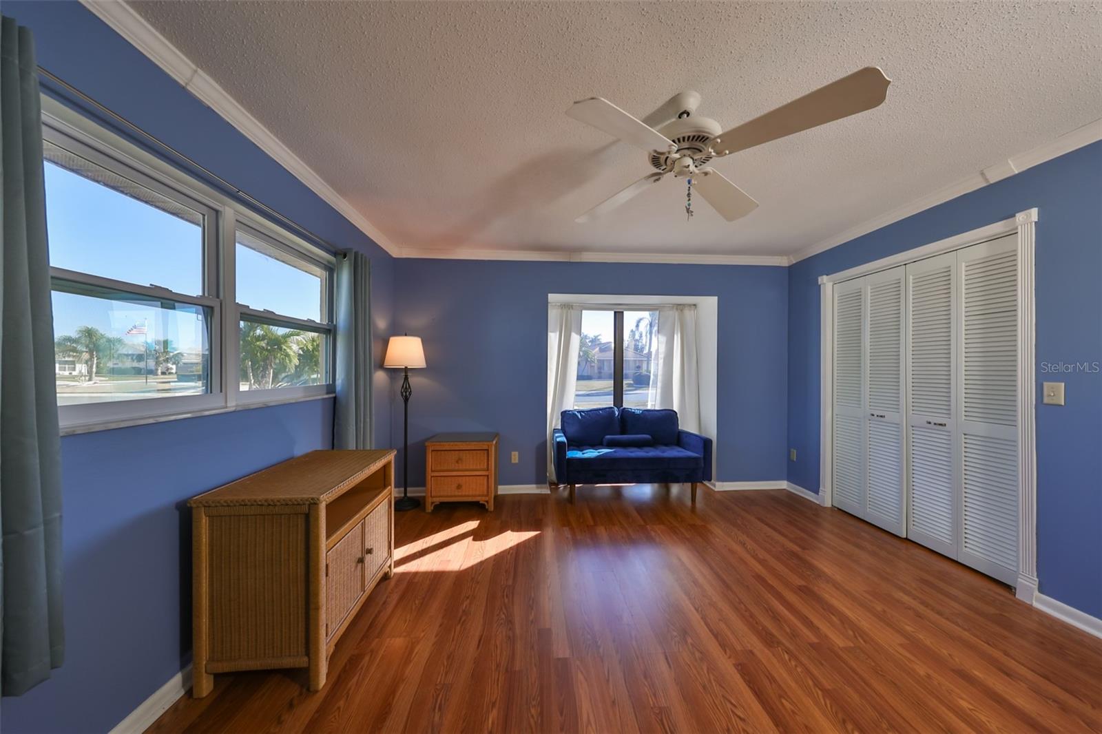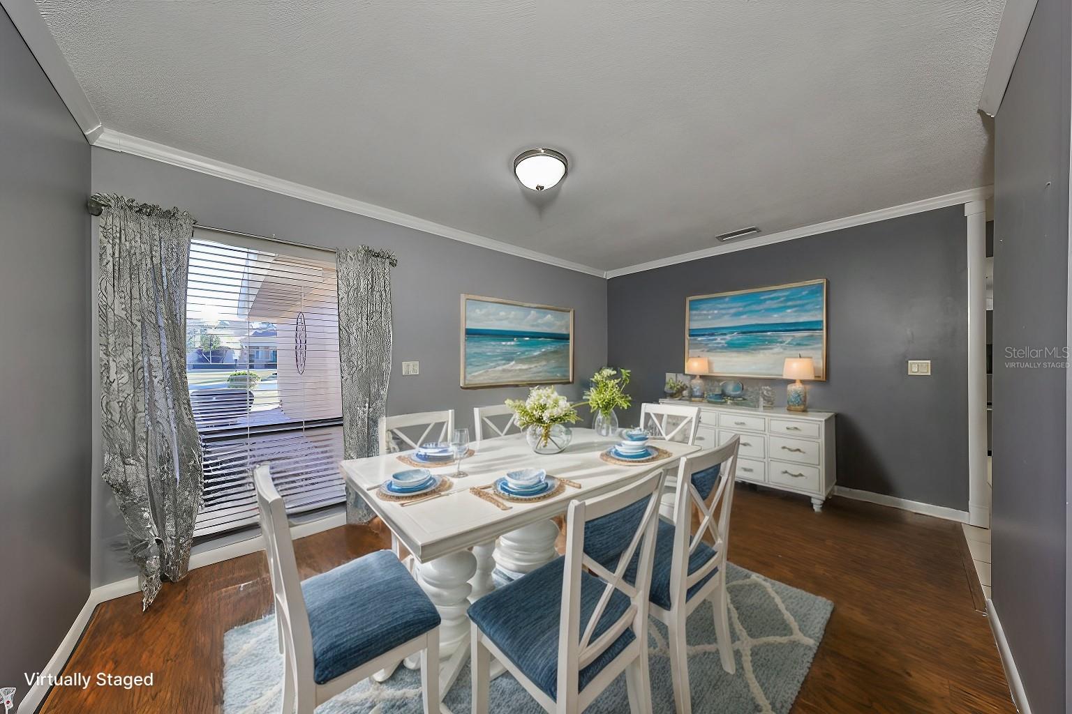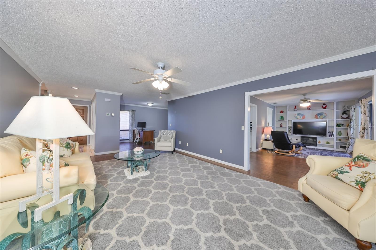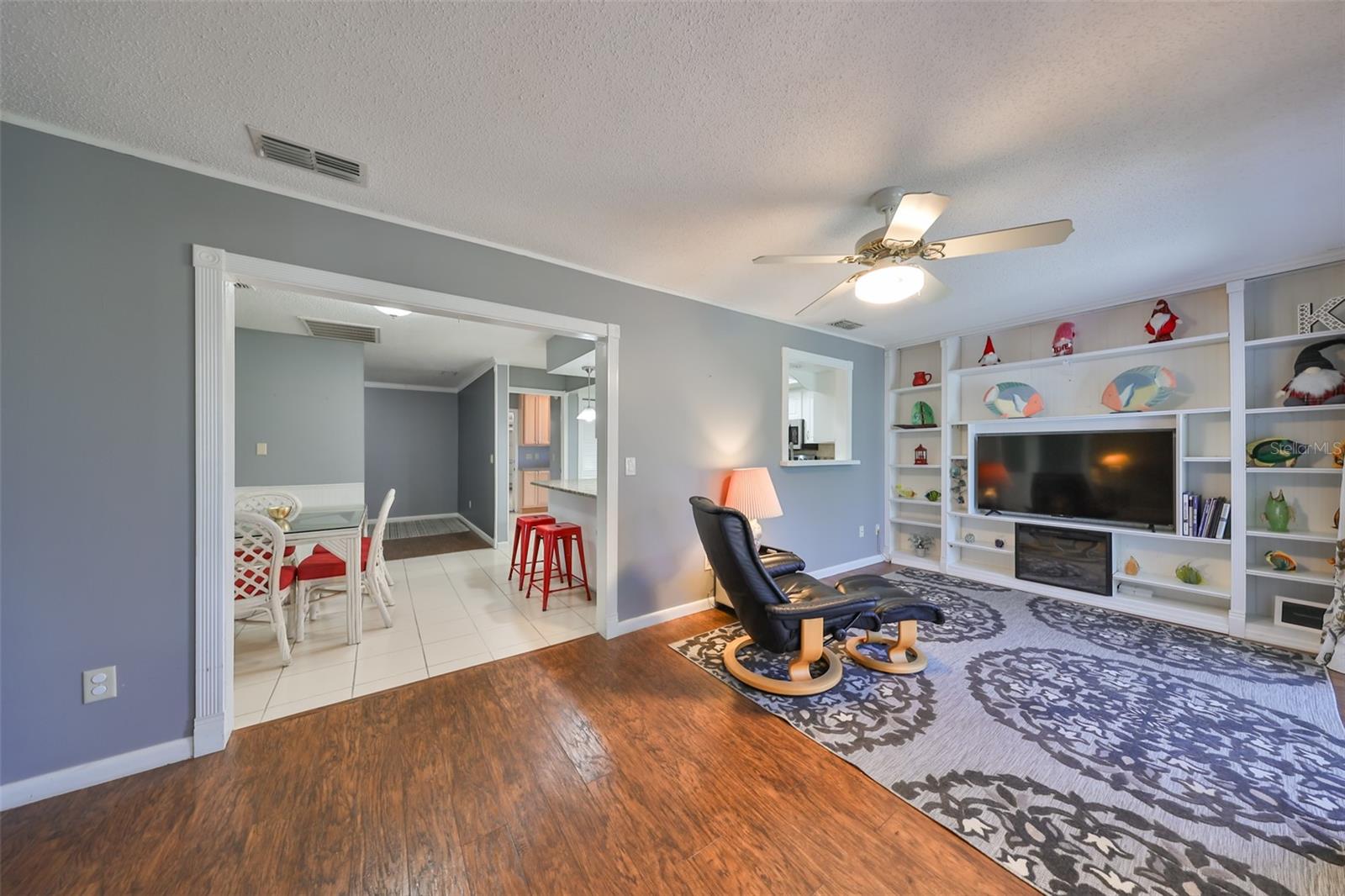 One or more photo(s) has been virtually staged. PRICE IMPROVEMENT, MOTIVATED SELLER! Don't Miss This Opportunity! Move right into this beautifully customized Augusta floor plan, 2-bedroom, 2-bath home featuring an 18x10 Florida/family room off the kitchen, available in the sought-after Greenbriar neighborhood of Sun City Center, a 55+ community, recently voted Americas #1 Retirement Community for 2024 by Realtor.com and Travel + Leisure Magazine. From the moment you arrive, you'll be captivated by this well-maintained home's curb appeal, highlighted by its flat tile roof (Installed in 2013), beautifully landscaped yard, and tiled walkway leading to a wood-look front door. This home offers abundant storage and features laminate flooring throughout, with tile in the wet areas. Elegant details include crown molding in the main living areas and master bedroom, framed doorways, and a built-in bookcase in the Florida/family room. The kitchen is light and bright, enhanced by a solar tube, white cabinetry, solid surface countertops, and newer stainless-steel appliances. It also boasts plenty of storage with drawers, a lazy Susan, and convenient design. Both bathrooms feature tall vanities with updated faucets, and the master bath includes a granite countertop with double sinks. Step outside to enjoy the private, covered, screened patio (added in 2021), measuring 17x15, overlooking the beautifully landscaped backyard. Additional updates include a newer HVAC system installed in 2019. The garage has built in cabinets and workbench with lighting. Greenbriar residents enjoy a low HOA fee of just $115 per year. Sun City Center is one of Florida's most affordable and vibrant active-living communities, offering an array of amenities, including three heated pools, a state-of-the-art fitness center, a sports complex, an arts and crafts building, two clubhouses, top-tier medical facilities, shopping, golf courses, and over 150 social and sports clubs?all accessible by golf cart! Located conveniently near Tampa, Sarasota, St. Petersburg, Tampa International Airport, world-class beaches, shopping, dining, theaters, and more, Sun City Center is the perfect place to call home. Come have fun under the Florida sun!