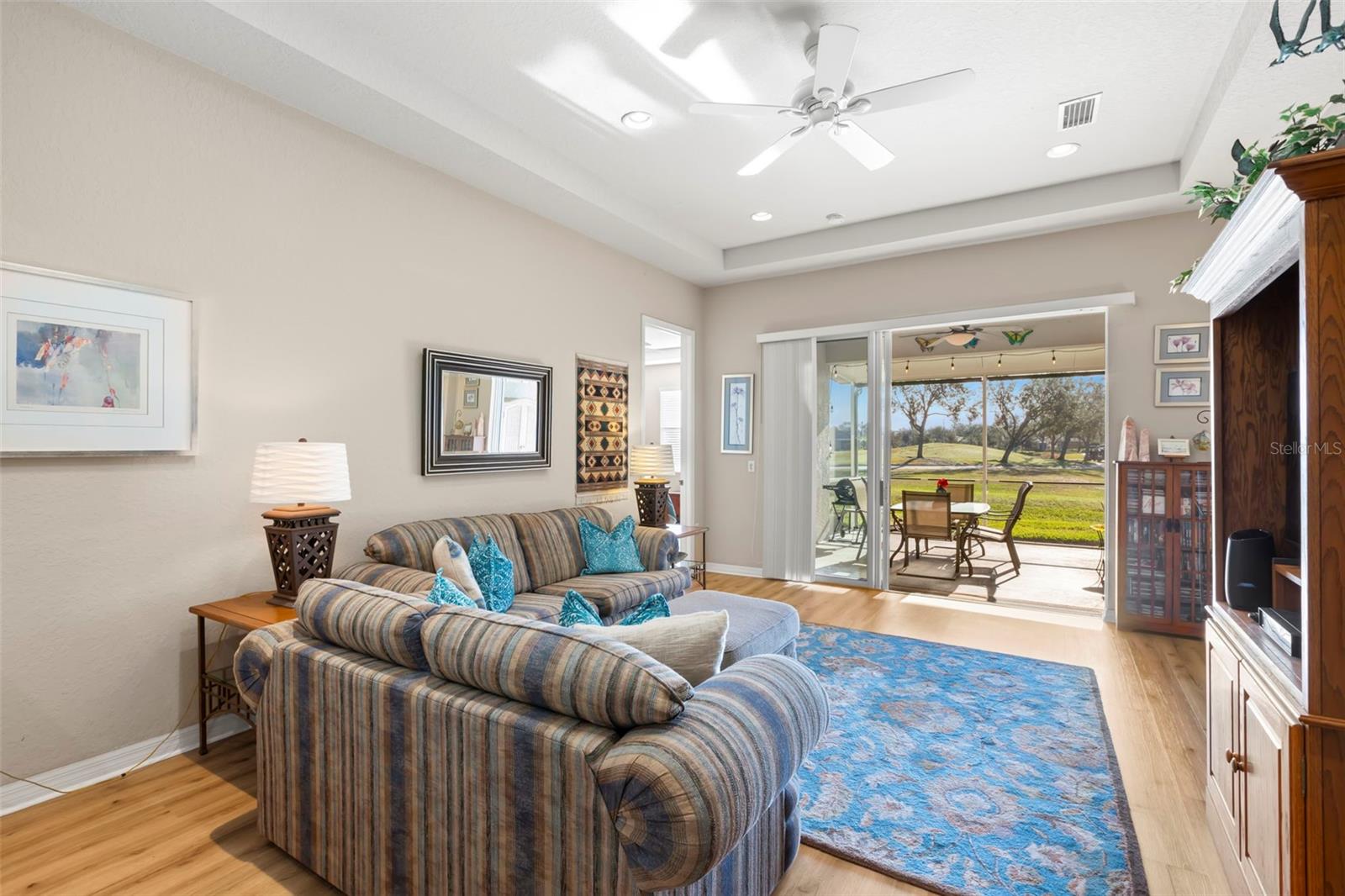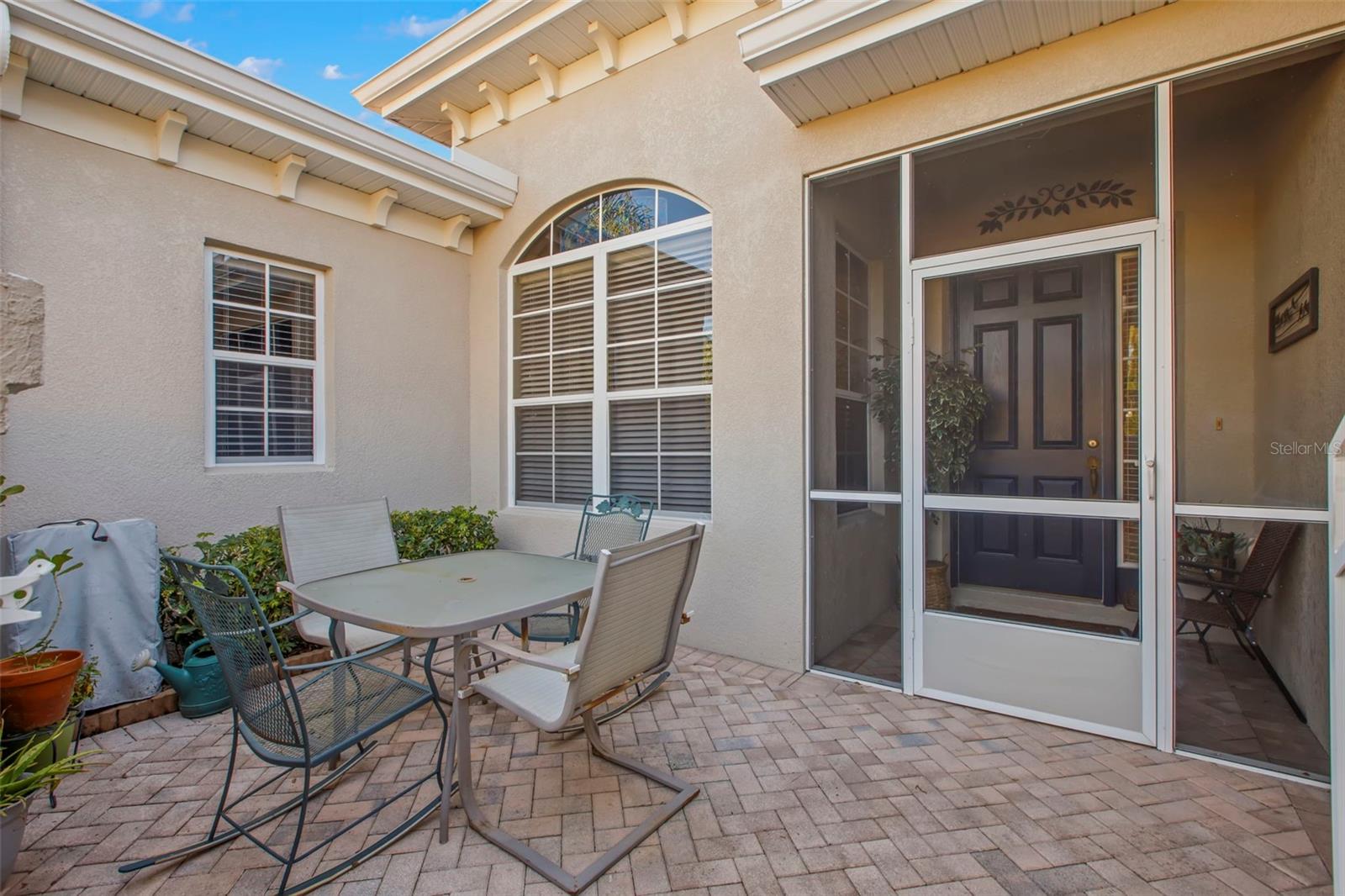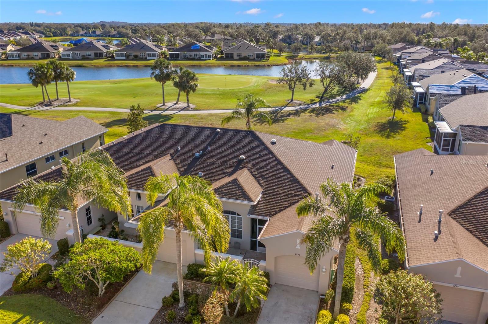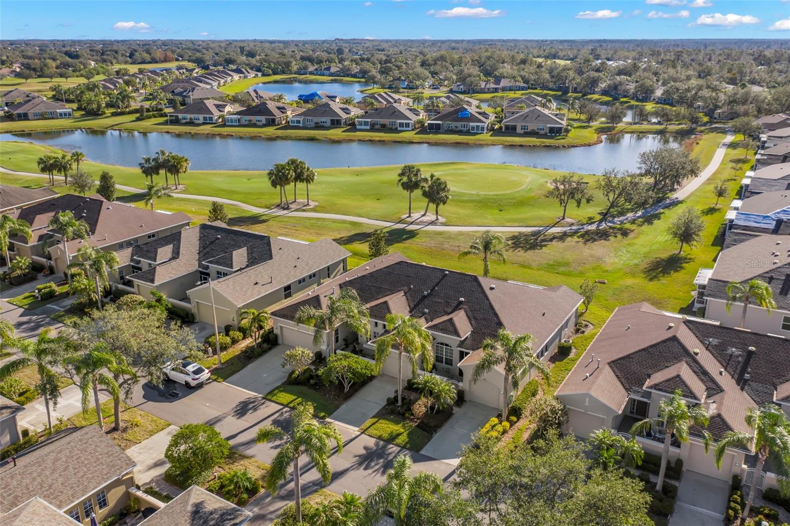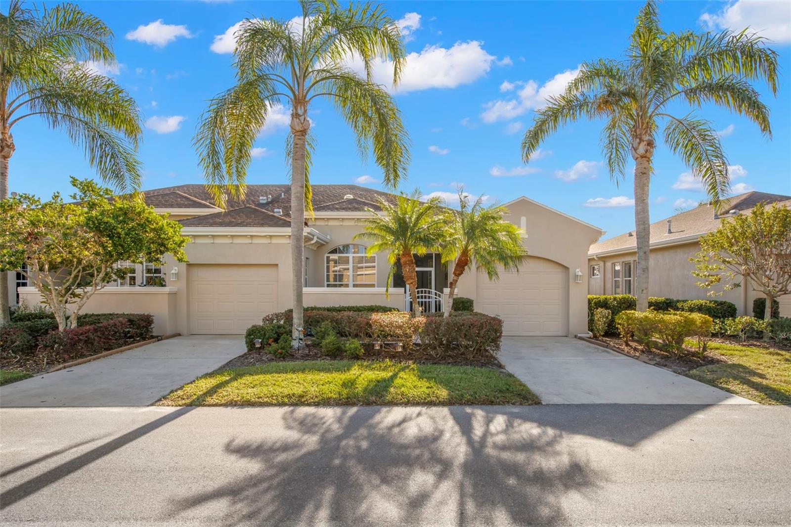Motivated Seller offering a $7,500 reduction with a quick closing! Discover a great opportunity located in the NUMBER ONE Rated Retirement Community in America! This home is located in Kings Point and overlooks the 9th hole of the Osprey course in this PET FRIENDLY location! (2 pets allowed with no weight restrictions) In addition, there is no CDD, No Flood Zone, short term rentals allowed and part of the 80/20 rule where an AGE WAIVER is possible if under 55! This Chelsea floor plan features one of the most sought-after options: a front courtyard that not only welcomes your guests but also offers an additional outdoor living area. Additionally, there is a screened and covered breezeway that provides shelter for your packages. Inside, your eye will be directed to the view of the GOLF COURSE from the moment you enter! The foyer greets you with impressive tray-accented high ceilings measuring 10 feet 8 inches, along with ample space designed for a drop zone and bench seating. The living room features the same impressive high tray ceiling as the foyer and has space for oversized furniture without feeling cramped. The kitchen is truly a chef’s dream with Granite countertops, GAS range, stainless steel appliances and loads of wood cabinetry with Lazy Susan corner cabinets and roll out shelving. There is a pass-through into the Great Room which makes for ease of serving and the dining overlooks the courtyard. The lanai has been expanded and now measures an impressive 14 x 16.8 feet. You will love watching golfers and observing nature, including a variety of birds, thanks to the unobstructed view and absence of immediate neighbors! The split floor plan includes a spacious primary bedroom that can easily fit king-size furniture, provides space for a sitting area, and boasts a tray ceiling. The en-suite bathroom has tall cabinetry, GRANITE countertops, dual sinks, a walk-shower with glass enclosure and a separate water closet. Storage is no issue with the spacious walk-in closet featuring wrap around shelving and 10’ ceilings. The second bedroom is filled with natural light, has several windows, a walk-in closet, and a nook that’s perfect for storing some of your furniture out of sight. This room has quick access to the second full bathroom which offers the same finishes as the primary along with a tub/shower enclosure. The third bedroom has double door access, a wall of windows that floods the space with natural light, and ample room to create an office while still accommodating a third sleeping area. The laundry room is equipped with the same updated cabinetry as the rest of the home. The TWO garages (12x21 each) and extended driveways provide more storage room and ease of parking than a two-car garage! This home is located close to the second entrance and South Clubhouse. Additional features and updates include solar tubes, arched doorways, ceiling fans throughout, no carpet and a KPW Platinum Warranty that can be transferred at the time of Closing. Fees include cable, internet, exterior insurance, maintenance grounds, pest control, private road, security, water, trash, sewer & more! Activities include over 200 clubs, multiple indoor/outdoor HEATED pools, fitness, pickle ball, an onsite SALON and multiple restaurants and so much more! If you plan on venturing out there is quick access to restaurants, SHOPPING, beaches & 30 minutes to Tampa International Airport, less than an hour to the Sarasota shops and 20 minutes to Ellenton Prime Outlets!