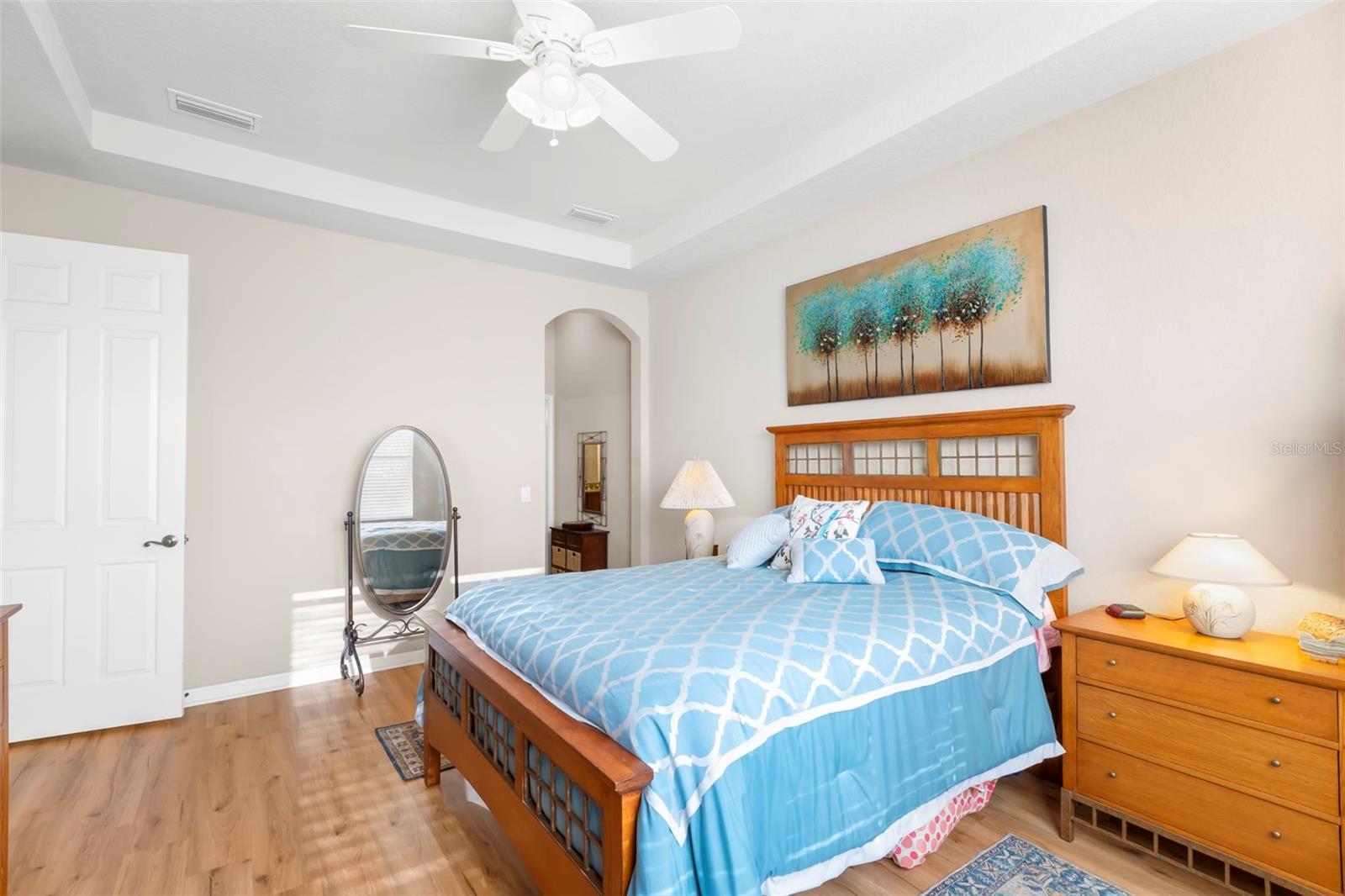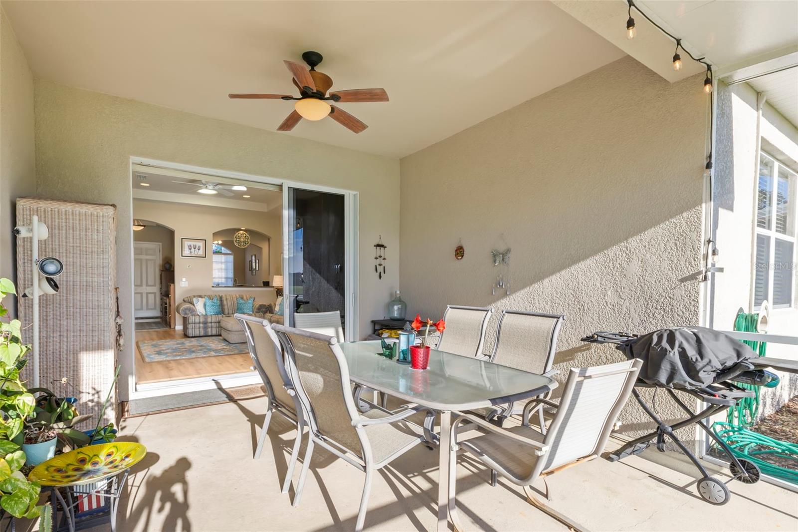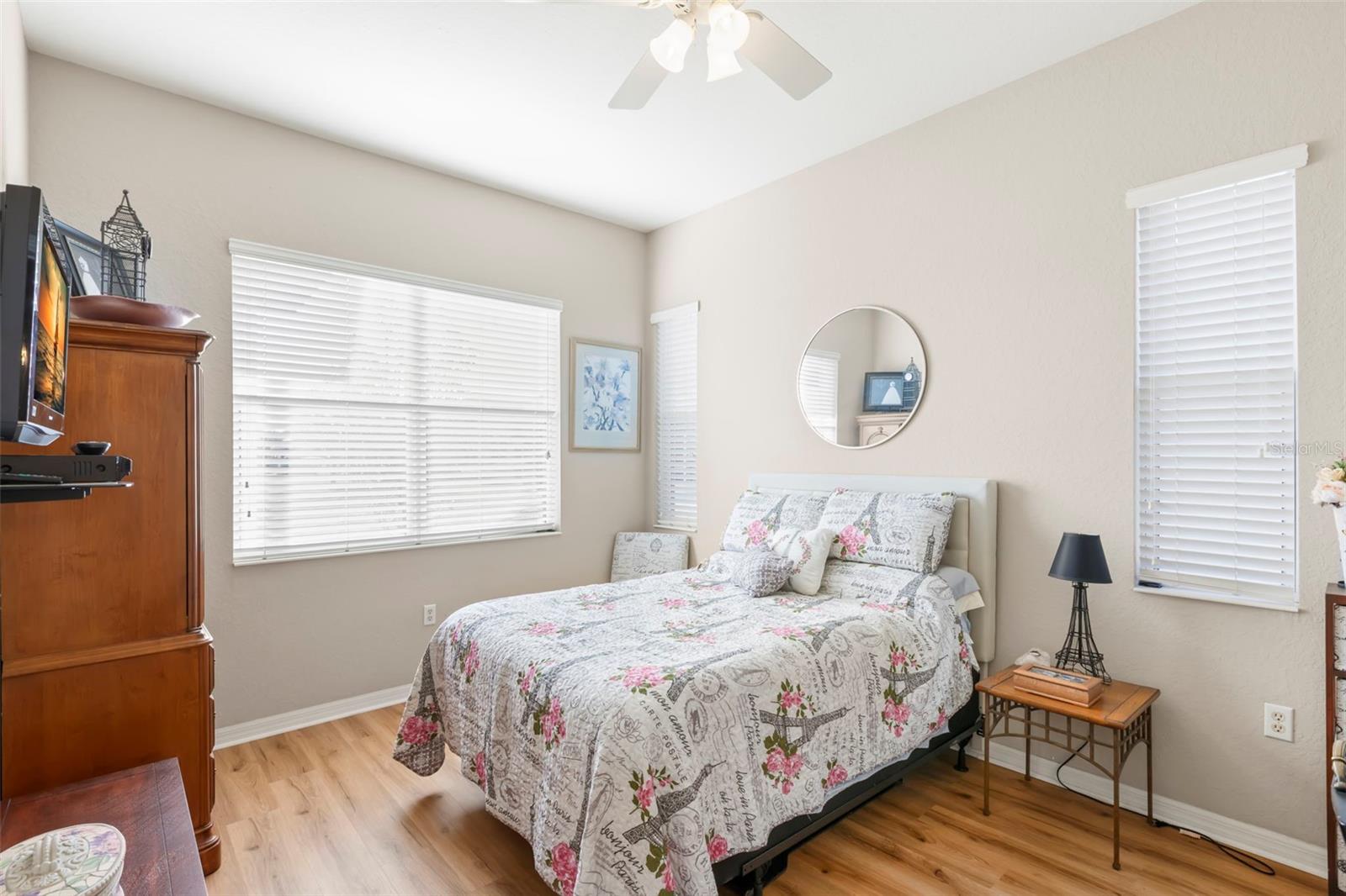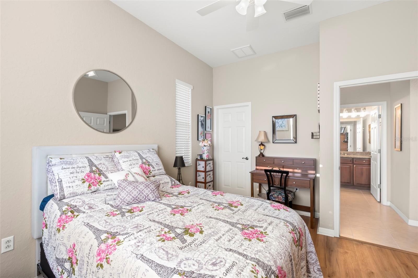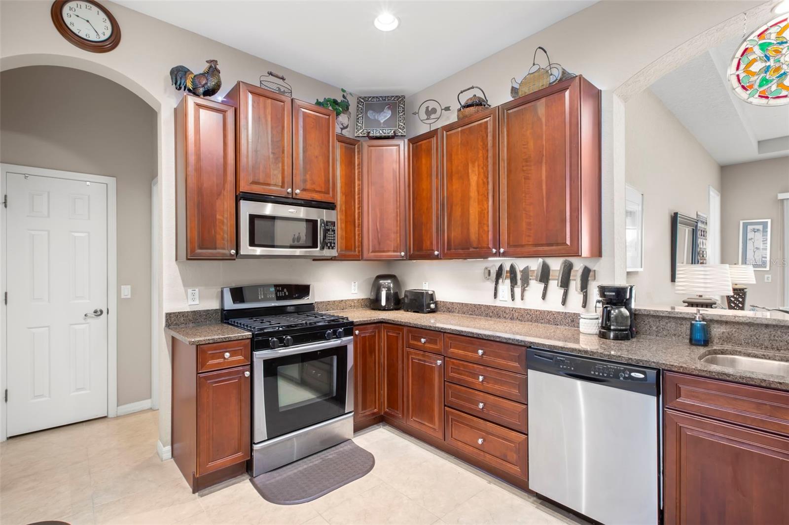 Motivated Seller offering a $7,500 reduction with a quick closing! Discover a great opportunity located in the NUMBER ONE Rated Retirement Community in America! This home is located in Kings Point and overlooks the 9th hole of the Osprey course in this PET FRIENDLY location! (2 pets allowed with no weight restrictions) In addition, there is no CDD, No Flood Zone, short term rentals allowed and part of the 80/20 rule where an AGE WAIVER is possible if under 55! This Chelsea floor plan features one of the most sought-after options: a front courtyard that not only welcomes your guests but also offers an additional outdoor living area. Additionally, there is a screened and covered breezeway that provides shelter for your packages. Inside, your eye will be directed to the view of the GOLF COURSE from the moment you enter! The foyer greets you with impressive tray-accented high ceilings measuring 10 feet 8 inches, along with ample space designed for a drop zone and bench seating. The living room features the same impressive high tray ceiling as the foyer and has space for oversized furniture without feeling cramped. The kitchen is truly a chef’s dream with Granite countertops, GAS range, stainless steel appliances and loads of wood cabinetry with Lazy Susan corner cabinets and roll out shelving. There is a pass-through into the Great Room which makes for ease of serving and the dining overlooks the courtyard. The lanai has been expanded and now measures an impressive 14 x 16.8 feet. You will love watching golfers and observing nature, including a variety of birds, thanks to the unobstructed view and absence of immediate neighbors! The split floor plan includes a spacious primary bedroom that can easily fit king-size furniture, provides space for a sitting area, and boasts a tray ceiling. The en-suite bathroom has tall cabinetry, GRANITE countertops, dual sinks, a walk-shower with glass enclosure and a separate water closet. Storage is no issue with the spacious walk-in closet featuring wrap around shelving and 10’ ceilings. The second bedroom is filled with natural light, has several windows, a walk-in closet, and a nook that’s perfect for storing some of your furniture out of sight. This room has quick access to the second full bathroom which offers the same finishes as the primary along with a tub/shower enclosure. The third bedroom has double door access, a wall of windows that floods the space with natural light, and ample room to create an office while still accommodating a third sleeping area. The laundry room is equipped with the same updated cabinetry as the rest of the home. The TWO garages (12x21 each) and extended driveways provide more storage room and ease of parking than a two-car garage! This home is located close to the second entrance and South Clubhouse. Additional features and updates include solar tubes, arched doorways, ceiling fans throughout, no carpet and a KPW Platinum Warranty that can be transferred at the time of Closing. Fees include cable, internet, exterior insurance, maintenance grounds, pest control, private road, security, water, trash, sewer & more! Activities include over 200 clubs, multiple indoor/outdoor HEATED pools, fitness, pickle ball, an onsite SALON and multiple restaurants and so much more! If you plan on venturing out there is quick access to restaurants, SHOPPING, beaches & 30 minutes to Tampa International Airport, less than an hour to the Sarasota shops and 20 minutes to Ellenton Prime Outlets!