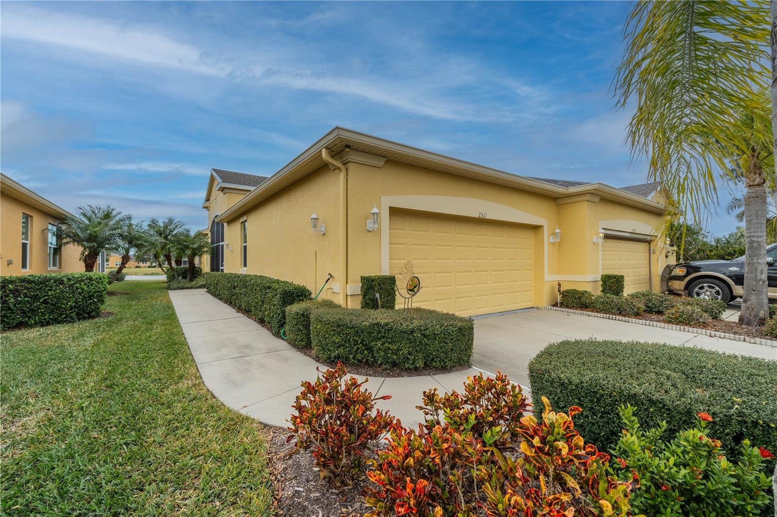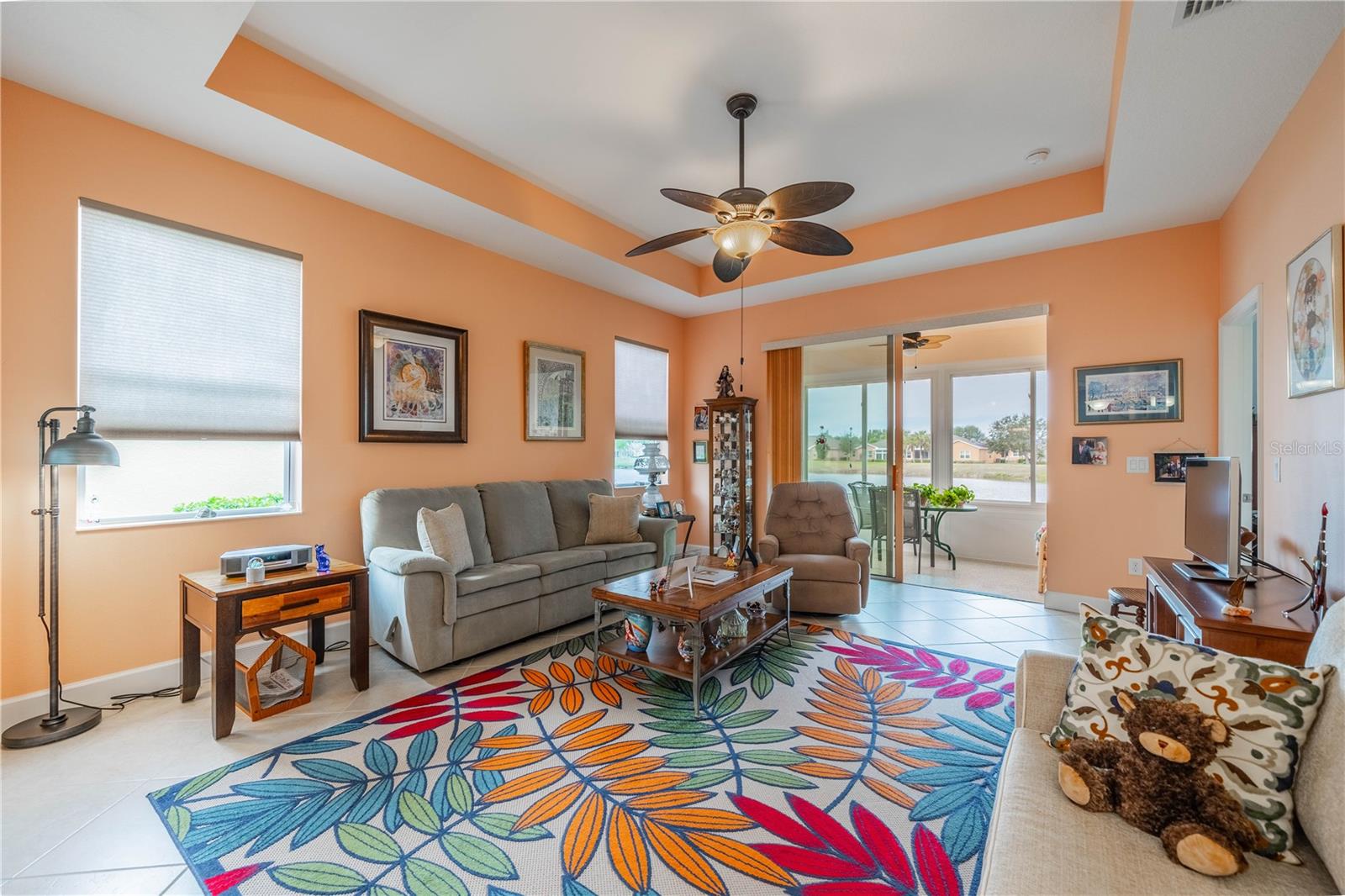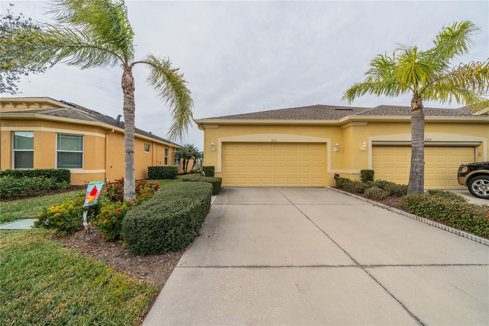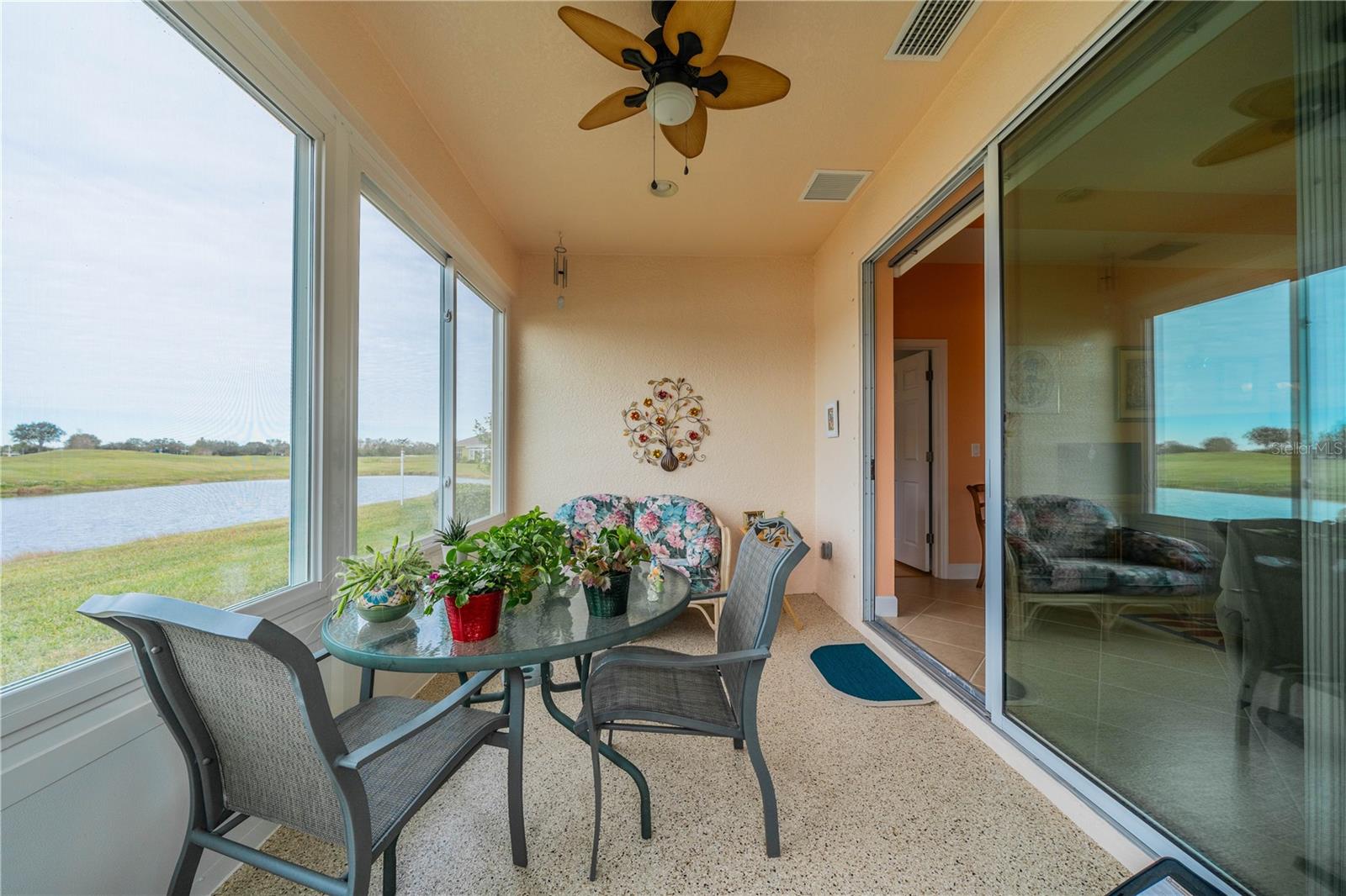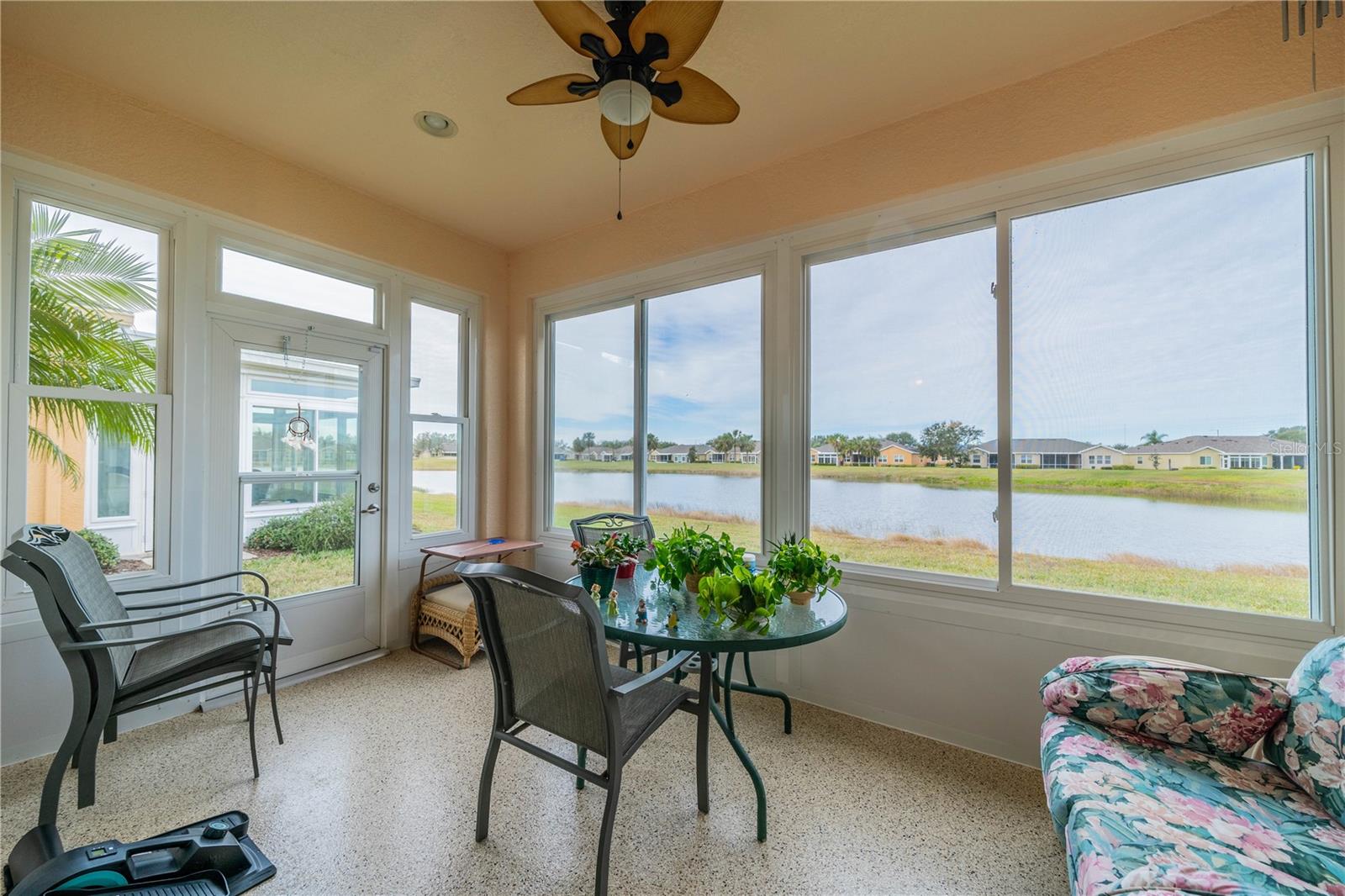 NO HOA FEES FROM APRIL 1 to MARCH 31, 2026! New roof in 2023. This beautiful Minto home in the great Nottingham Villas of Kings Point has a lovely screened entryway large enough to sit and enjoy the fresh air. Entering the home you will find a very nice living room, dining room, and kitchen area in an open floorplan. The kitchen is a chef's dream with lots of cabinets and counter space and a large solar tube with lots of light. The living room leads to a terrific Florida room under air. The view of the pond and golf course makes it a great place to sit and enjoy morning coffee or evening cocktail. The primary bedroom is at the back of the home with the second bedroom and den/study at the other end giving lots of privacy to guests visiting you in your sunny Florida home. The primary bath has a very large walk-in closet. The garage has a water softener and the home is equipped with a reverse osmosis system. This home has been very well maintained by the original owner. It is close to the South Clubhouse, pools, and restaurant, and also near the back gate. Kings Point, between Sarasota and Tampa, is an ideal location. The 55+ gated community has terrific facilities, including five pools, two fitness centers, and over 200 clubs for your enjoyment. It is convenient to shopping, world class museums, Busch Gardens, Orlando, sports, and entertainment with wonderful beaches nearby. Come enjoy the Florida lifestyle! Schedule your viewing today!