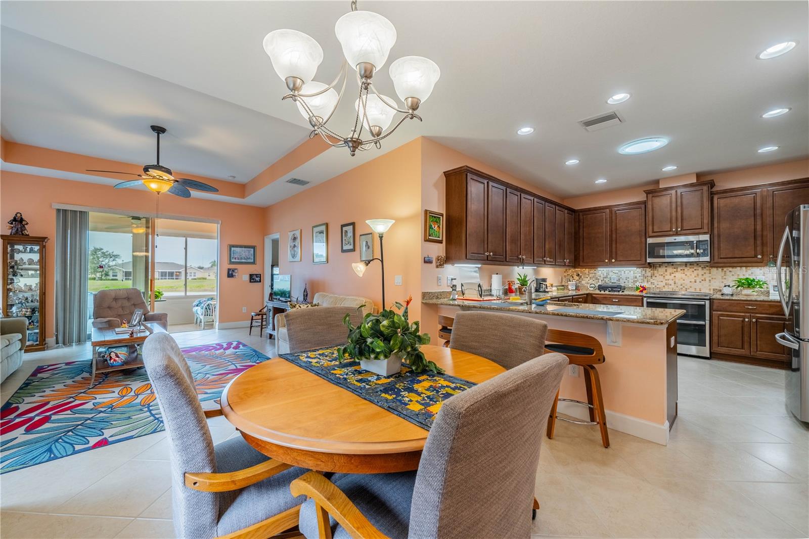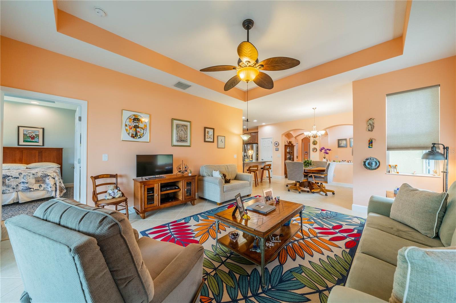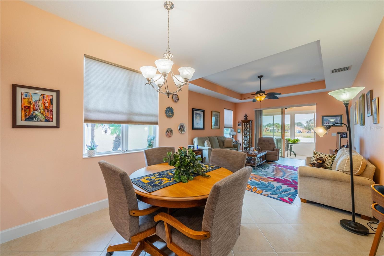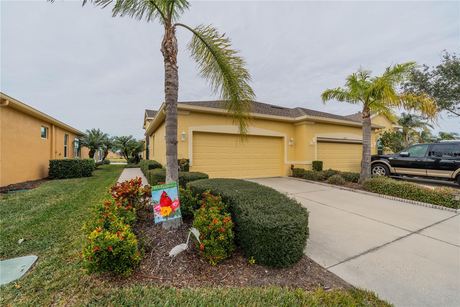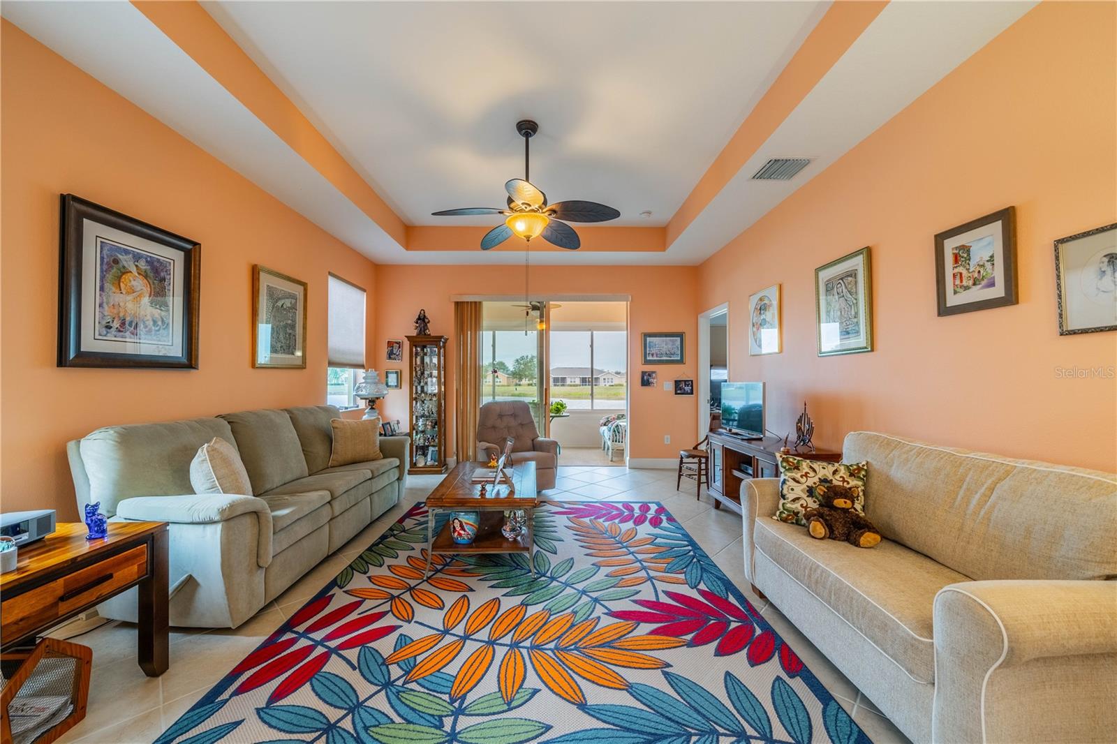 NO HOA FEES FROM APRIL 1 to MARCH 31, 2026! New roof in 2023. This beautiful Minto home in the great Nottingham Villas of Kings Point has a lovely screened entryway large enough to sit and enjoy the fresh air. Entering the home you will find a very nice living room, dining room, and kitchen area in an open floorplan. The kitchen is a chef's dream with lots of cabinets and counter space and a large solar tube with lots of light. The living room leads to a terrific Florida room under air. The view of the pond and golf course makes it a great place to sit and enjoy morning coffee or evening cocktail. The primary bedroom is at the back of the home with the second bedroom and den/study at the other end giving lots of privacy to guests visiting you in your sunny Florida home. The primary bath has a very large walk-in closet. The garage has a water softener and the home is equipped with a reverse osmosis system. This home has been very well maintained by the original owner. It is close to the South Clubhouse, pools, and restaurant, and also near the back gate. Kings Point, between Sarasota and Tampa, is an ideal location. The 55+ gated community has terrific facilities, including five pools, two fitness centers, and over 200 clubs for your enjoyment. It is convenient to shopping, world class museums, Busch Gardens, Orlando, sports, and entertainment with wonderful beaches nearby. Come enjoy the Florida lifestyle! Schedule your viewing today!