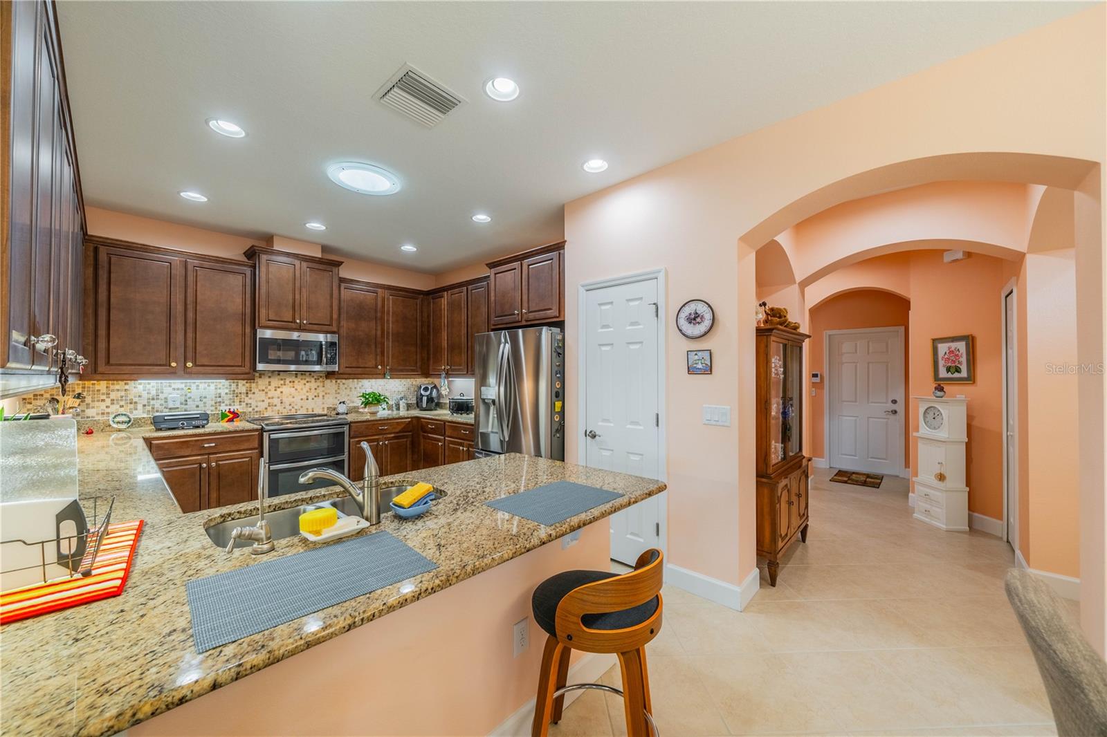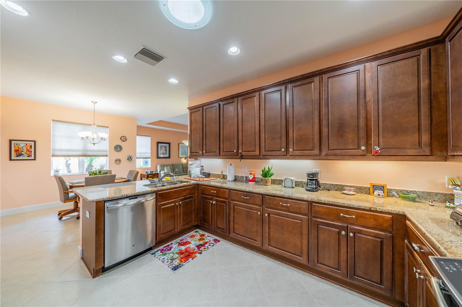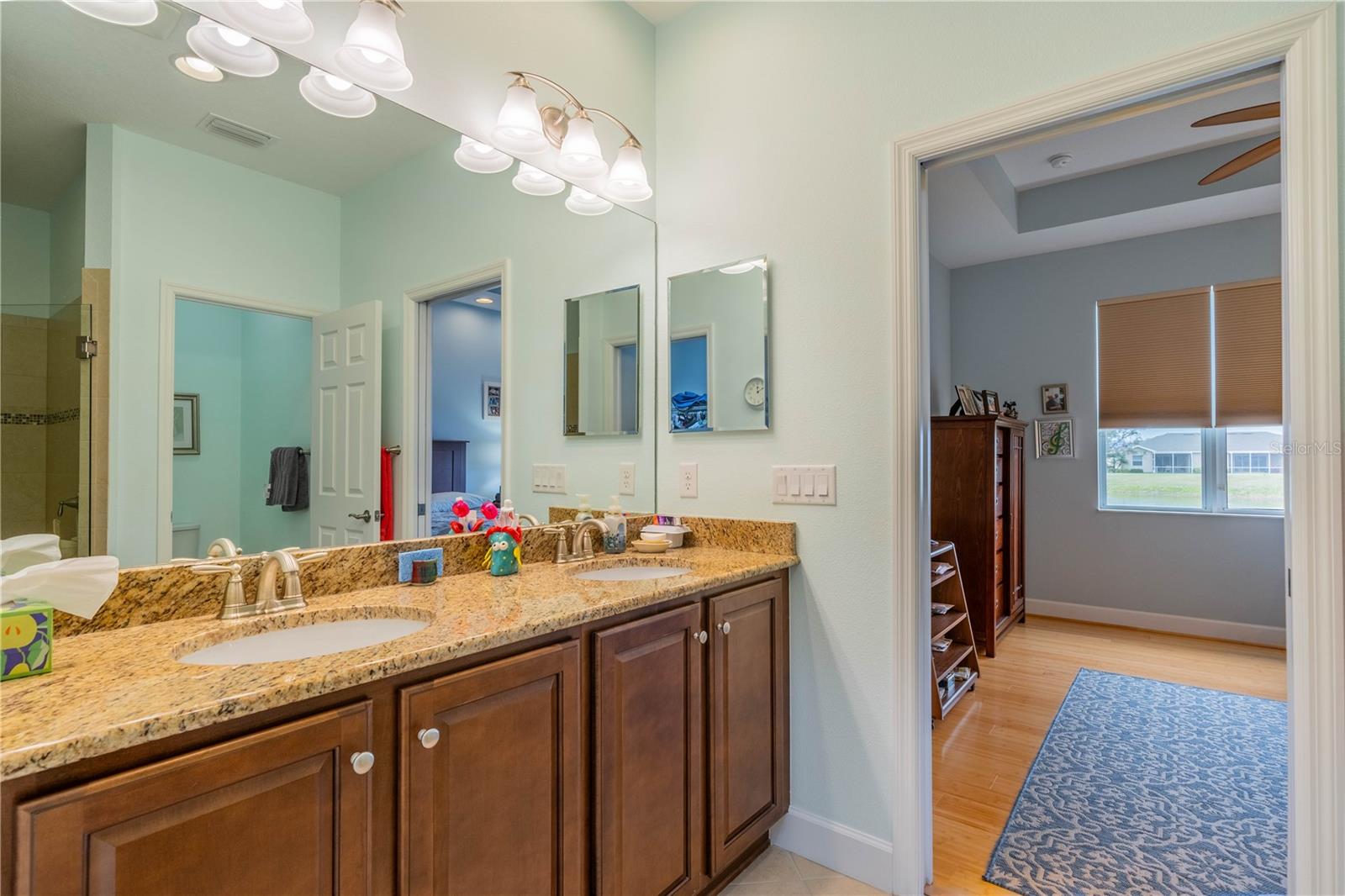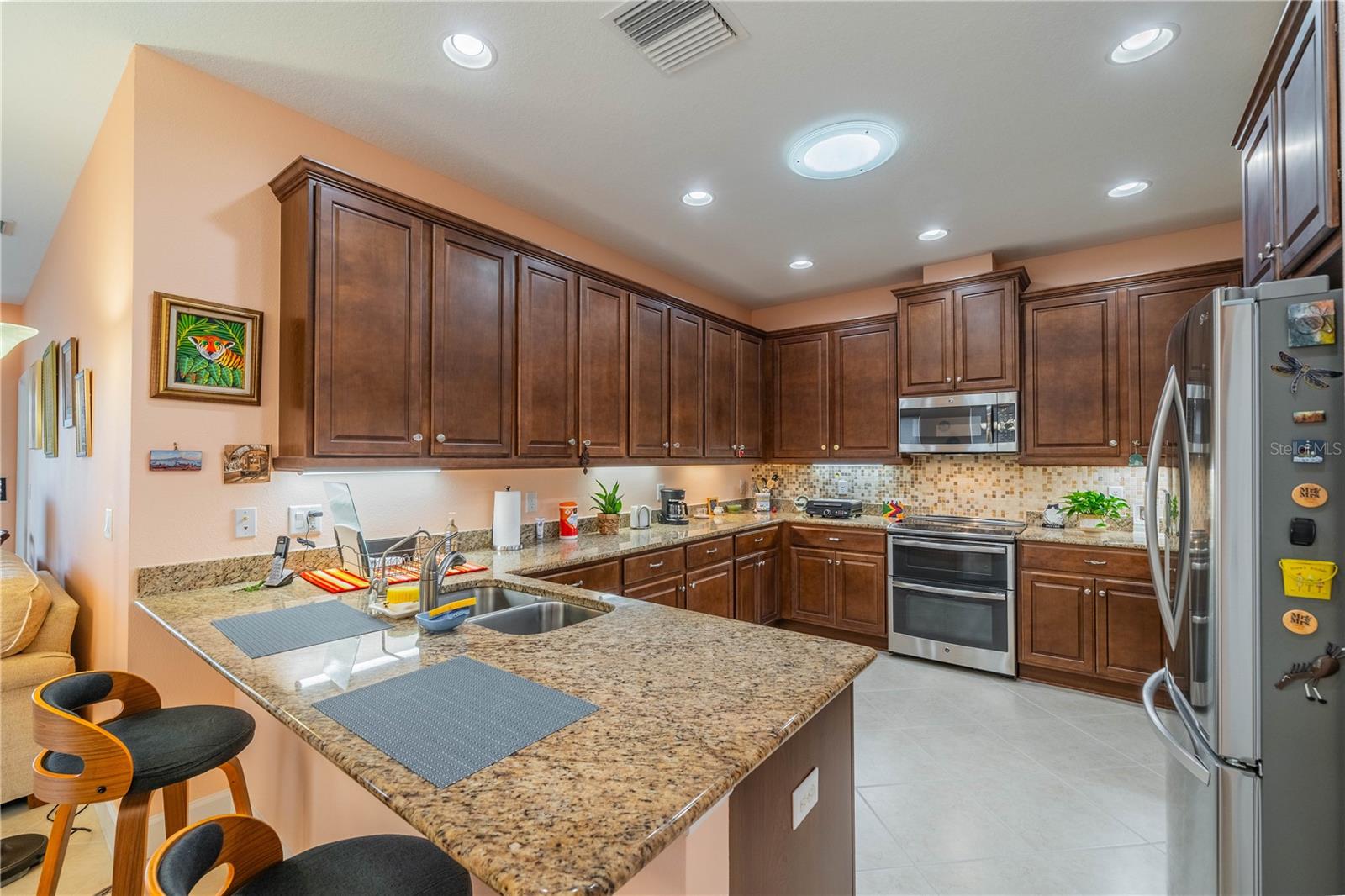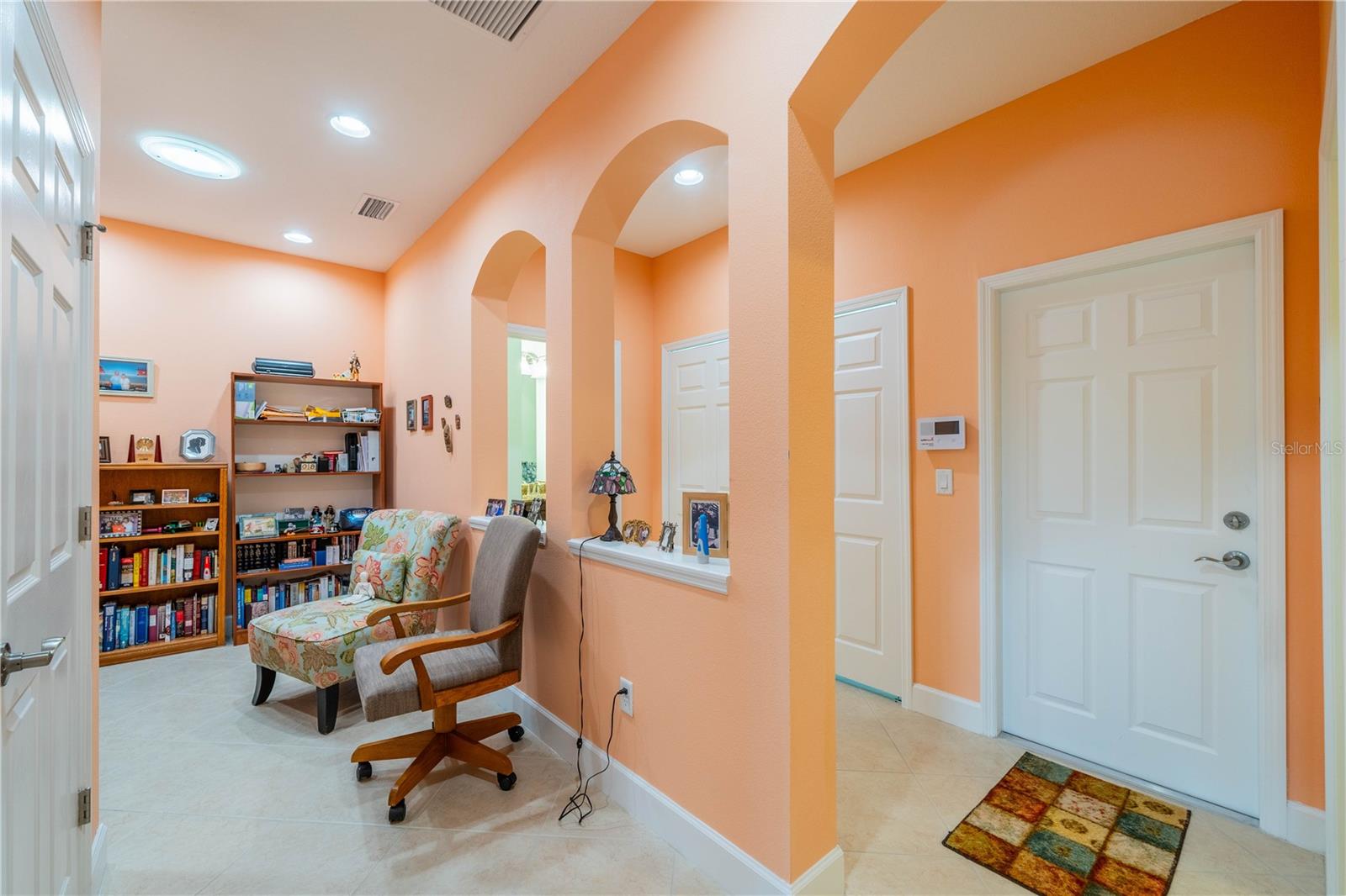 NO HOA FEES FROM APRIL 1 to MARCH 31, 2026! New roof in 2023. This beautiful Minto home in the great Nottingham Villas of Kings Point has a lovely screened entryway large enough to sit and enjoy the fresh air. Entering the home you will find a very nice living room, dining room, and kitchen area in an open floorplan. The kitchen is a chef's dream with lots of cabinets and counter space and a large solar tube with lots of light. The living room leads to a terrific Florida room under air. The view of the pond and golf course makes it a great place to sit and enjoy morning coffee or evening cocktail. The primary bedroom is at the back of the home with the second bedroom and den/study at the other end giving lots of privacy to guests visiting you in your sunny Florida home. The primary bath has a very large walk-in closet. The garage has a water softener and the home is equipped with a reverse osmosis system. This home has been very well maintained by the original owner. It is close to the South Clubhouse, pools, and restaurant, and also near the back gate. Kings Point, between Sarasota and Tampa, is an ideal location. The 55+ gated community has terrific facilities, including five pools, two fitness centers, and over 200 clubs for your enjoyment. It is convenient to shopping, world class museums, Busch Gardens, Orlando, sports, and entertainment with wonderful beaches nearby. Come enjoy the Florida lifestyle! Schedule your viewing today!