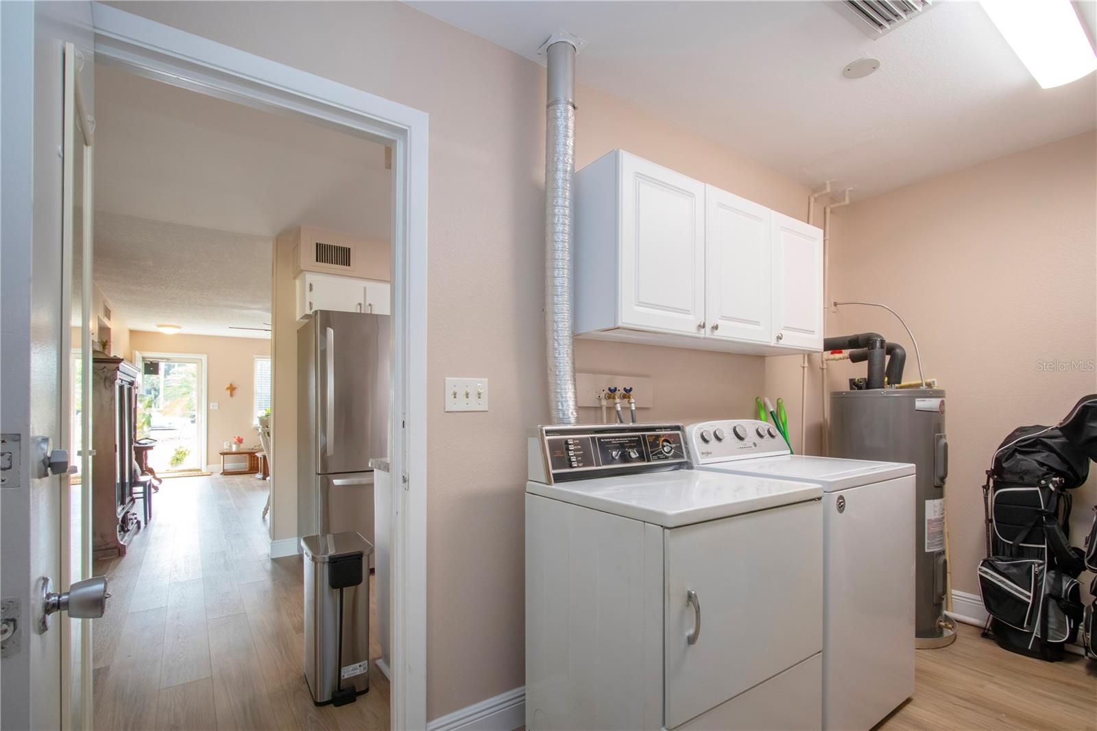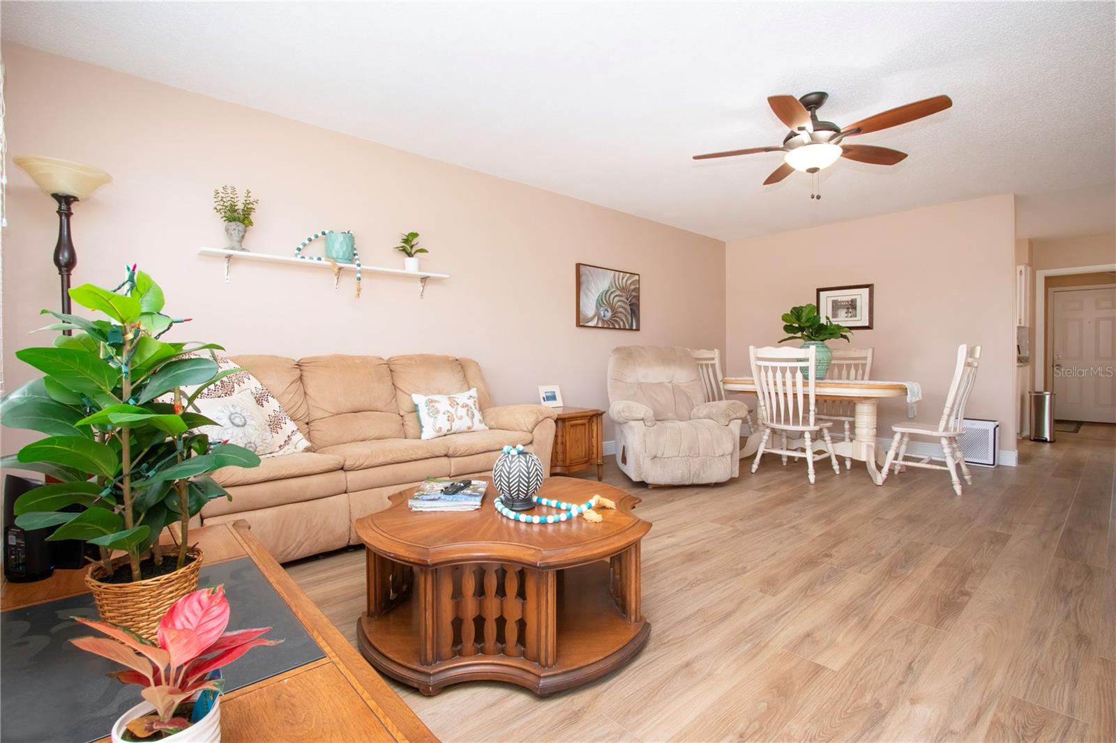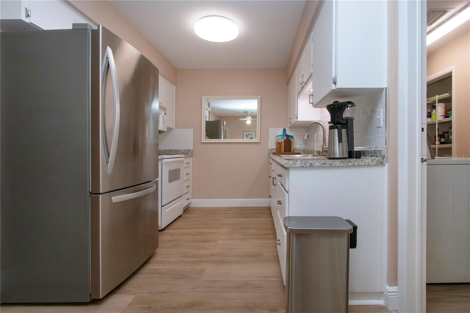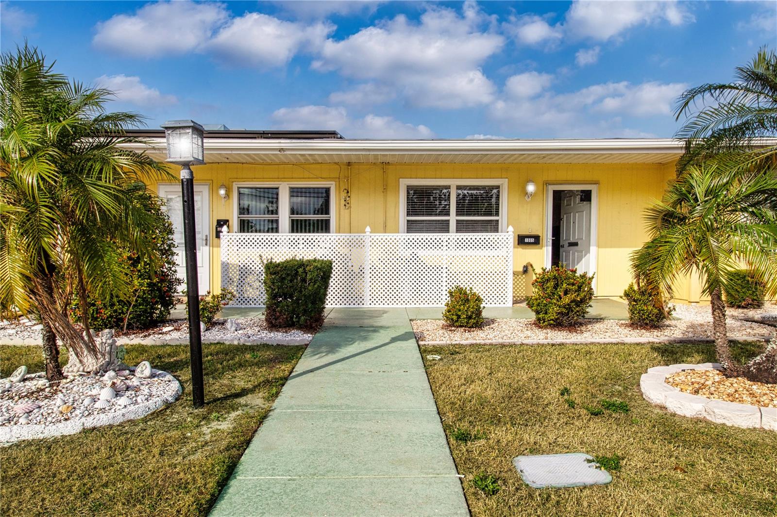 Experience the charm of this beautifully updated and furnished 2 bedroom home in the desirable community of Sun City Center. Featuring fresh paint, stylish luxury vinyl plank flooring throughout, new contemporary baseboards and an upgraded kitchen, this home boasts spacious walk-in closets in both bedrooms. Enjoy your paver block private patio for plants and sun bathing. This home is turnkey furnished and wonderfully updated. New roof 2019, CPVC plumbing 2005, new LG refrigerator 2021, new clothes washer 2020, new garage door 2024. The interior utility room with storage is part of the house under heat and air conditioning. With an affordable HOA fee and a prime location near shopping and activities, this delightful condo is your perfect retirement oasis - schedule a tour today. Sun City Center is a total golf cart community featuring pools, pickleball, volleyball, many sports and over 200 clubs for your enjoyment. We have been named "Florida's #1 Retirement Community". Home of the new Moffitt Cancer Center, active golf courses, close proximity to Tampa and St Petersburg beaches and airports. This home is walking distance to drug stores, doctors and grocery stores.