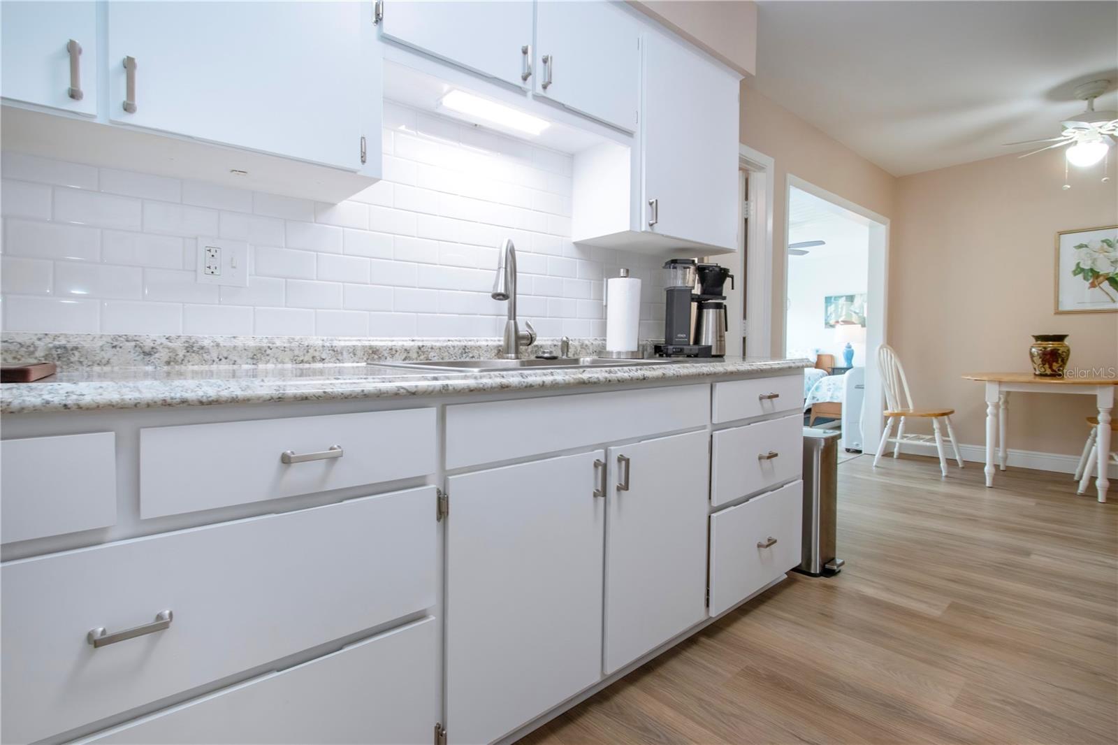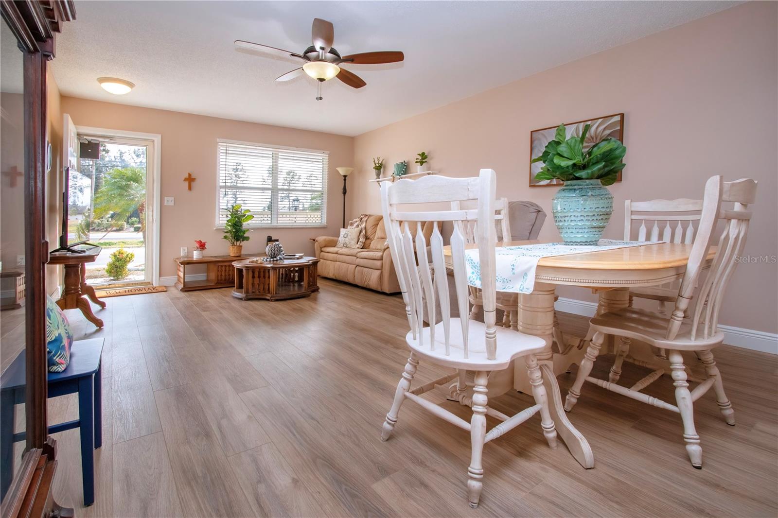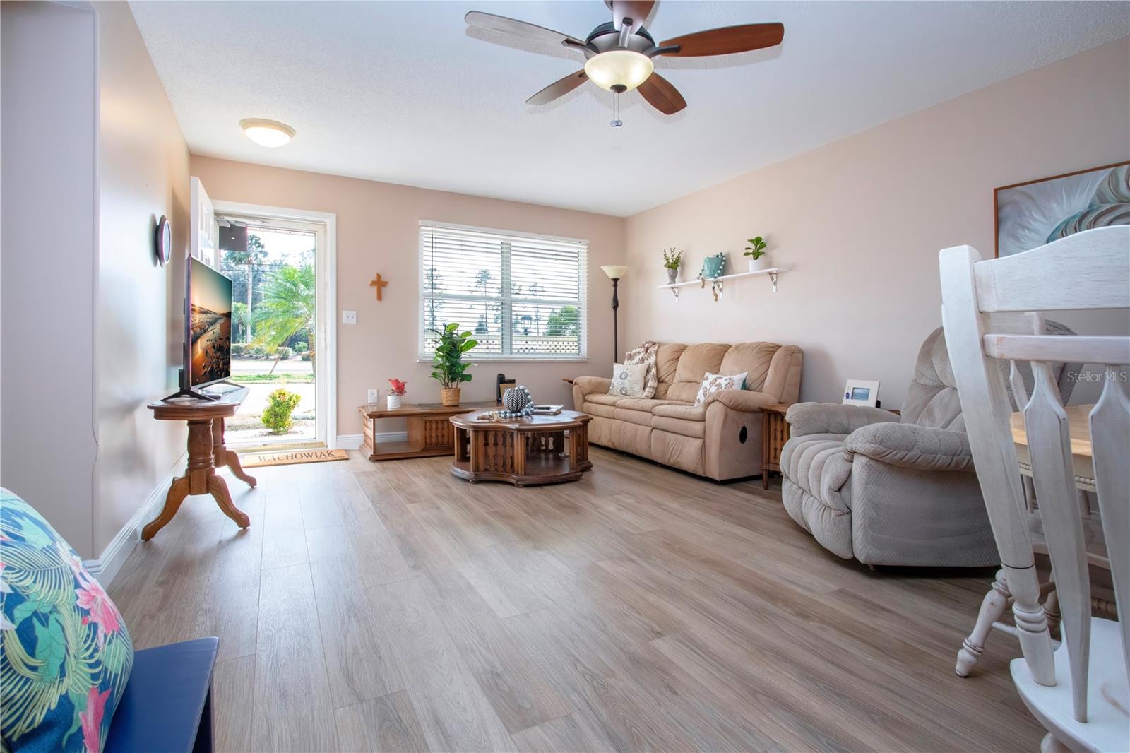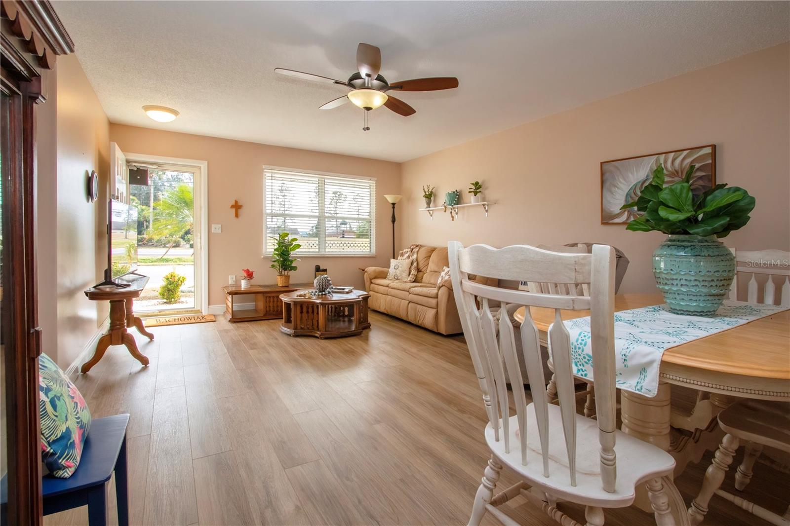 Experience the charm of this beautifully updated and furnished 2 bedroom home in the desirable community of Sun City Center. Featuring fresh paint, stylish luxury vinyl plank flooring throughout, new contemporary baseboards and an upgraded kitchen, this home boasts spacious walk-in closets in both bedrooms. Enjoy your paver block private patio for plants and sun bathing. This home is turnkey furnished and wonderfully updated. New roof 2019, CPVC plumbing 2005, new LG refrigerator 2021, new clothes washer 2020, new garage door 2024. The interior utility room with storage is part of the house under heat and air conditioning. With an affordable HOA fee and a prime location near shopping and activities, this delightful condo is your perfect retirement oasis - schedule a tour today. Sun City Center is a total golf cart community featuring pools, pickleball, volleyball, many sports and over 200 clubs for your enjoyment. We have been named "Florida's #1 Retirement Community". Home of the new Moffitt Cancer Center, active golf courses, close proximity to Tampa and St Petersburg beaches and airports. This home is walking distance to drug stores, doctors and grocery stores.