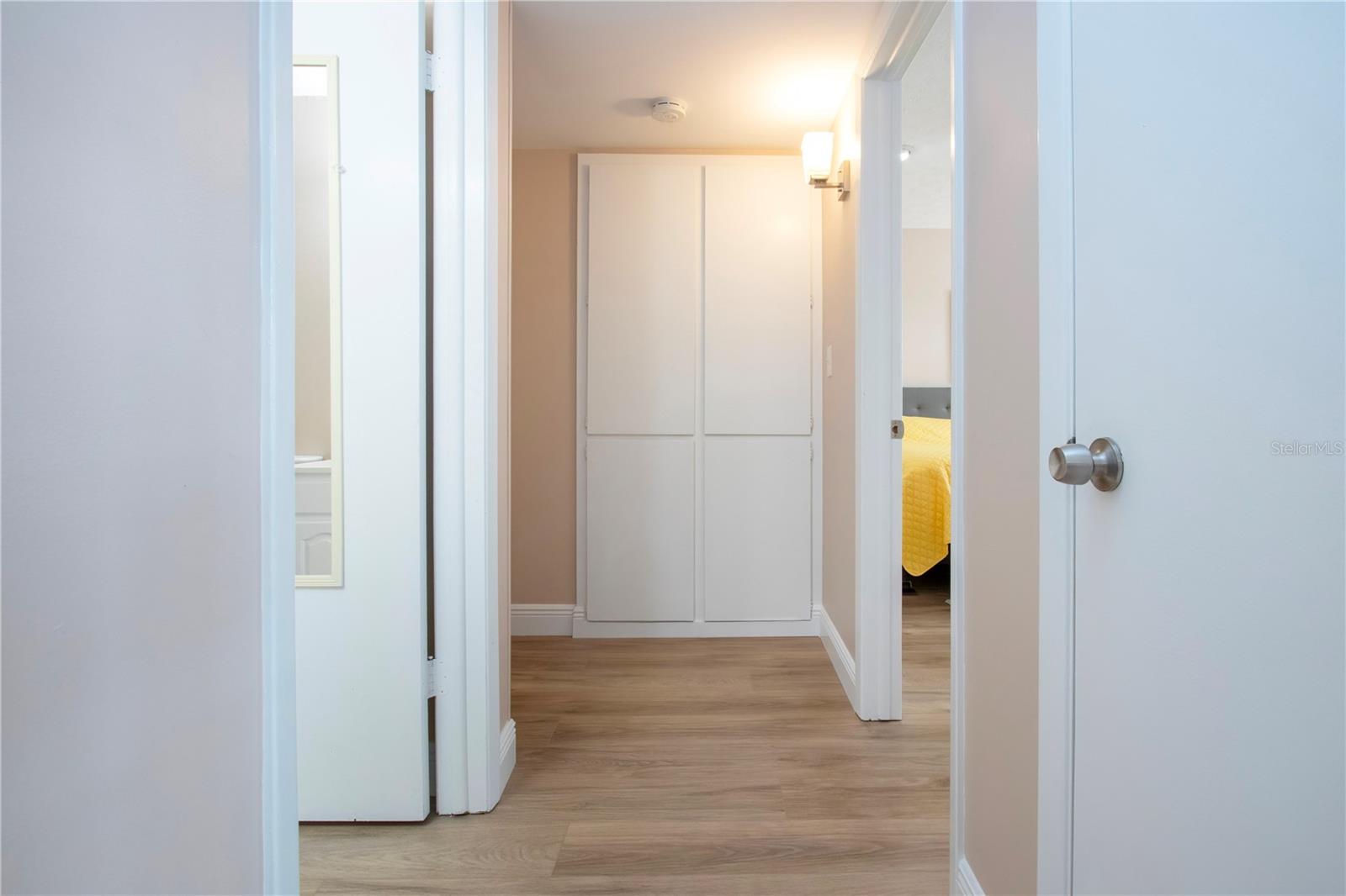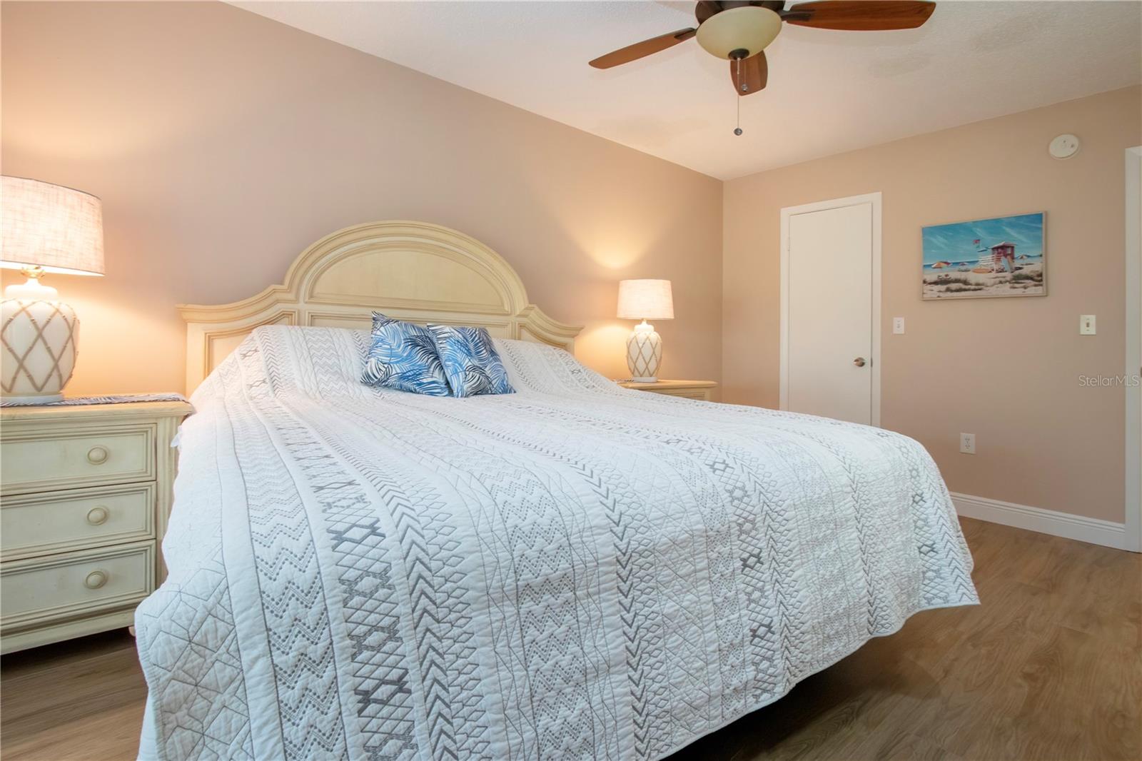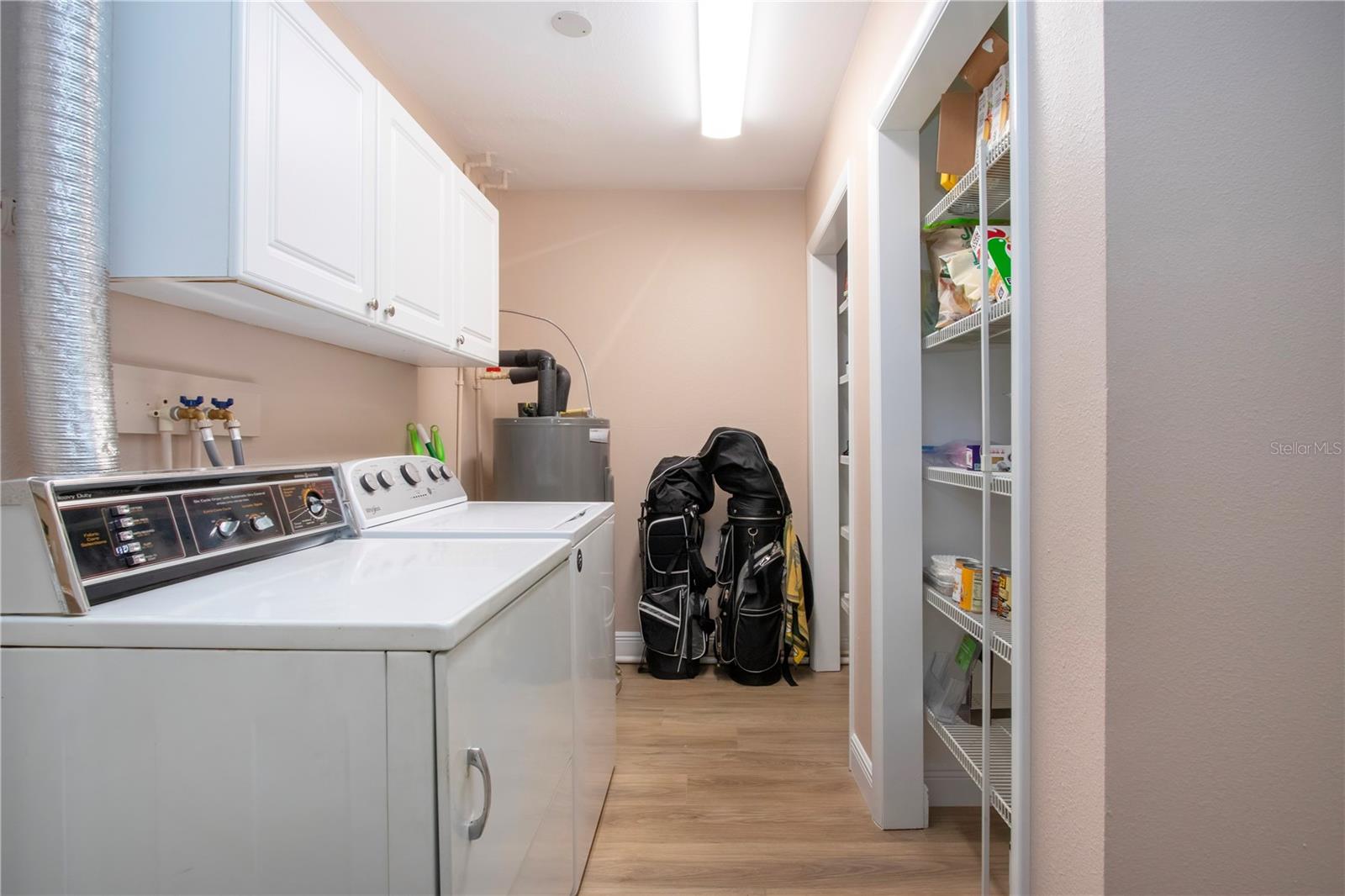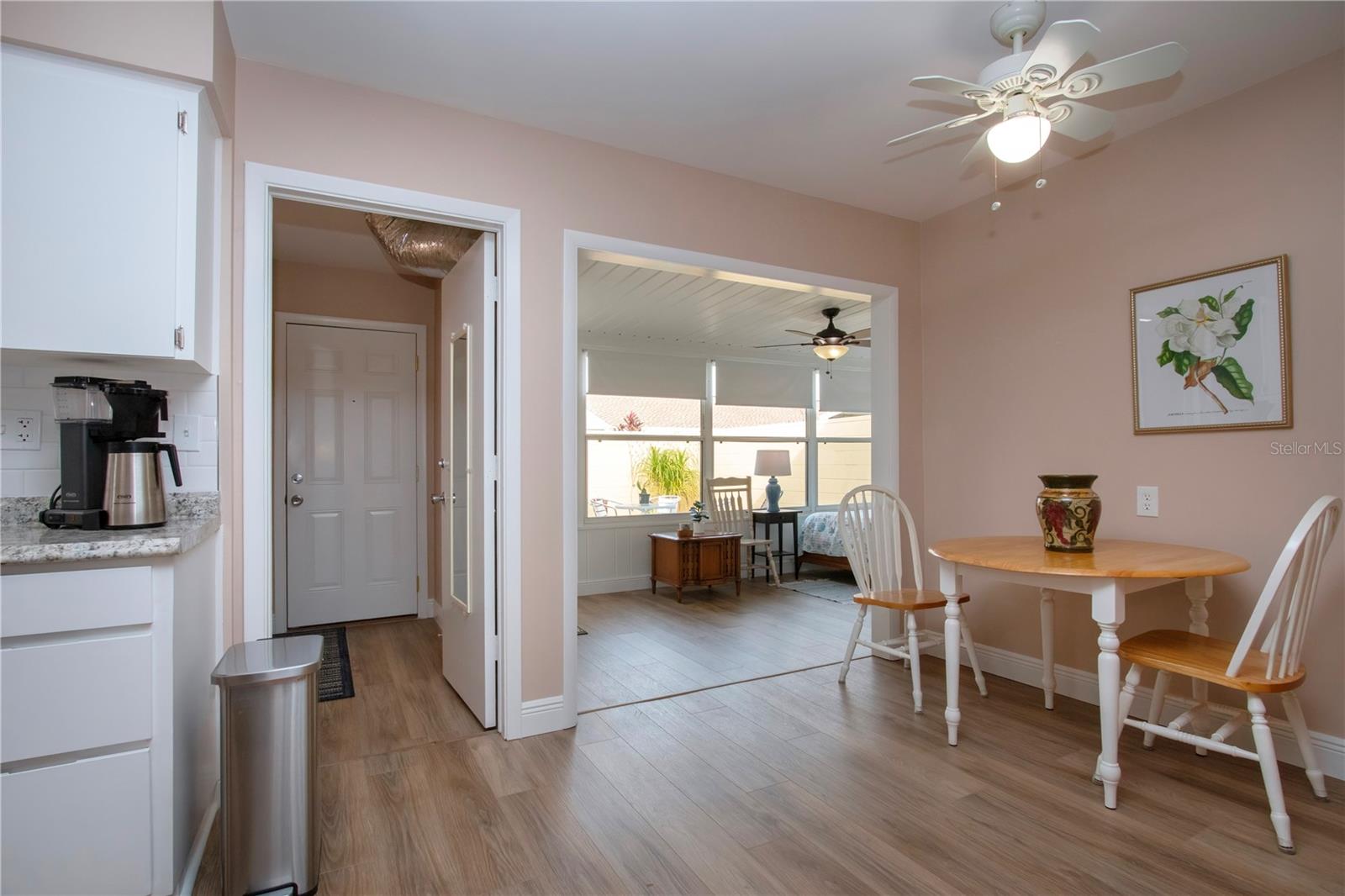 Experience the charm of this beautifully updated and furnished 2 bedroom home in the desirable community of Sun City Center. Featuring fresh paint, stylish luxury vinyl plank flooring throughout, new contemporary baseboards and an upgraded kitchen, this home boasts spacious walk-in closets in both bedrooms. Enjoy your paver block private patio for plants and sun bathing. This home is turnkey furnished and wonderfully updated. New roof 2019, CPVC plumbing 2005, new LG refrigerator 2021, new clothes washer 2020, new garage door 2024. The interior utility room with storage is part of the house under heat and air conditioning. With an affordable HOA fee and a prime location near shopping and activities, this delightful condo is your perfect retirement oasis - schedule a tour today. Sun City Center is a total golf cart community featuring pools, pickleball, volleyball, many sports and over 200 clubs for your enjoyment. We have been named "Florida's #1 Retirement Community". Home of the new Moffitt Cancer Center, active golf courses, close proximity to Tampa and St Petersburg beaches and airports. This home is walking distance to drug stores, doctors and grocery stores.