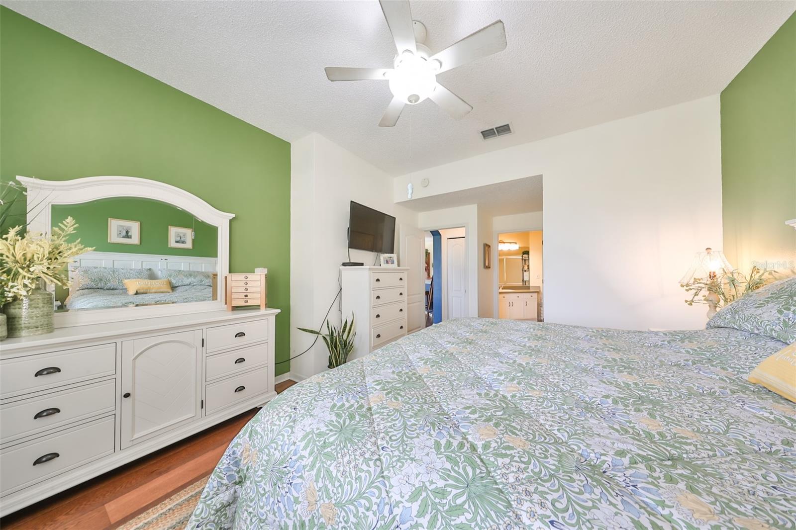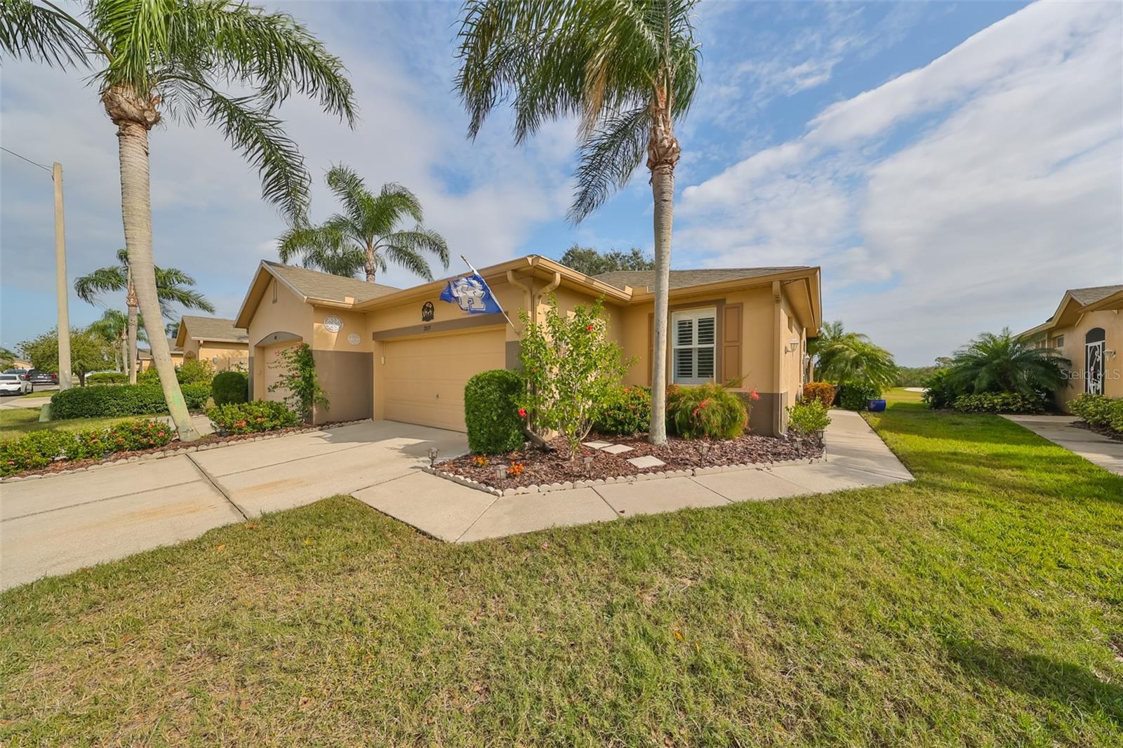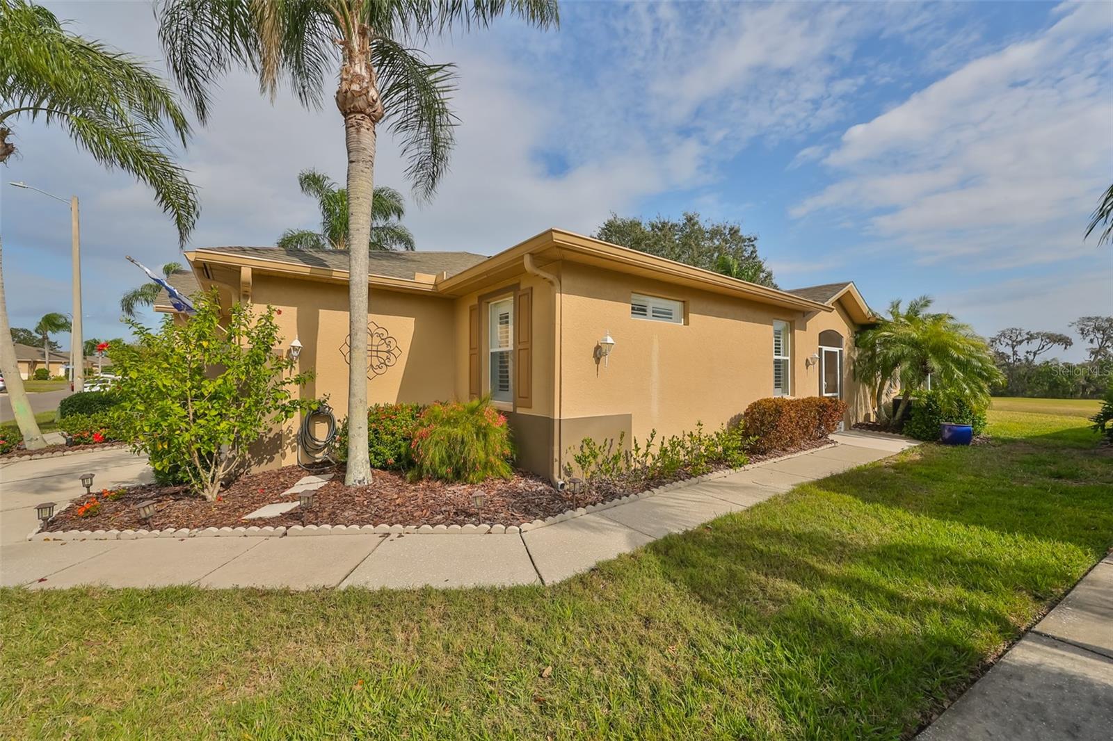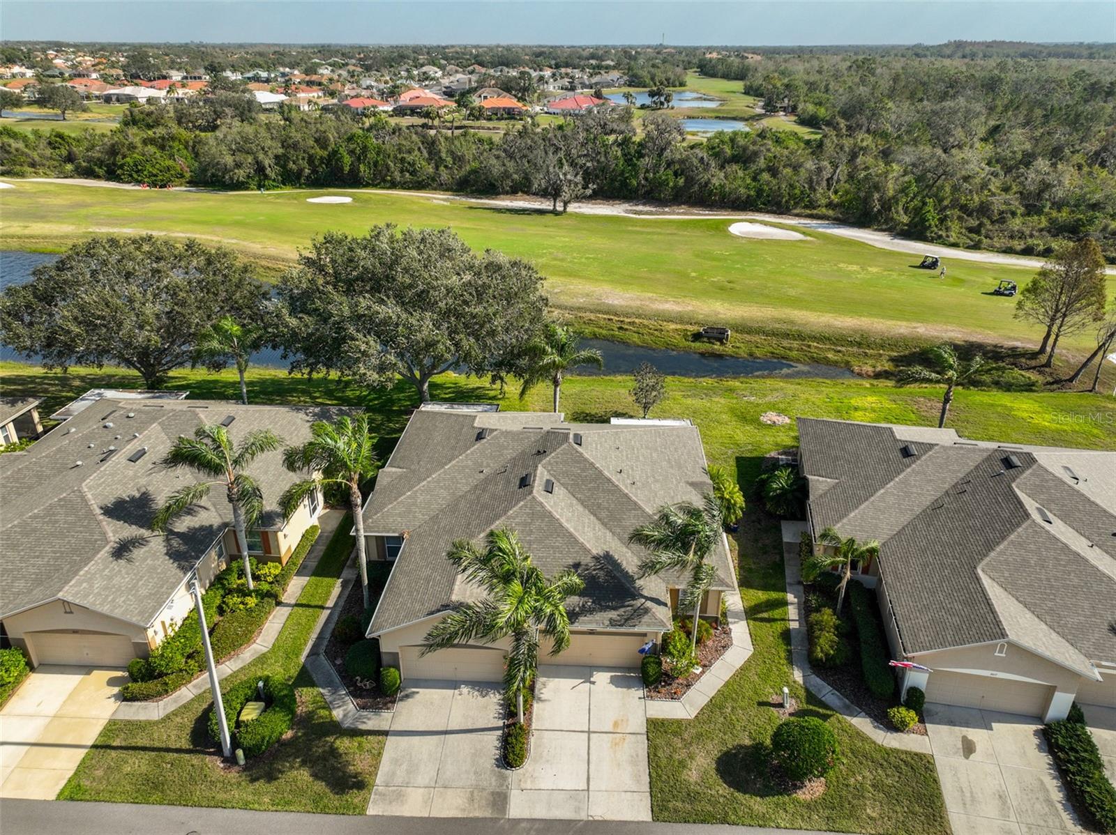 Motivated Seller - RARE TRI-FECTA VIEW - POND, GOLF COURSE, and CONSERVATION VIEW. FRESHLY PAINTED, METICOULOUSLY CLEAN AND MAINTAINED Kingston Floor Plan with a LARGE, EXTENDED, SCREENED LANAI. Walk in with a stunning view of GREEN grass and WATER and NO NEIGHBORS in your back yard! HIGH Ceilings. Stainless Appliances and upgraded recessed LED Lights in Kitchen. LED Lights in most of the Villa. 3/4" Red Oak Engineered Hardwood Floors in the Primary Bedroom, Guest Bedroom, Great Room, and Den. Ceramic Tile in all wet areas. Coastal colors throughout the home, give it a relaxing and comfortable feeling. Crisp, white PLANTATION SHUTTERS, BEAD BOARD and CHAIR RAIL are just a few of the extra touches that make this home special. The kitchen is large and open with NEWER stainless-steel appliances and contemporary cabinetry. The extended, screened lanai faces EAST on the 8th hole of Scepter Golf Course. This unit has a split floor plan for maximum privacy. Extra Storage throughout, including extra cabinets in the Laundry Room and garage. The garage also has attic stairs and storage. The Screened 16'X13' Lanai has one of the best views in Kings Point. Kings Point has a Restaurant and Bar, 6 pools, and hundreds of unique social clubs, groups, organizations and classes, Tennis, fitness, entertainment, classes, spa, salon.