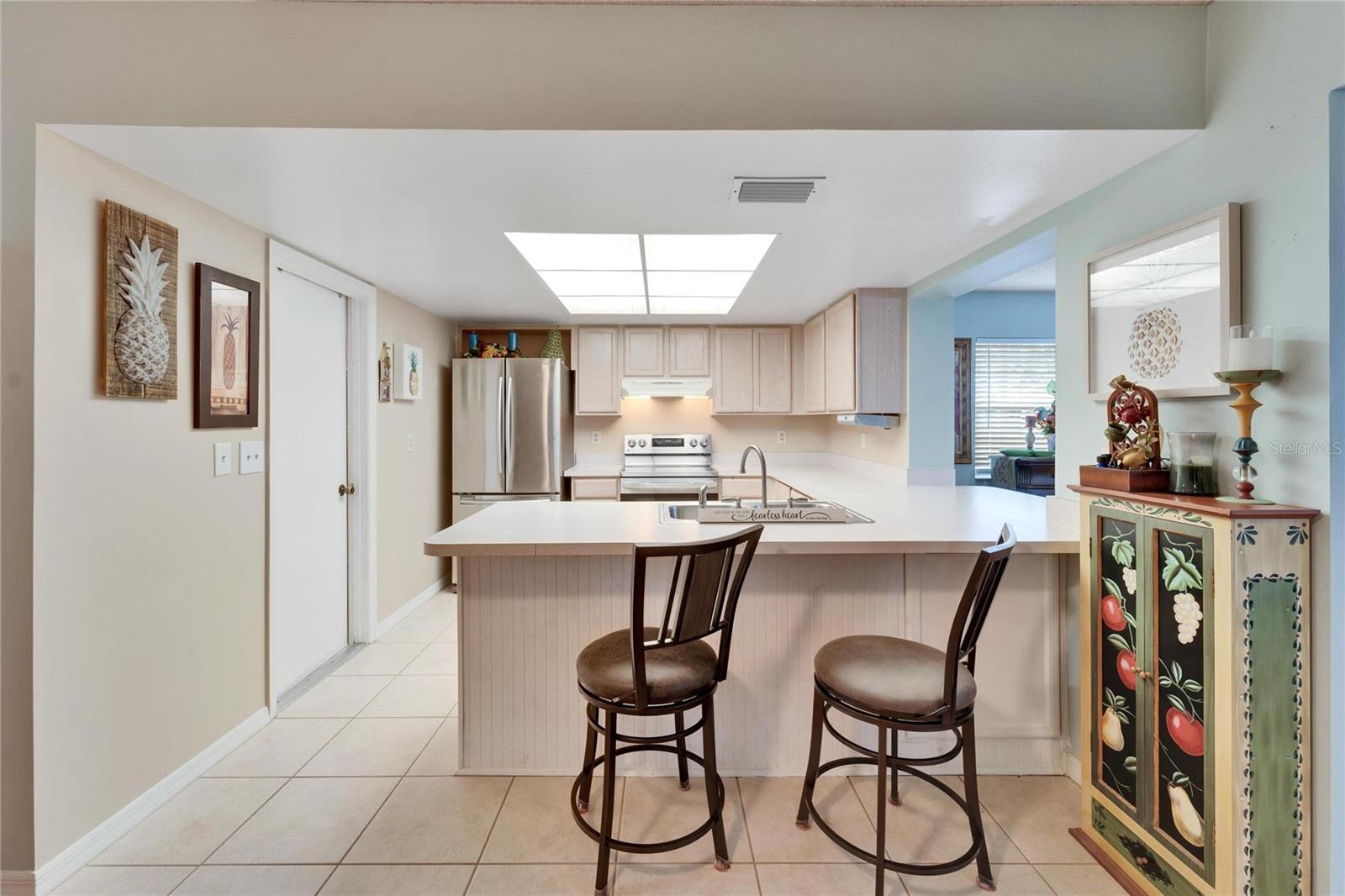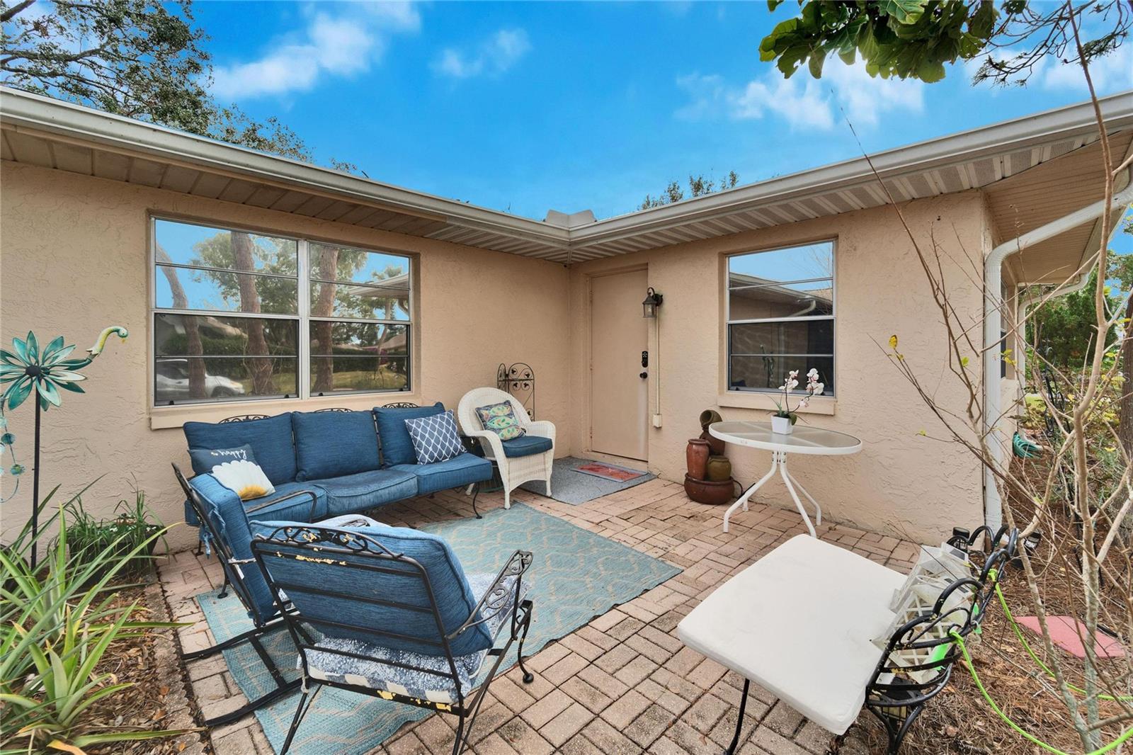 Time to appreciate REAL Florida living, maintenance-free with an abundance of sun, fun & new friends waiting for you! This customized Brentwood I model home is nestled in the Kings Point community that is not only a highly desired community, but is also equipped with SO many benefits including a 24-Hour Guard, Cable TV, Community Pools, Internet, Maintenance Exterior, Maintenance Grounds, Pest Control, Pool Maintenance, Recreational Facilities, Security, Sewer, Trash, Water usage inside & out and much more. This stunning condo will provide you with all the details and features you could ever desire, including an updated panel box, plumbing, newer water heater, *New Exterior paint TBD*, solid surface flooring throughout, and SO much more. Upon arrival, be welcomed by an expansive driveway leading you to the large carport that welcomes you home. The open floor plan will not only meet, but exceed your expectations for comfortable living, and entertaining, too! A delightful, well-equipped kitchen is just the perfect space to make and enjoy a wonderful meal including a large peninsula and pass through window with bar seating making for an ample amount of counter space not to mention a ton of cabinetry for storage. No matter if you are cooking for one or for eight this home features a beautiful dining room just off the kitchen which can accommodate the space or you can use your imagination and make it your own. The kitchen and dining rooms are open to the living room making for a great space to host yet still enjoy a gathering. Just off the living room you will find the large office/den area customized to this model, fabulous use of the space and still having a large living room. A spacious owner's suite provides a large walk-in closet, built-in closet and en-suite bathroom with a gorgeous vanity area and a walk-in shower. Across the way, your guests are welcomed by an open & airy suite, a large closet, and a guest bath with a shower tub combo! One of this home's best features is the spacious Florida room! Sit back, relax, and start enjoying the captivating views of the retired golf course, beautiful greenery, trails, wildlife, and Florida sunshine all from the comfort of your own home. Kings Point is an active 55+ community with an abundance of amenities including six pools, over 200 clubs, nature trails, 2 beautiful clubhouses, 2 saunas, whirlpools, and activities to keep you occupied. This is a golf cart community that has other nearby public golf courses that you can take your cart to. Some of the most beautiful Gulf Beaches are located within a 30-minute drive. Call to schedule your showing so you can enjoy this beautiful home in Kings Point.