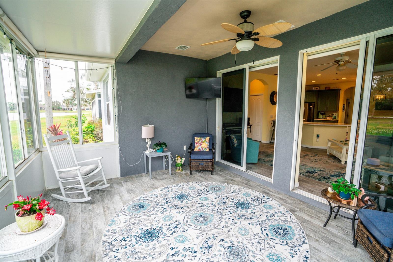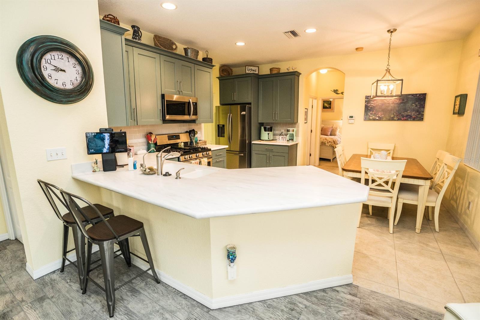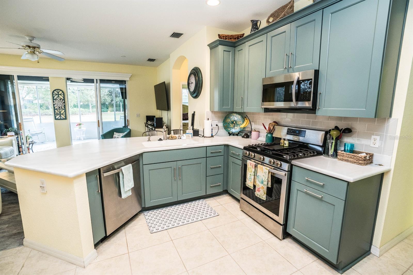 PRICE REDUCTION!!! Welcome to this beautifully maintained 3 bedroom, 2 bath, maintenance free condo in one of Florida's highest rated, 55 and over communities. The large open floorplan features wood plank tile in the great room, kitchen, lanai and bathrooms, with carpet in the 3 bedrooms. The primary bedroom has a large walk-in closet and an on suite bathroom. This chef's dream kitchen features, 42" cabinets, stainless steel appliances, light corian countertops with a breakfast bar, and a gas stove.. There is a reverse osmosis system for the sink and the refrigerator,. and a whole house water softener system. The extended enclosed lanai is under heat and air, with a wonderful pond view to enjoy your morning coffee. Kings Point is a 24hr gated, maintenance free, golf cart community, with 5 swimming pools. 3 outdoor and 2 indoor all heated. There are over 200 activities and clubs to participate in or join, ranging from pickleball, tennis, arts and crafts, gardening, ceramics and anything else you can think of. Located between Tampa and Sarasota you are only a short drive to airports, fine dining, and world class beaches. Schedule your showing today.