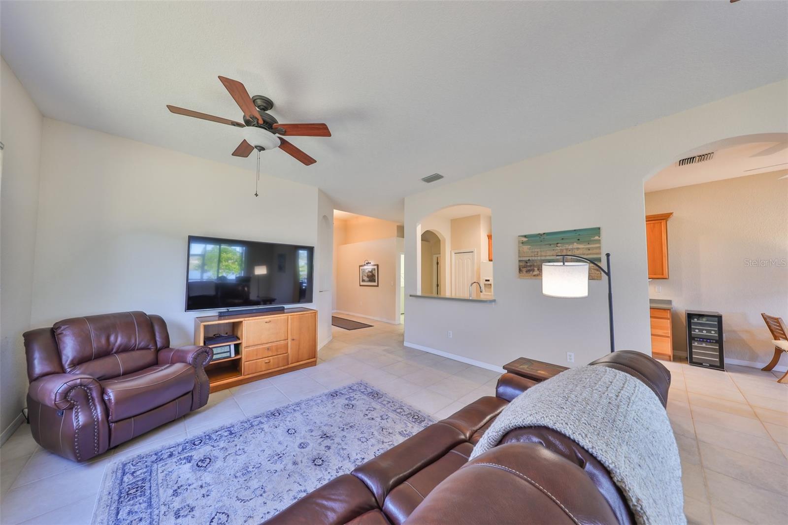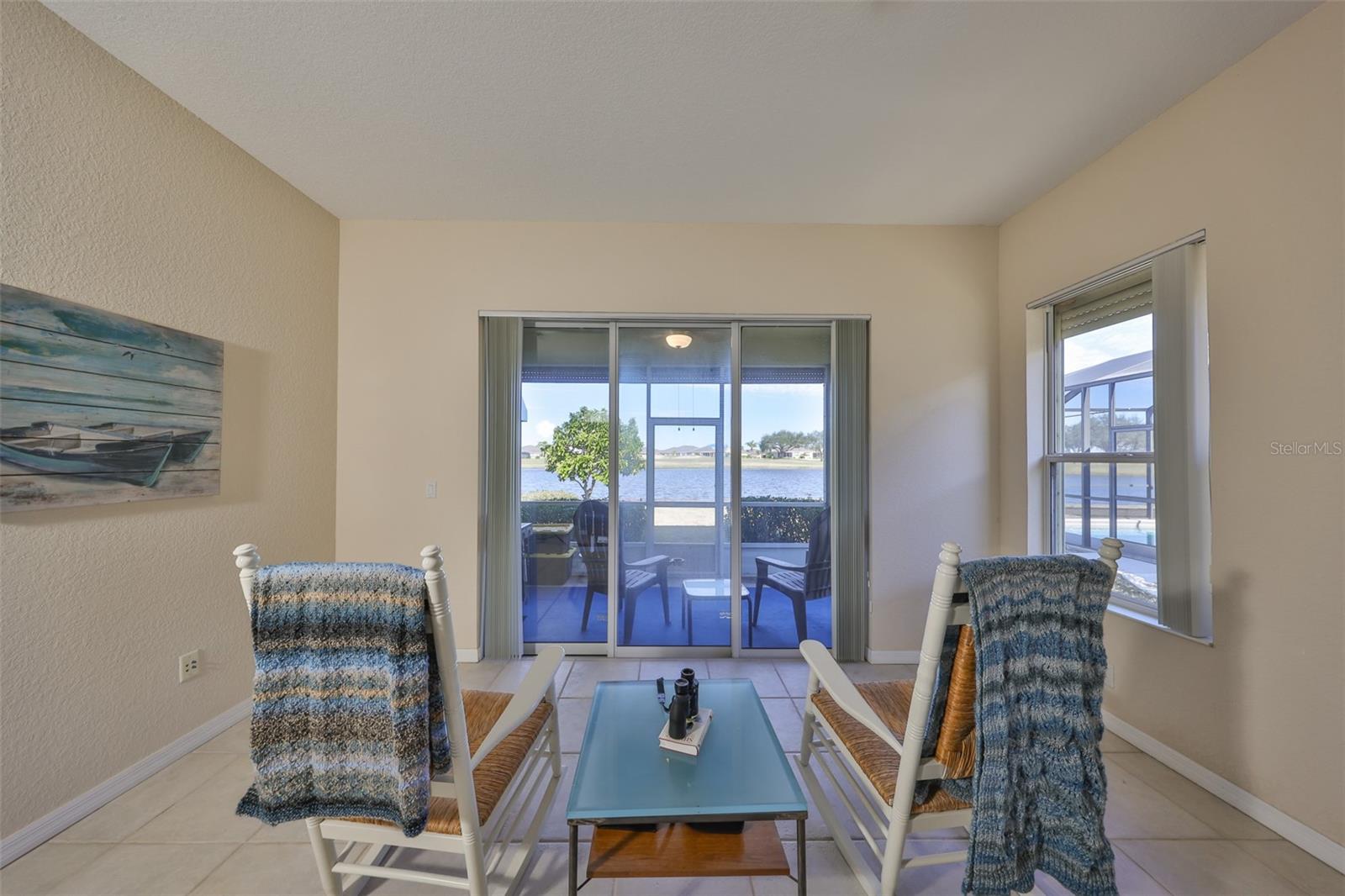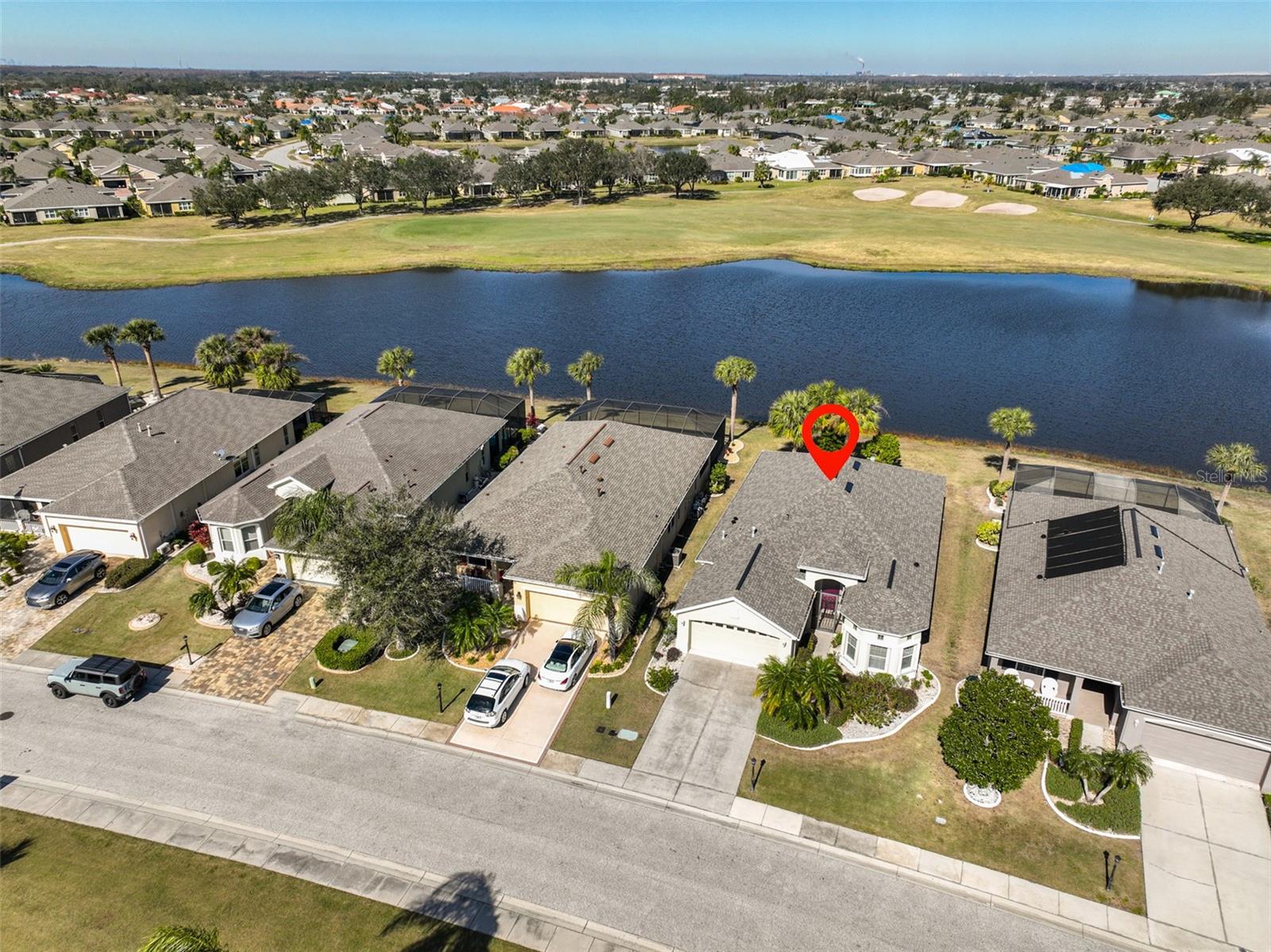 Click on 3D tour ------- SELLERS SAY MAKE AN OFFER! TERRIFIC WATER & GOLF COURSE VIEWS! Welcome to active & fun retirement living in the 55+ resort-style community of Renaissance, where you'll feel like you're on vacation every day. This lovely, PARTIALLY FURNISHED, 2 bed/2 bath & den home boasts almost 2000 square feet of living space and is nestled on a premium lot. You'll be impressed with the neutral decor, high ceilings, lots of ceramic tile flooring and stunning WATER & GOLF COURSE VIEWS ALL ACROSS THE REAR OF THE HOME. The eat-in kitchen has a solar tube for extra lighting, has plenty of cabinetry & counter space and opens up to the comfortable living/dining room area for easy living. The large private owner's suite has an extra sitting area w/slider to the lanai, has a nice ensuite bathroom w/walk-in shower and plenty of closet space. The guest bedroom & bathroom are at the opposite end of the home for added privacy. The den/office can easily be used for a 3rd bedroom if needed. The lanai is the perfect space to relax & enjoy the various birds & wildlife. As an added bonus, there is an awesome grill w/hood for the BBQ lovers. This home has several updates, ROOF 2022, FURNACE 2019 W/UV LIGHT, DISPOSAL 2019, HURRICANE SHUTTERS ALL AROUND 2018, EXTERIOR PAINT 2018, WATER HEATER 2017 AND NATURAL GAS. THIS HOME ALSO COMES WITH A 1 YEAR HOME WARRANTY FOR WORRY-FREE LIVING. The neighborhood Club Renaissance is just a short golf cart ride up the street, where you can enjoy dining, drinks, resort-style pool, fitness classes, spa, social activities, and so much more. You'll also have access to all Sun City Center amenities, such as shopping, restaurants, banking, doctors, numerous social clubs, pickleball, and tons more, all accessible by golf cart. So come and visit this wonderful home today and see why you'll want to call it yours!