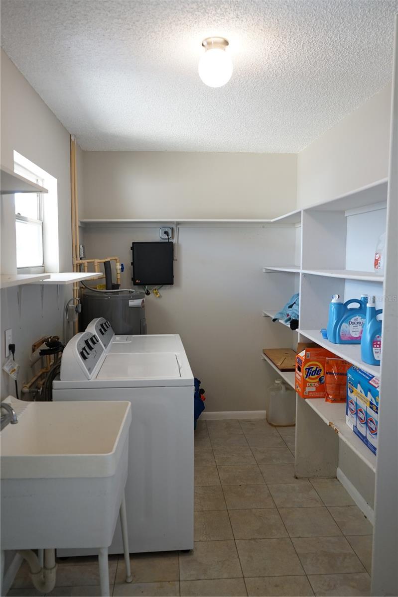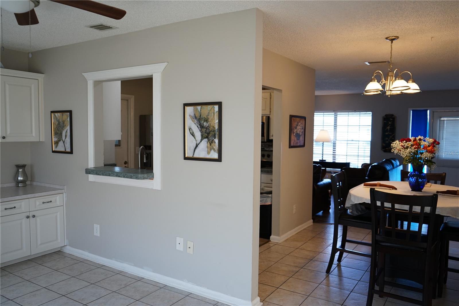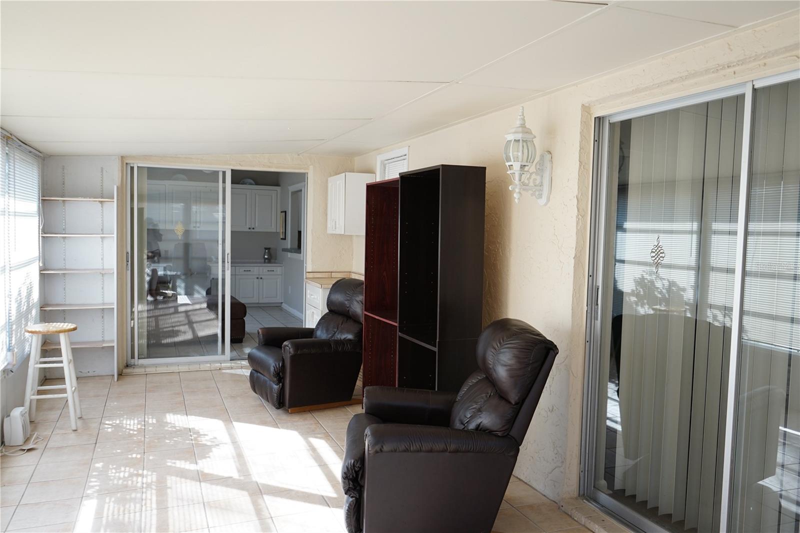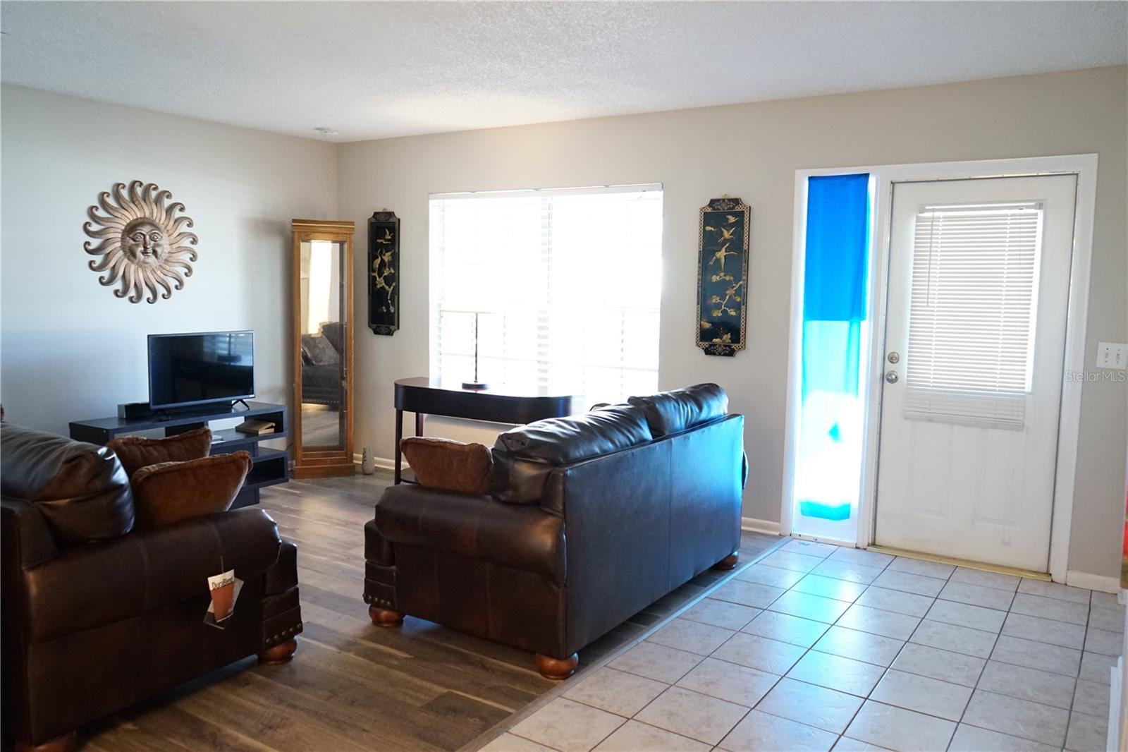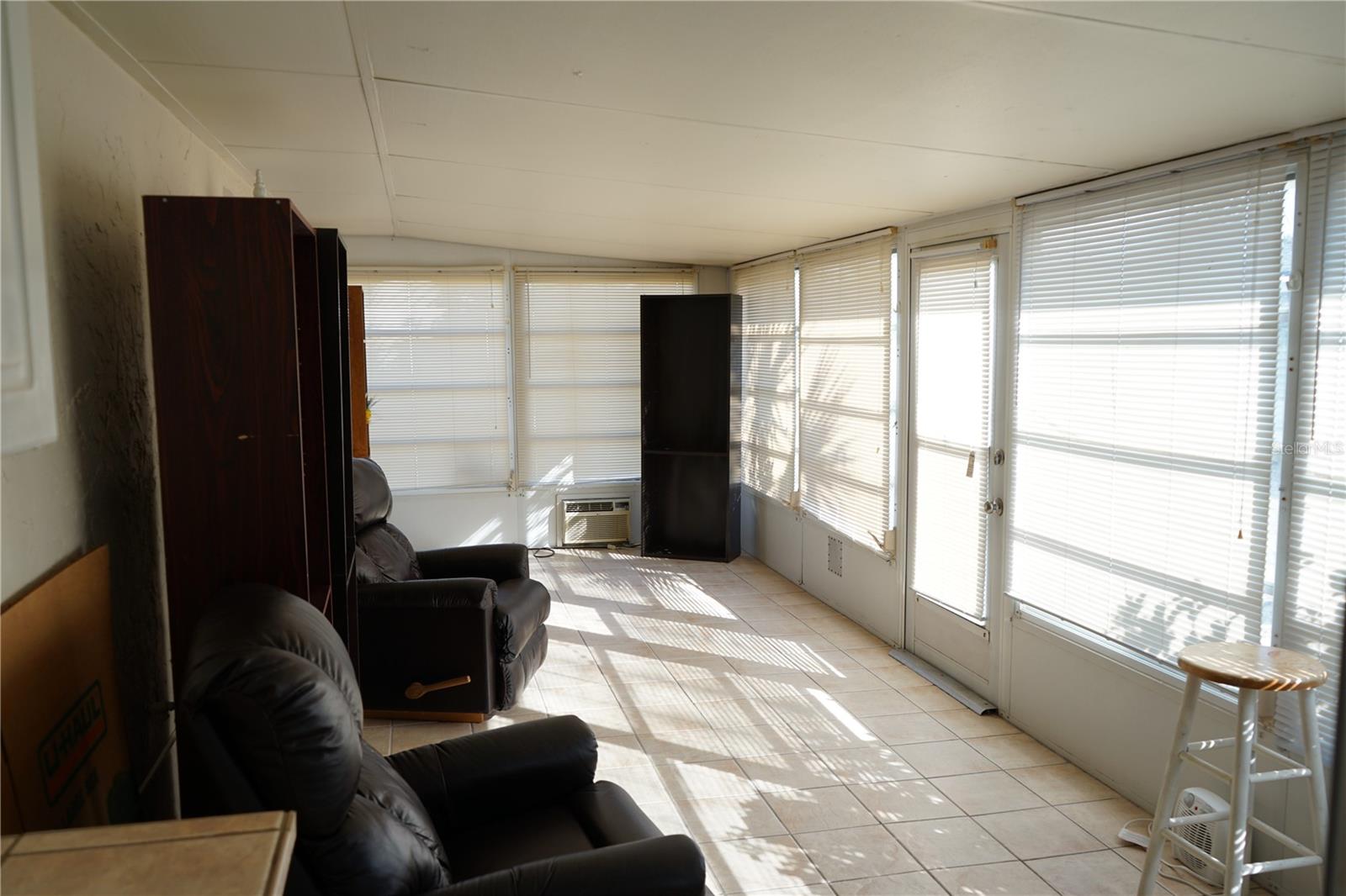 This home is located on a cul de sac and close to the clubhouse and shopping when needed. There is a front porch to enjoy your morning coffee taking you into the living area with laminate flooring. There is tile in the dining and kitchen area with a family room behind here with built in shelving and a desk. Through the sliding doors is a large lanai where you can set up another office or a hobby area. The two bedrooms are a good size and the primary has a walk in closet. There is a one car garage with a laundry room large enough to store beach gear or hobby supplies. A small fenced space out back will house your trash bins or bikes.