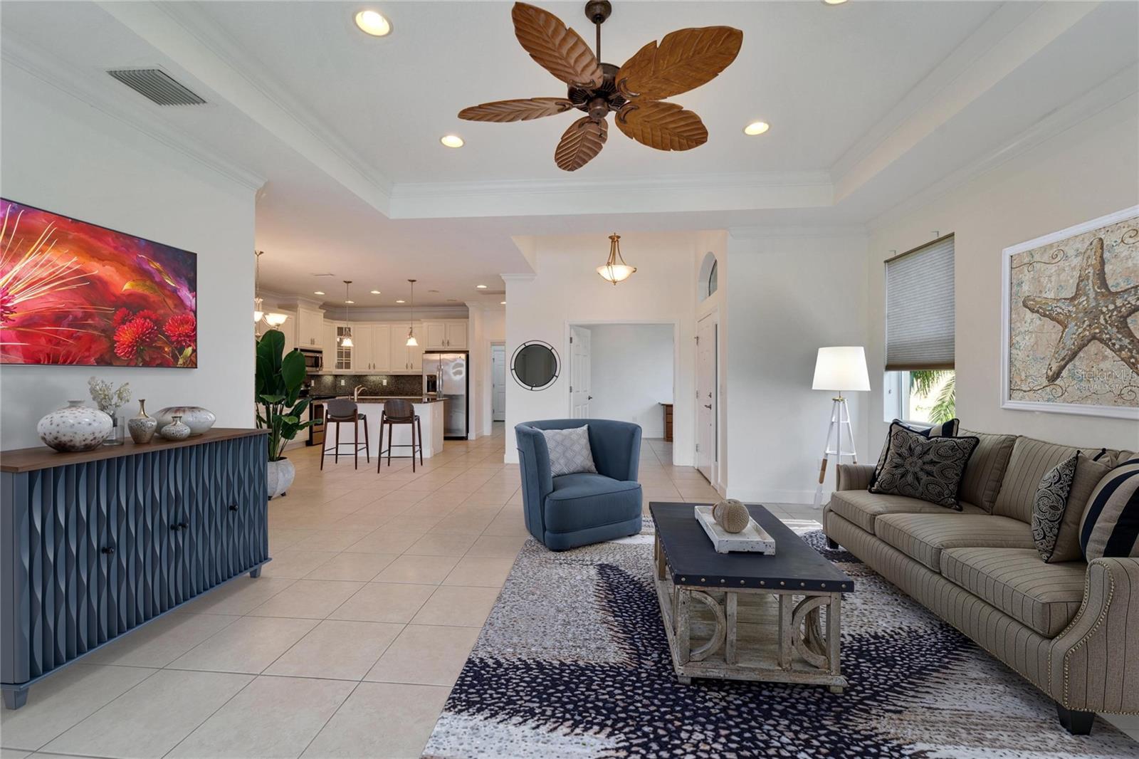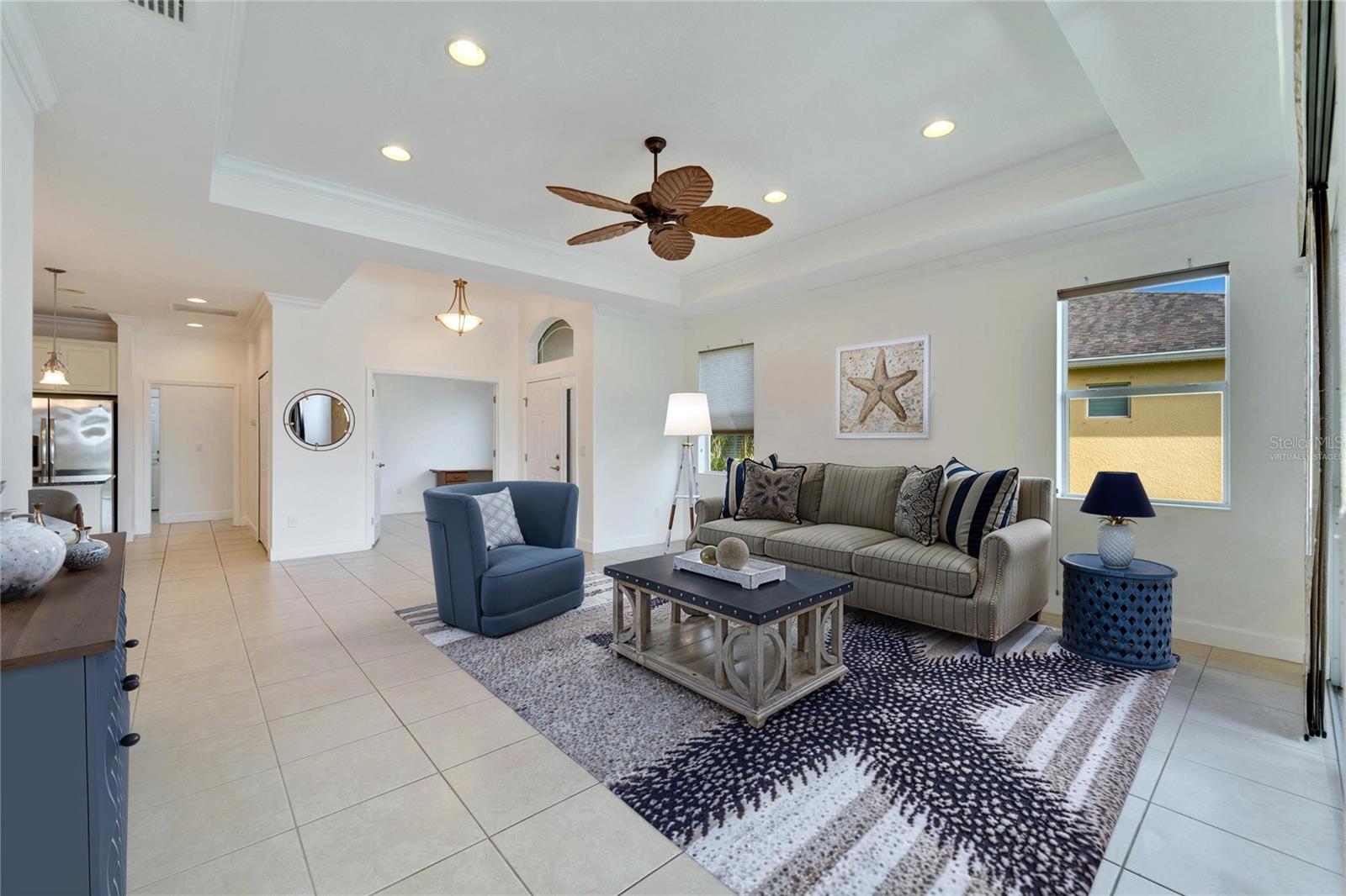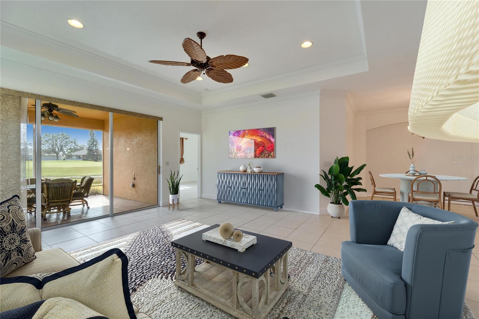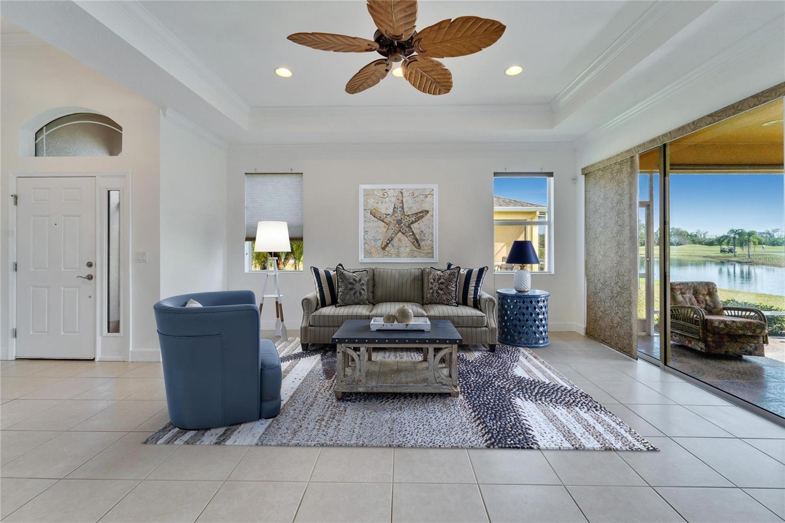 One or more photo(s) has been virtually staged. Seller financing may be available with the right down payment and terms. One of the newest homes in Kings Point, with the CONDO FEES PAID THRU APRIL 2026, and a brand-new roof was just installed. Nestled in the heart of Kings Point, in the fabulous Somerset Villas community, this home has breathtaking water, golf course, and conservation views. It boasts 3 spacious bedrooms, 2 baths, and a 2-car garage. The 3rd bedroom has been transformed into an office with built-in desks that will gladly be removed if requested. This charming residence features a freshly painted interior, 42" hardwood cabinets, stainless-steel Kitchen appliances, and luxurious quartz countertops. The Buttonwoods open floor plan provides the perfect blend of comfort and luxury. This home offers the ultimate maintenance-free living experience. With no surprise expenses, the HOA fees cover a range of services, including 24-hour gated security, premium cable, high-speed internet, building insurance, exterior maintenance, grounds maintenance, irrigation, pest control, water & sewer, low taxes and significant savings on homeowners' insurance. Kings Point residents have access to world-class recreational facilities, including two stunning clubhouses, six heated pools, an 850-seat theater, a luxurious spa, tennis courts, three golf courses, a rehabilitation pool, hot tubs, billiards, multiple pickleball and tennis courts, and two state-of-the-art fitness centers. With dozens of social and sports clubs, an active and fulfilling lifestyle is assured. Kings Points convenient location is key, with golf cart access to doctors, hospitals, shopping, banking, and everything you will need in this self-contained community. Kings Point even has its own free transportation system. Just minutes from Florida’s best beaches, Tampa's cruise port, and Disney World, this award-winning community delivers everything you could want to start living the Florida lifestyle. Kings Point is truly one of the best places to call home in Florida. Come experience the perfect blend of serenity, luxury, and convenience—your dream home awaits!