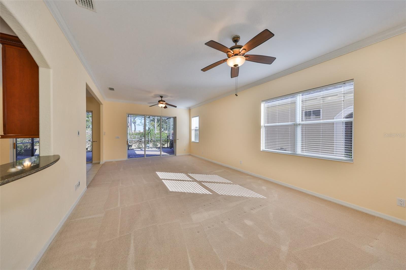 Price reduced! Step into your own private oasis when you enter this lovely home which is located in a beautiful neighborhood in the coveted area of Renaissance. This jewel has 2 bedrooms plus a den that could be used for a man cave, craft room, office or whatever your heart desires. The master ensuite has a large sitting area which offers great space to pursue your quiet activities. You and your guests will both enjoy privacy in this split floorplan. The kitchen has granite counters, eat-in space, pull out shelves in the cabinets and newer appliances including a microwave/convection oven. The home has a 2 year old roof and a new (2024) AC. The interior has just been freshly repainted - no holes in the walls here! The paver lanai offers sizeable space for entertaining or a place to sit and enjoy your morning coffee or evening beverage watching the sunset. This is retirement living at its best. Sun City Center has been voted the country's top place to retire! This 55+ community offers a resort lifestyle retirement with golf, a state-of-the-art fitness center, tennis courts, fabulous pools, numerous clubs and entertainment; anything you'd ever want. It is also conveniently located close to beaches, shopping, restaurants, professional sporting events and airports. Banks, shopping, churches, doctors and the hospital are just a golf cart ride away.