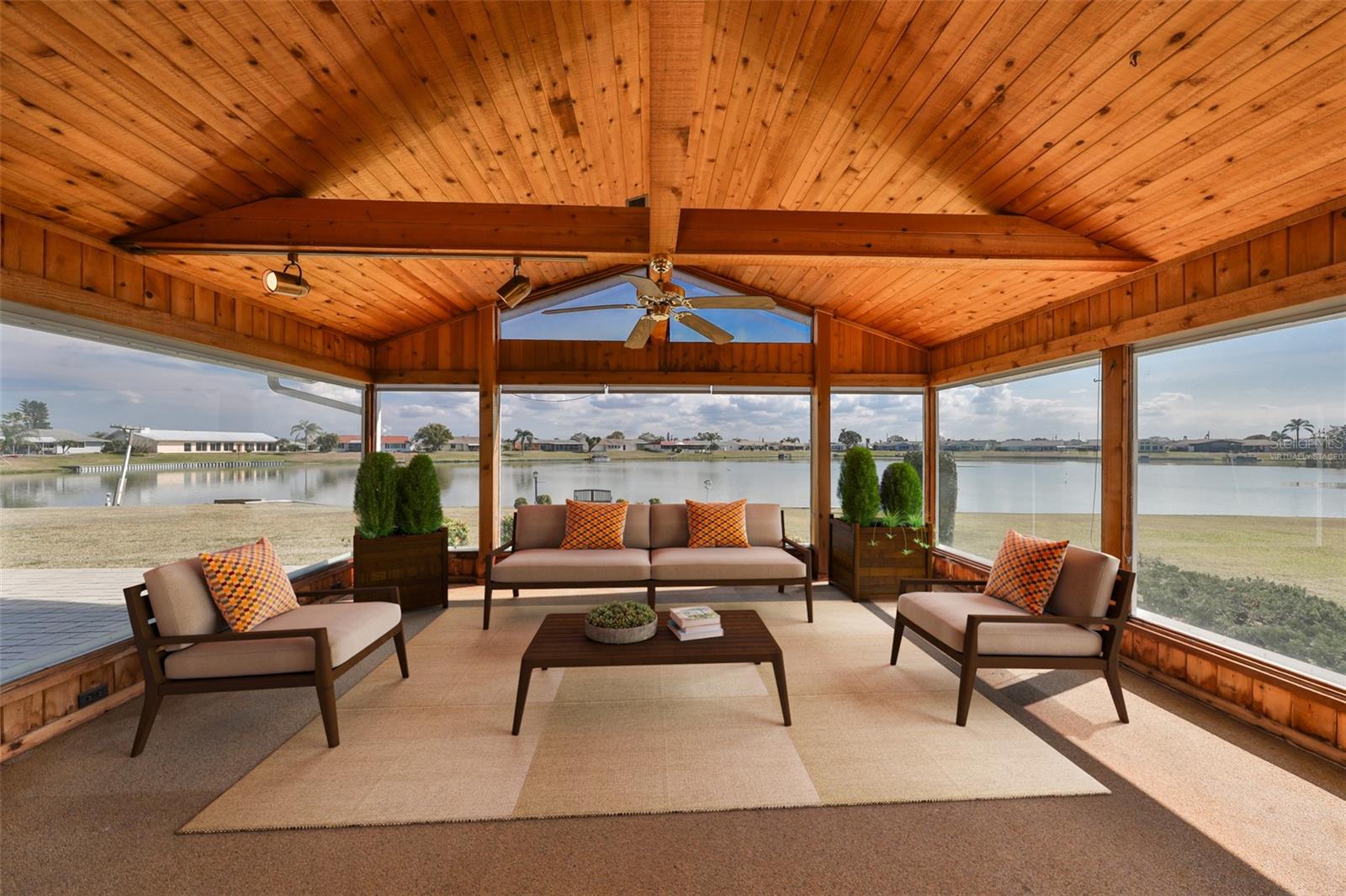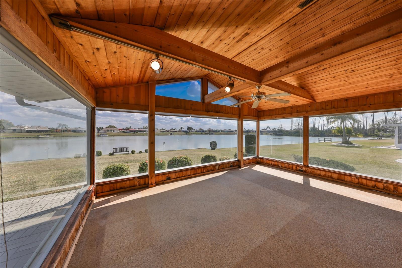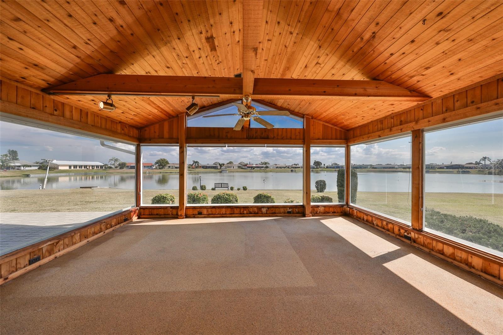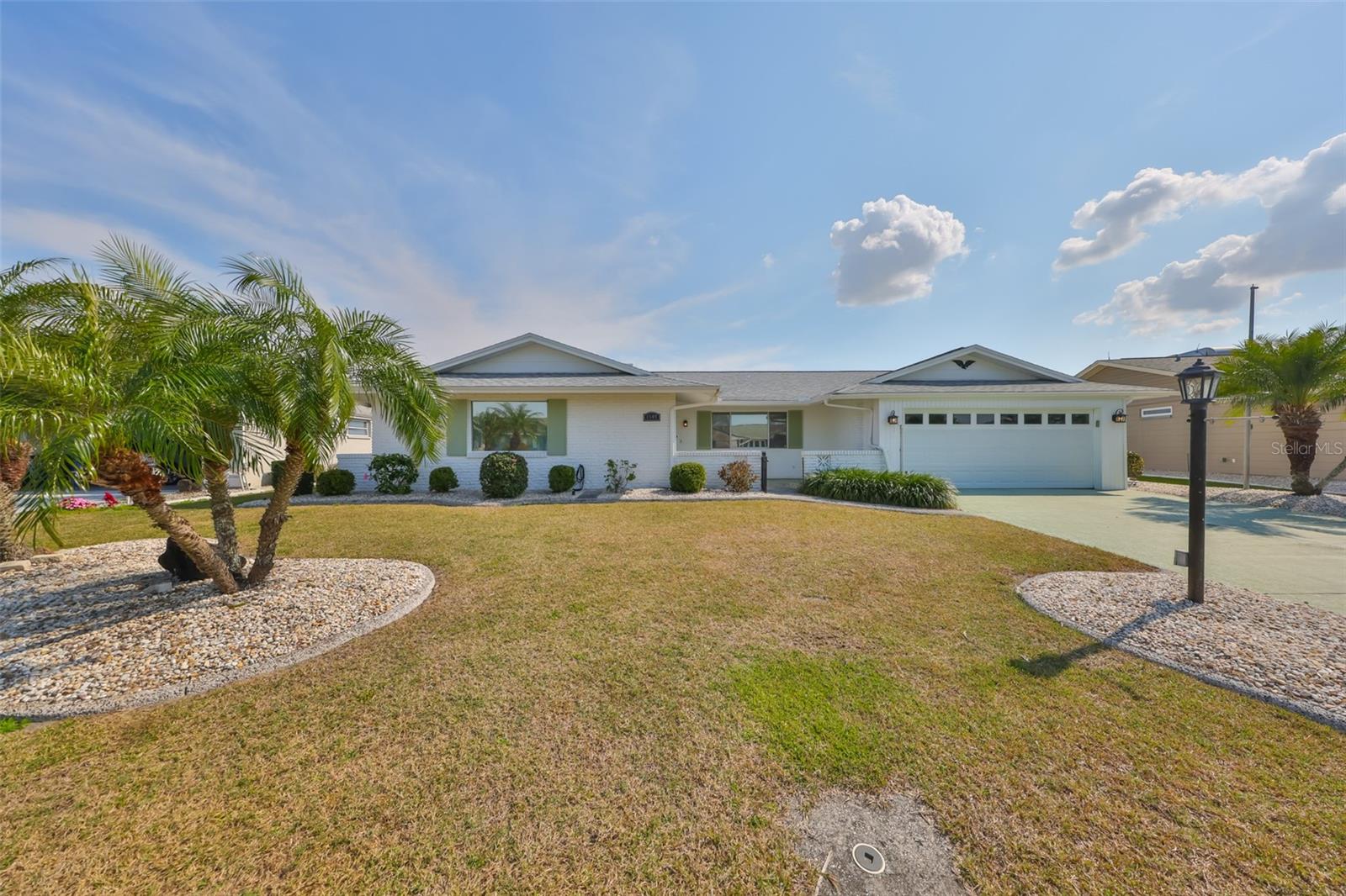 One or more photo(s) has been virtually staged. HUGE PRICE IMPROVEMENT! One or more photo(s) has been virtually staged. Charming Lakefront Home on Middle Lake in Sun City Center's 55+ Community! Experience the joy of sunny days in this lovely home nestled on a peaceful cul-de-sac, overlooking the serene boatable 45-acre Middle Lake. Perfect home for entertaining family and friends, with large living room, Florida room, den and Sunroom. Enjoy watching wildlife from the stunning Sunroom or Florida Room in this bright and airy custom DW-55, featuring 2 bedrooms and 2 baths. The updated kitchen is a chef's dream with white cabinets, granite countertops, stainless steel appliances, recessed lighting, and attractive wood-look tile flooring. The Sunroom stands out with its vaulted ceiling adorned with beams, expansive windows all around, complete with sunshades and hurricane panels. The thoughtfully designed second bedroom includes two closets, one of which is a walk-in. The main suite offers an ensuite bathroom featuring a walk-in shower for your convenience. The two-car garage has a workbench and extra storage, and the spacious laundry room has extra storage. Recent updates include fresh exterior paint in 2022, a new roof installed in November 2023, and two HVAC systems replaced in September 2019 and March 2020. The hot water heater was updated in 2017, some windows were replaced in 2006, and the retaining wall was redone in 2010. The sprinkler system has a new lakeside pipe installed in April 2024 and a new pump from 2019. The interior plumbing was repiped in 2007. Buyers will be required to pay a one-time fee of $3,000 to the SCC Community Association, followed by an annual fee of $344 per person, plus $75 for lake maintenance. Sun City Center offers a vibrant active adult lifestyle with a state-of-the-art fitness center, indoor Olympic lap pool, resistance pool, and outdoor pool. Engage in various activities such as softball, pickleball, tennis, arts and crafts, model trains, woodworking, lawn bowling, dancing, and more than 150 clubs. Optional membership for Club Renaissance and access to 72 holes of golf are also available! This home is conveniently located near everyday amenities, providing easy access to Tampa, Sarasota, St. Petersburg, Tampa International Airport, sporting events, beaches, theaters, shopping, dining, and so much more!