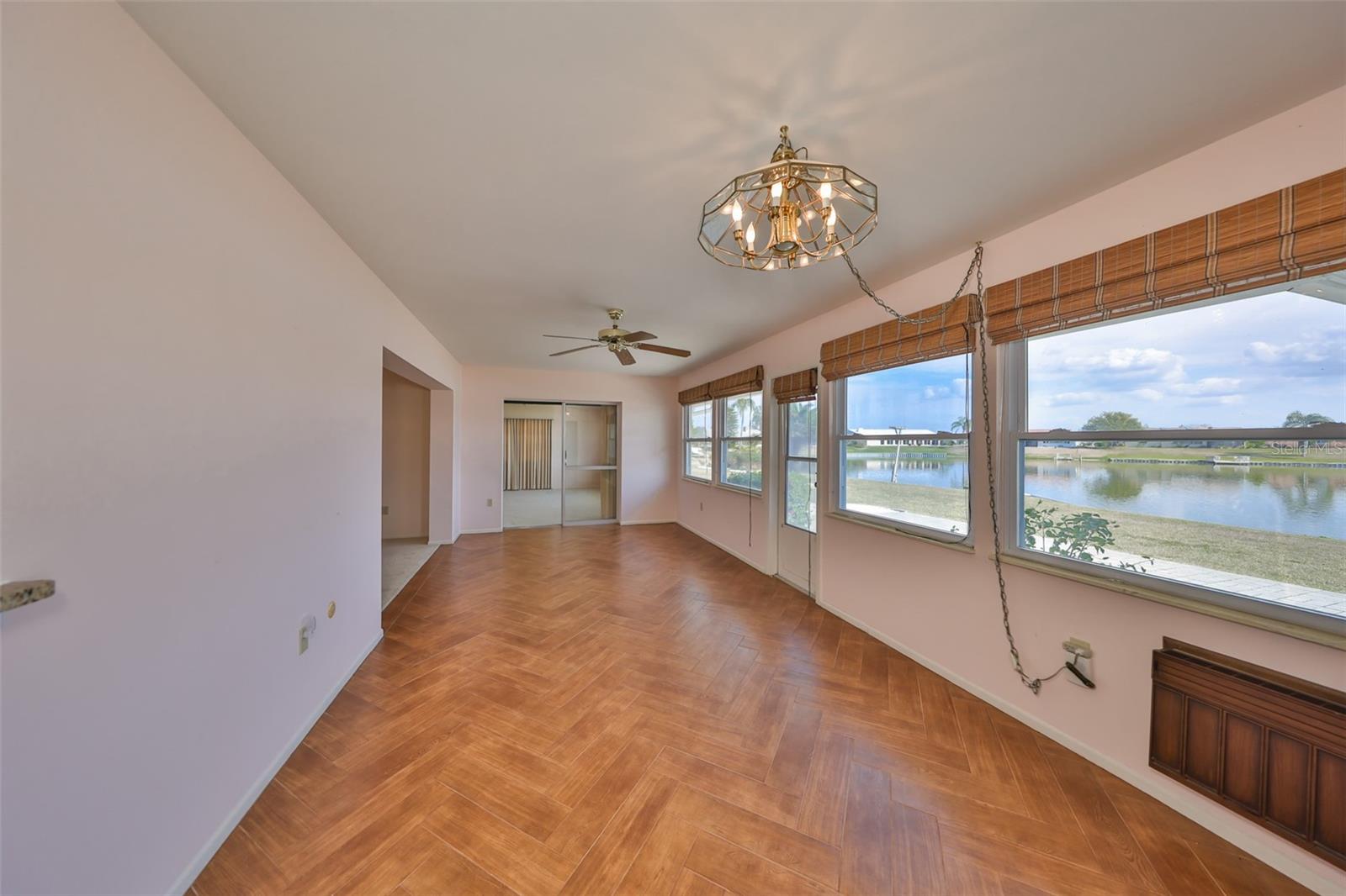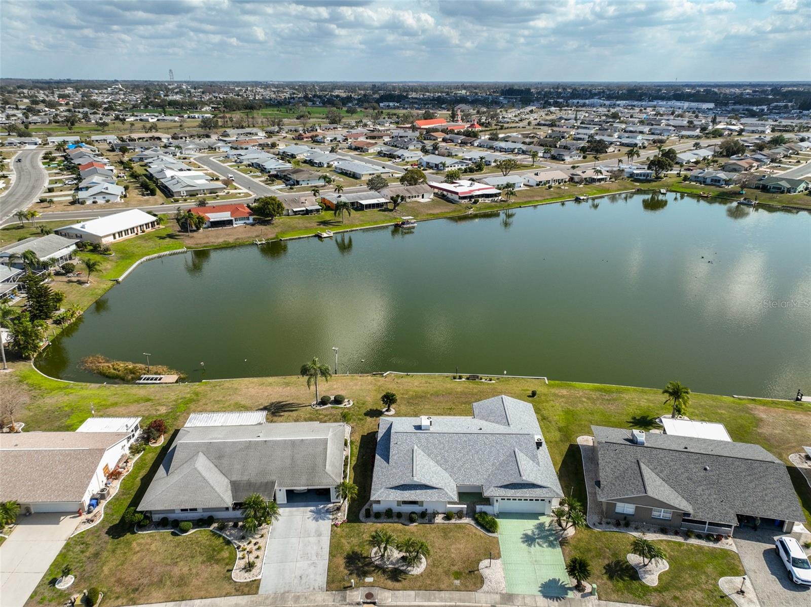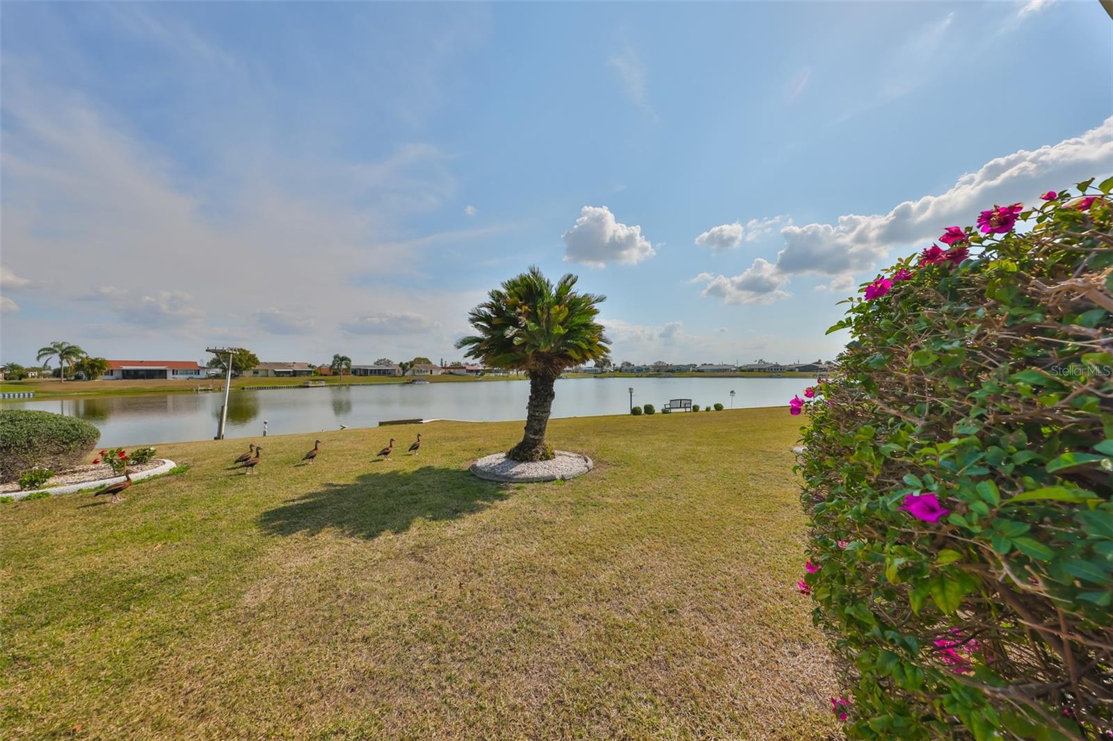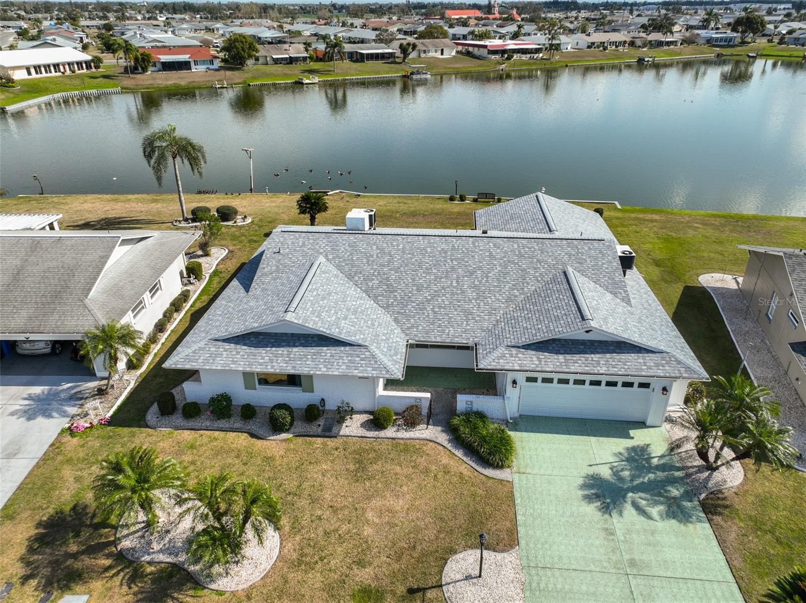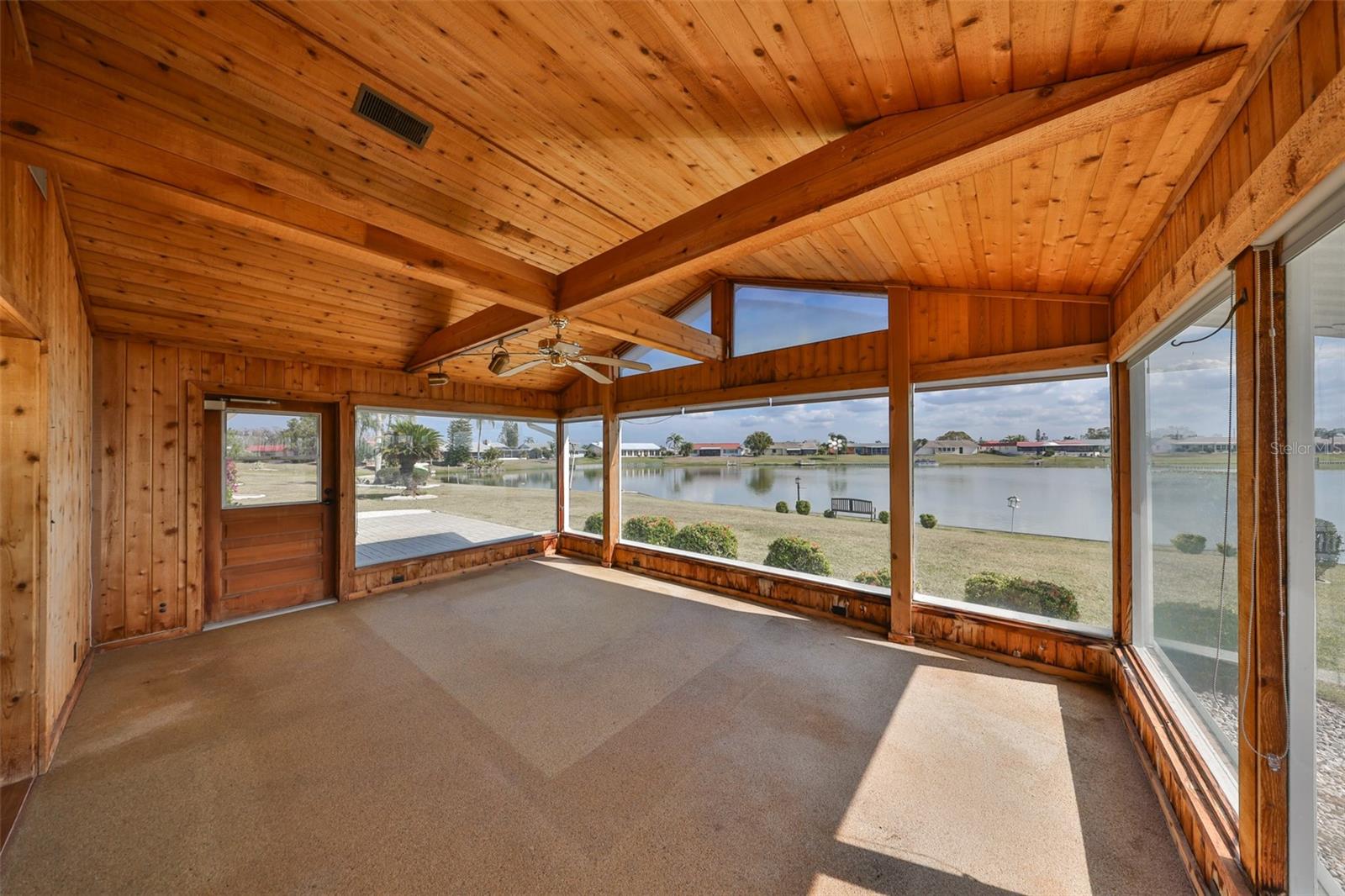 One or more photo(s) has been virtually staged. HUGE PRICE IMPROVEMENT! One or more photo(s) has been virtually staged. Charming Lakefront Home on Middle Lake in Sun City Center's 55+ Community! Experience the joy of sunny days in this lovely home nestled on a peaceful cul-de-sac, overlooking the serene boatable 45-acre Middle Lake. Perfect home for entertaining family and friends, with large living room, Florida room, den and Sunroom. Enjoy watching wildlife from the stunning Sunroom or Florida Room in this bright and airy custom DW-55, featuring 2 bedrooms and 2 baths. The updated kitchen is a chef's dream with white cabinets, granite countertops, stainless steel appliances, recessed lighting, and attractive wood-look tile flooring. The Sunroom stands out with its vaulted ceiling adorned with beams, expansive windows all around, complete with sunshades and hurricane panels. The thoughtfully designed second bedroom includes two closets, one of which is a walk-in. The main suite offers an ensuite bathroom featuring a walk-in shower for your convenience. The two-car garage has a workbench and extra storage, and the spacious laundry room has extra storage. Recent updates include fresh exterior paint in 2022, a new roof installed in November 2023, and two HVAC systems replaced in September 2019 and March 2020. The hot water heater was updated in 2017, some windows were replaced in 2006, and the retaining wall was redone in 2010. The sprinkler system has a new lakeside pipe installed in April 2024 and a new pump from 2019. The interior plumbing was repiped in 2007. Buyers will be required to pay a one-time fee of $3,000 to the SCC Community Association, followed by an annual fee of $344 per person, plus $75 for lake maintenance. Sun City Center offers a vibrant active adult lifestyle with a state-of-the-art fitness center, indoor Olympic lap pool, resistance pool, and outdoor pool. Engage in various activities such as softball, pickleball, tennis, arts and crafts, model trains, woodworking, lawn bowling, dancing, and more than 150 clubs. Optional membership for Club Renaissance and access to 72 holes of golf are also available! This home is conveniently located near everyday amenities, providing easy access to Tampa, Sarasota, St. Petersburg, Tampa International Airport, sporting events, beaches, theaters, shopping, dining, and so much more!